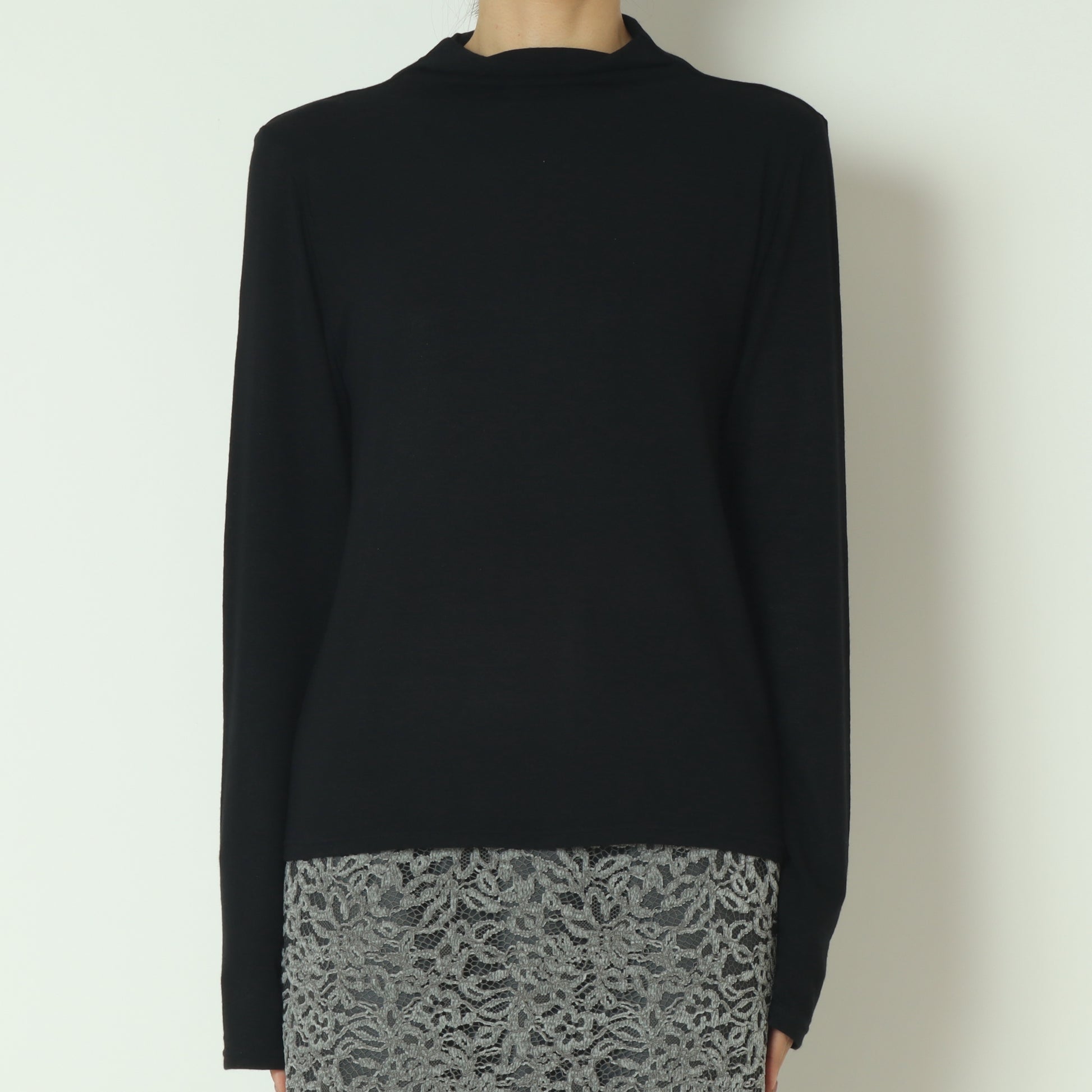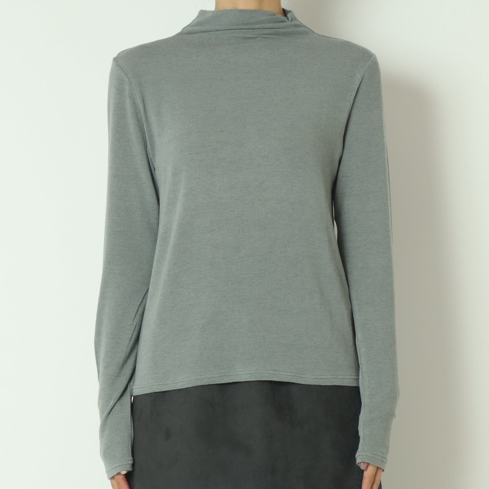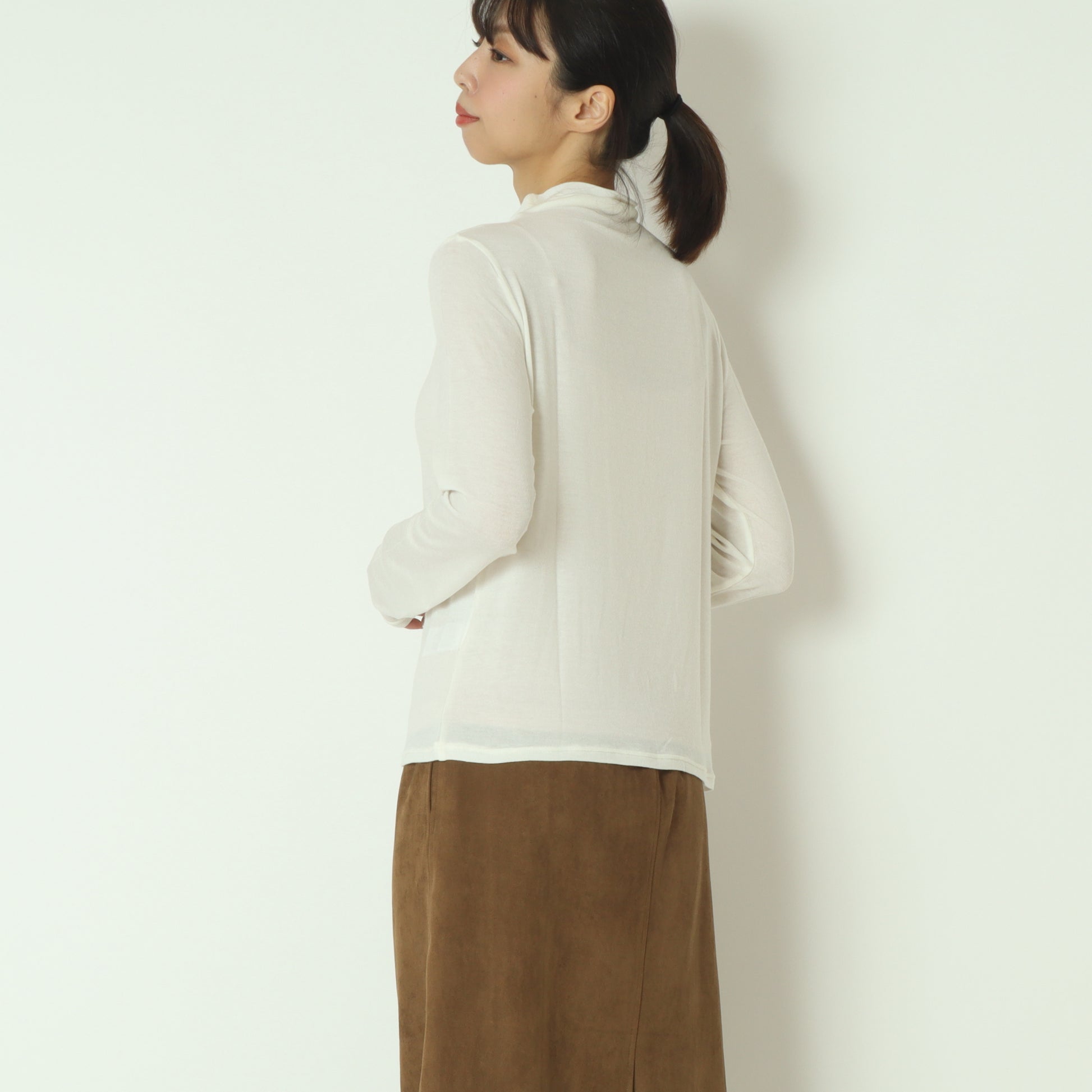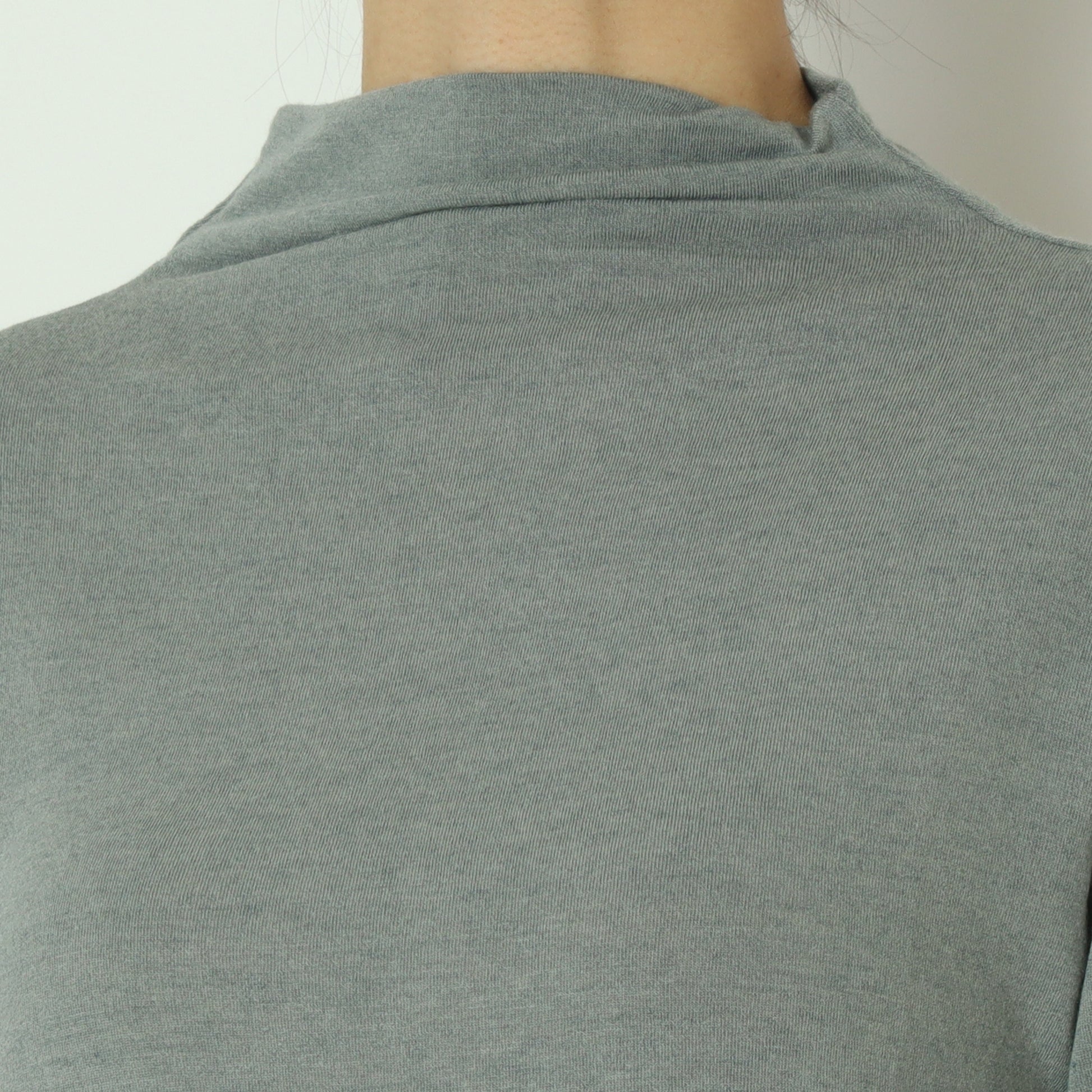 短めのネックで顔周りがすっきりしてみえるモックネックインナー。
