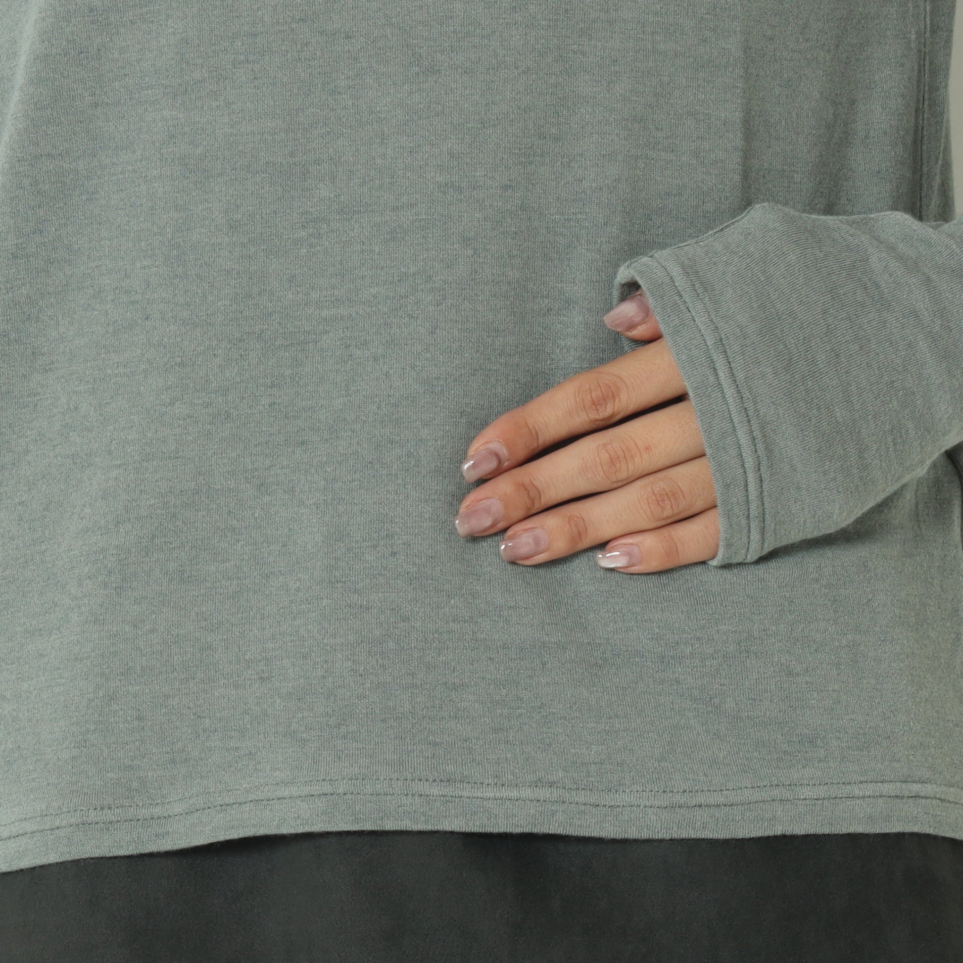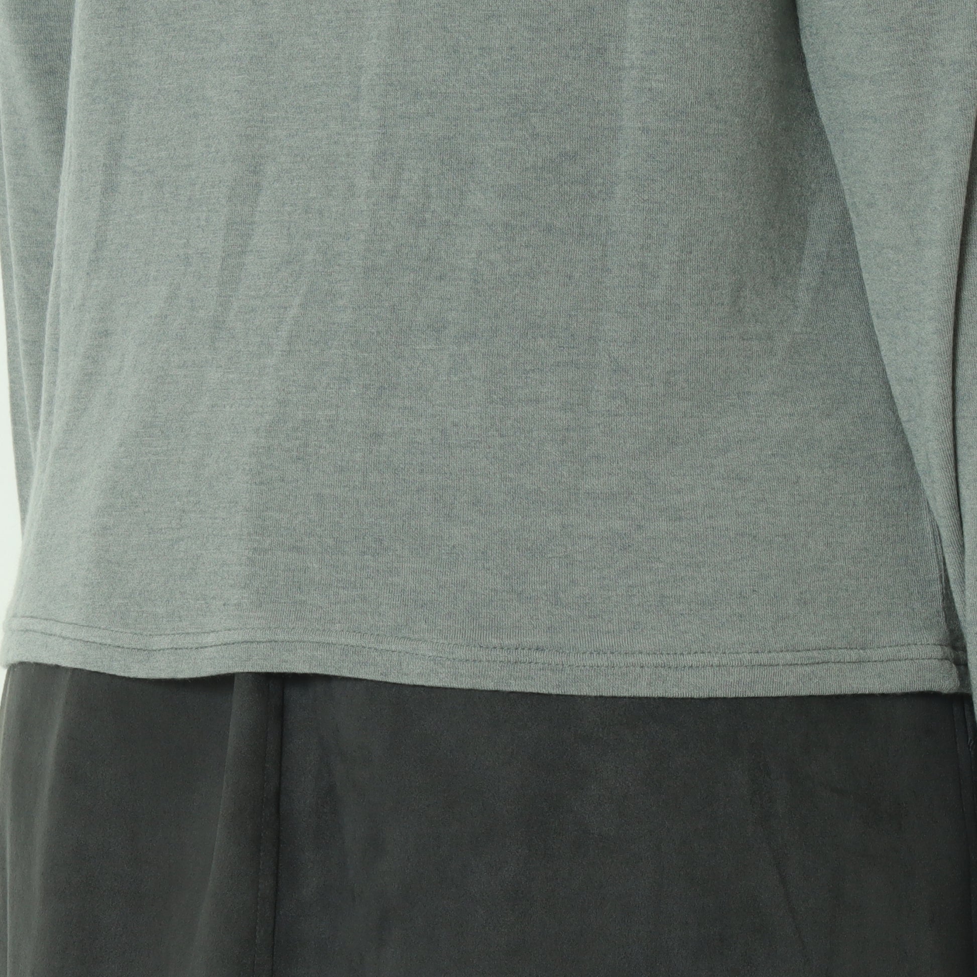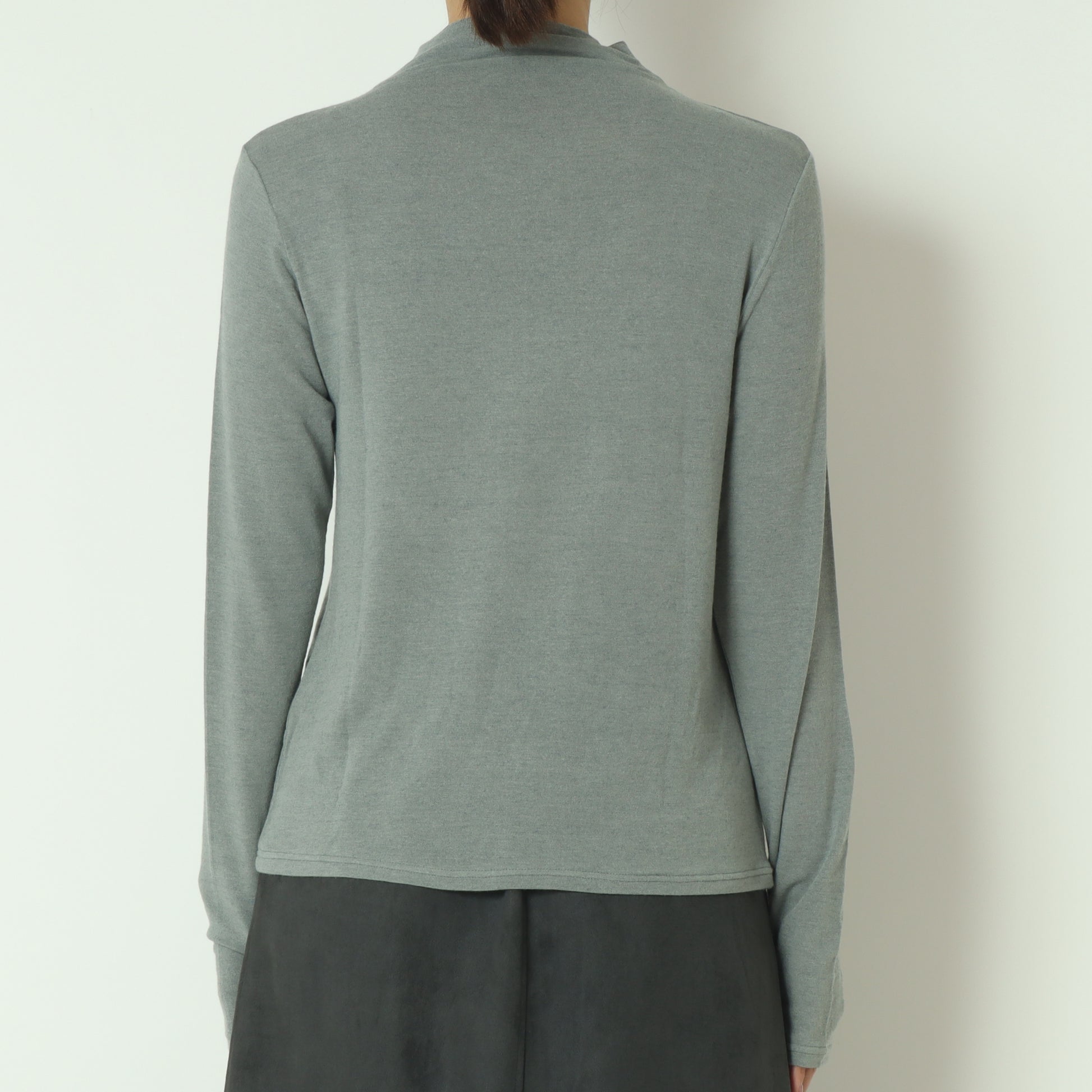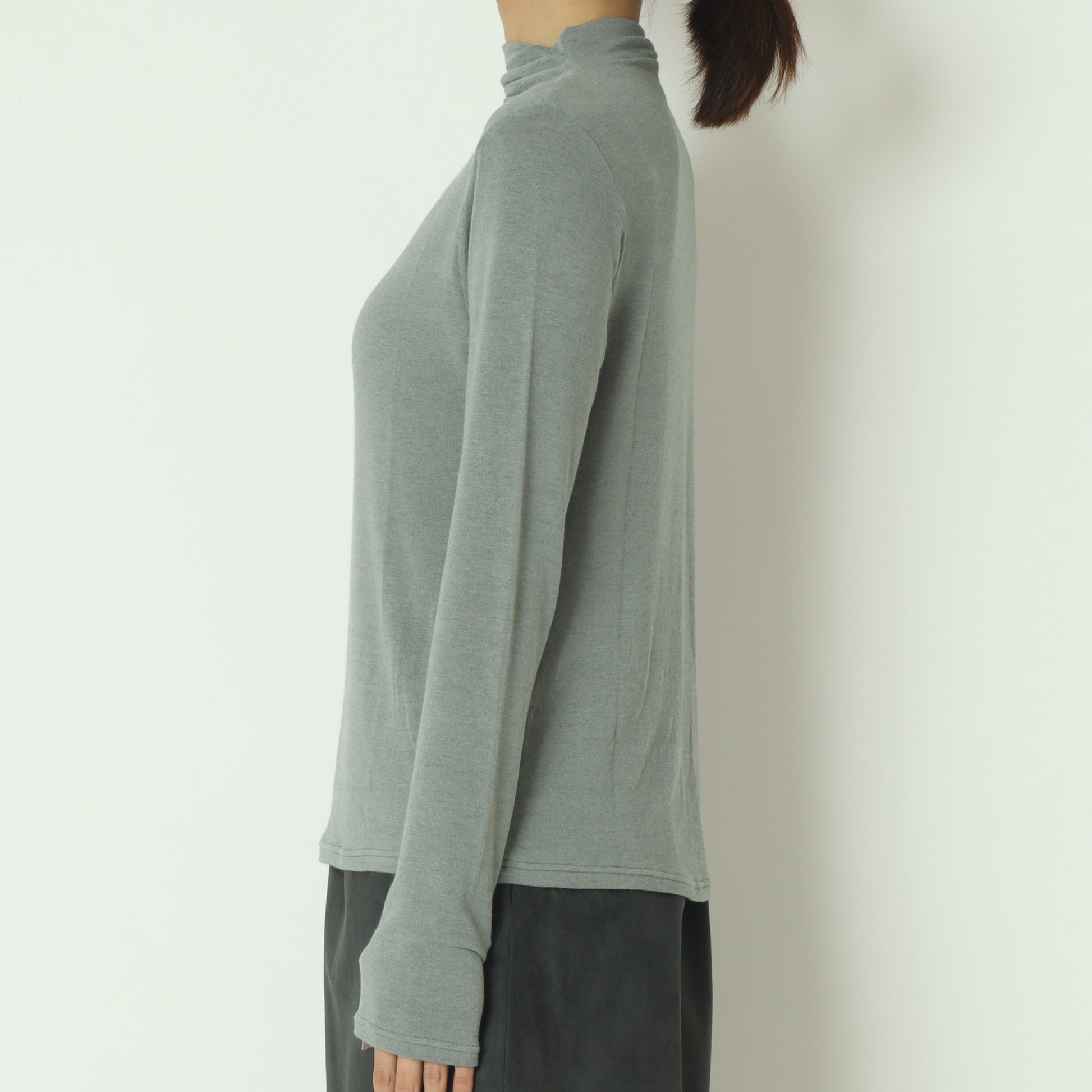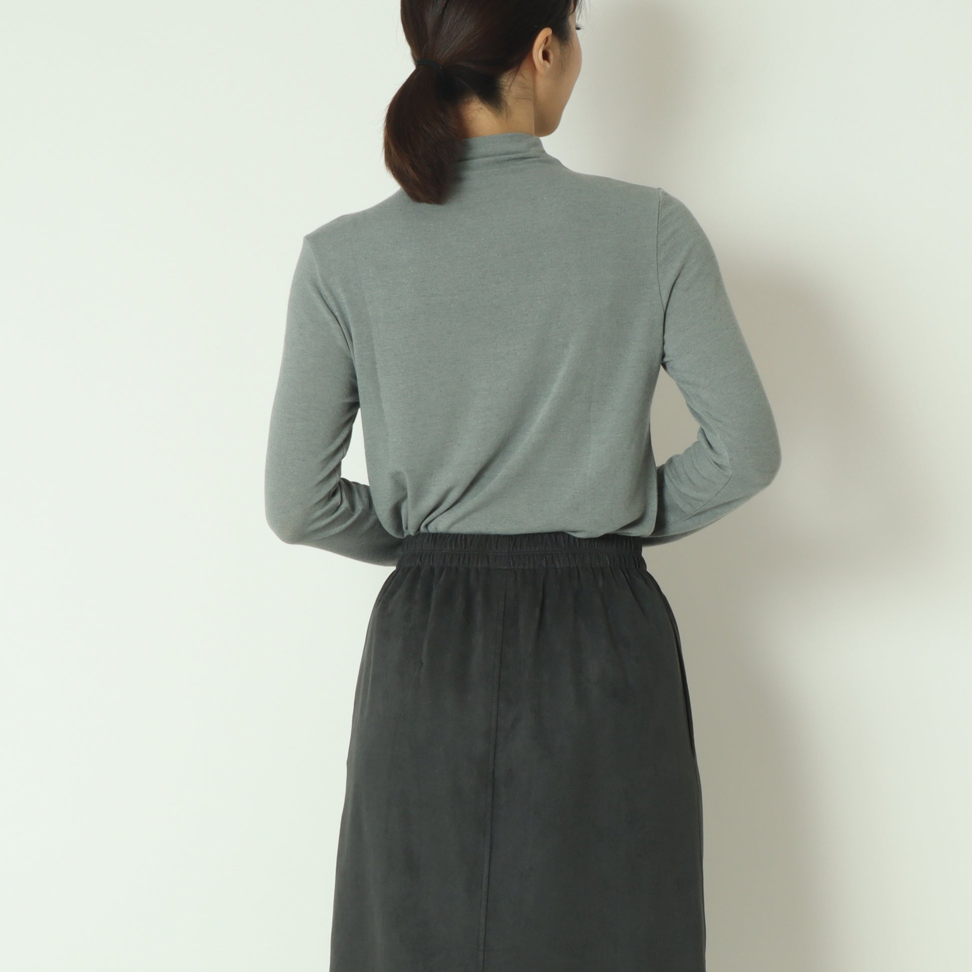短めのネックで顔周りがすっきりしてみえるモックネックインナー。