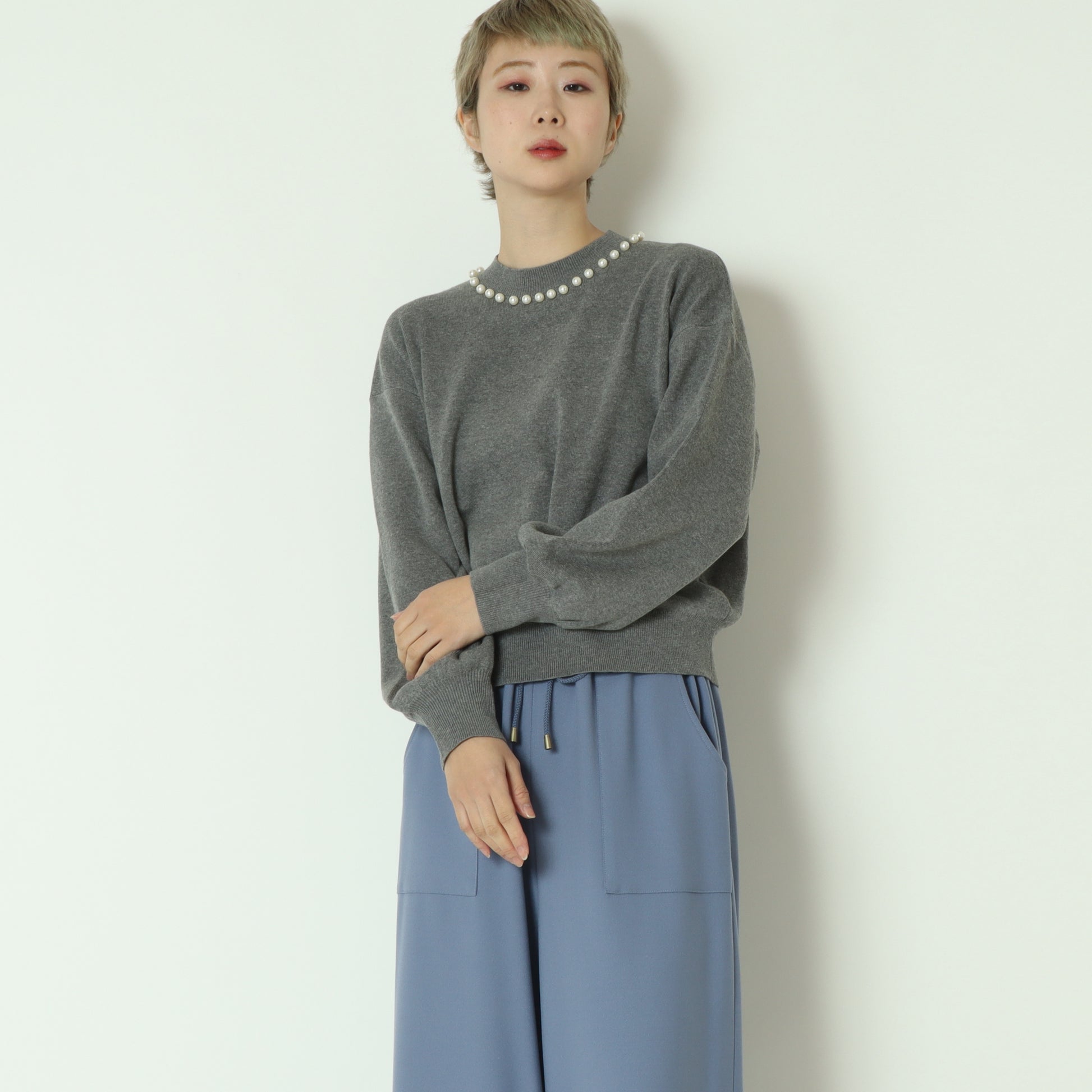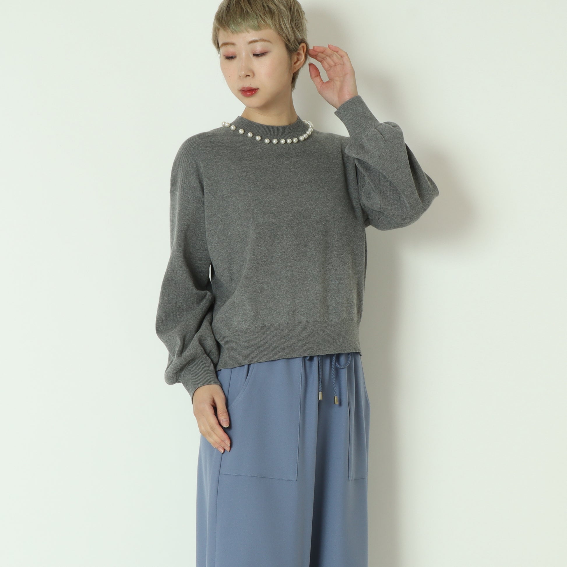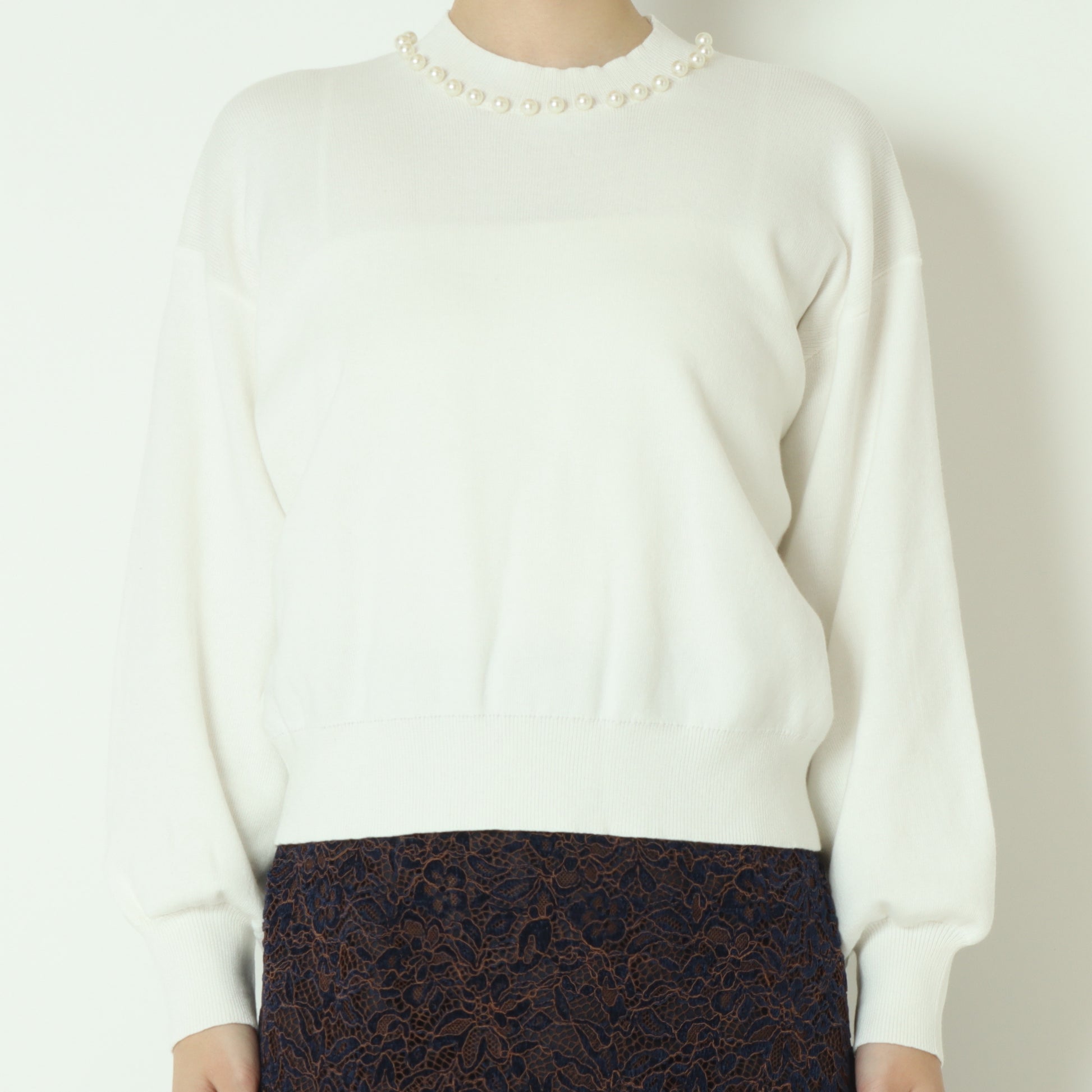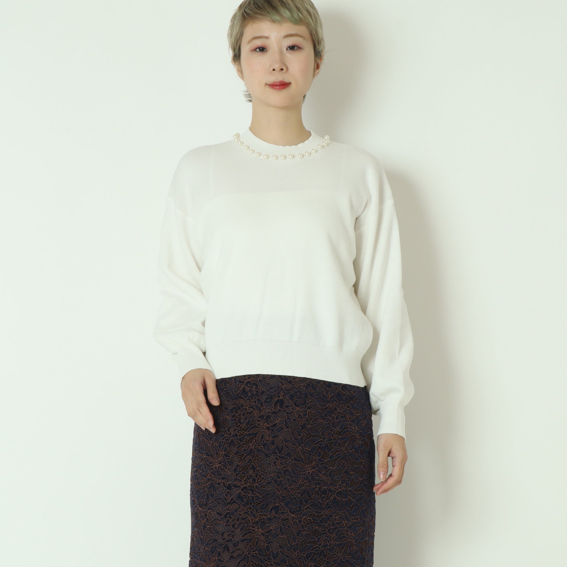 フォーマルな場面や日常でもお使いいただけるどんなボトムスも合わせやすい万能ニット。