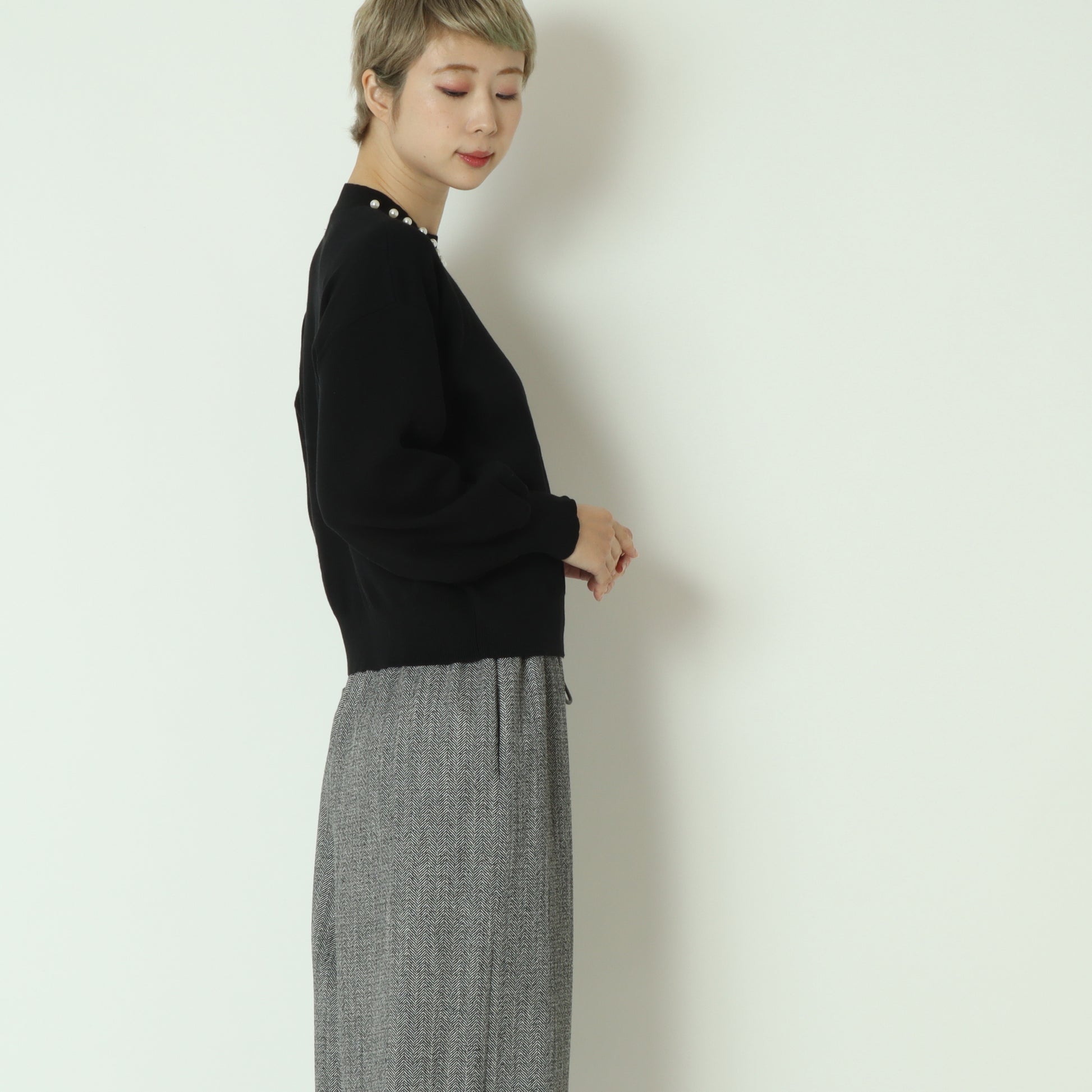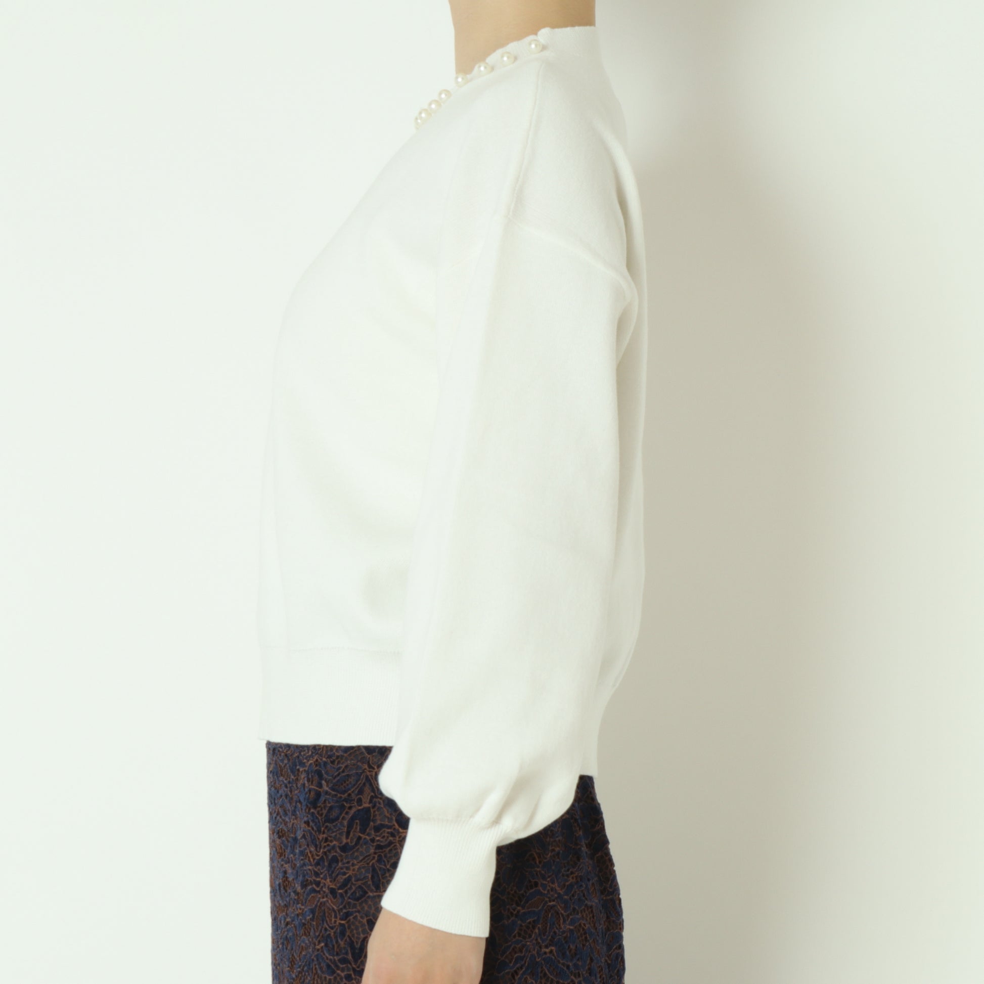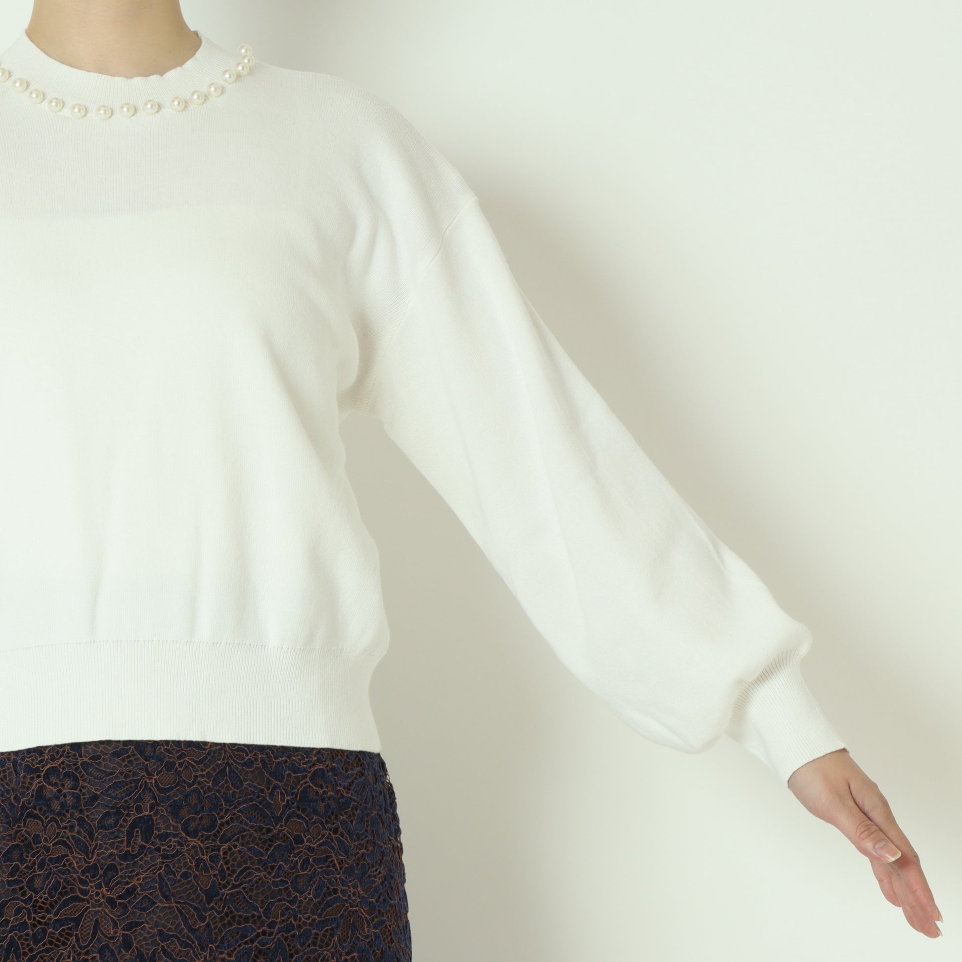 フォーマルな場面や日常でもお使いいただけるどんなボトムスも合わせやすい万能ニット。