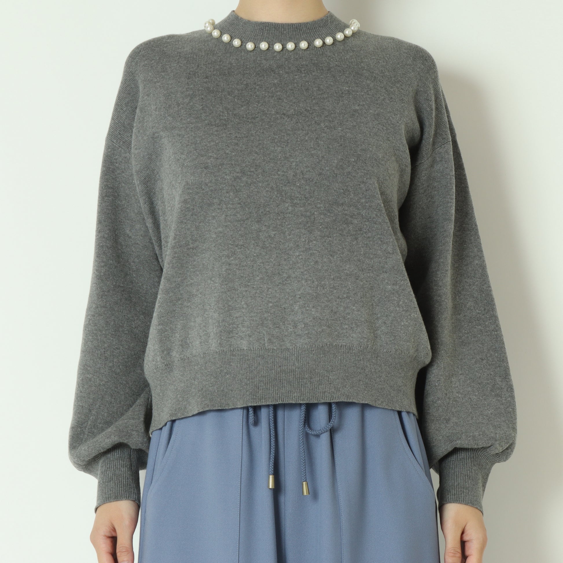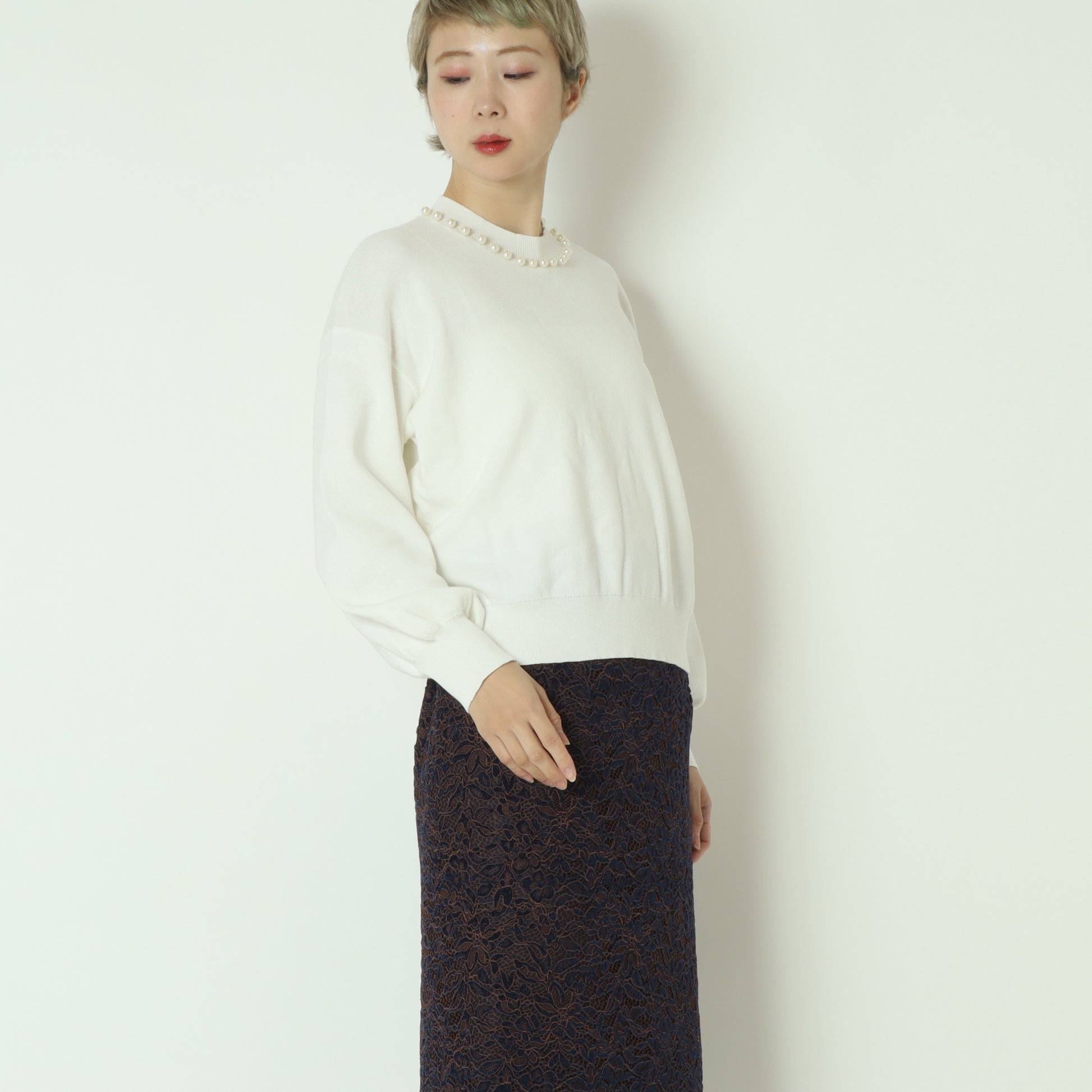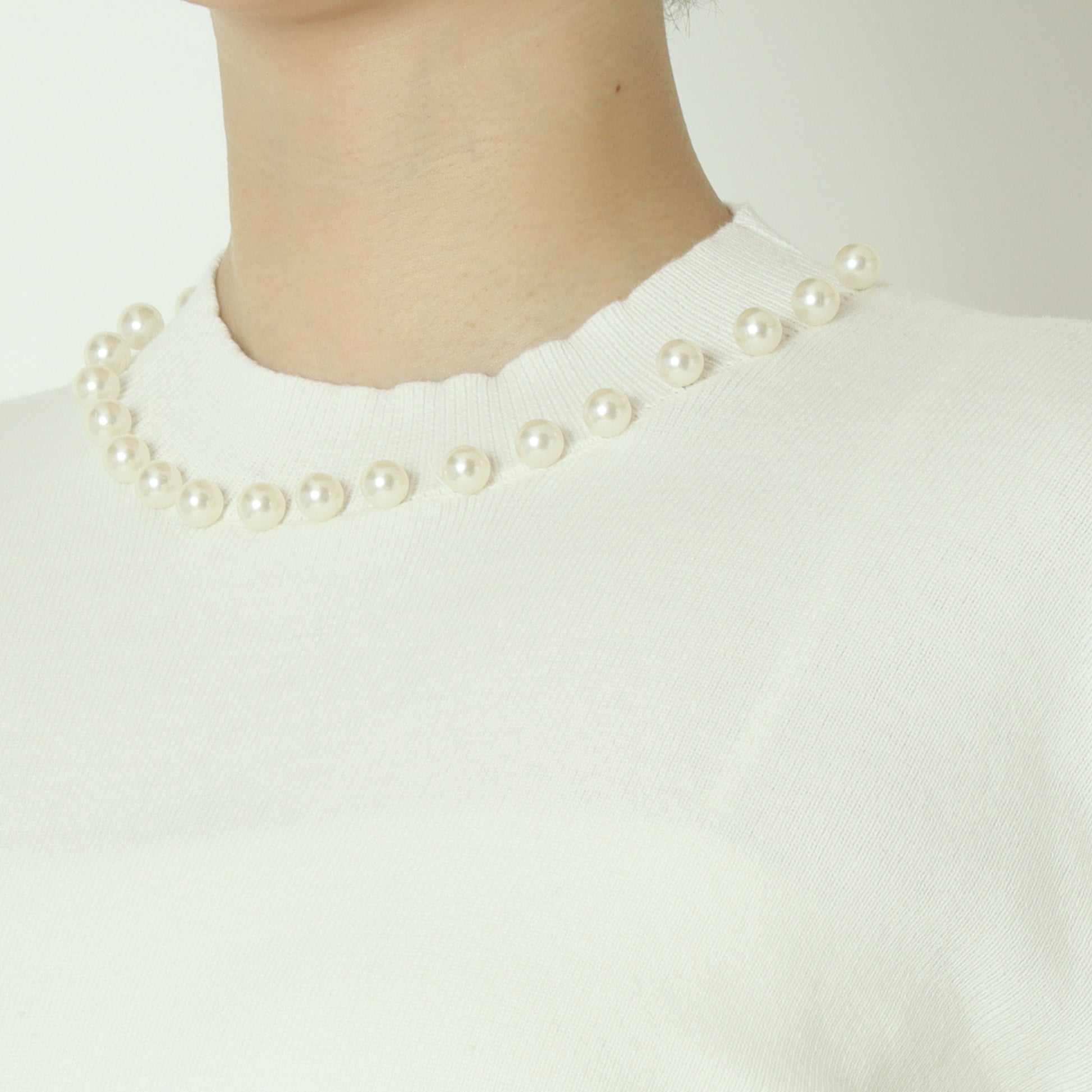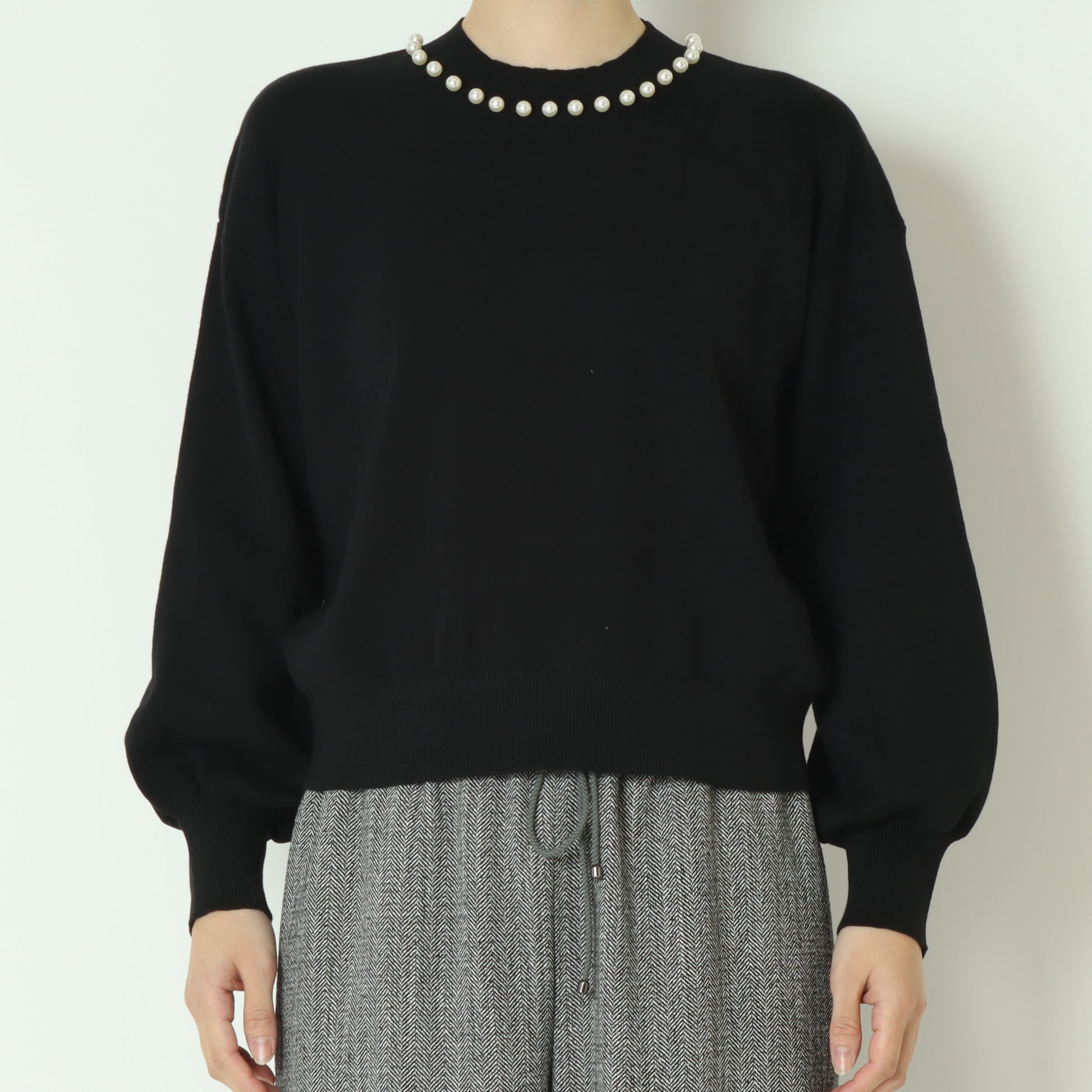 フォーマルな場面や日常でもお使いいただけるどんなボトムスも合わせやすい万能ニット。