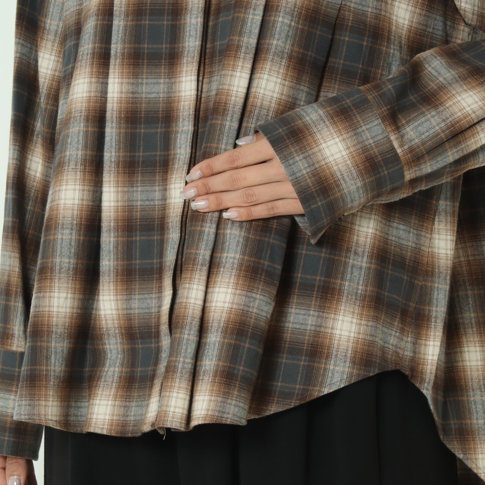 女性らしさを兼ね備えた大人のチェックシャツ。