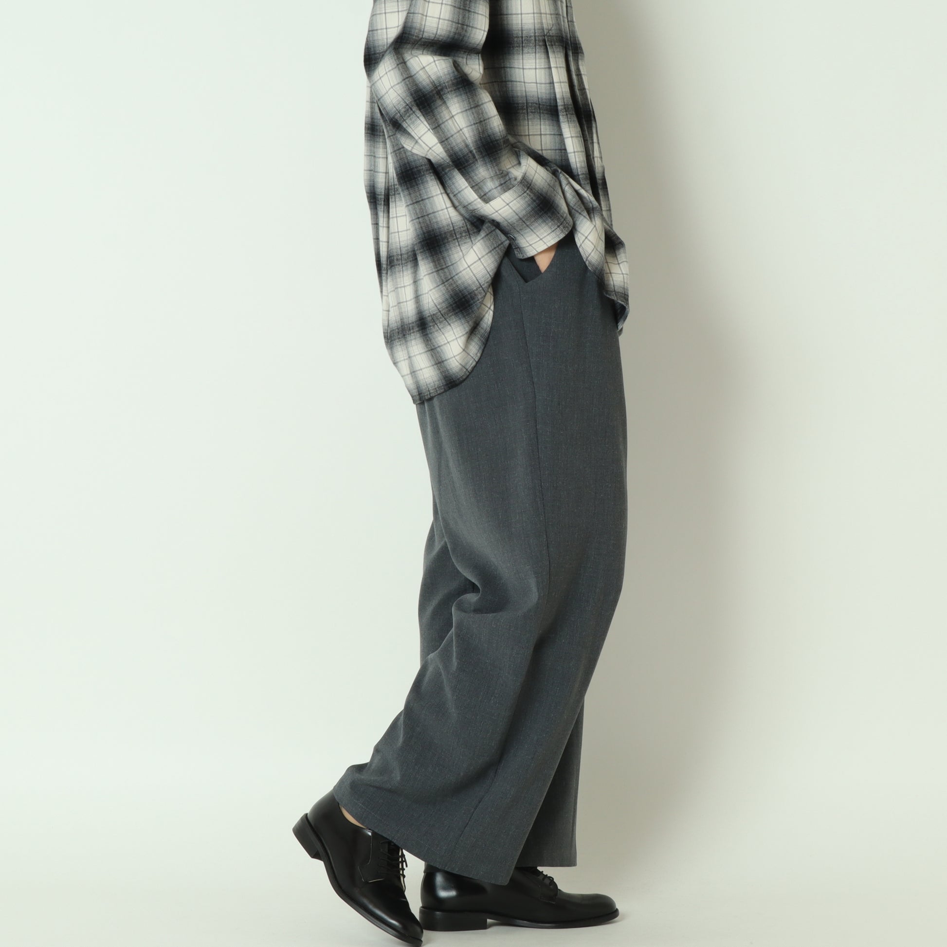 シーズンレスで長い期間着ていただける生地を採用したタックワイドパンツ。
