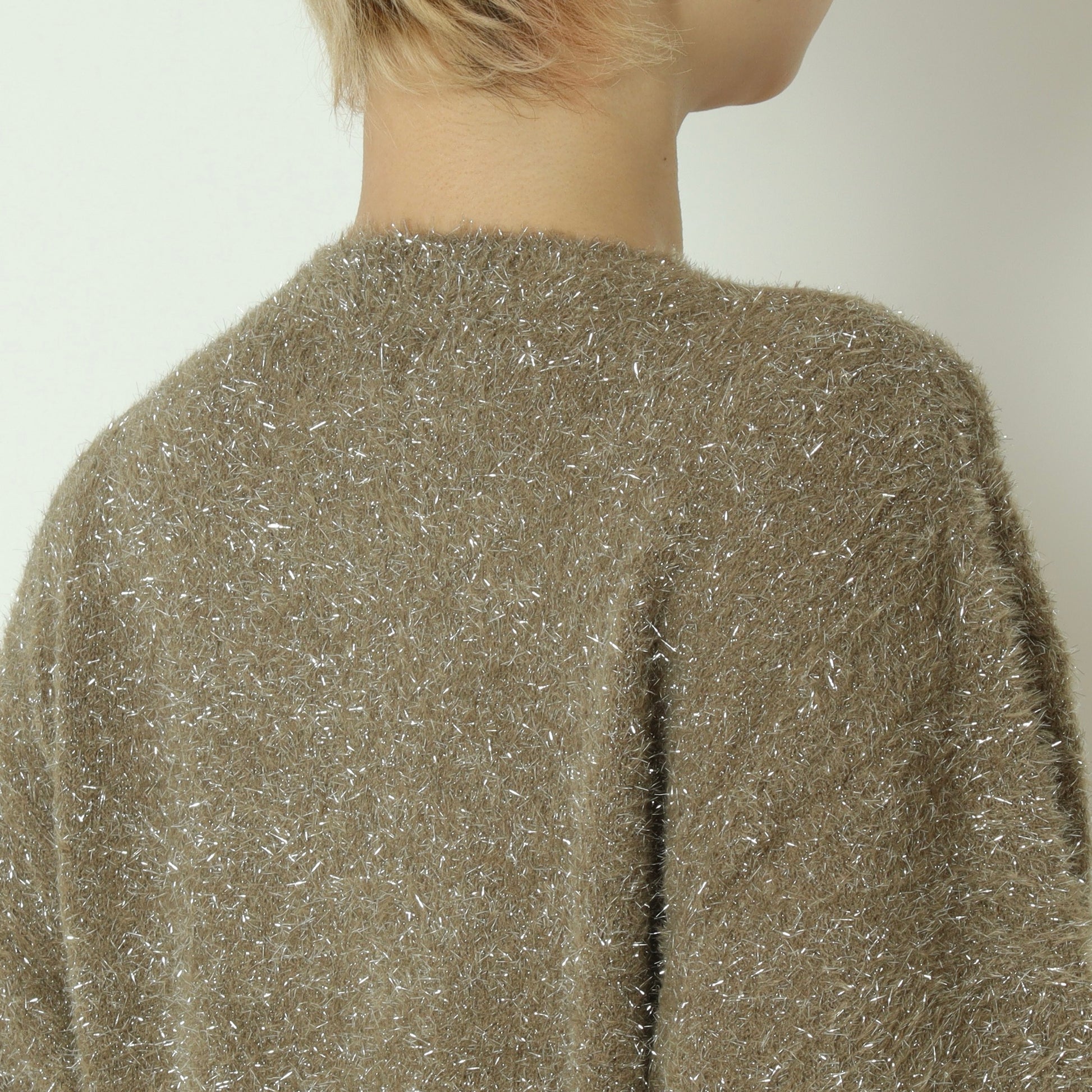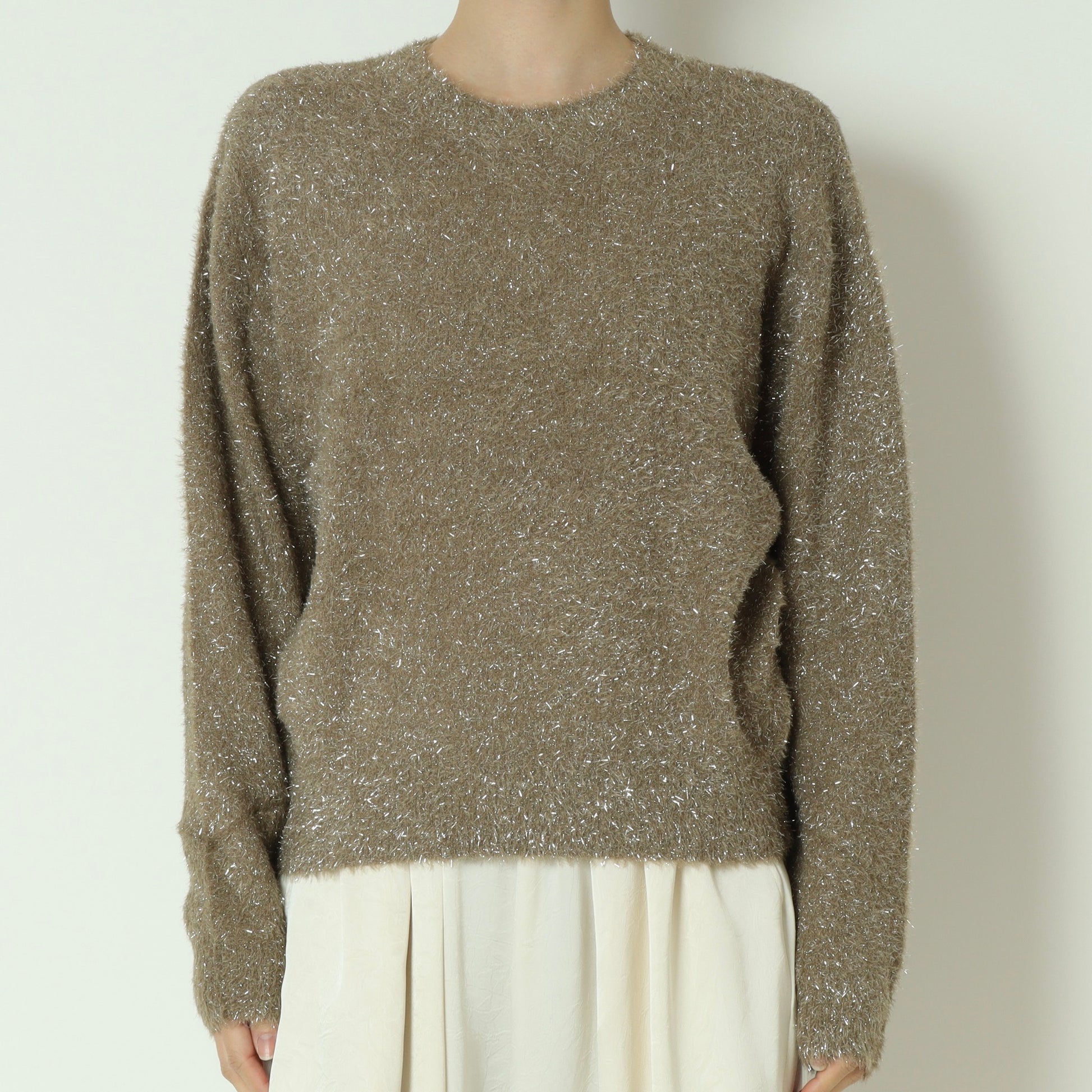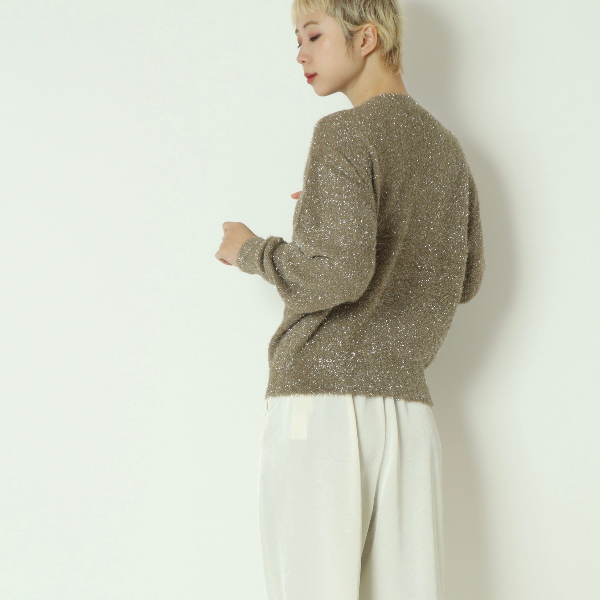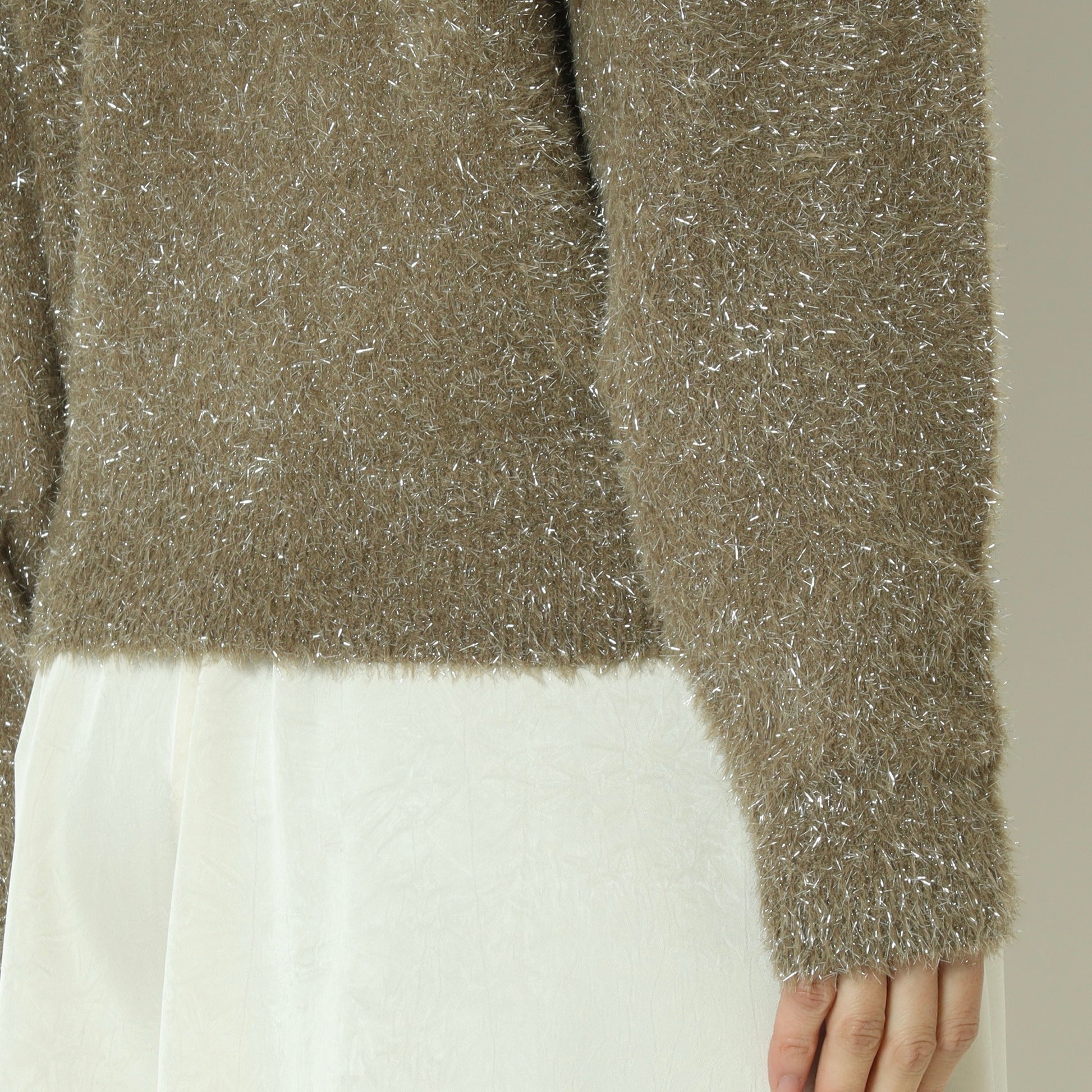 煌びやかなラメが練り込まれた糸で仕立てたラメシャギーニット。