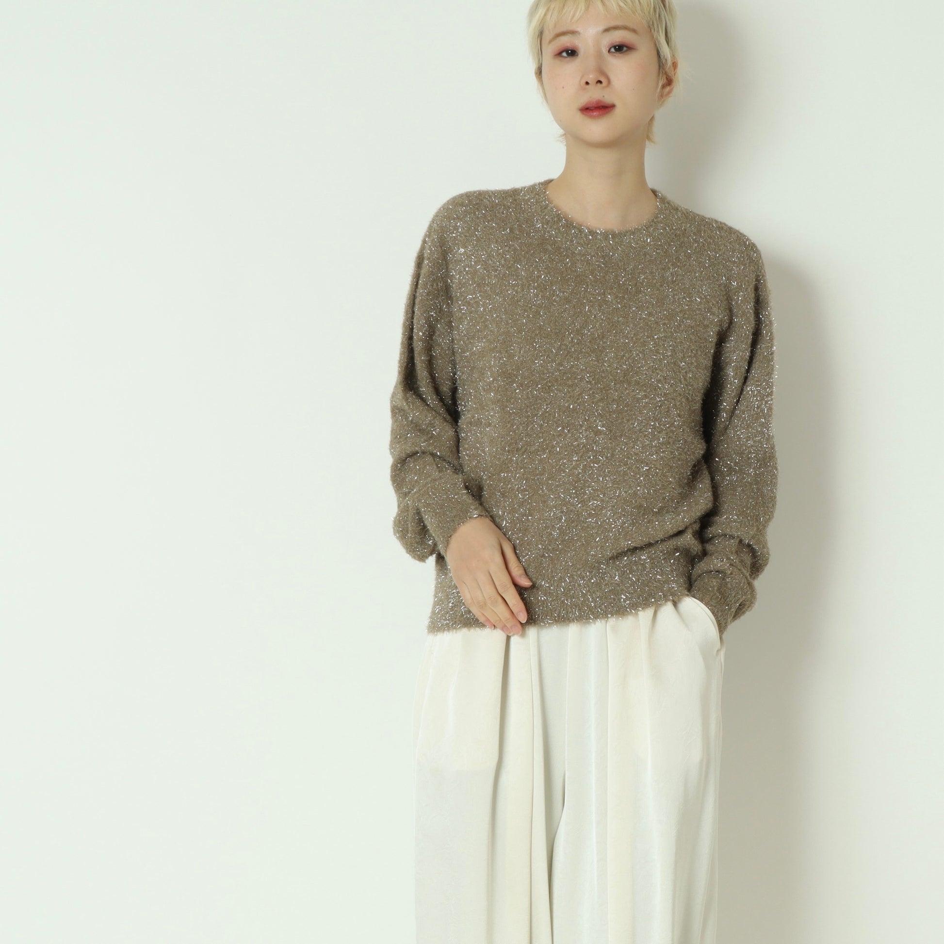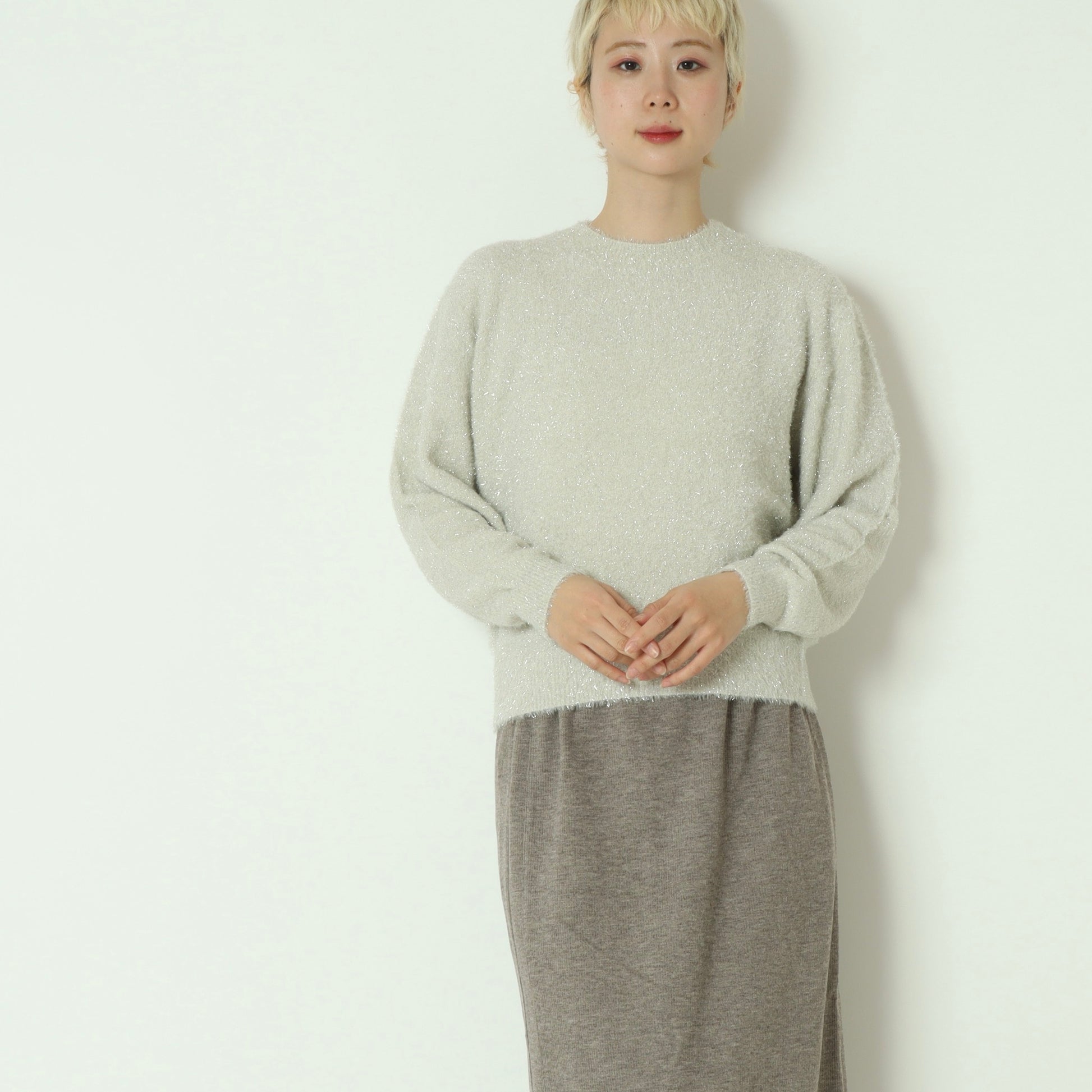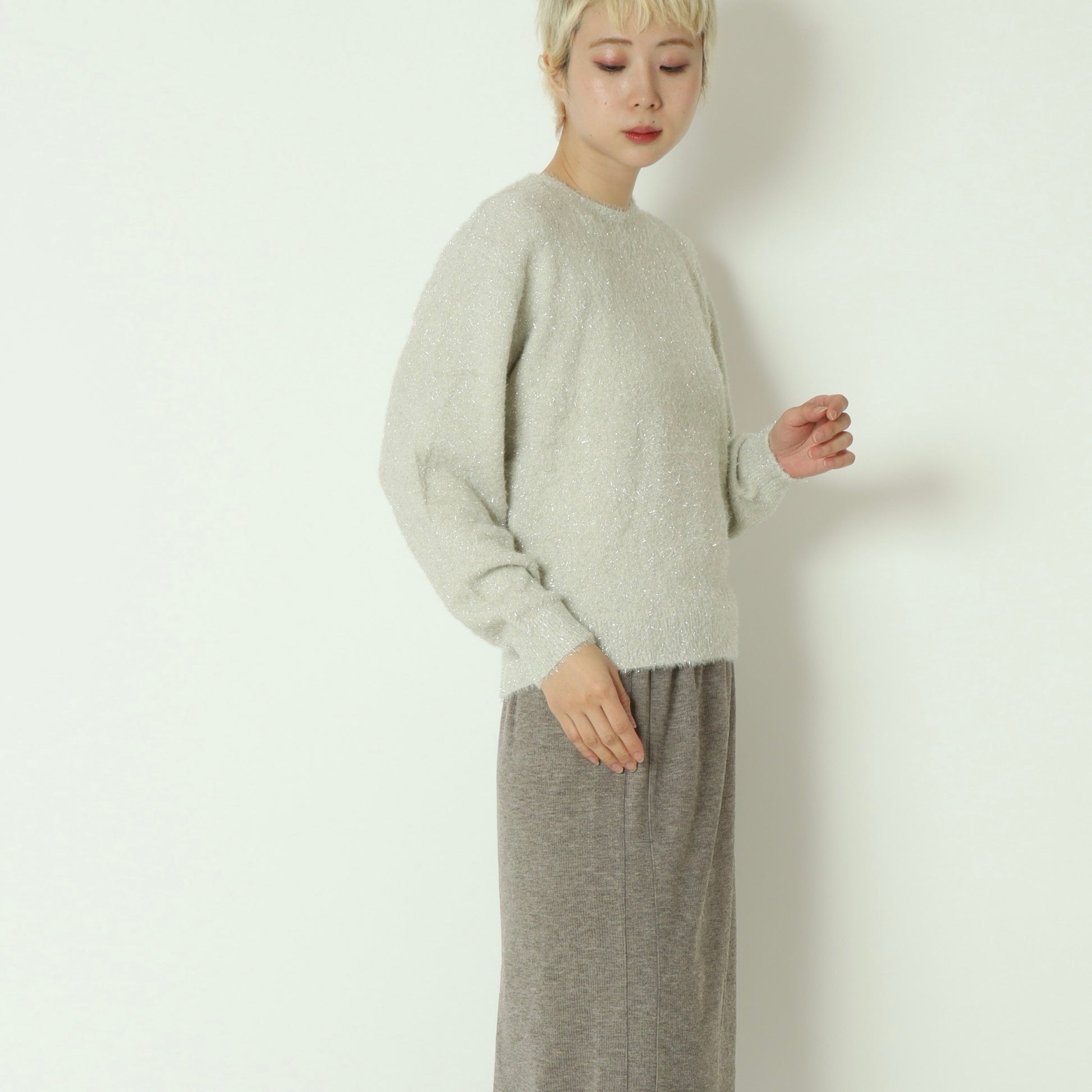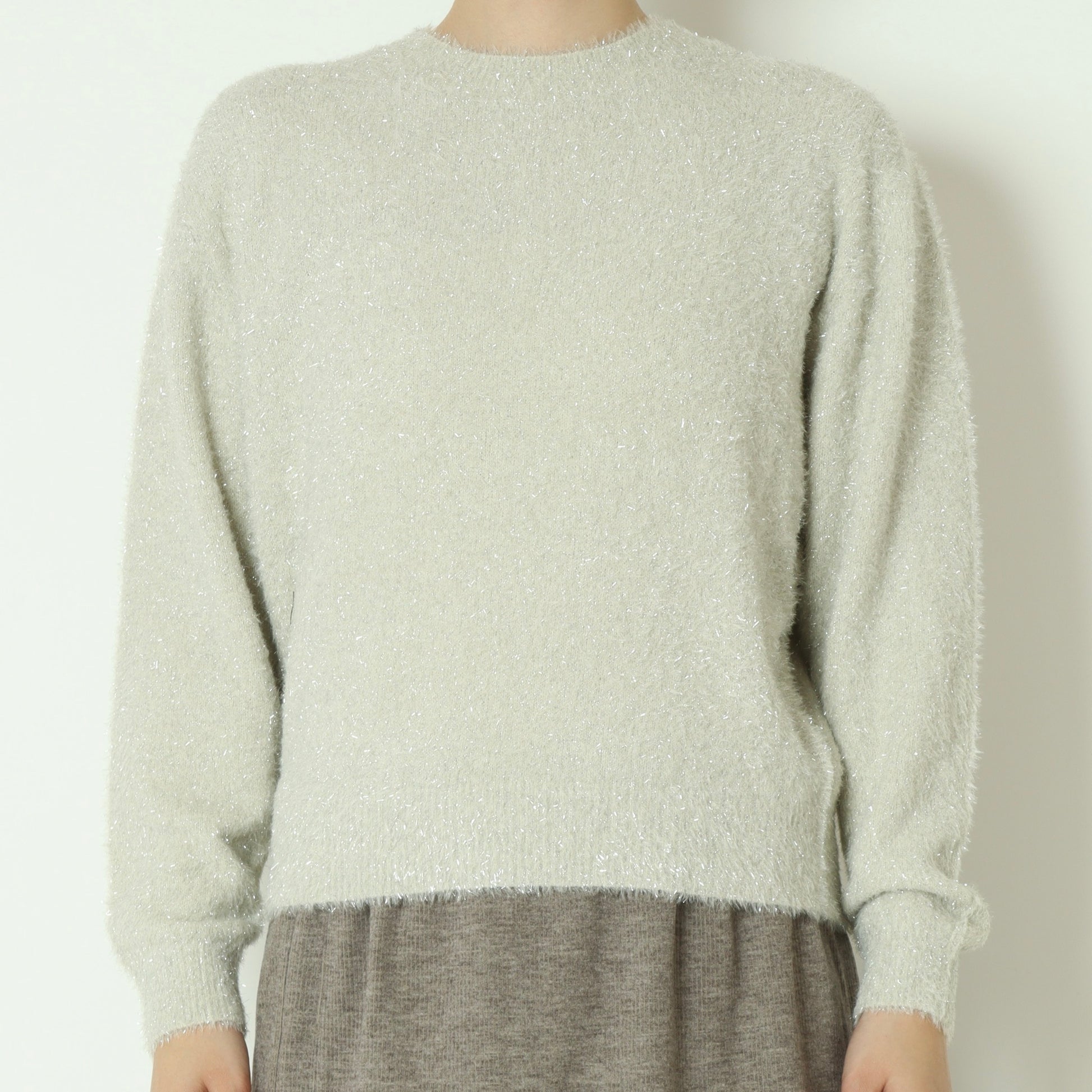 煌びやかなラメが練り込まれた糸で仕立てたラメシャギーニット。