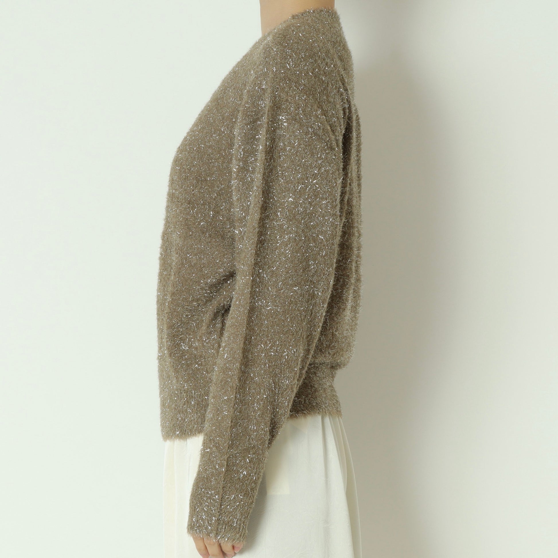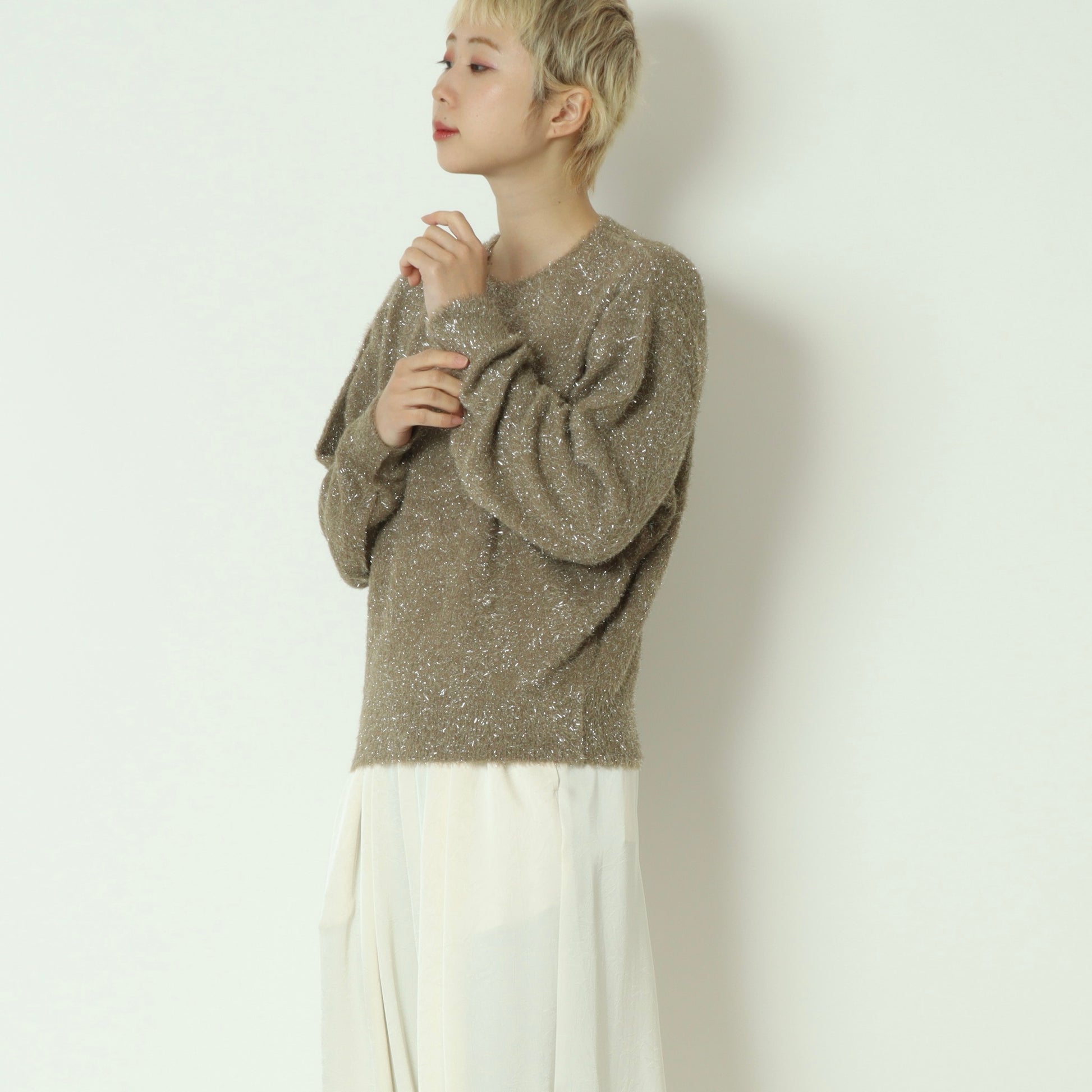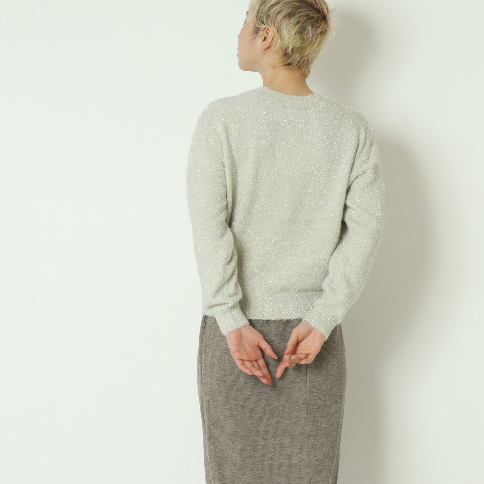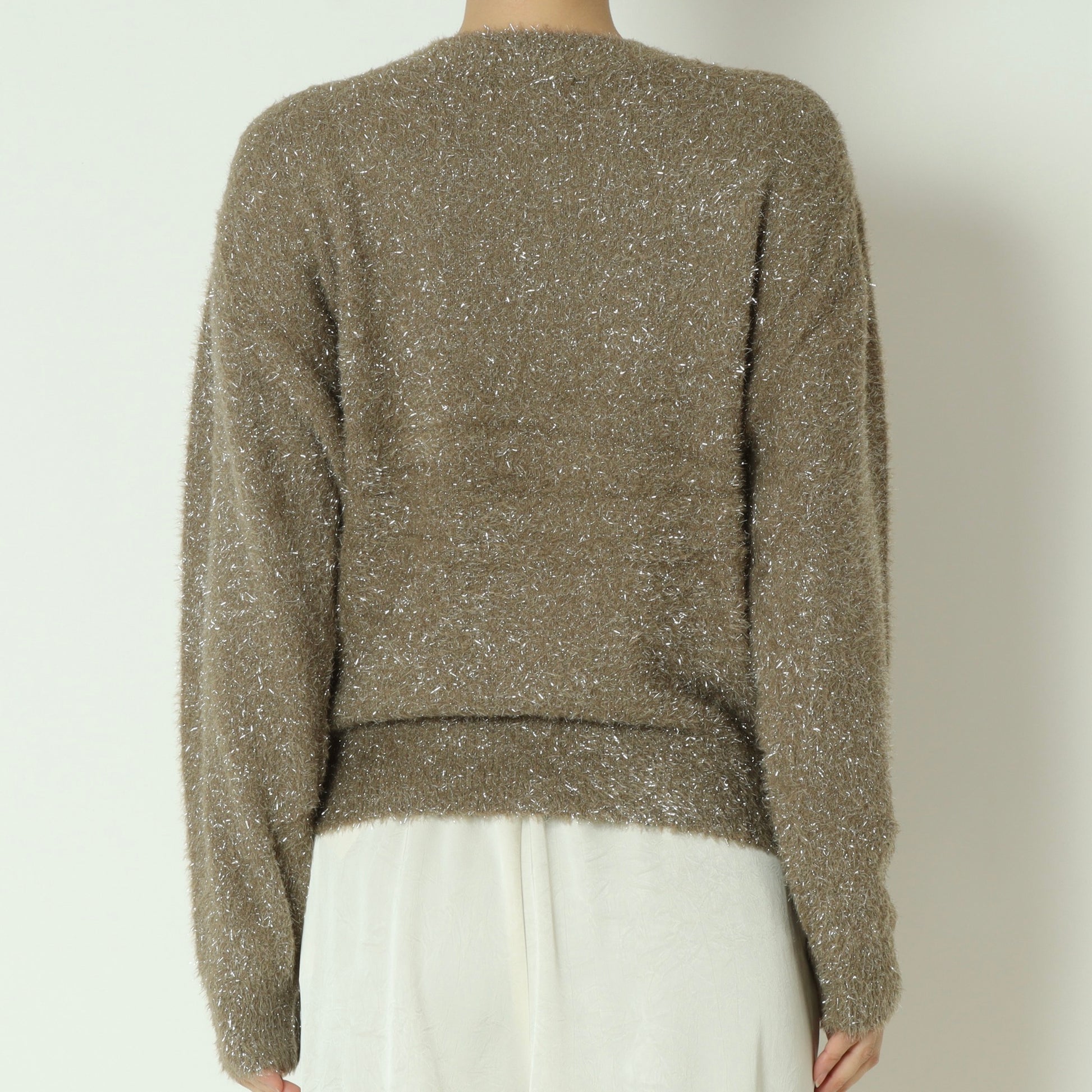 煌びやかなラメが練り込まれた糸で仕立てたラメシャギーニット。