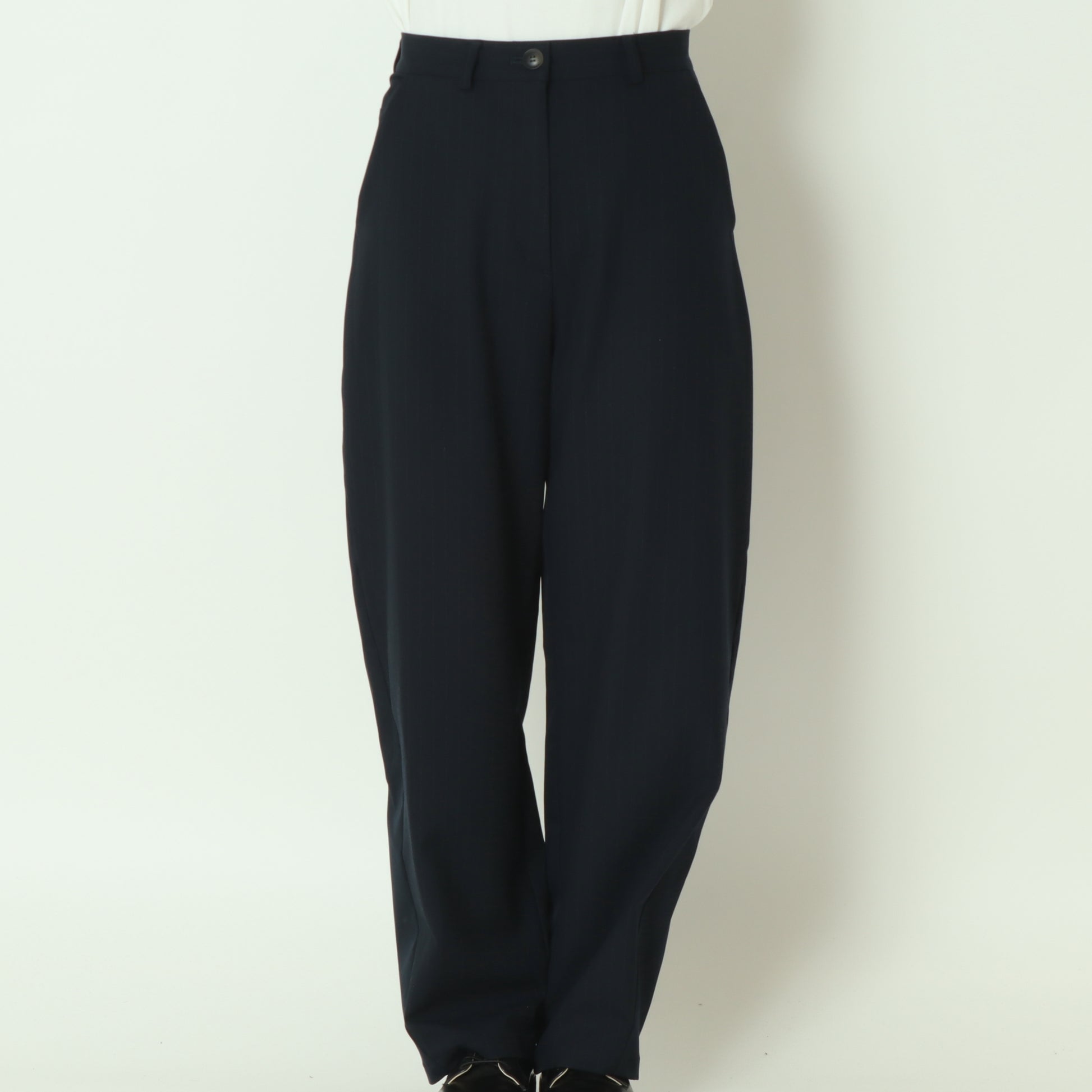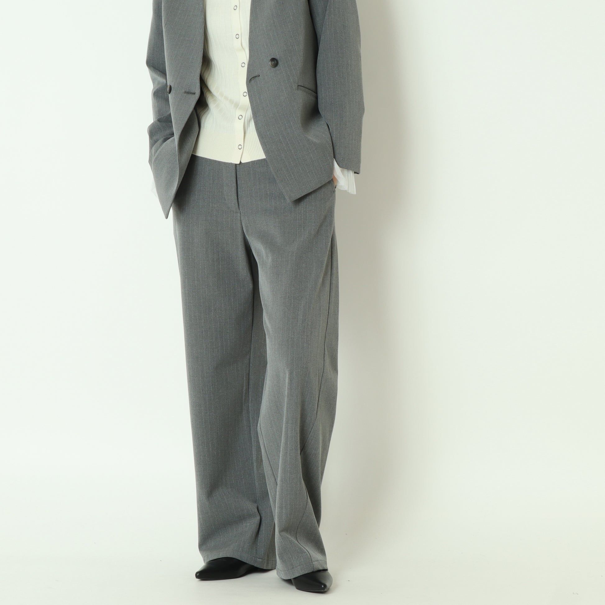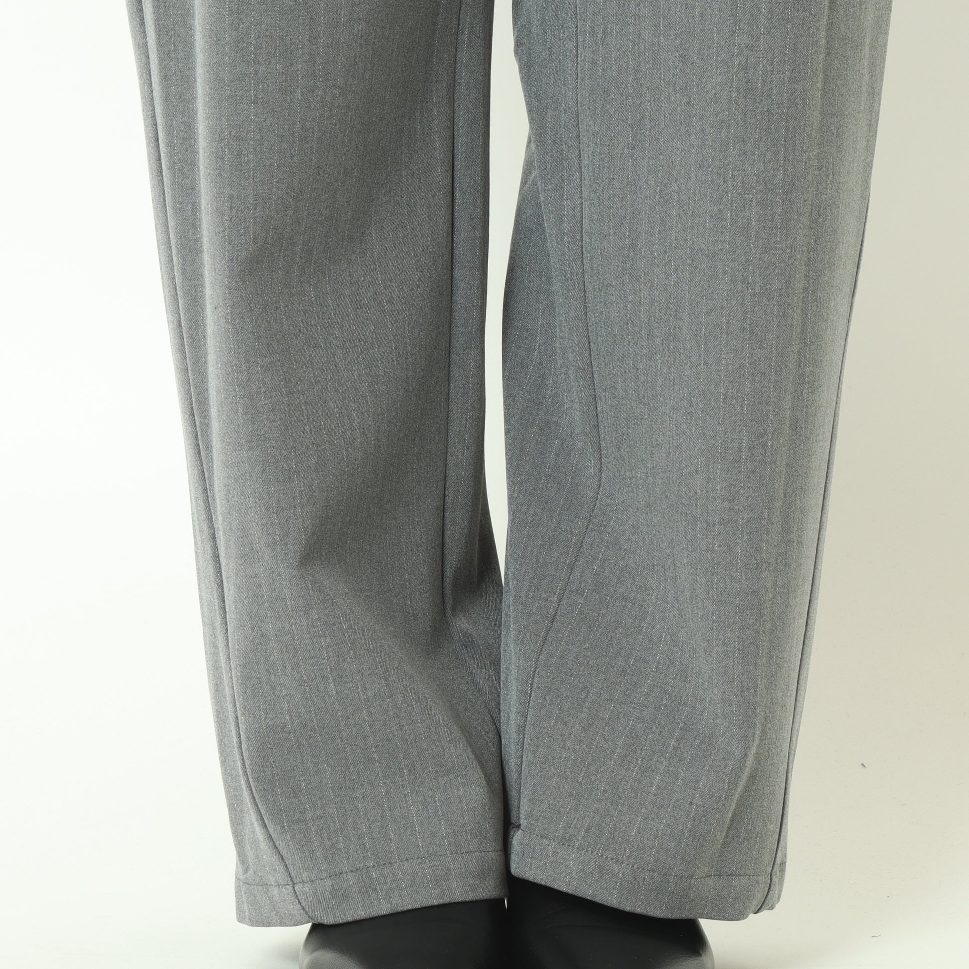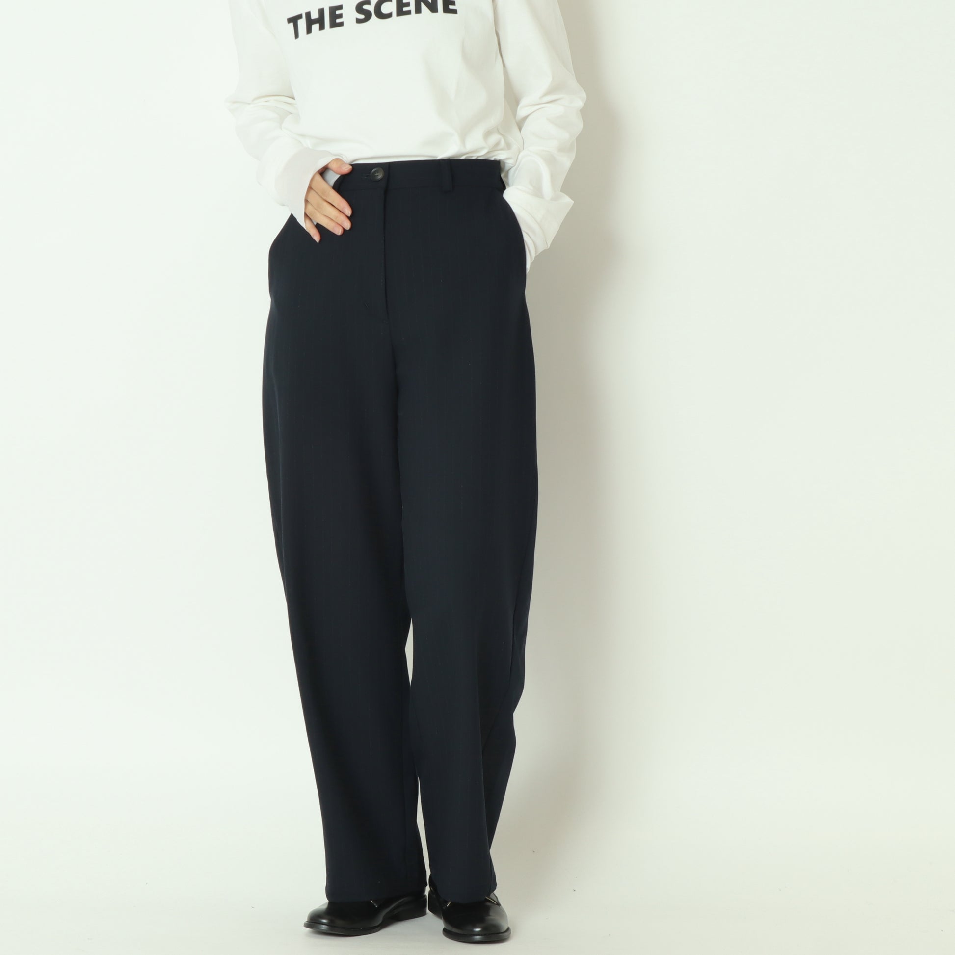 デイリーからフォーマルまで対応できるストライプ生地のカーブパンツ。