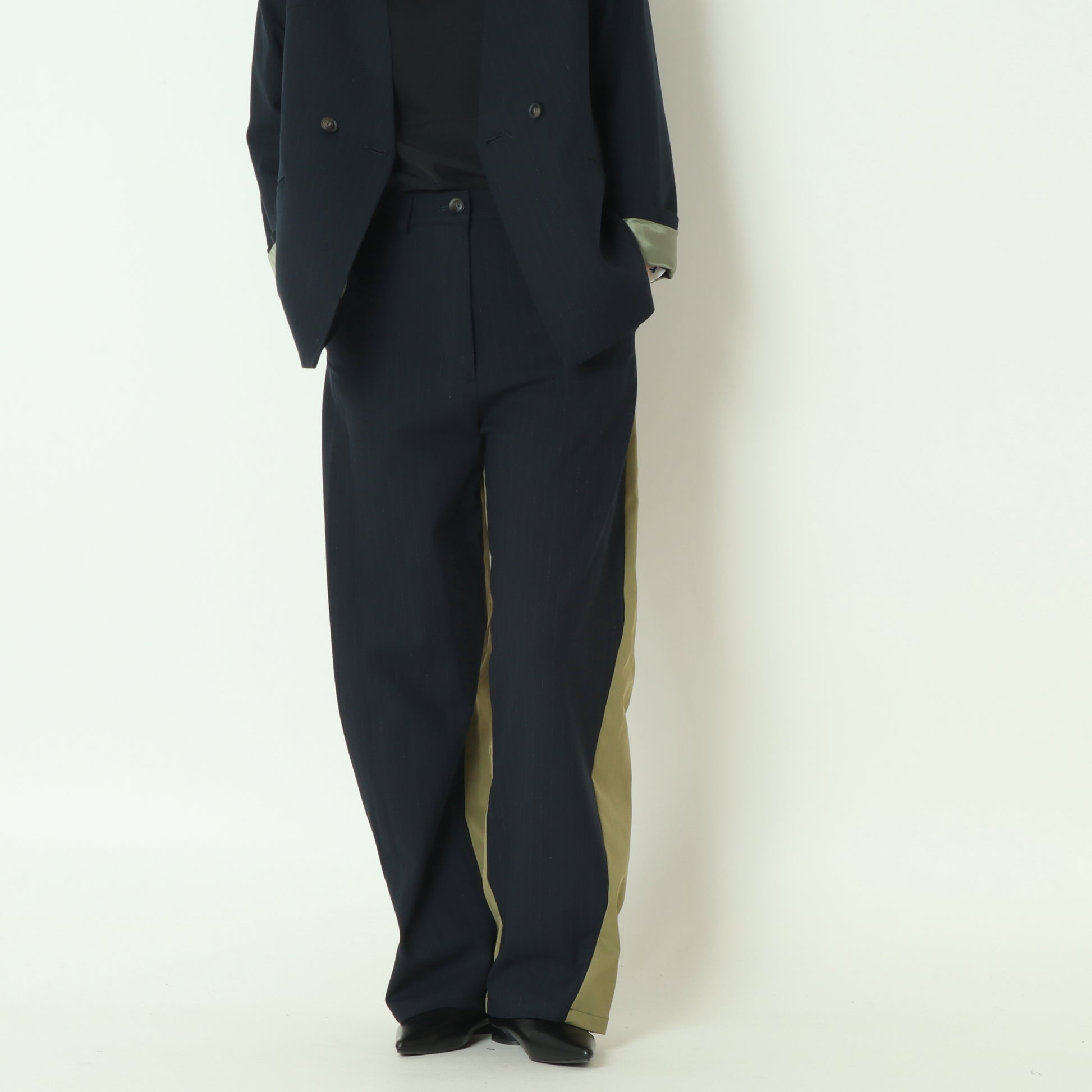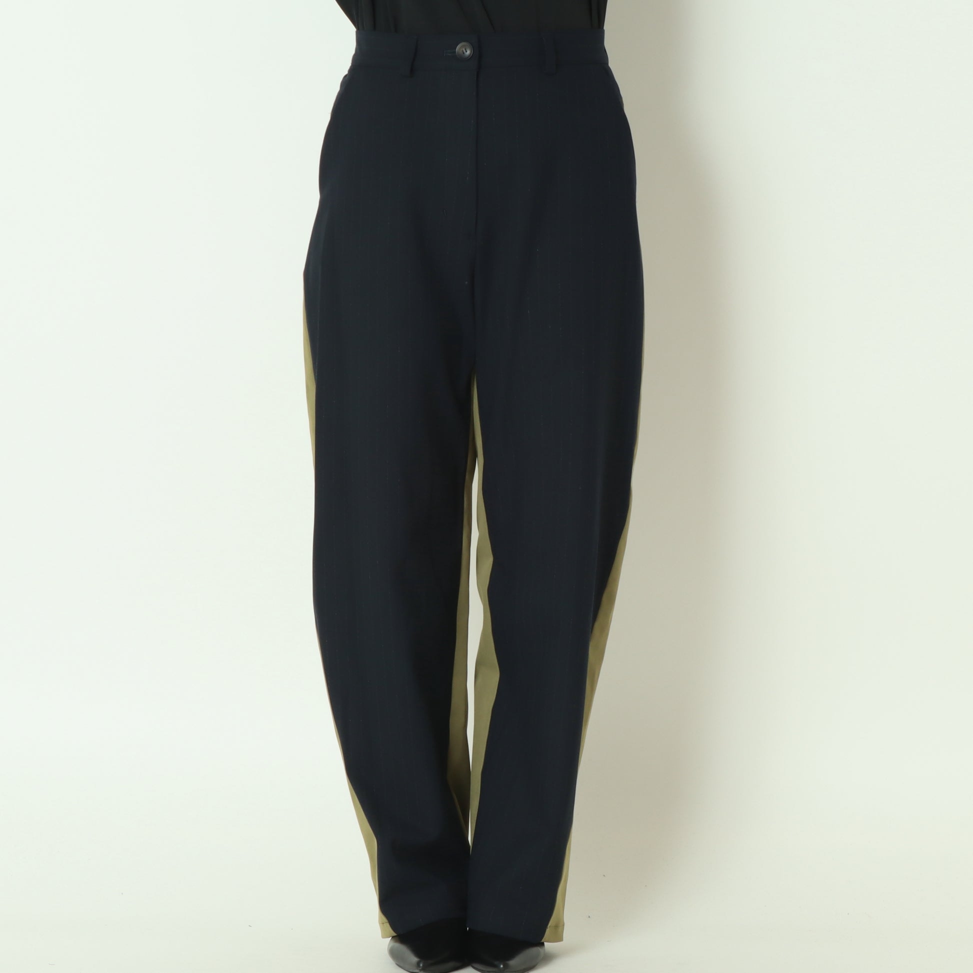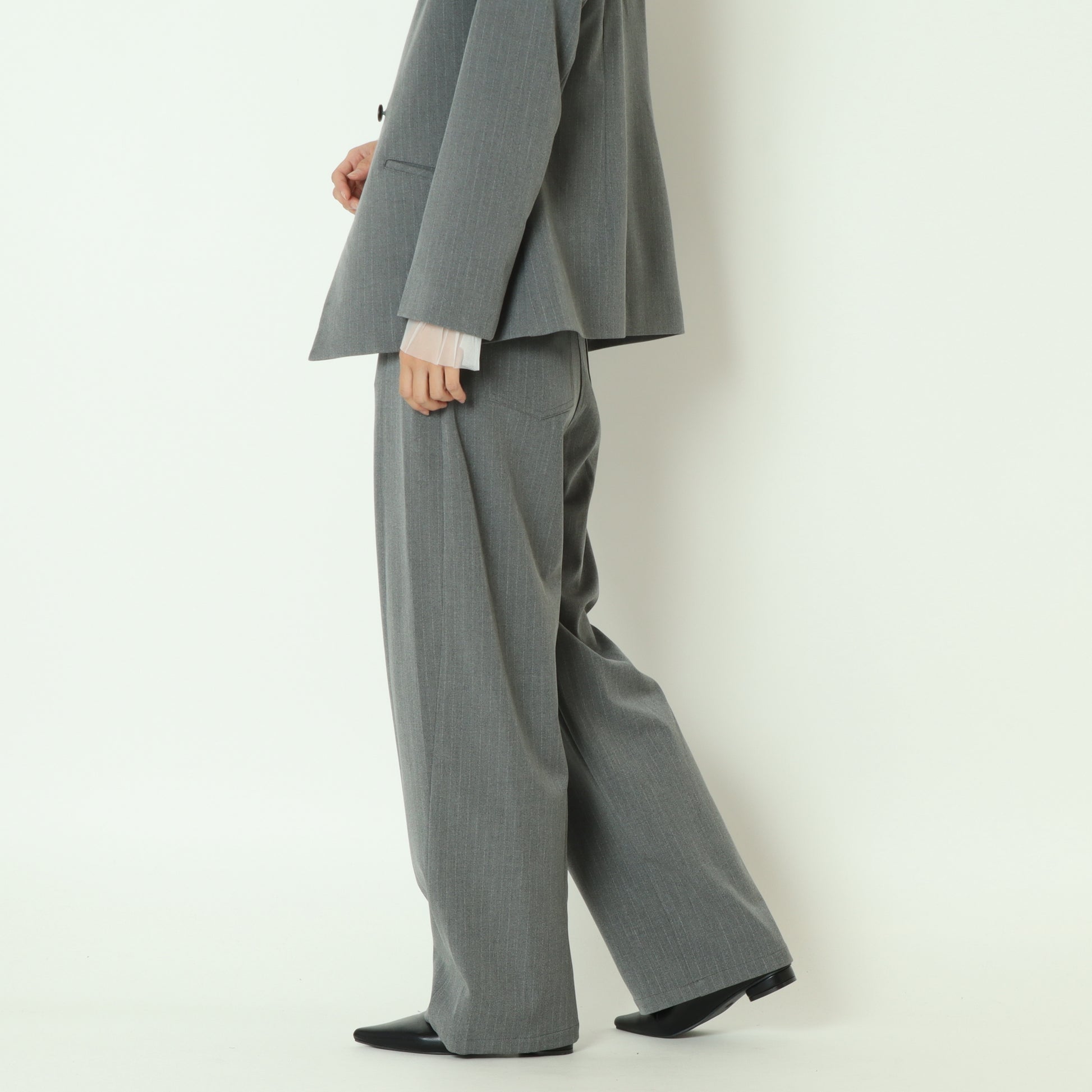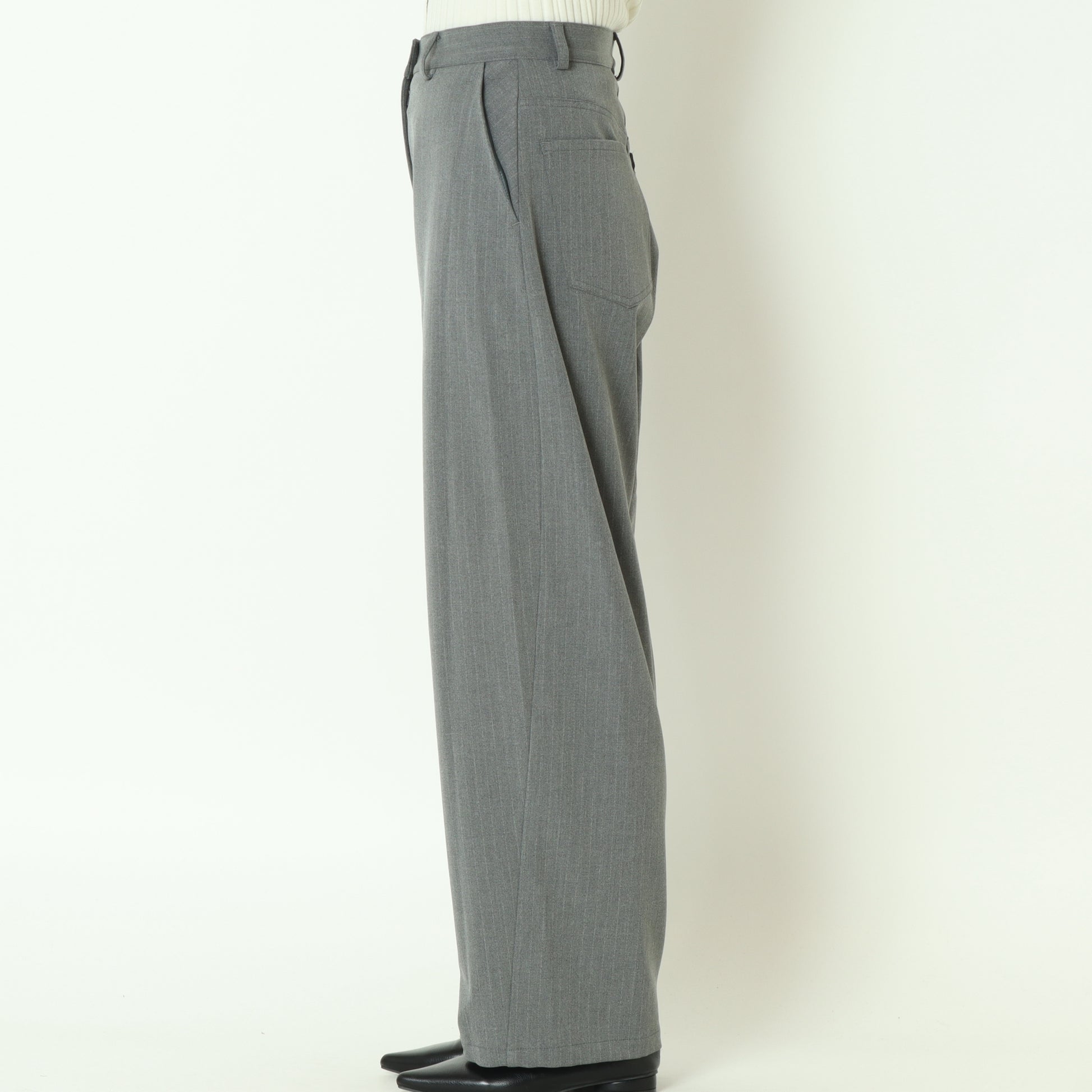 デイリーからフォーマルまで対応できるストライプ生地のカーブパンツ。