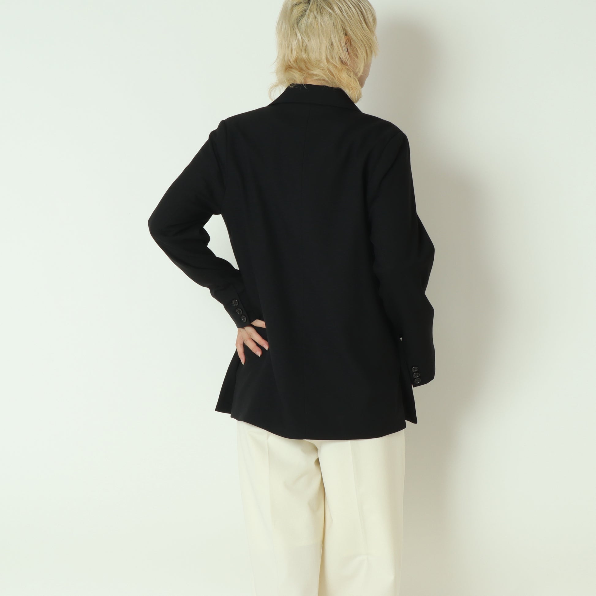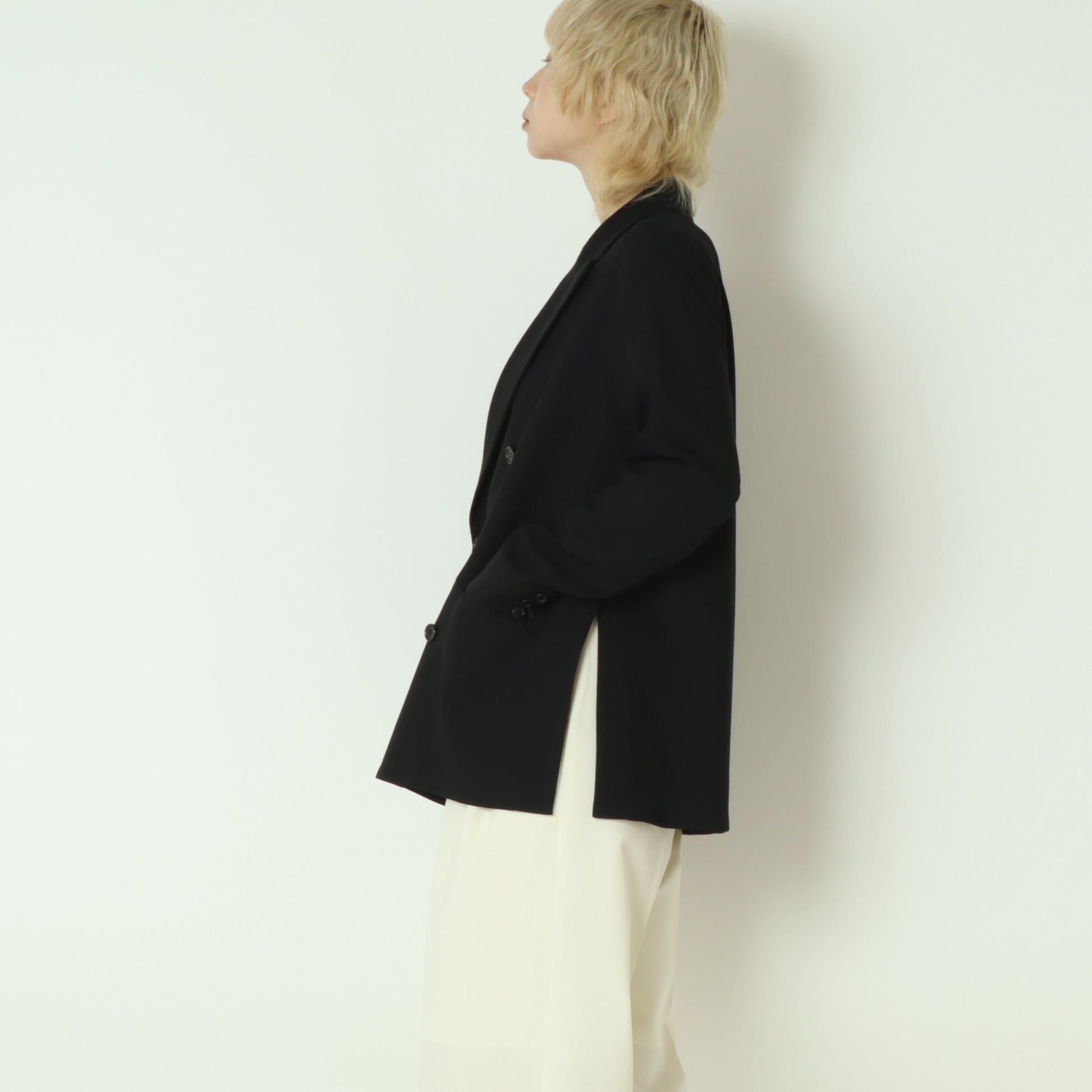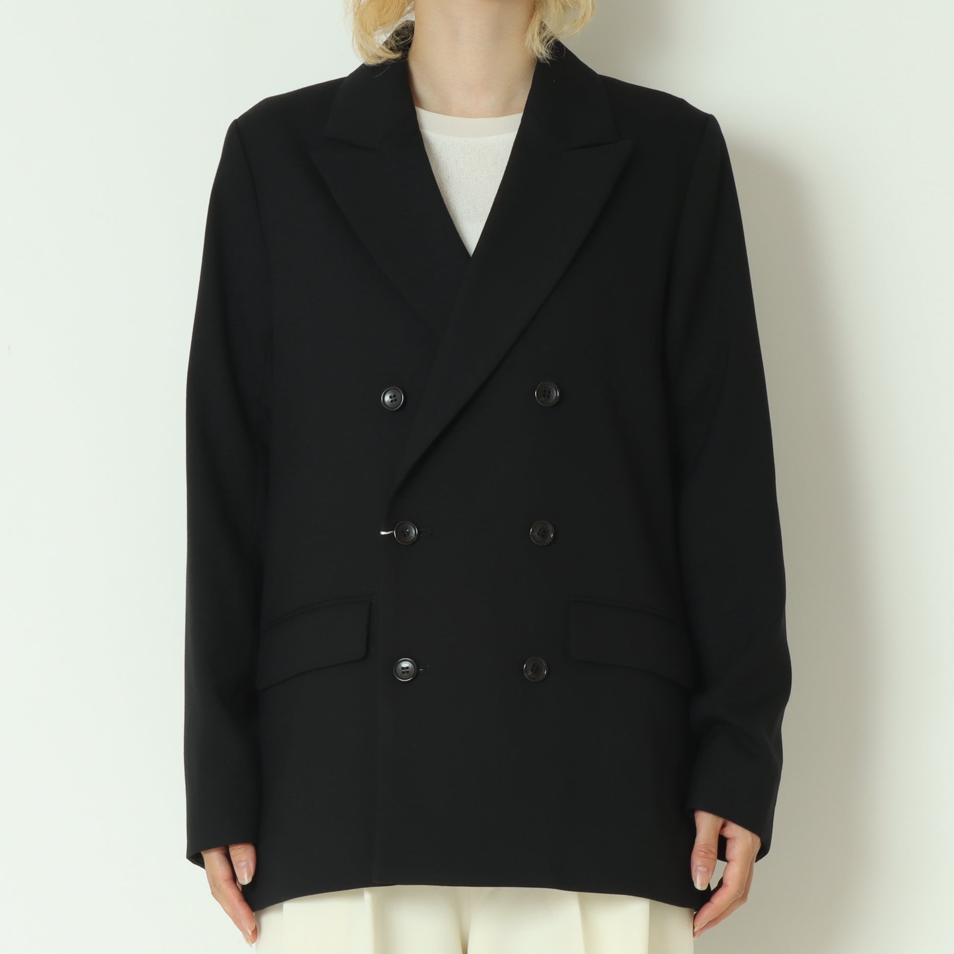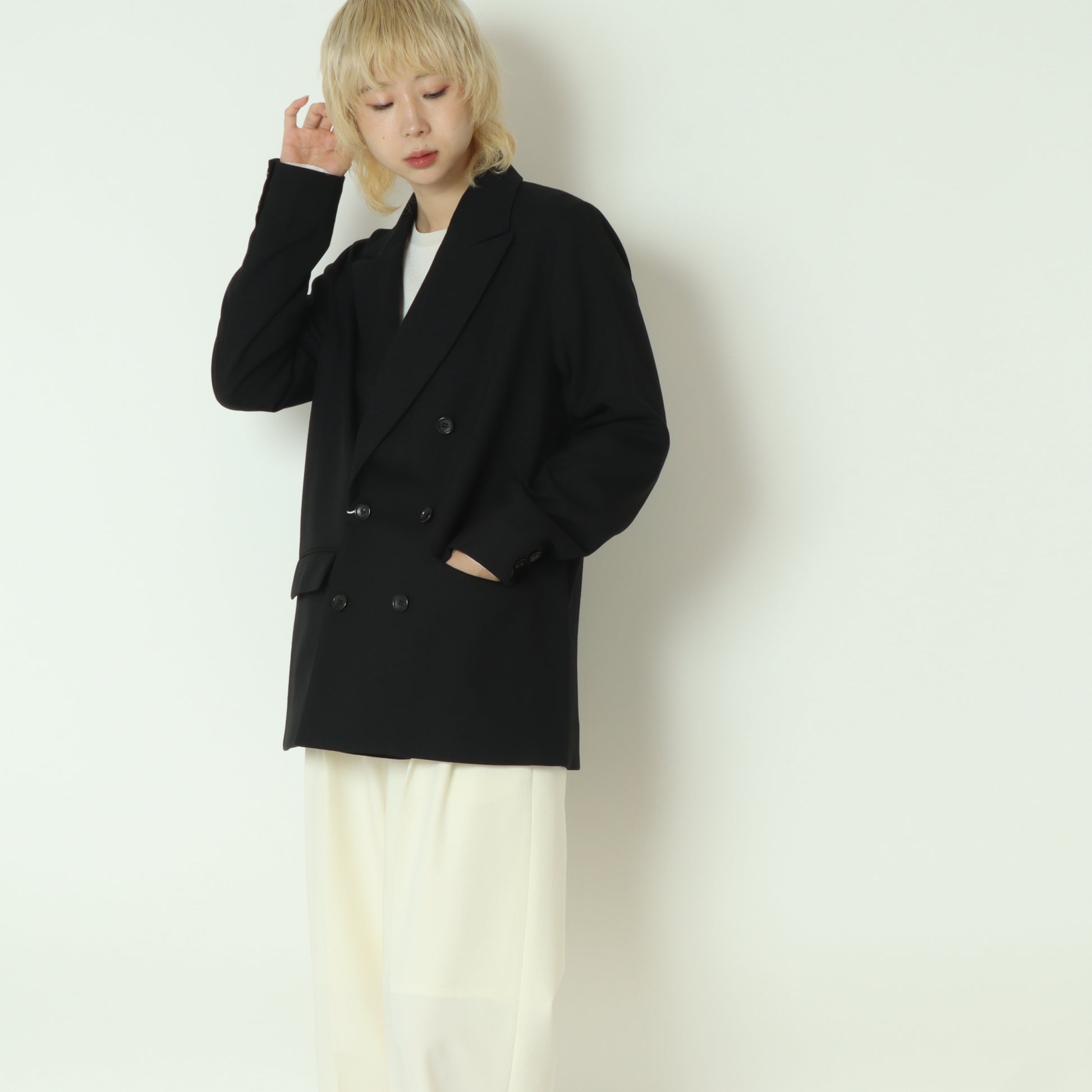 ボクシーで抜け感のあるシルエットのピークドラペルのダブルブレストジャケット。