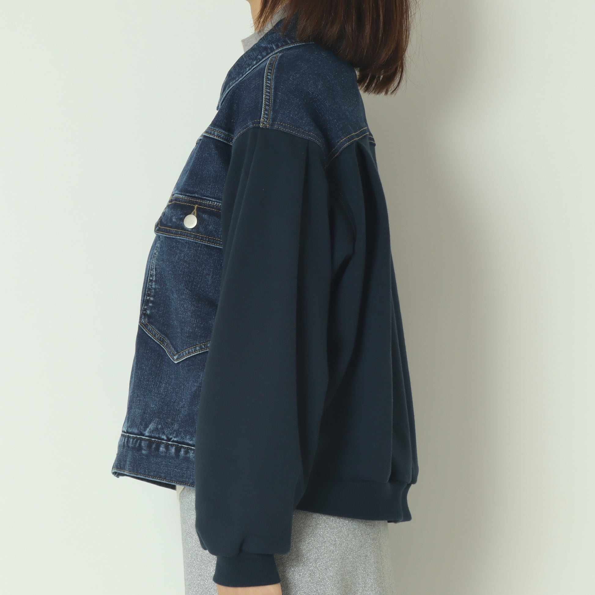 ジャージー素材を掛け合わせ、着心地を良くしたデニムジャケット。
