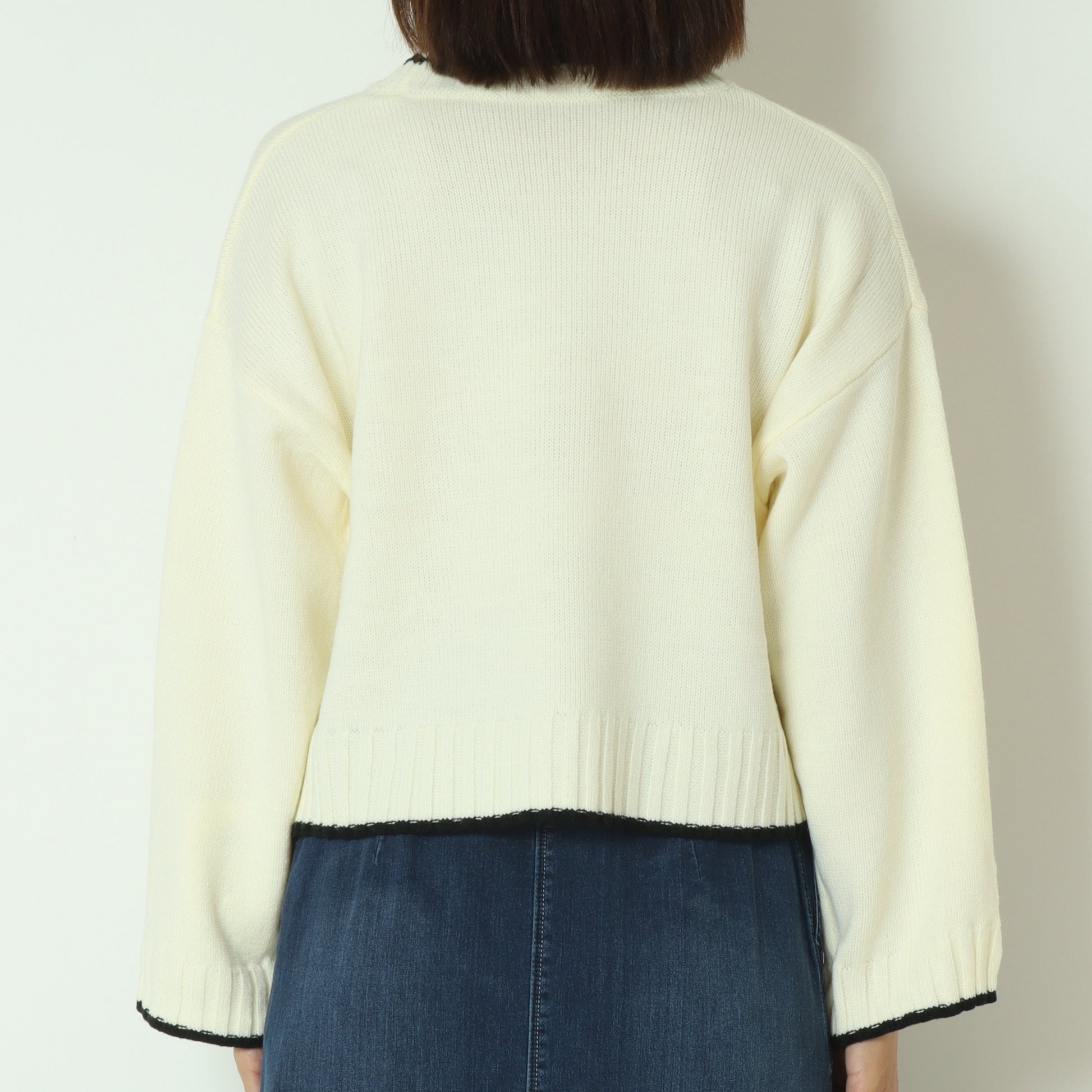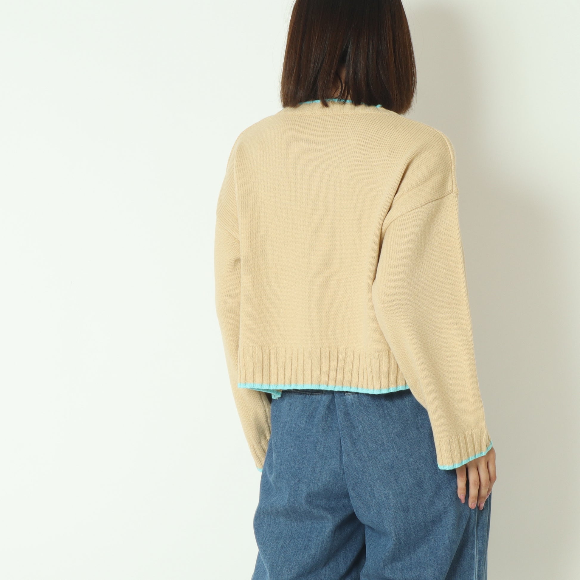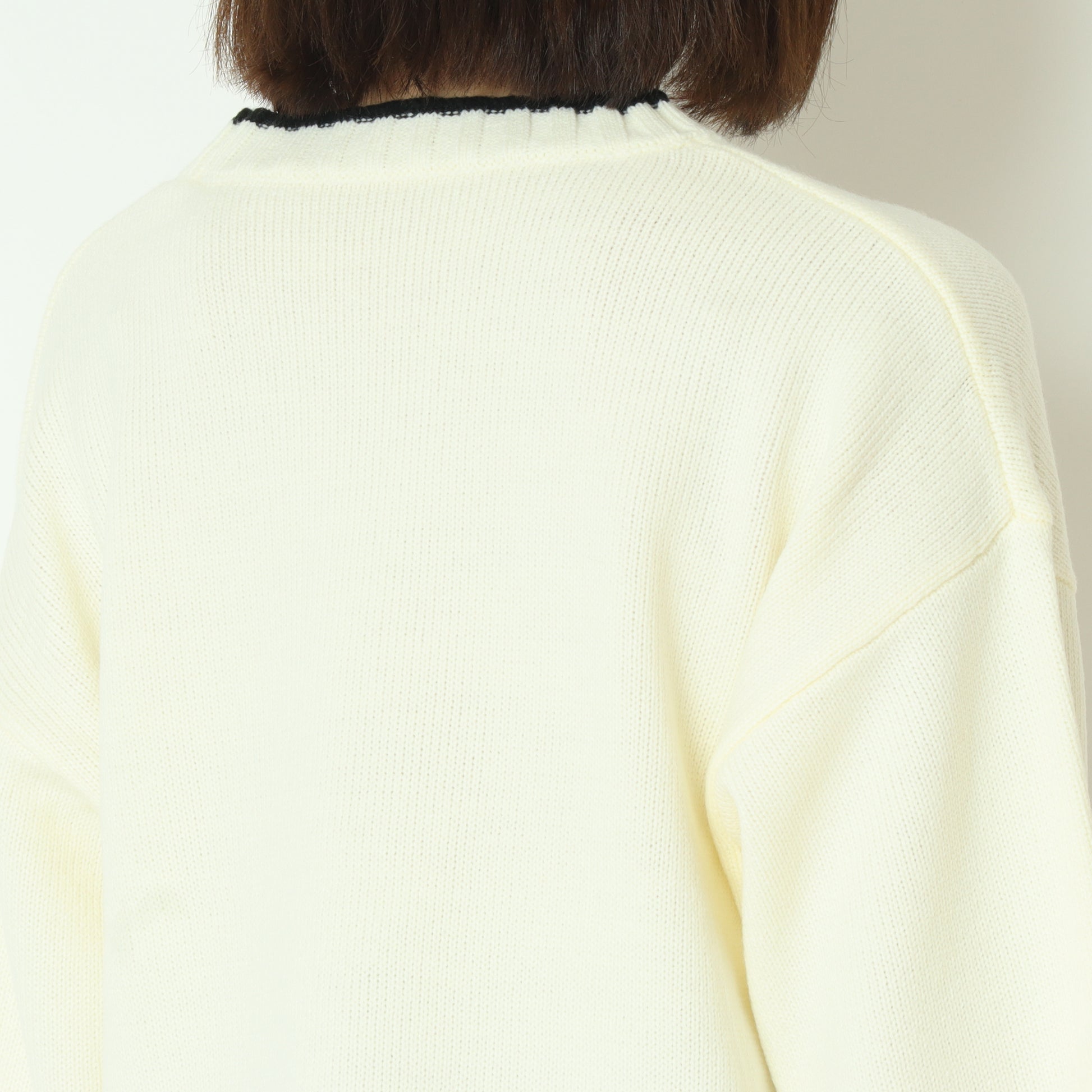 ワイドな身幅のショート丈なので、スタイルアップはもちろん、ボトムスを選ばず何にでも合わせやすい優秀ニットです。