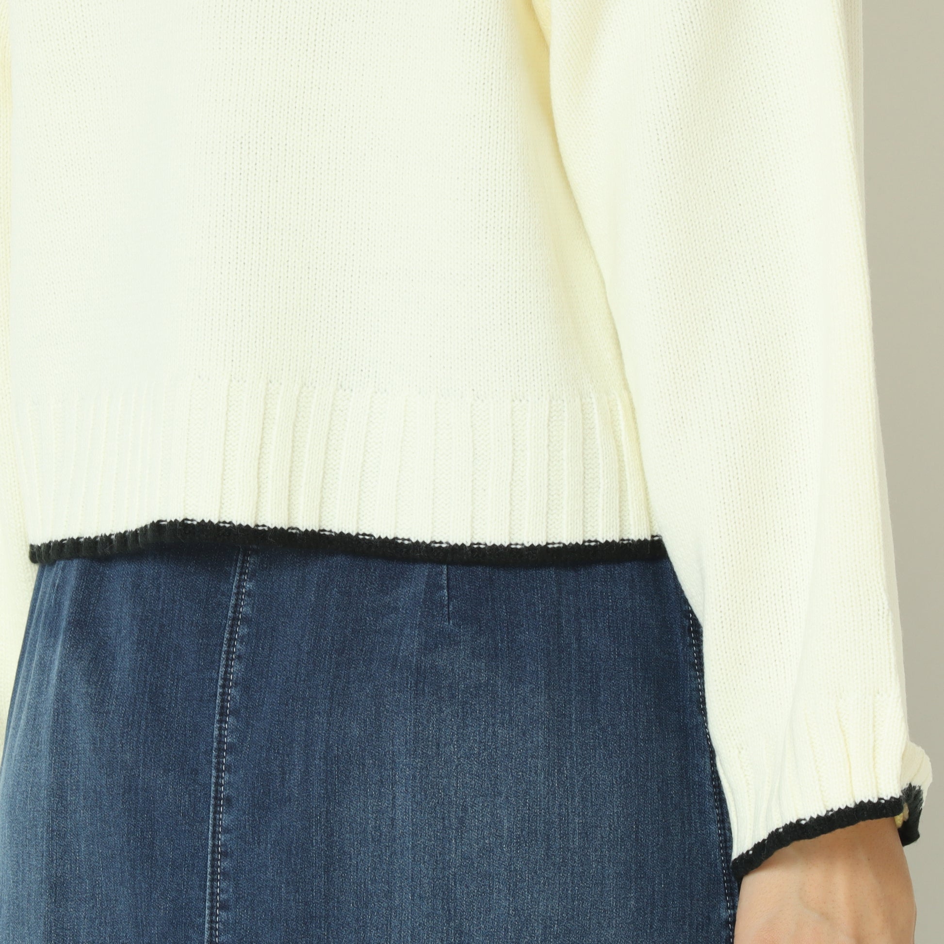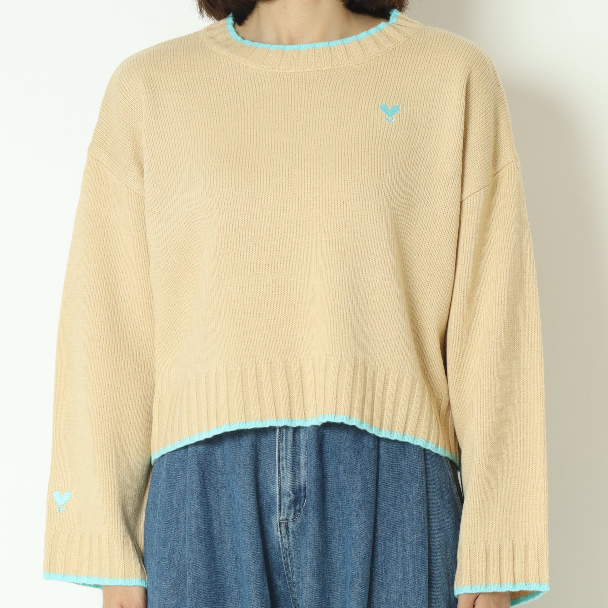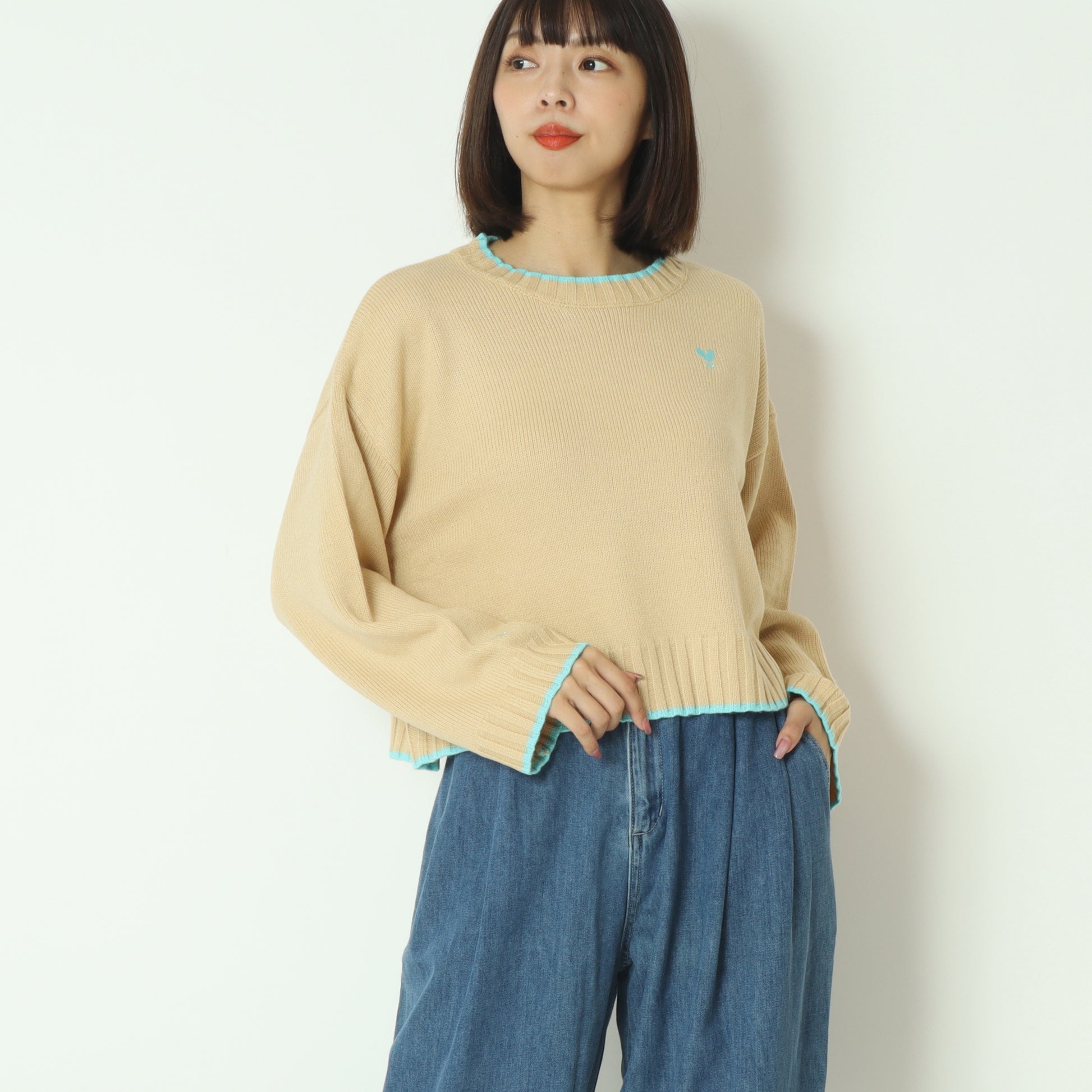 ワイドな身幅のショート丈なので、スタイルアップはもちろん、ボトムスを選ばず何にでも合わせやすい優秀ニットです。