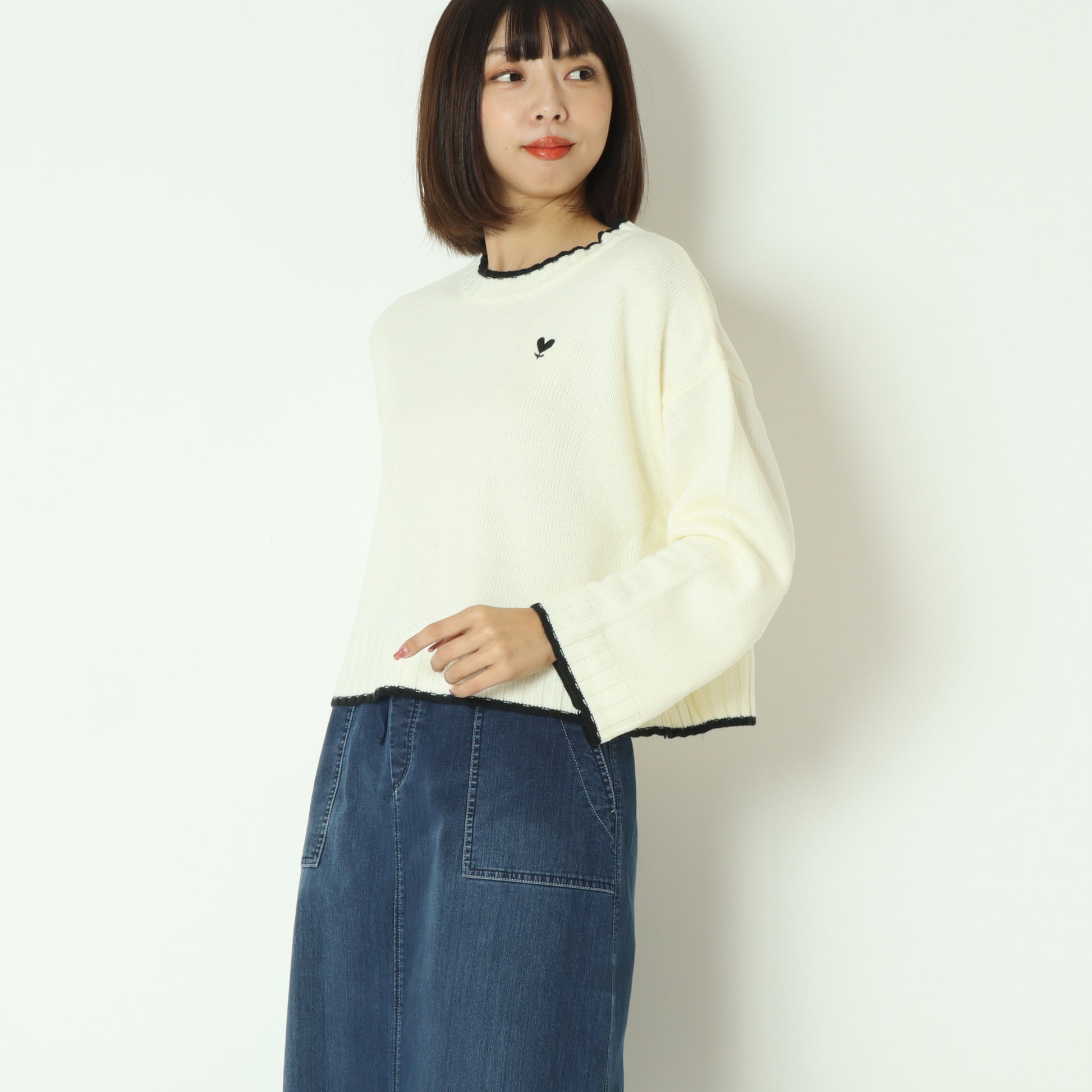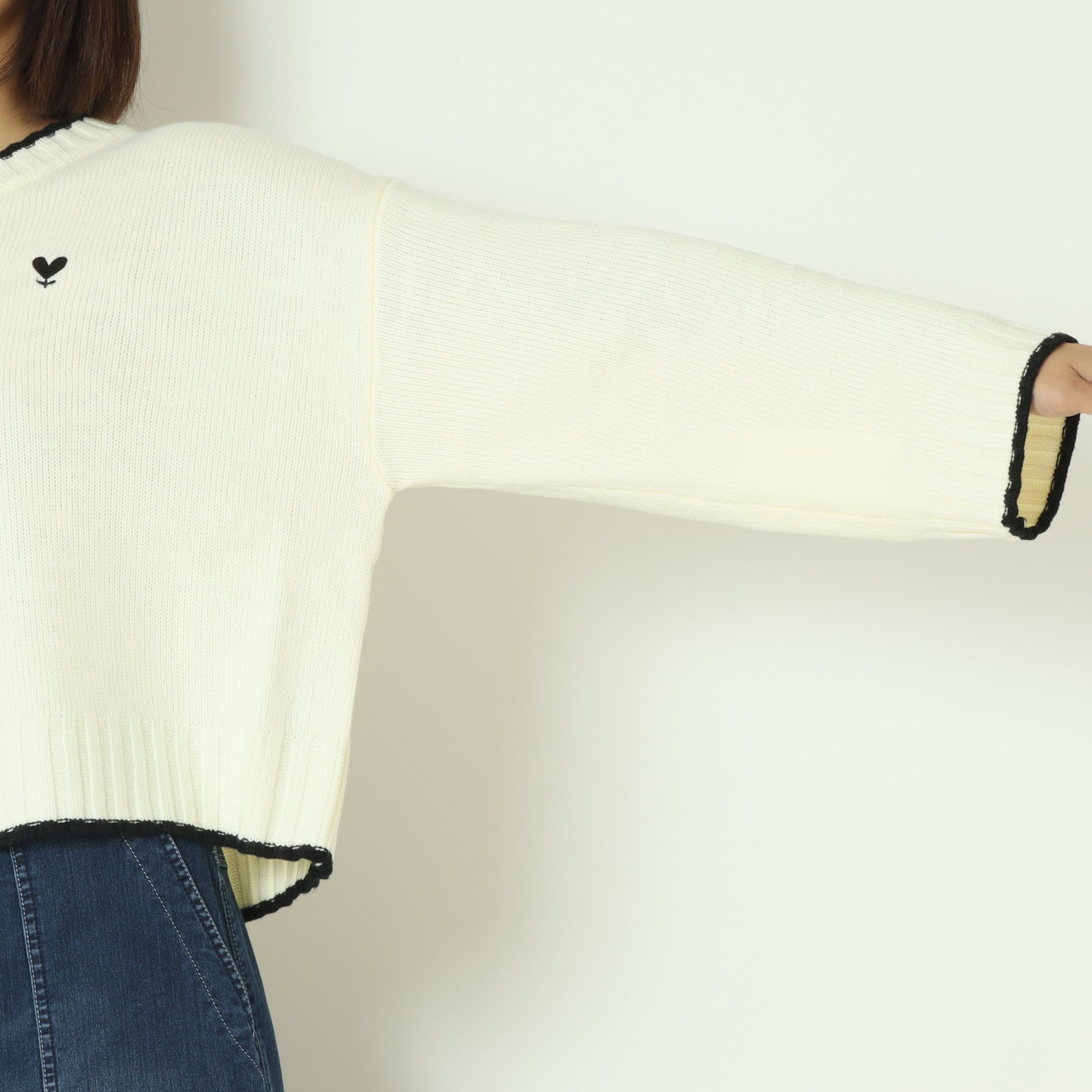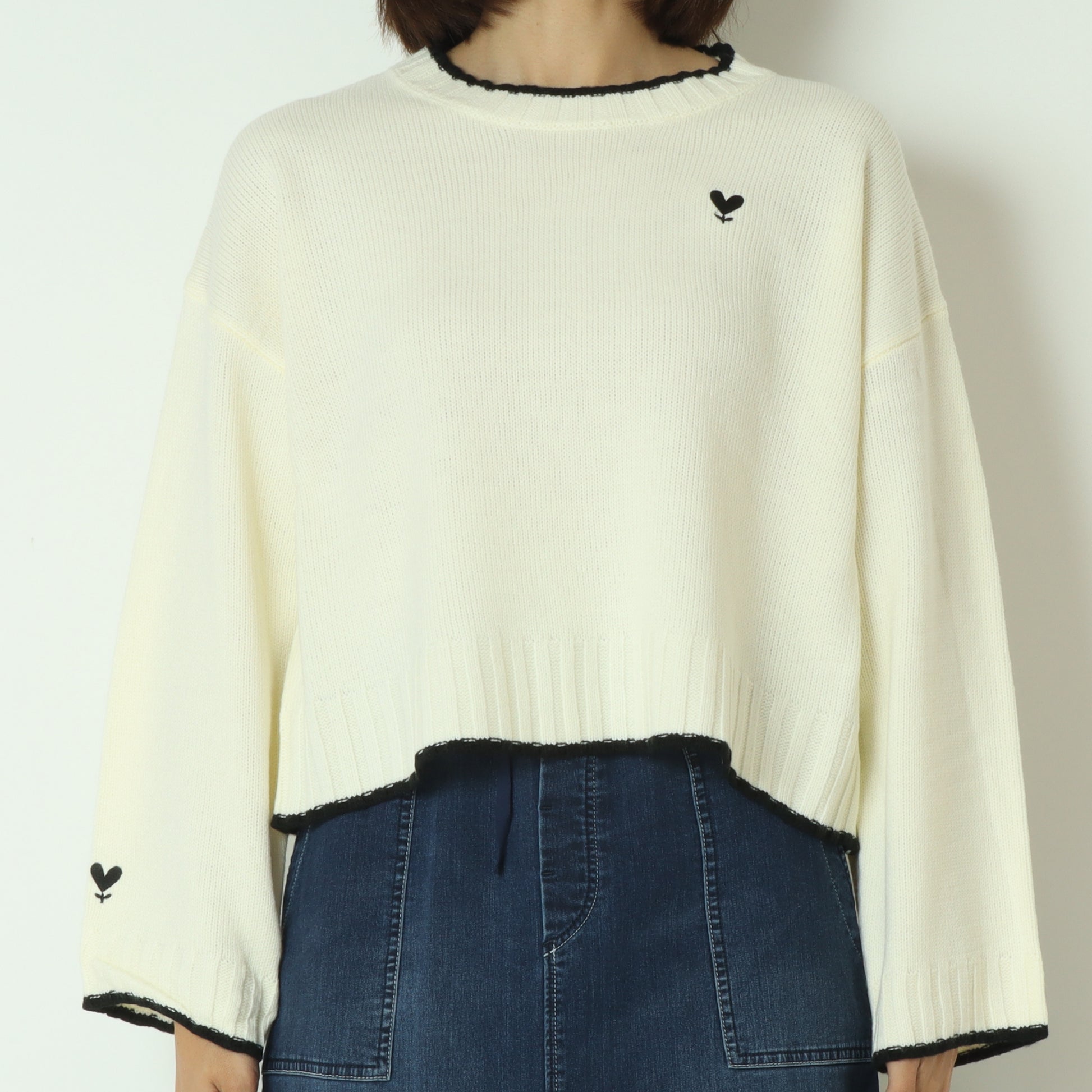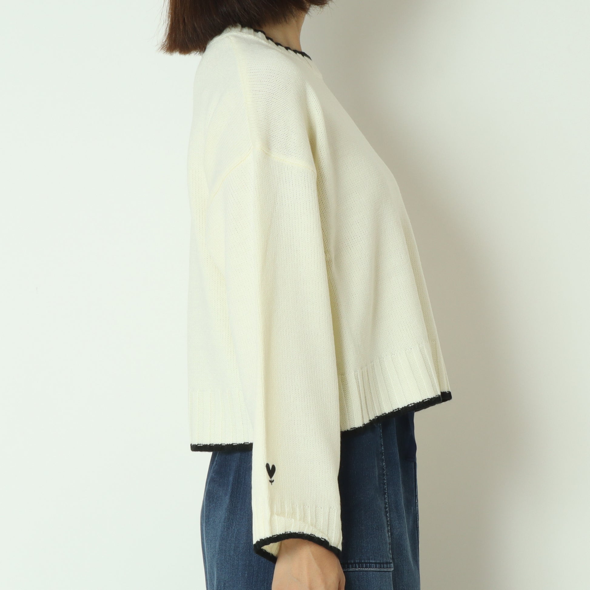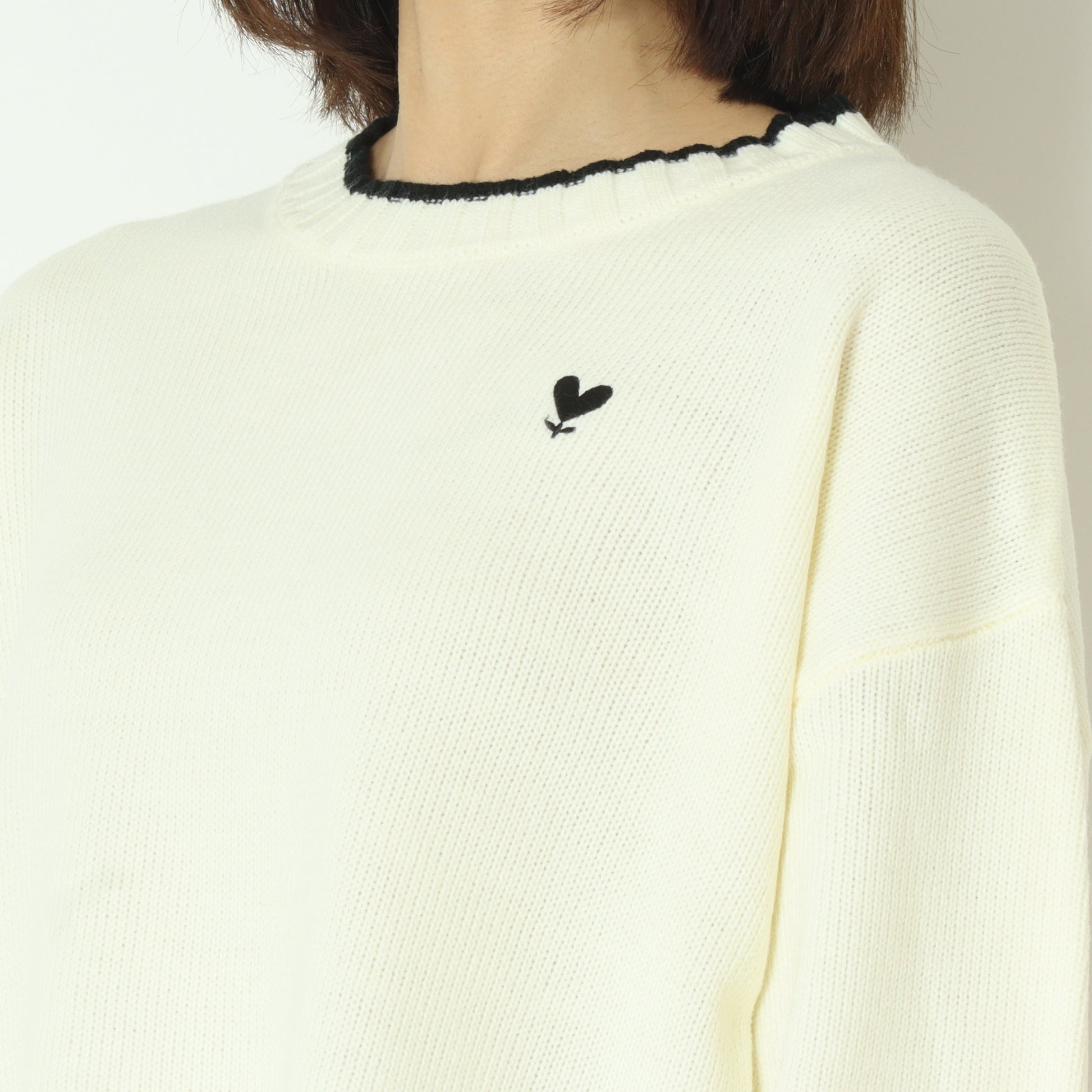 さりげないポイントデザインのハートマークが大人かわいいニットプルオーバー。
