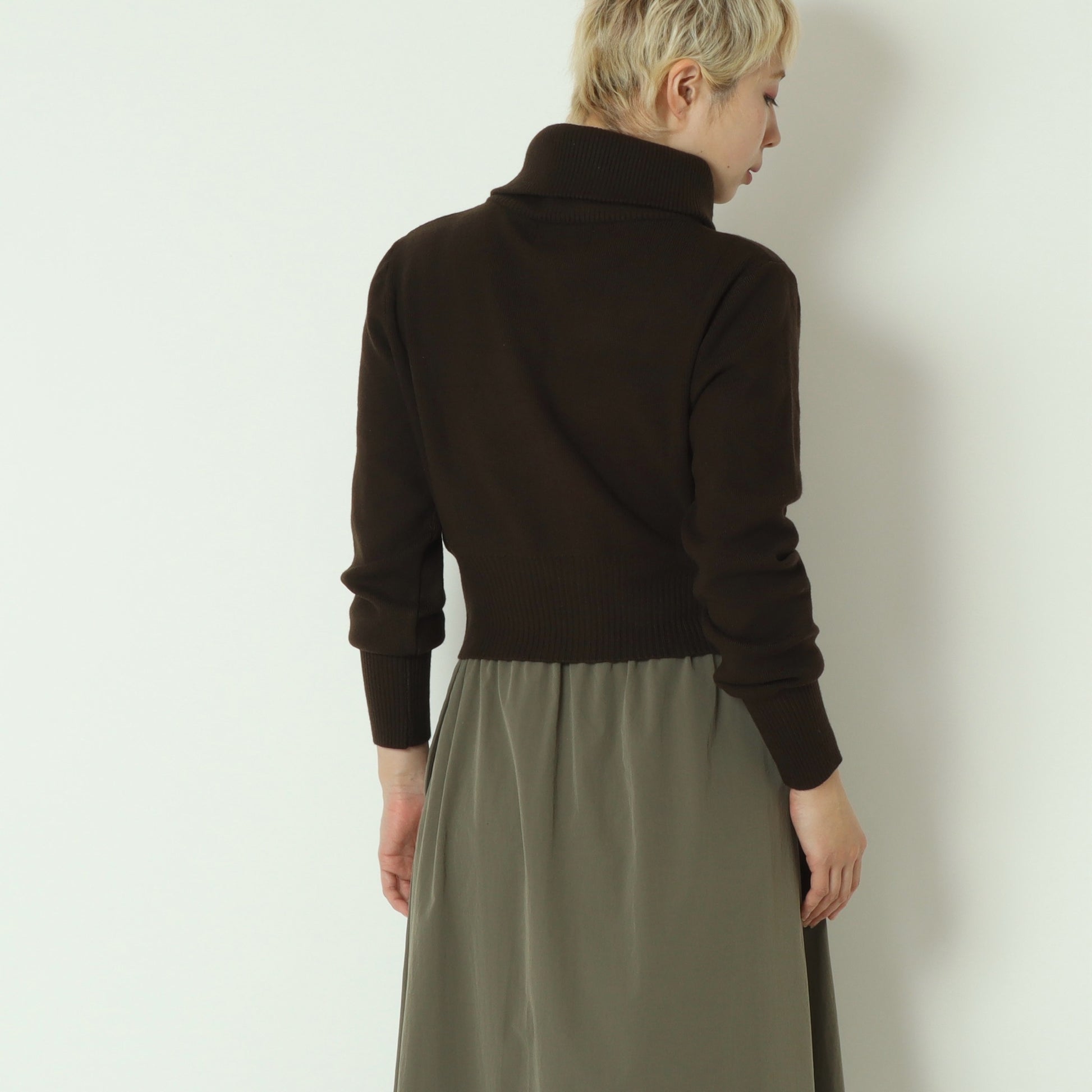 ナイロン混糸を使用し、軽さと耐久性を両立したハイネックジップニット。