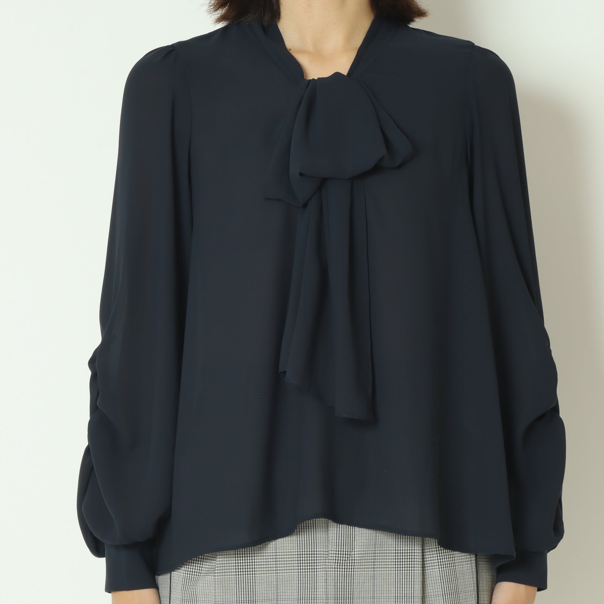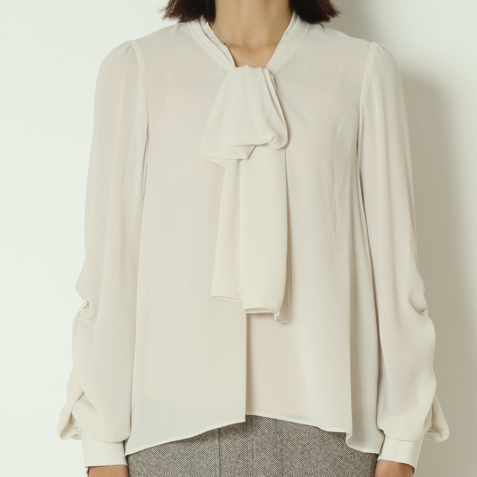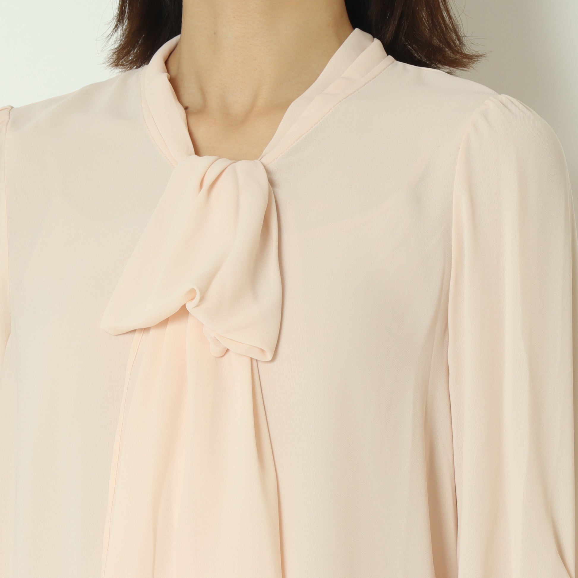 ソフトな風合いが優しい印象のシフォンボウタイブラウス。