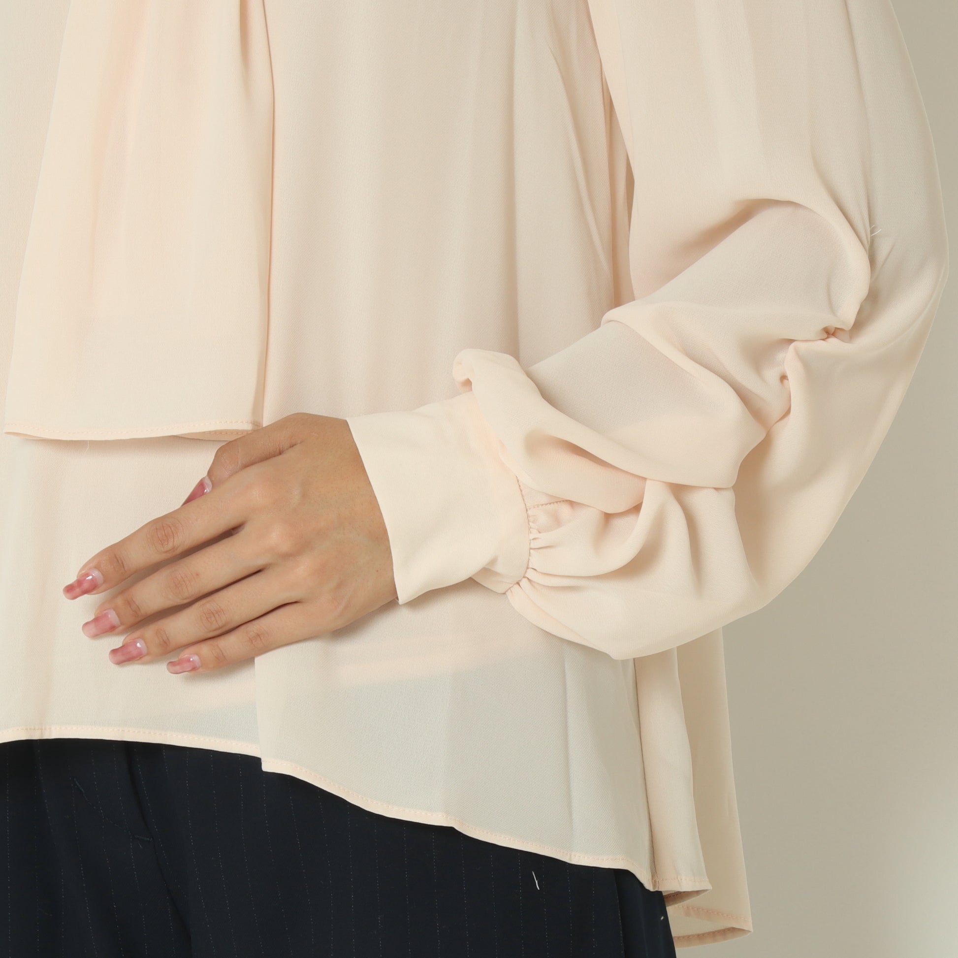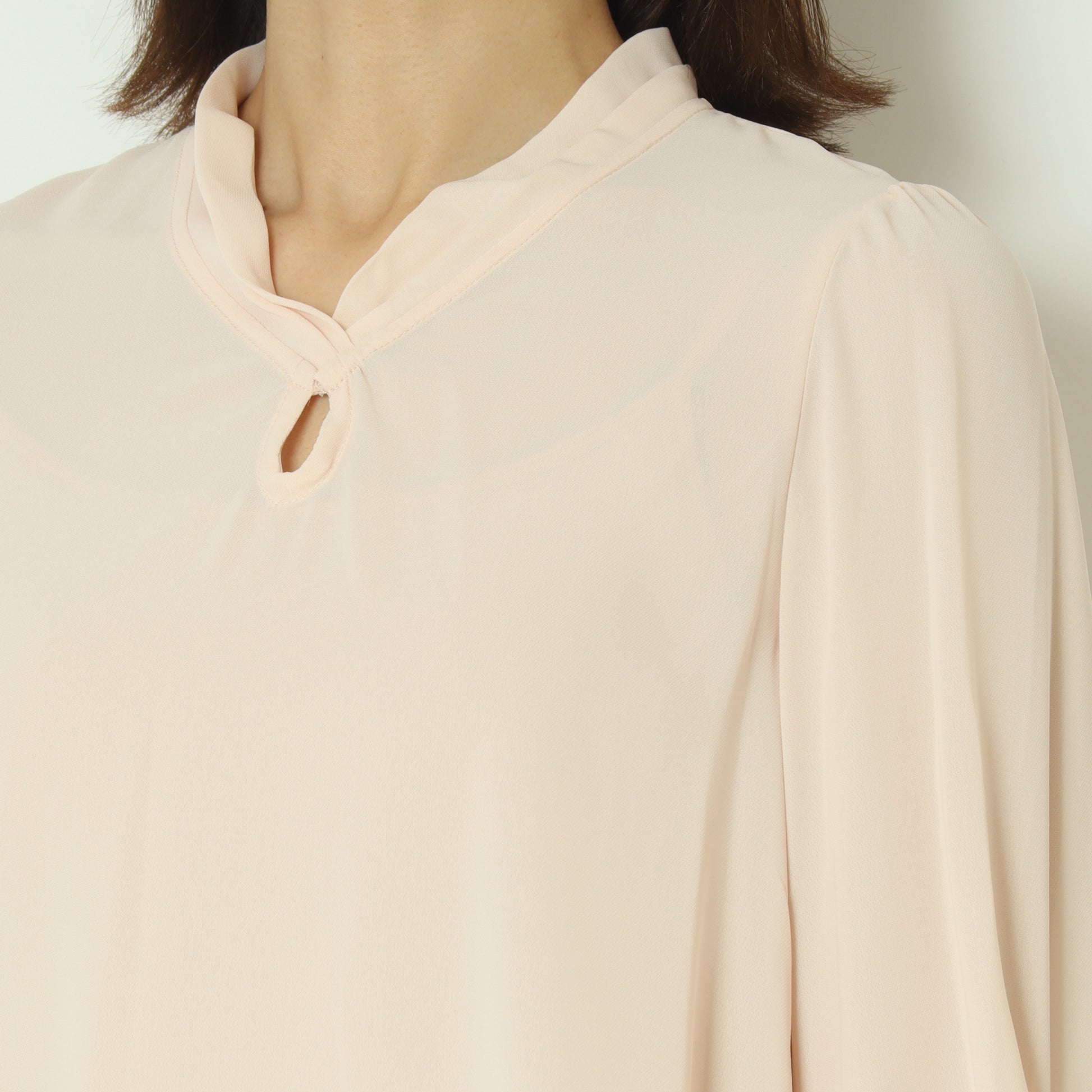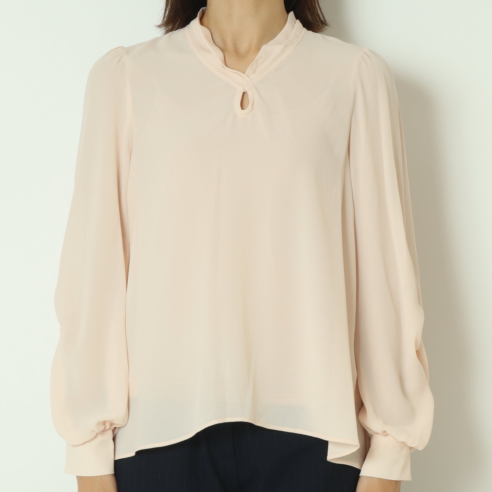 ソフトな風合いが優しい印象のシフォンボウタイブラウス。