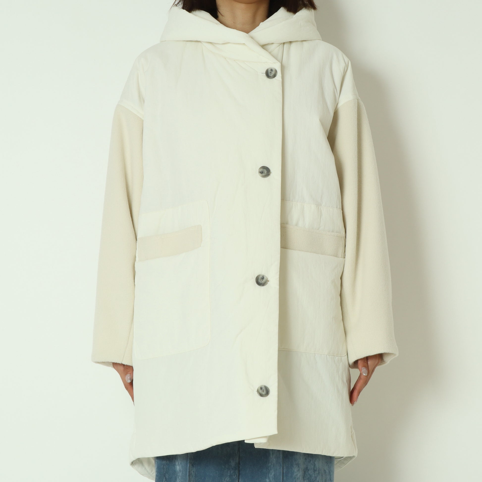 オリジナルの中綿入り素材を使用した、軽くて暖かいロングコート。