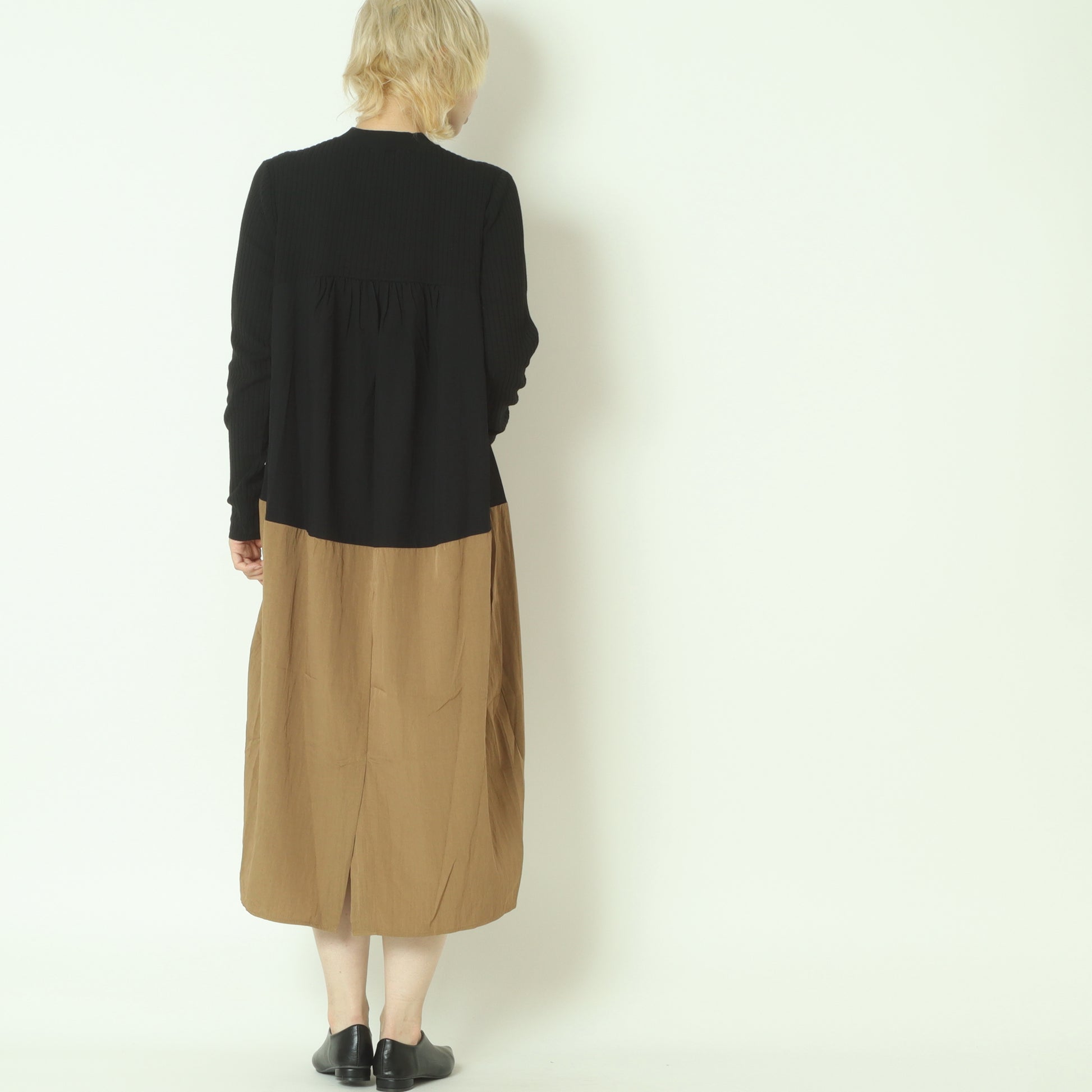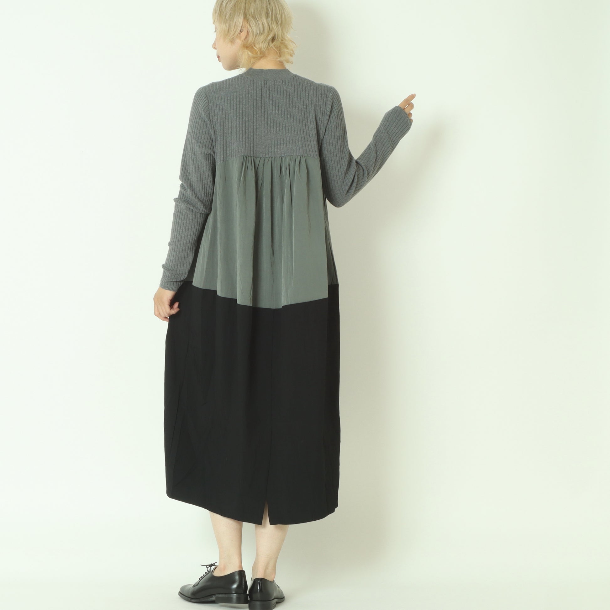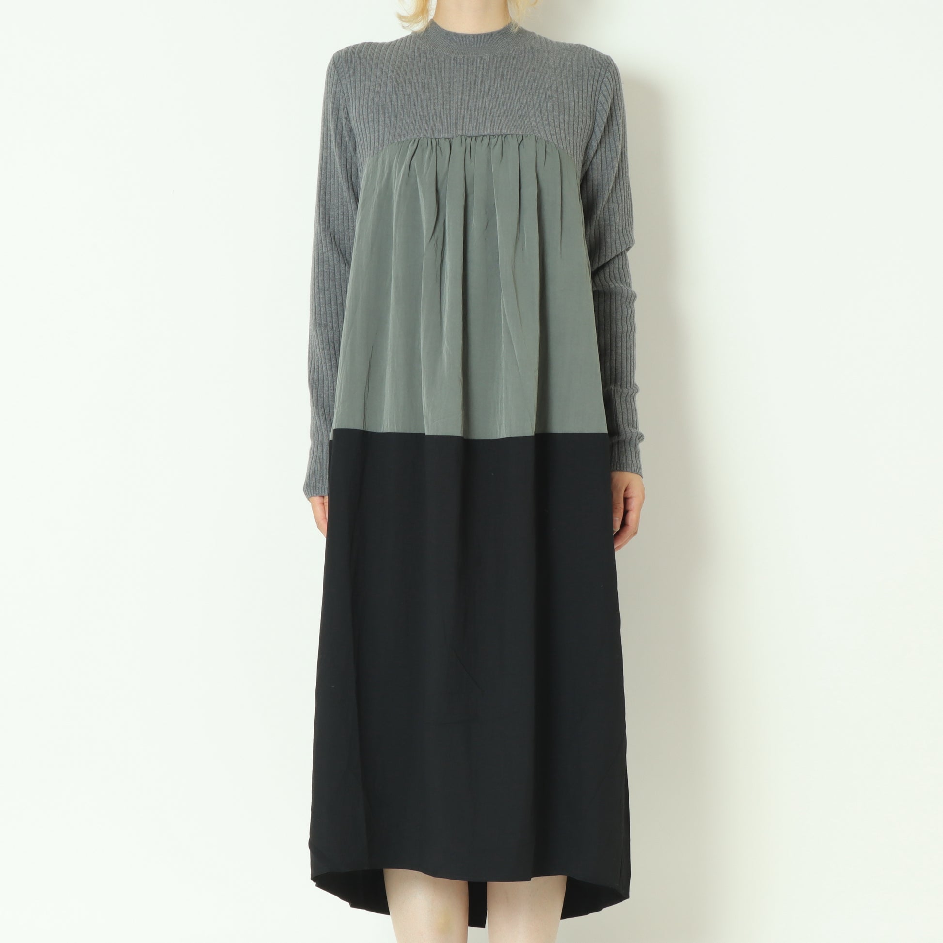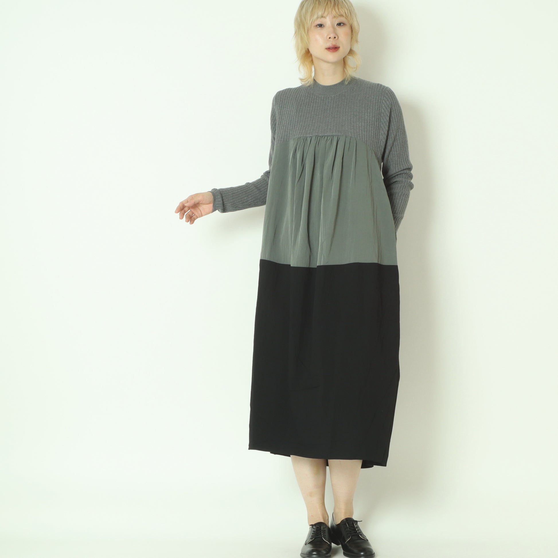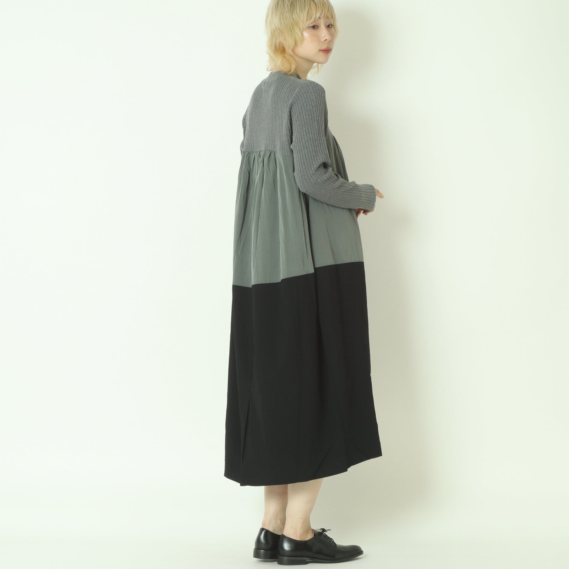 胸元と袖部分はニット素材、胸から繋がる生地は二色の配色デザインに◎