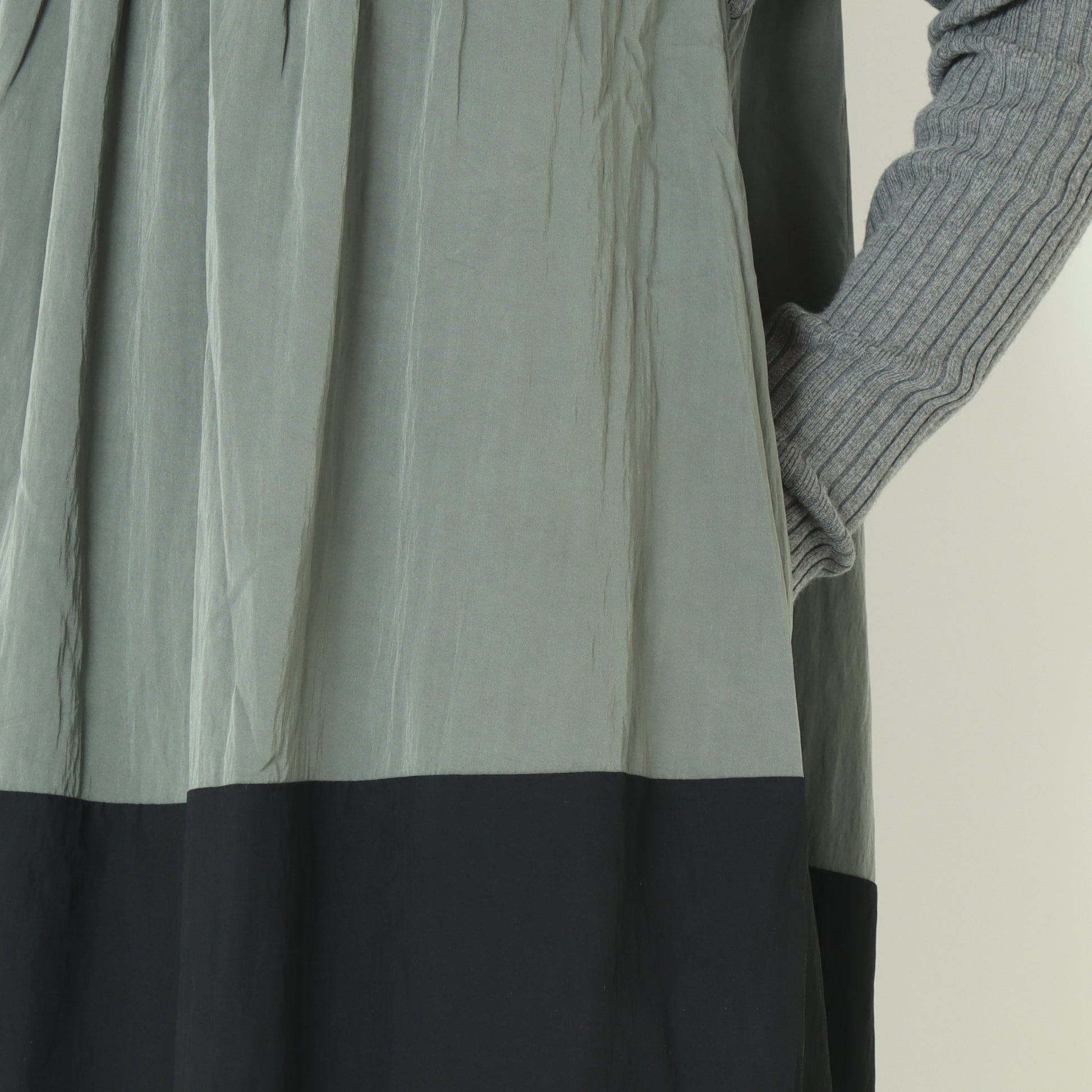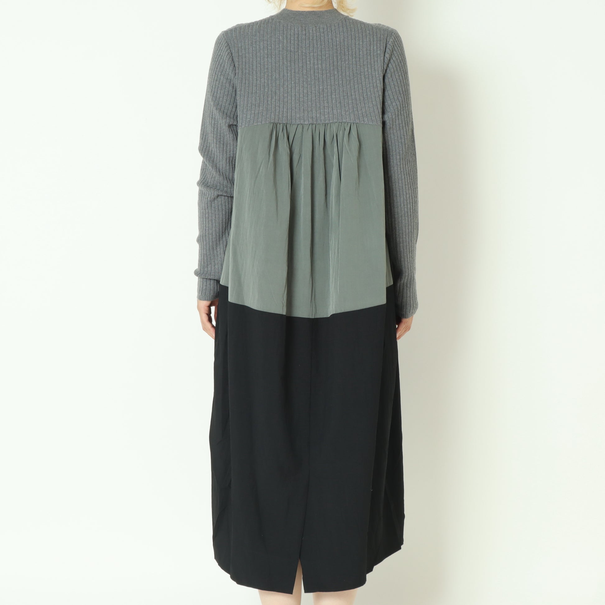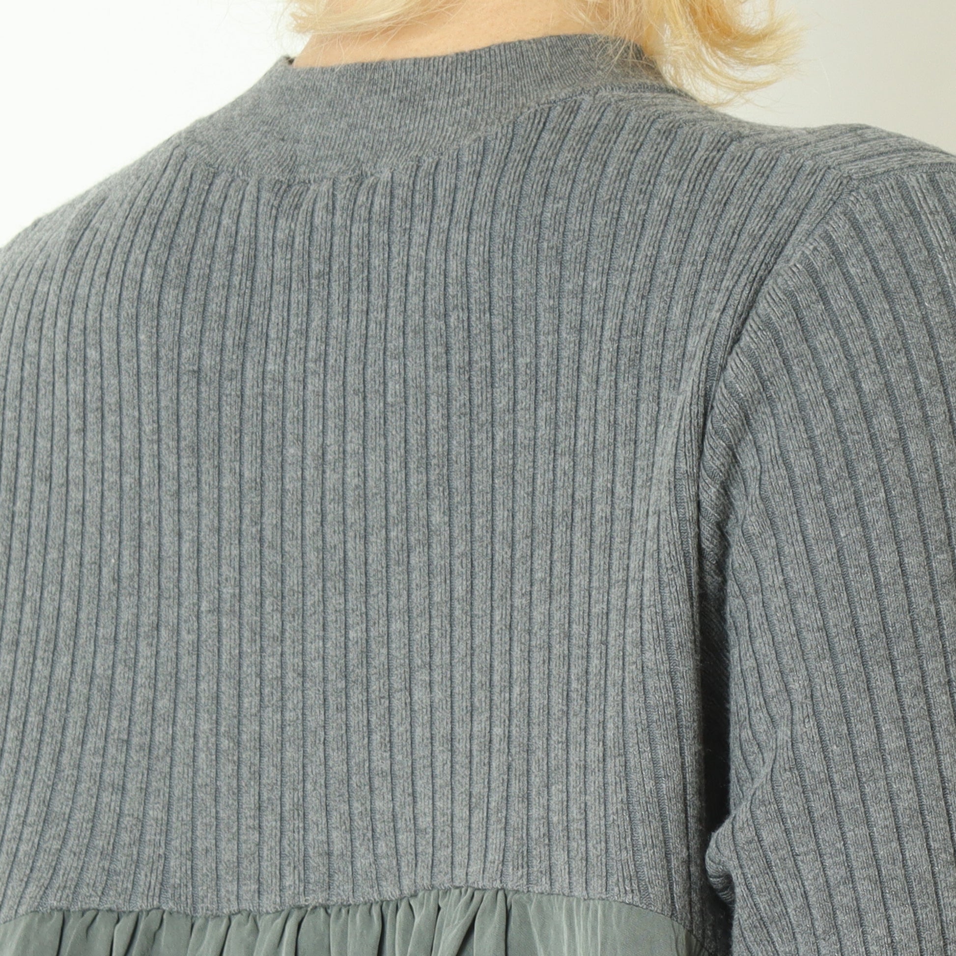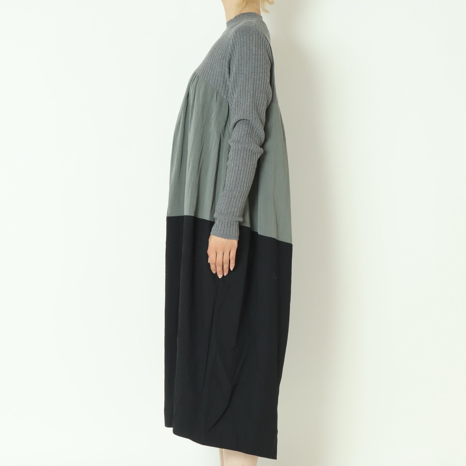 胸元と袖部分はニット素材、胸から繋がる生地は二色の配色デザインに◎