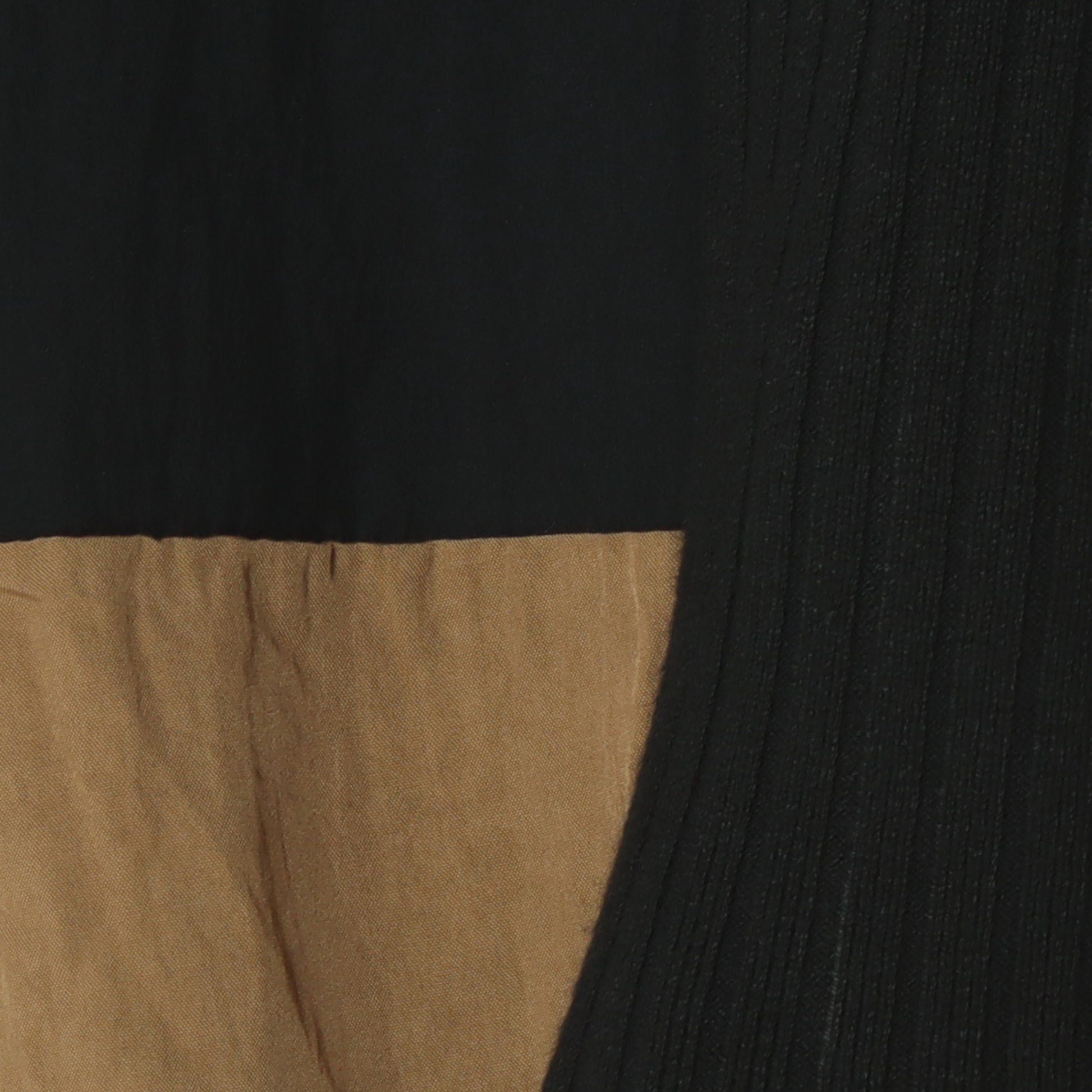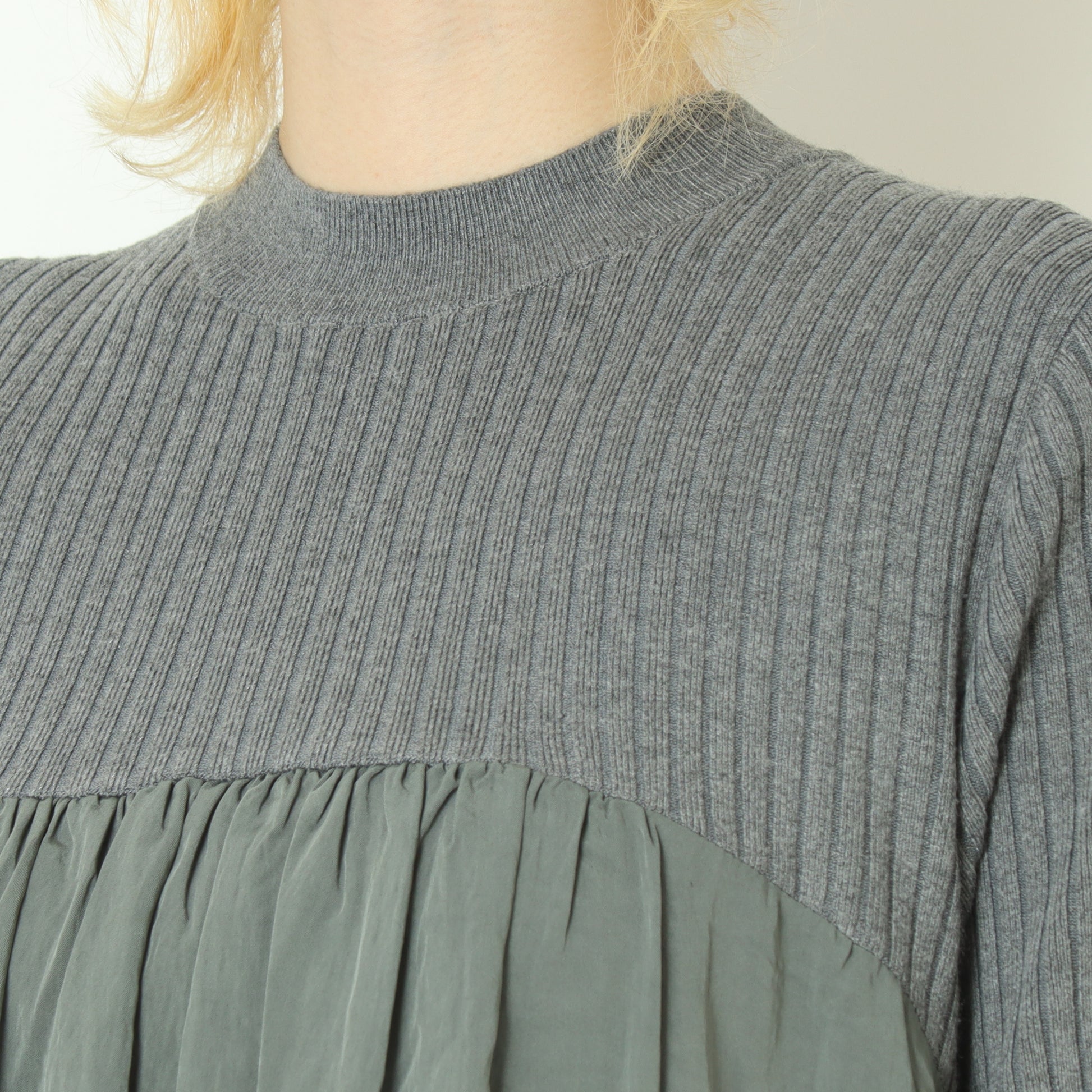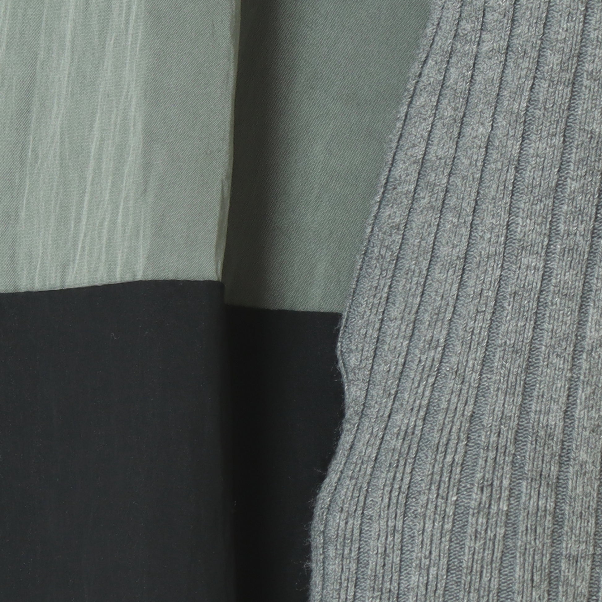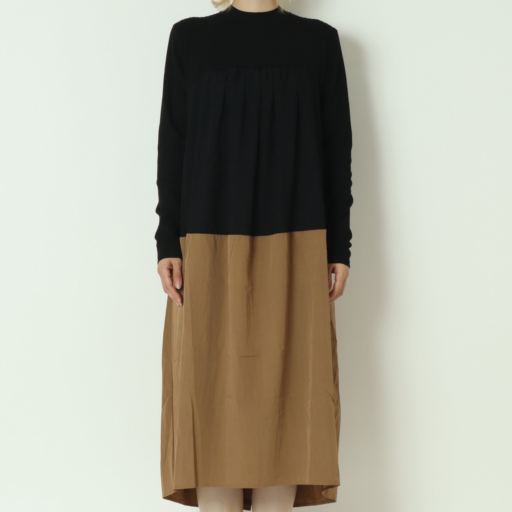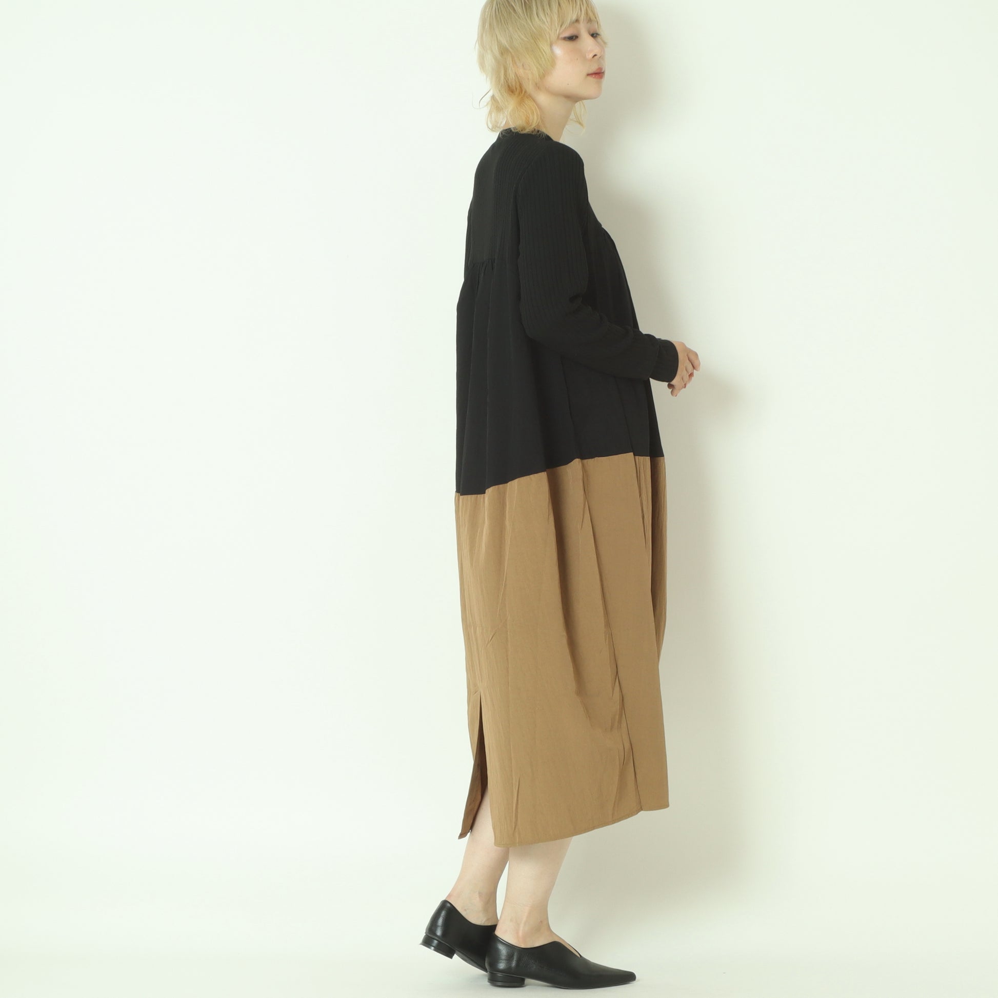 胸元と袖部分はニット素材、胸から繋がる生地は二色の配色デザインに◎