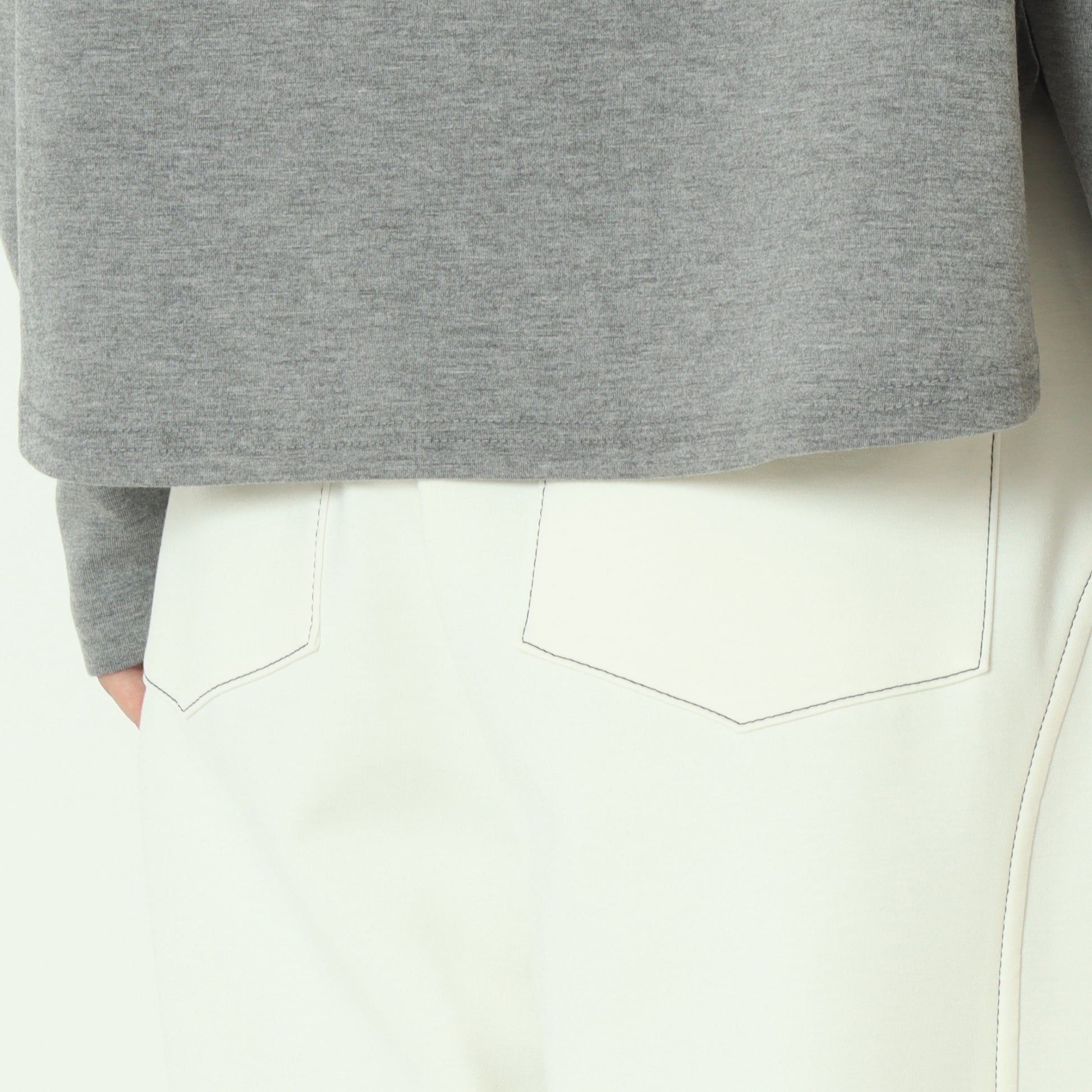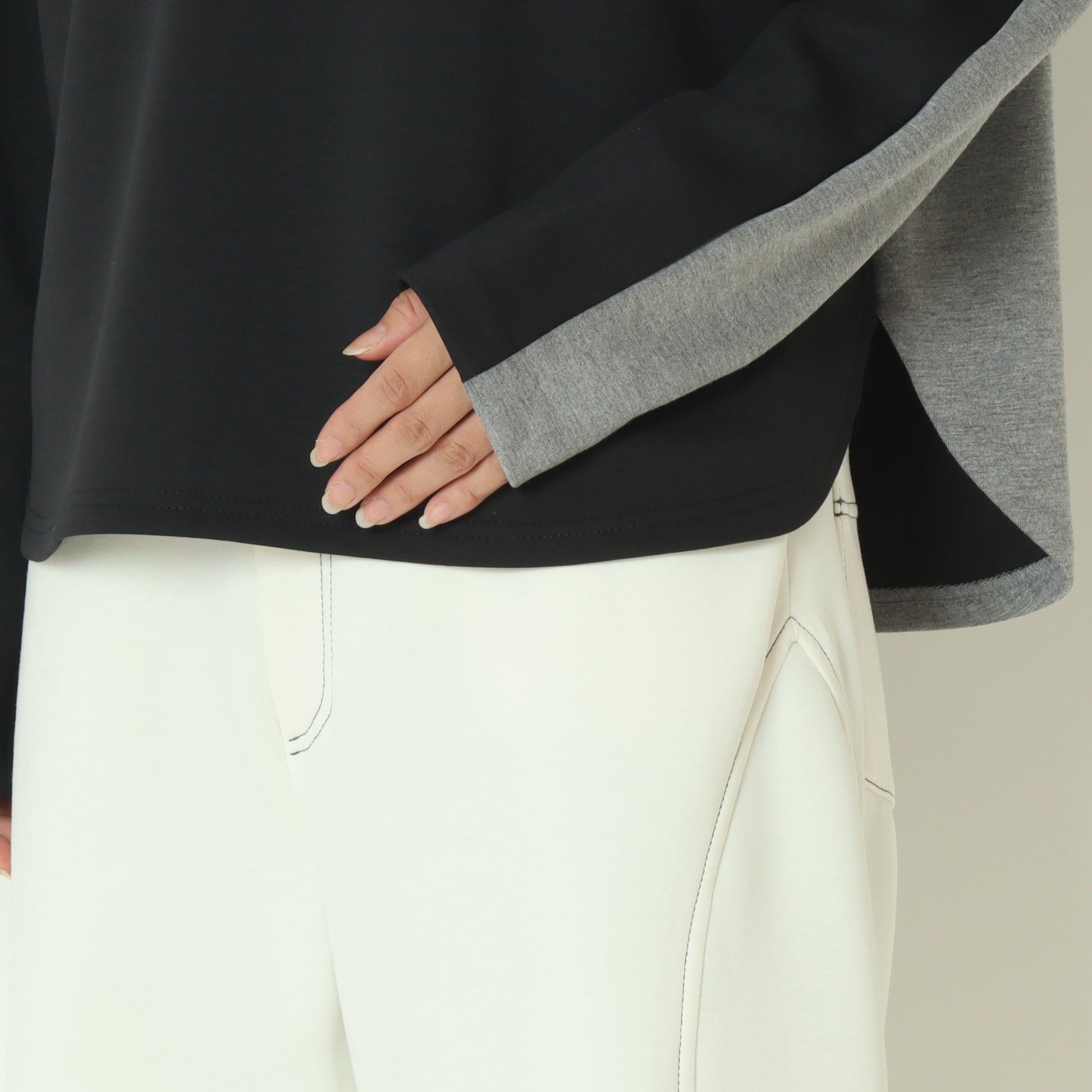 細身のスラックスも、ワイドなパンツやスカートでも、どんなボトムスにも合わせやすくレイヤードにも使いやすい万能デザインです。