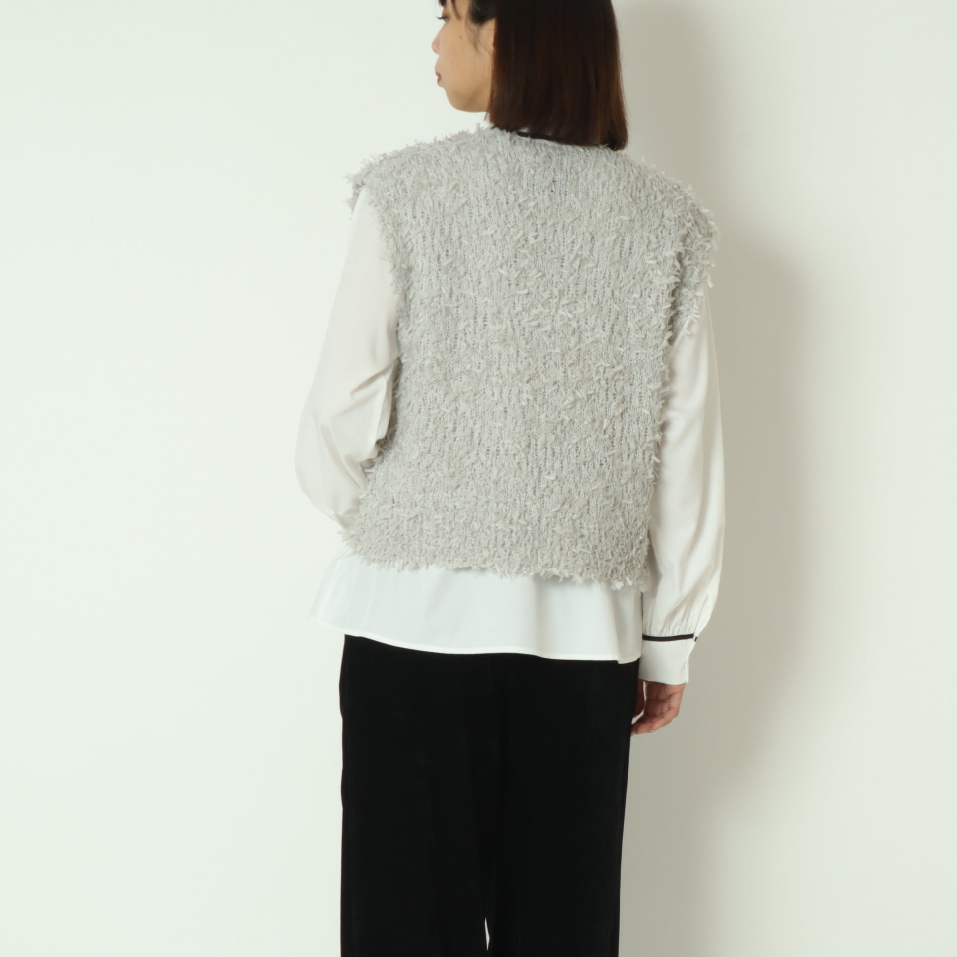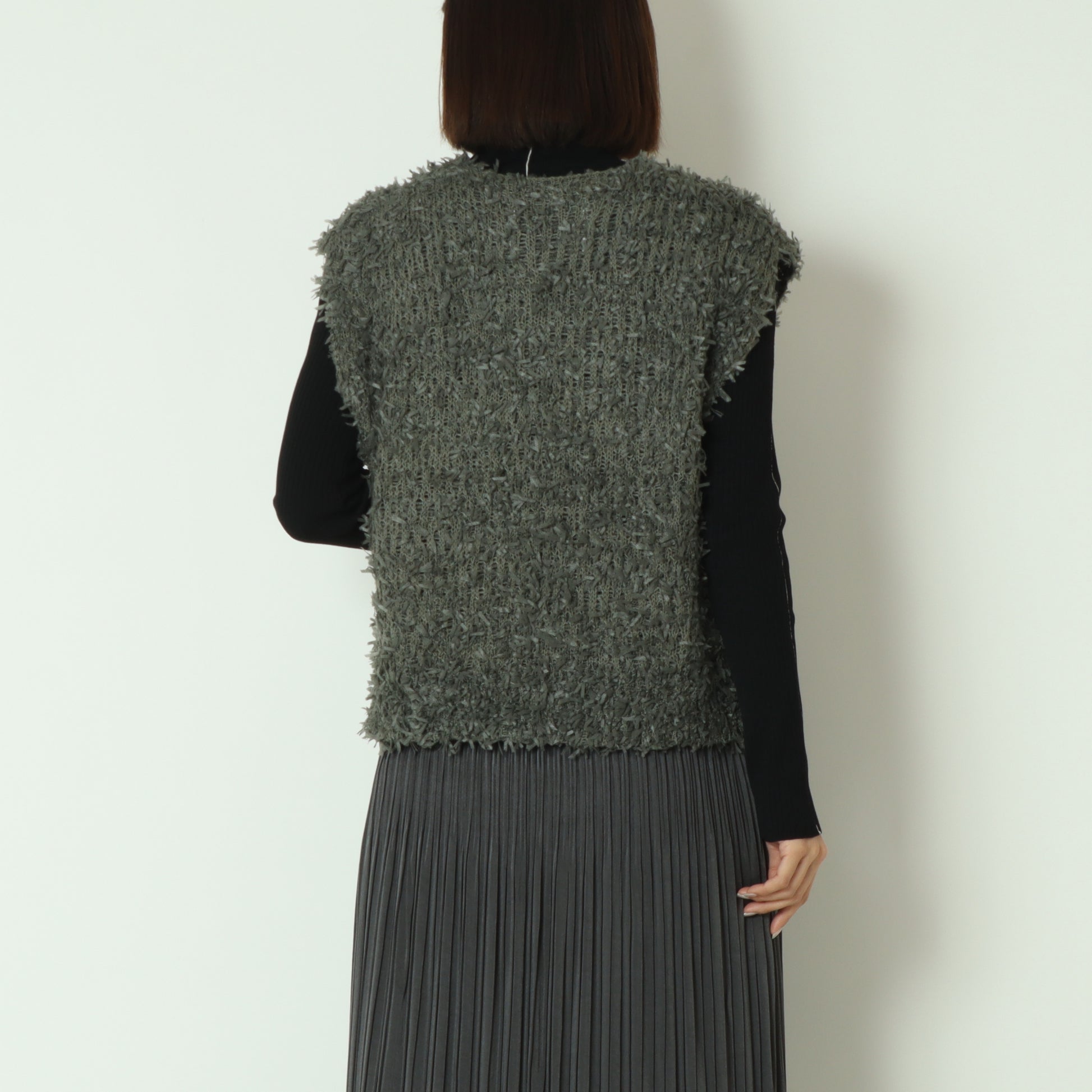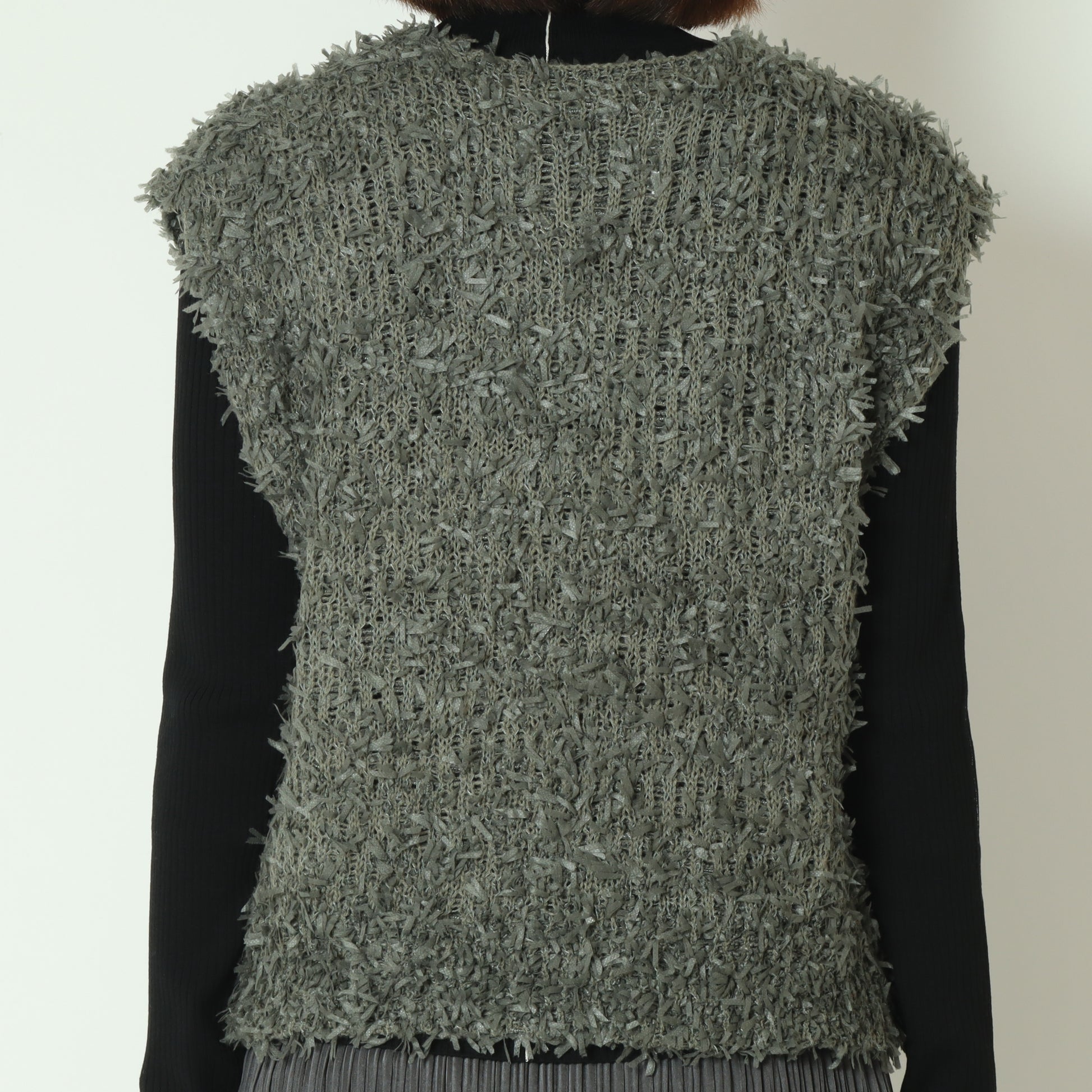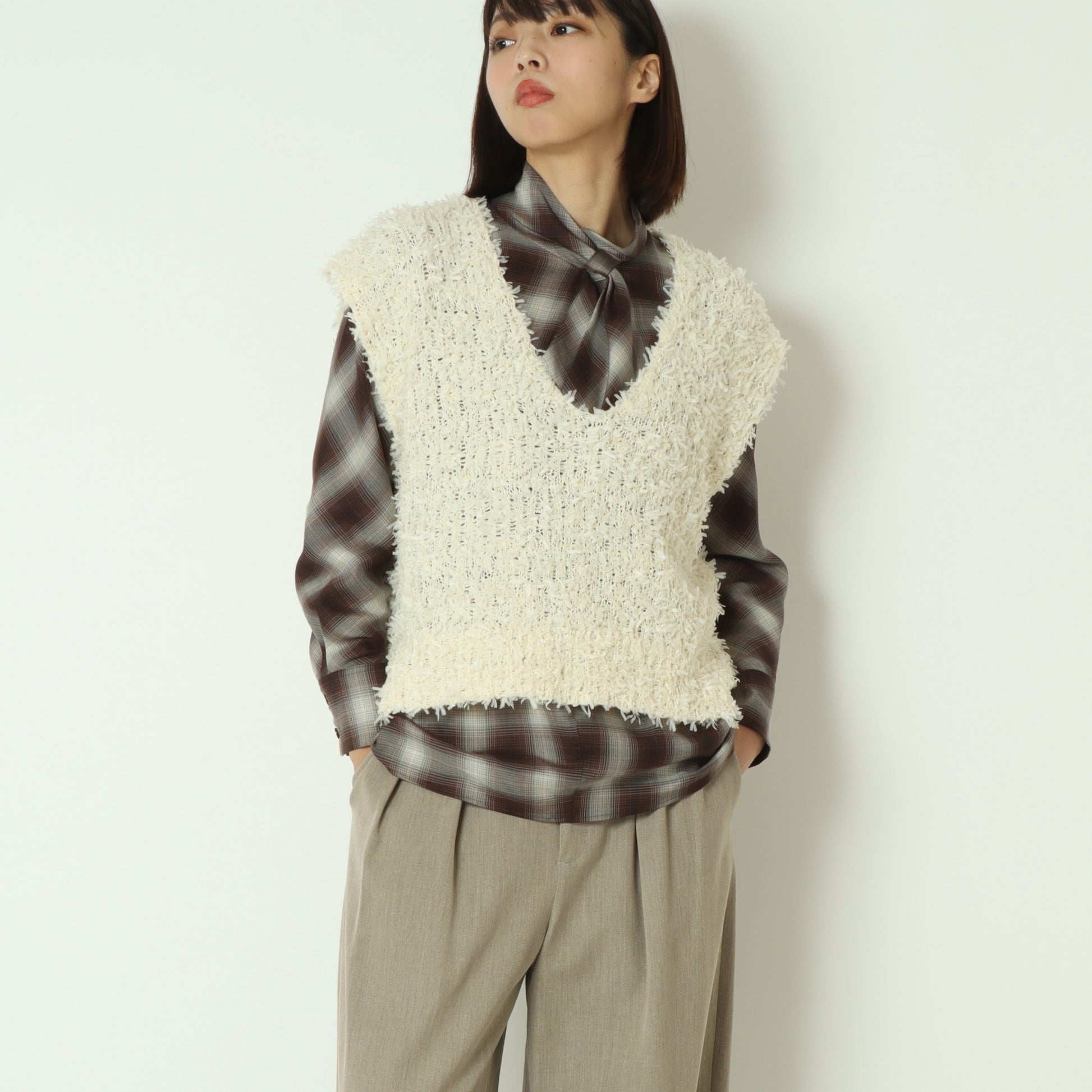 ざっくりと編み立てたテープヤーンが華やかさをプラスしてくれる表情豊かなVネックベスト。
