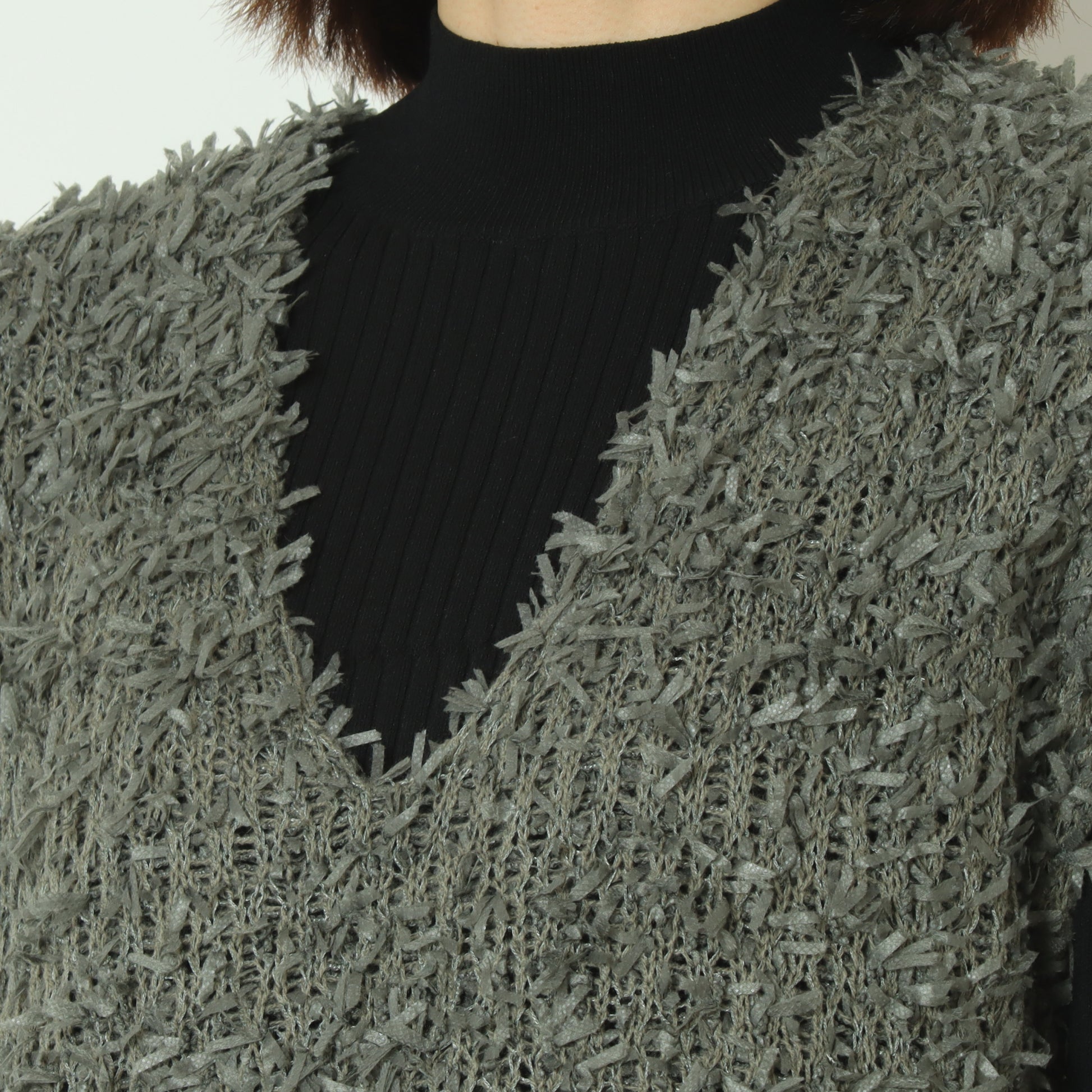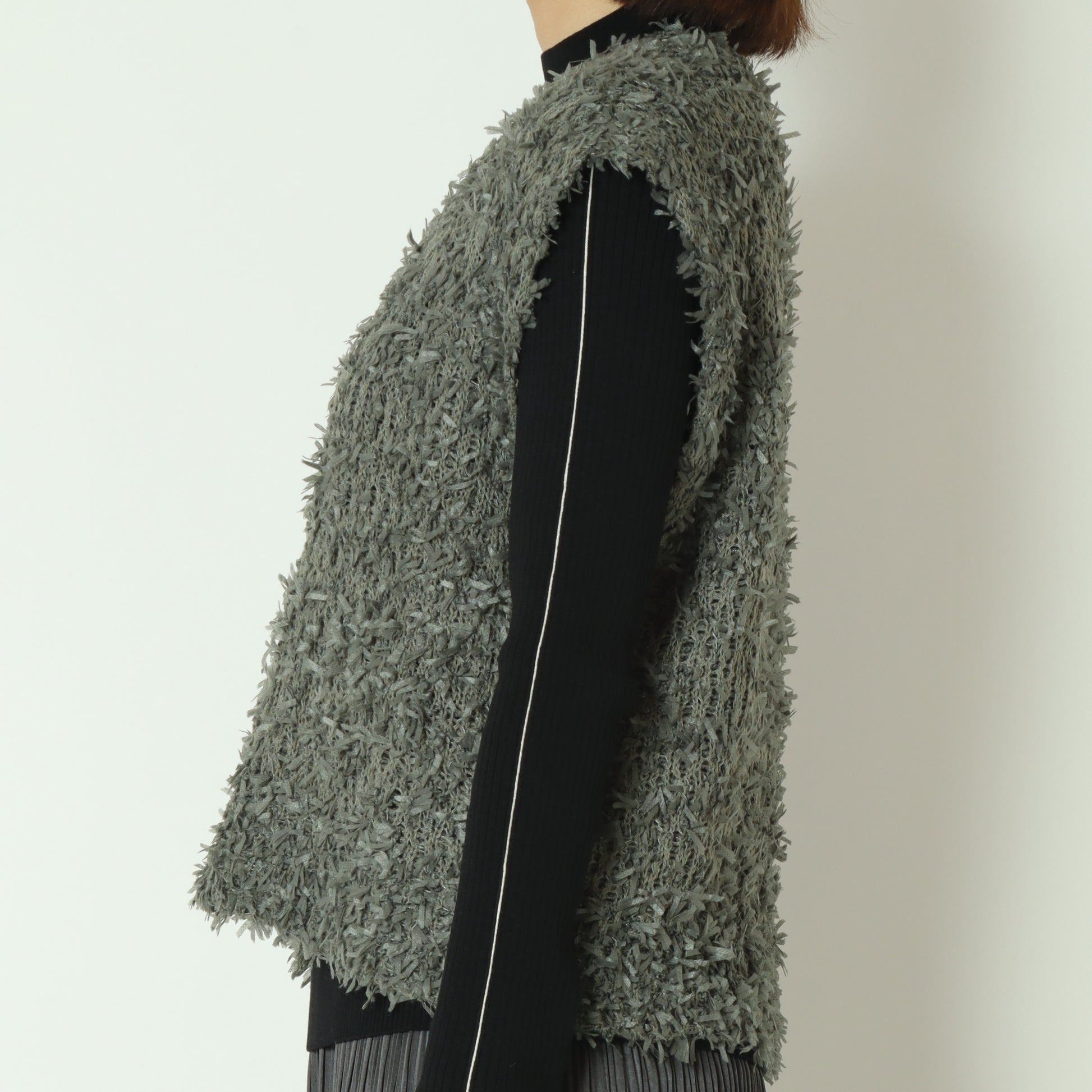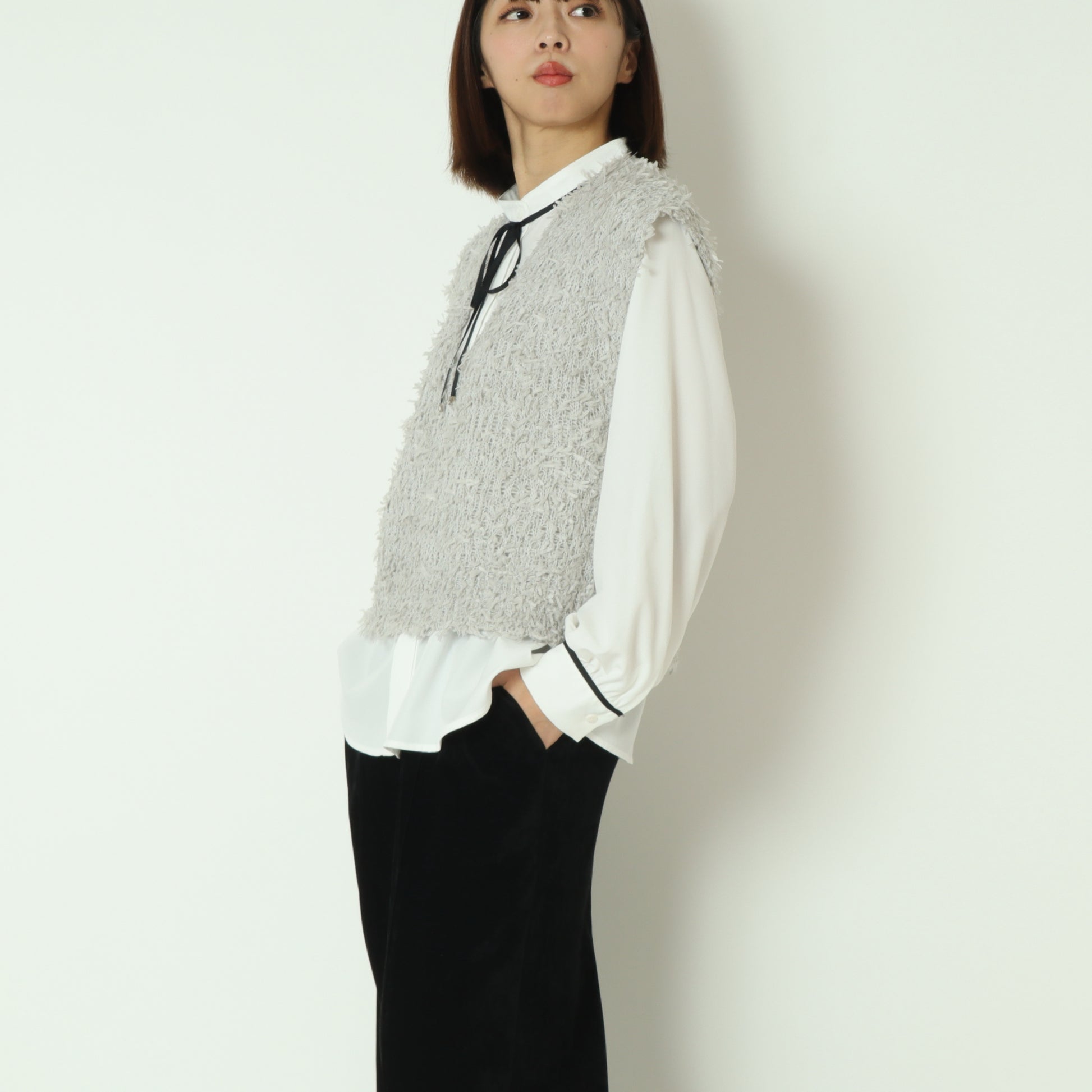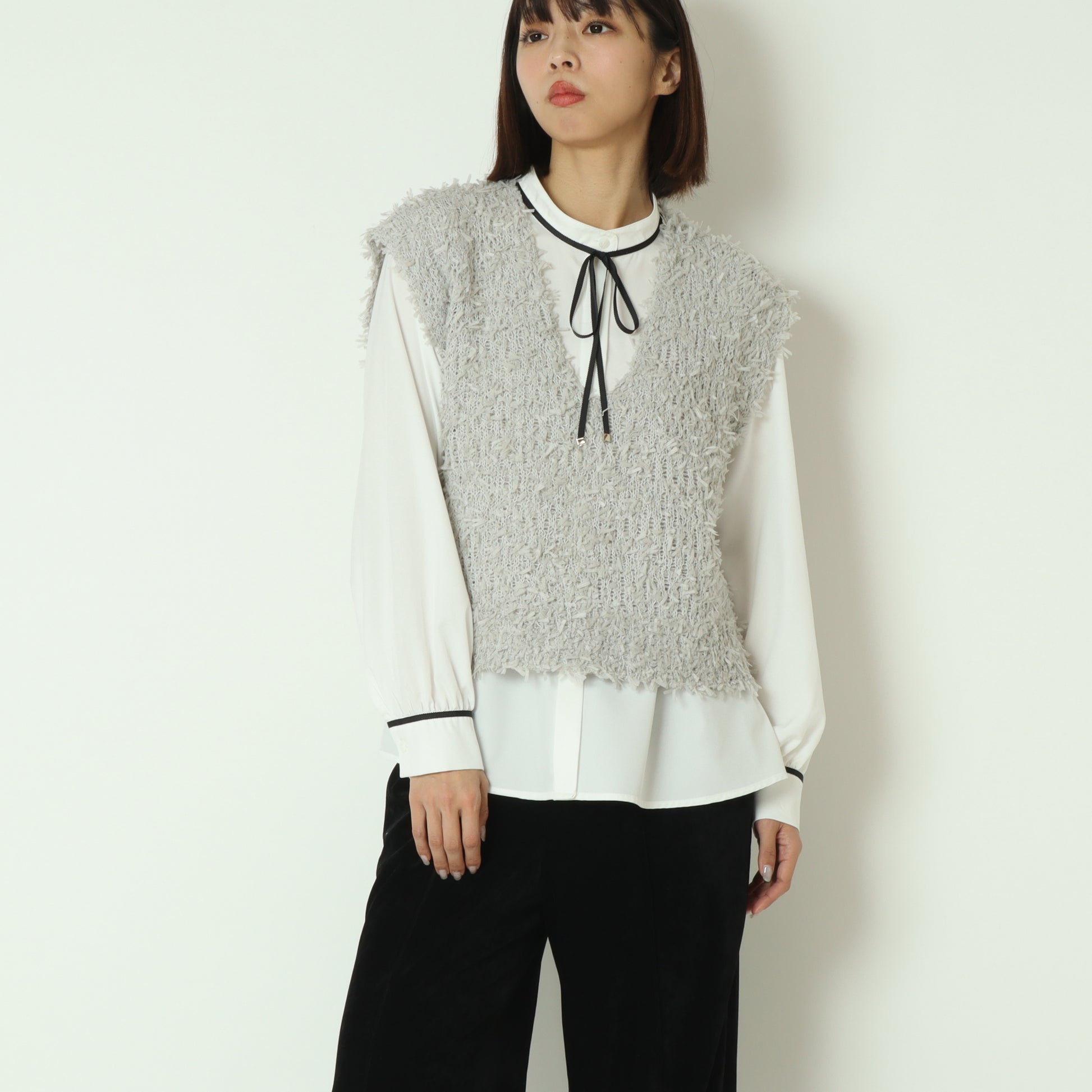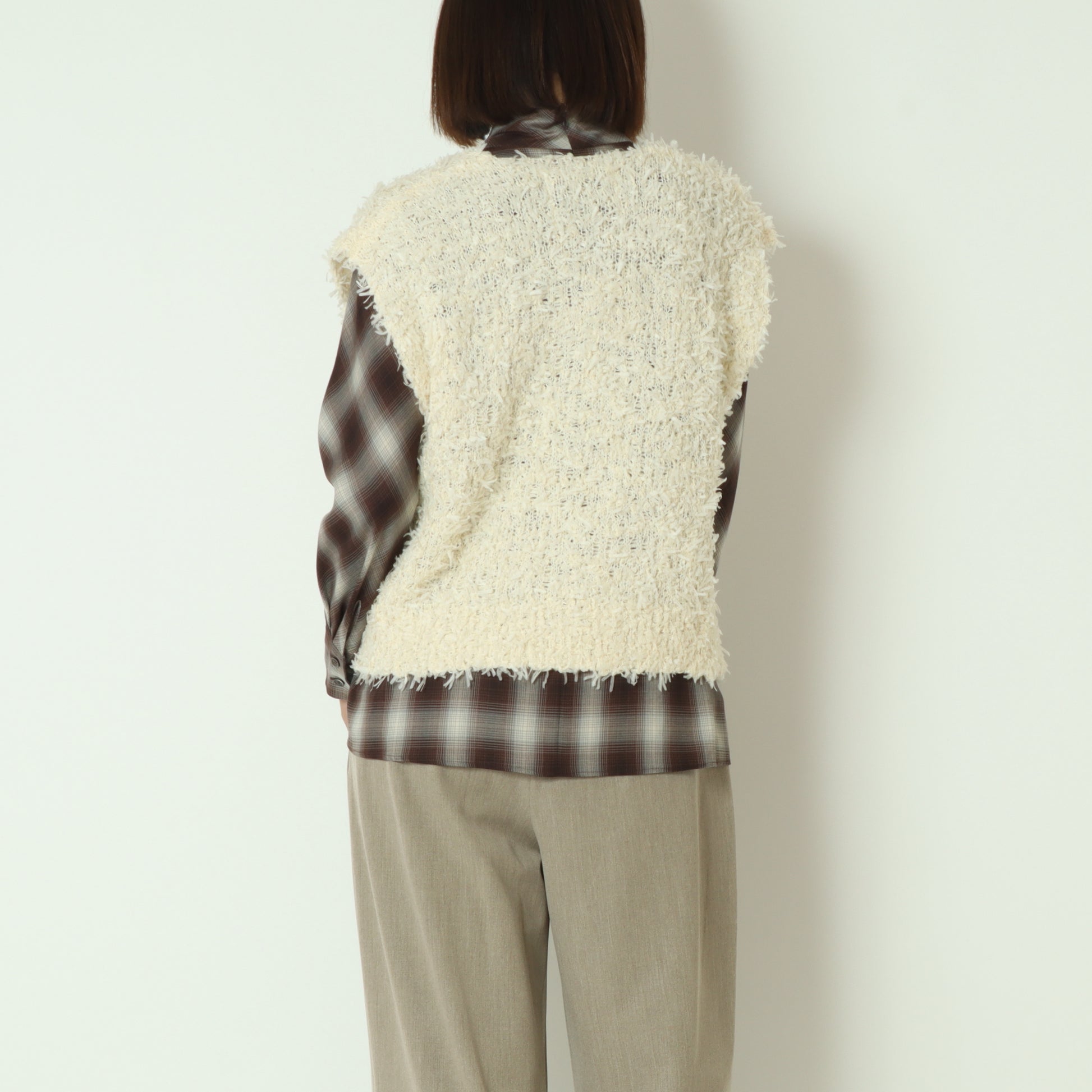 ざっくりと編み立てたテープヤーンが華やかさをプラスしてくれる表情豊かなVネックベスト。