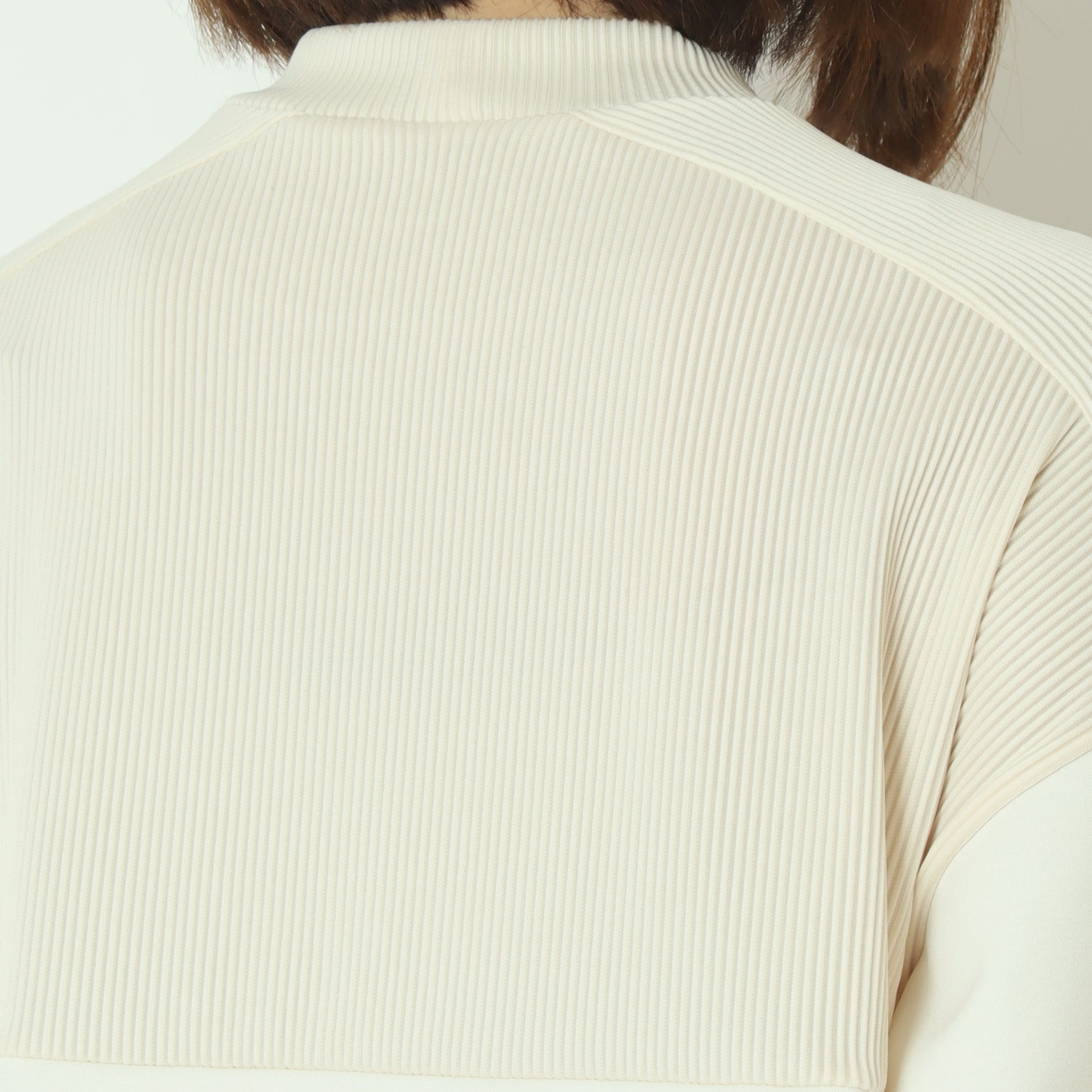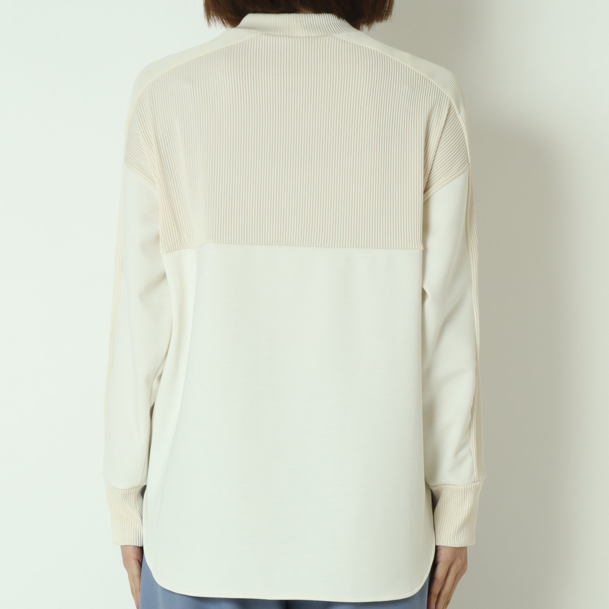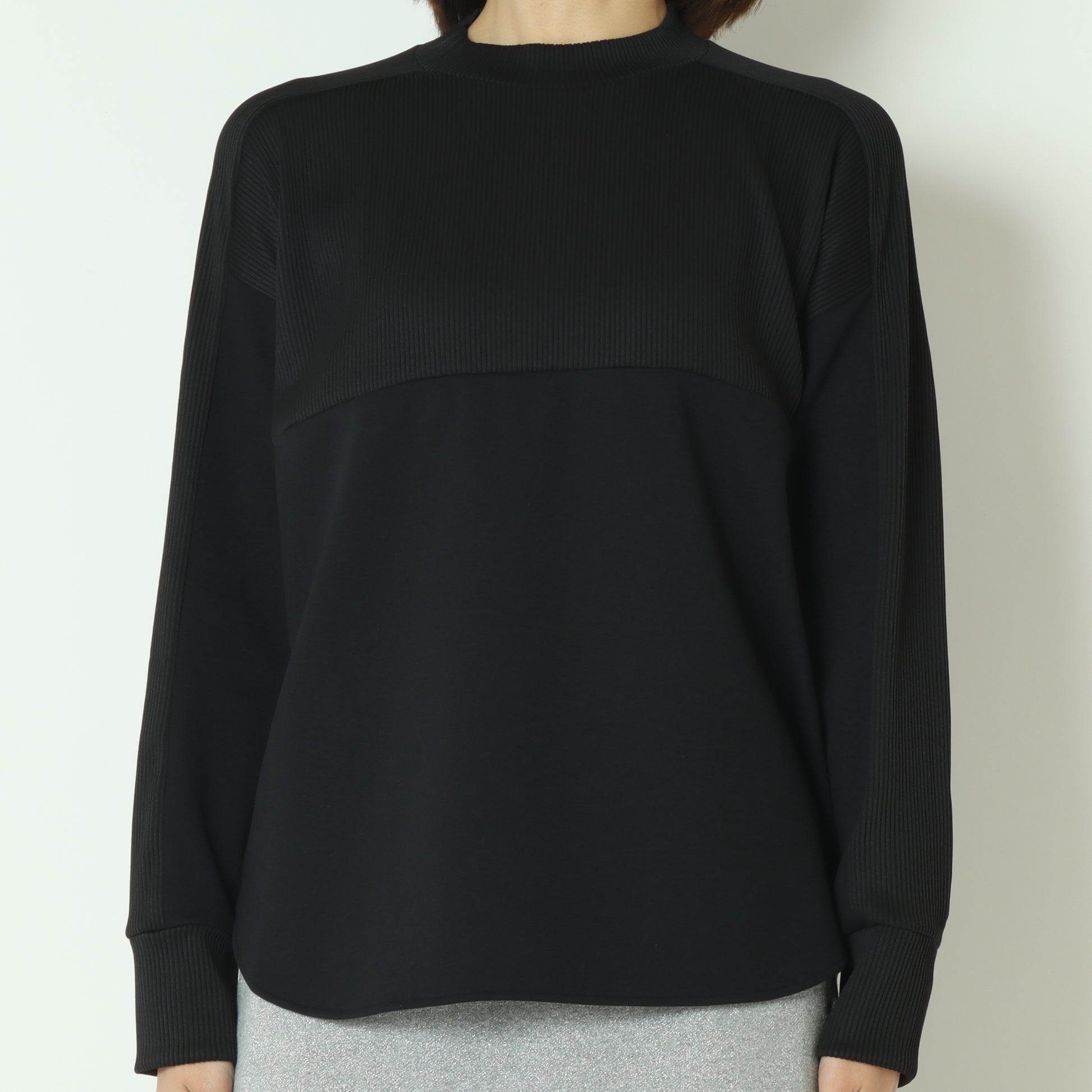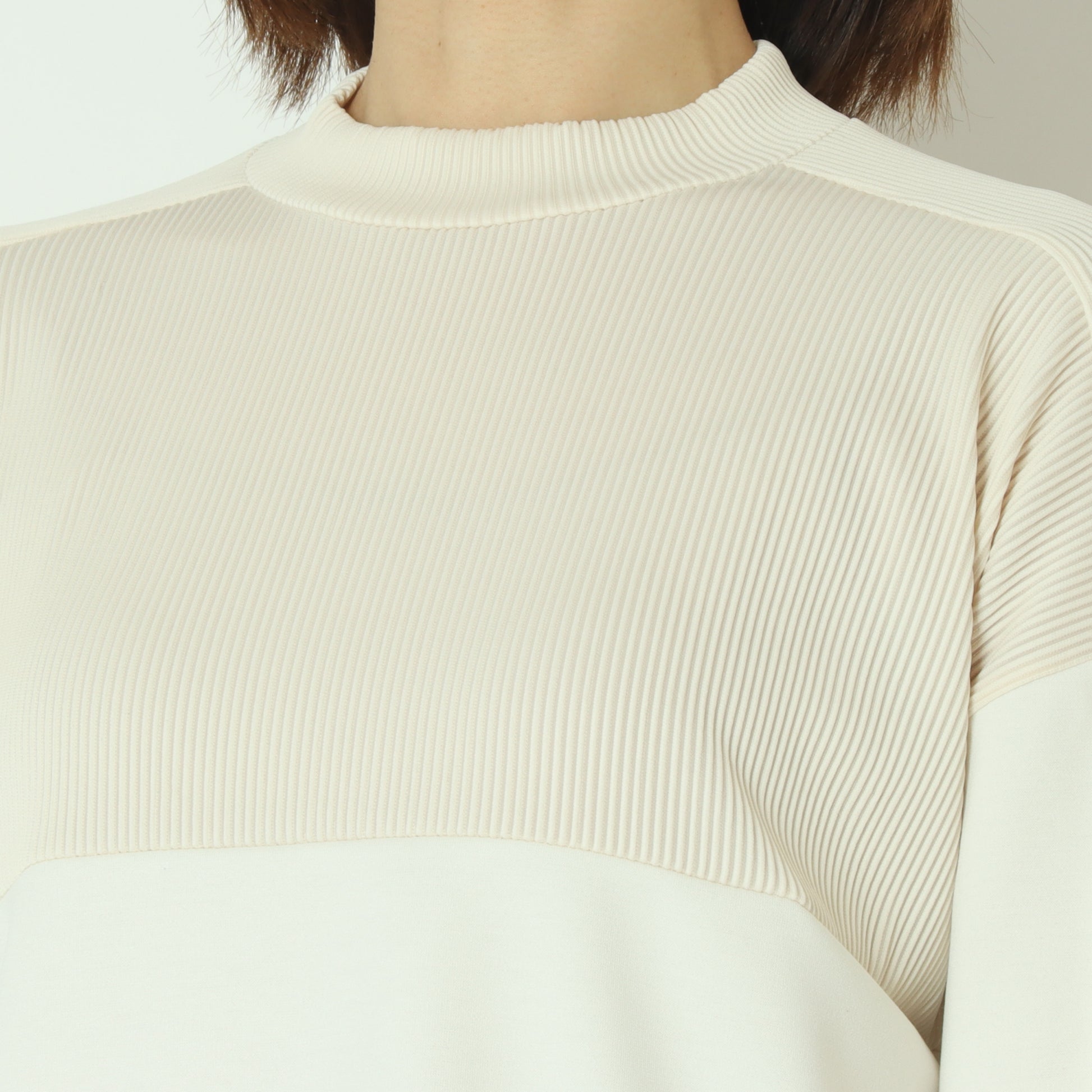 身頃上部と袖、袖口にリブ素材が切り替えでデザインされている長袖のカットソー。