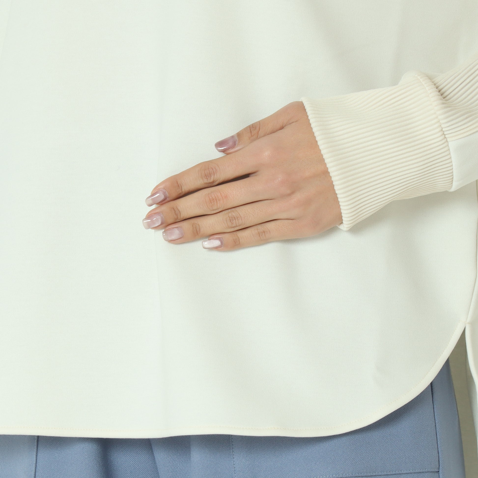 ややゆとりのあるサイズ感ですが、程よく落ち感があるので着膨れせず、一枚でさらっと着ていただけます。