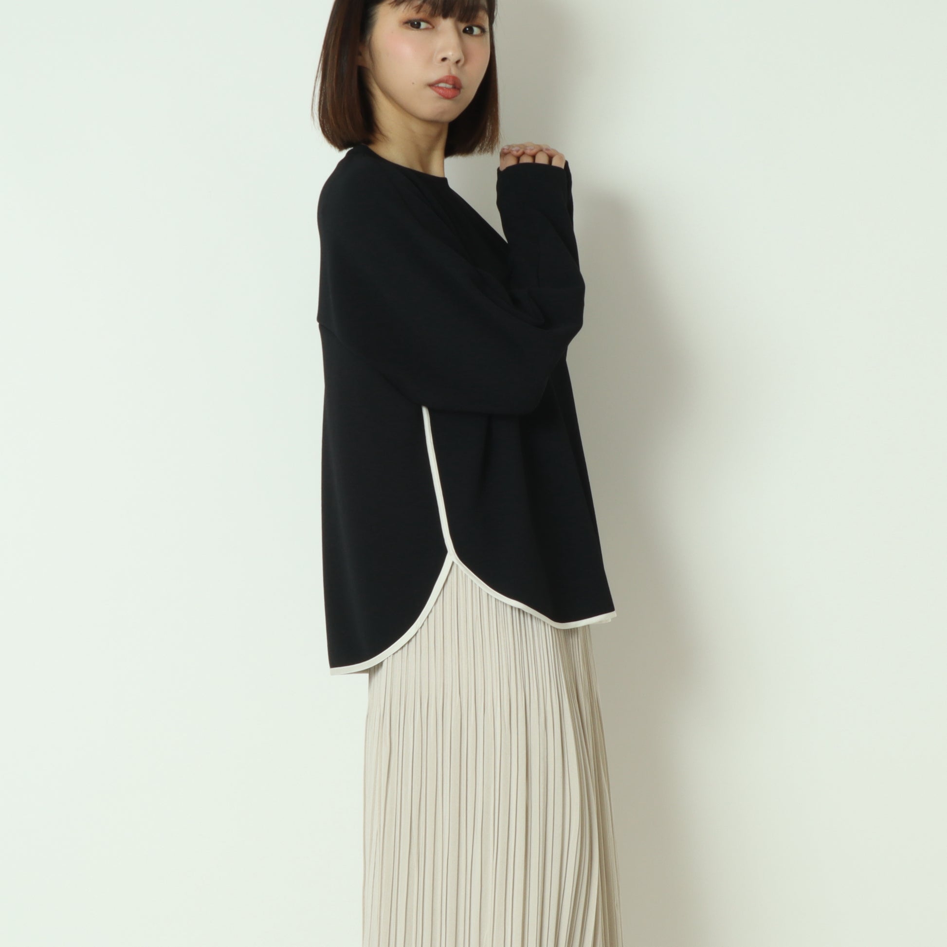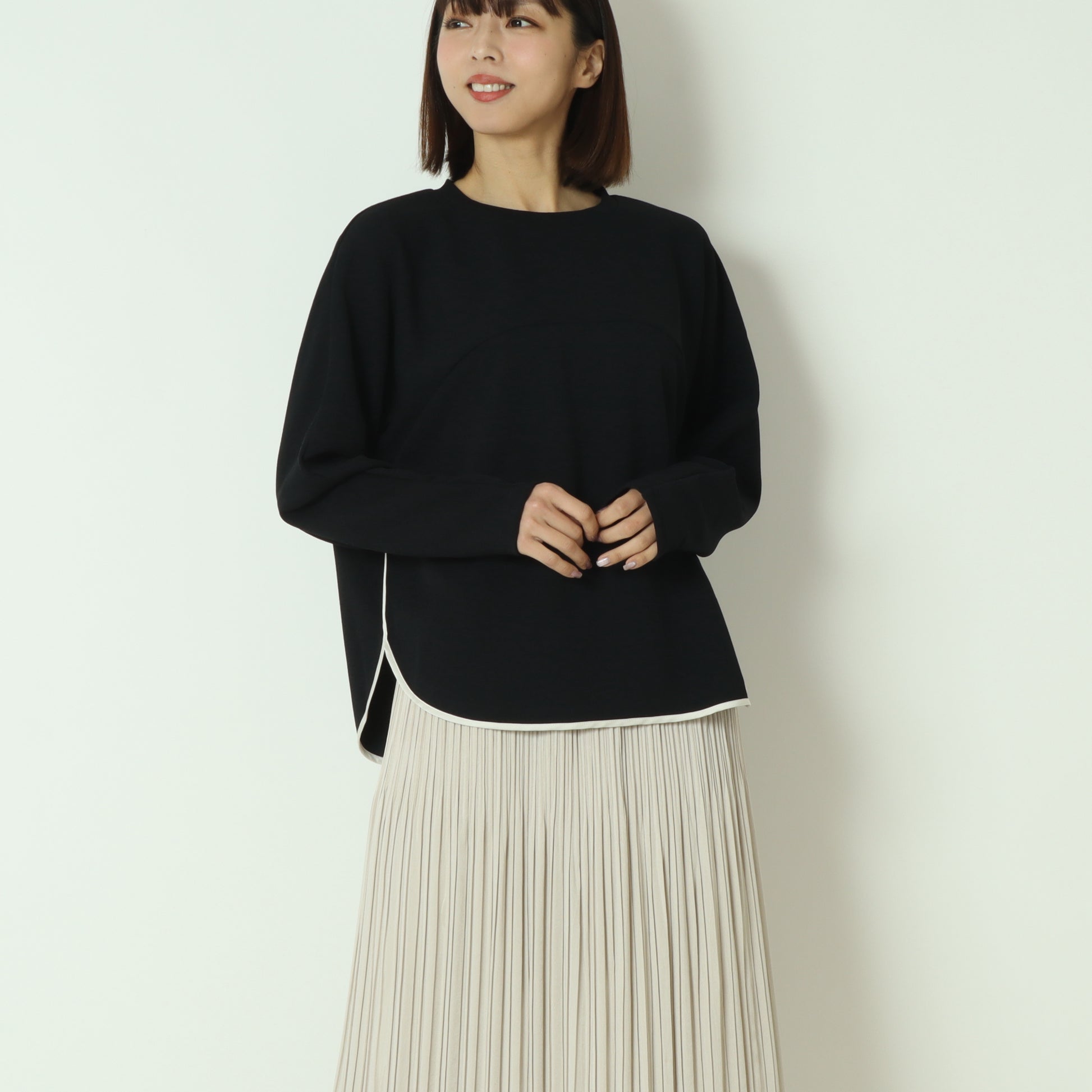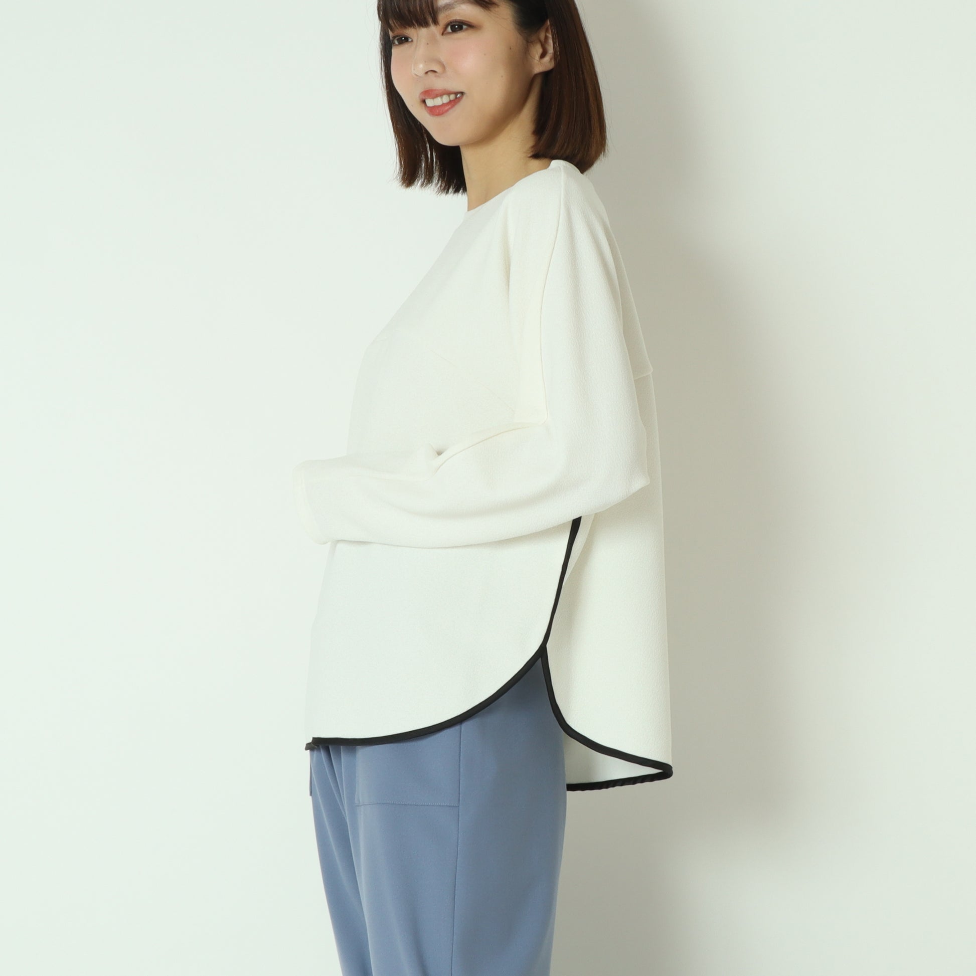 胸元の切り替えとサイド・裾の配色パイピングが技ありデザインのプルオーバーカットソー。