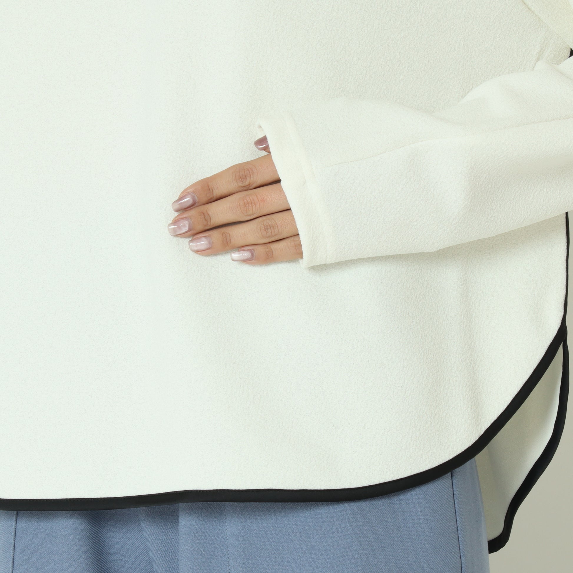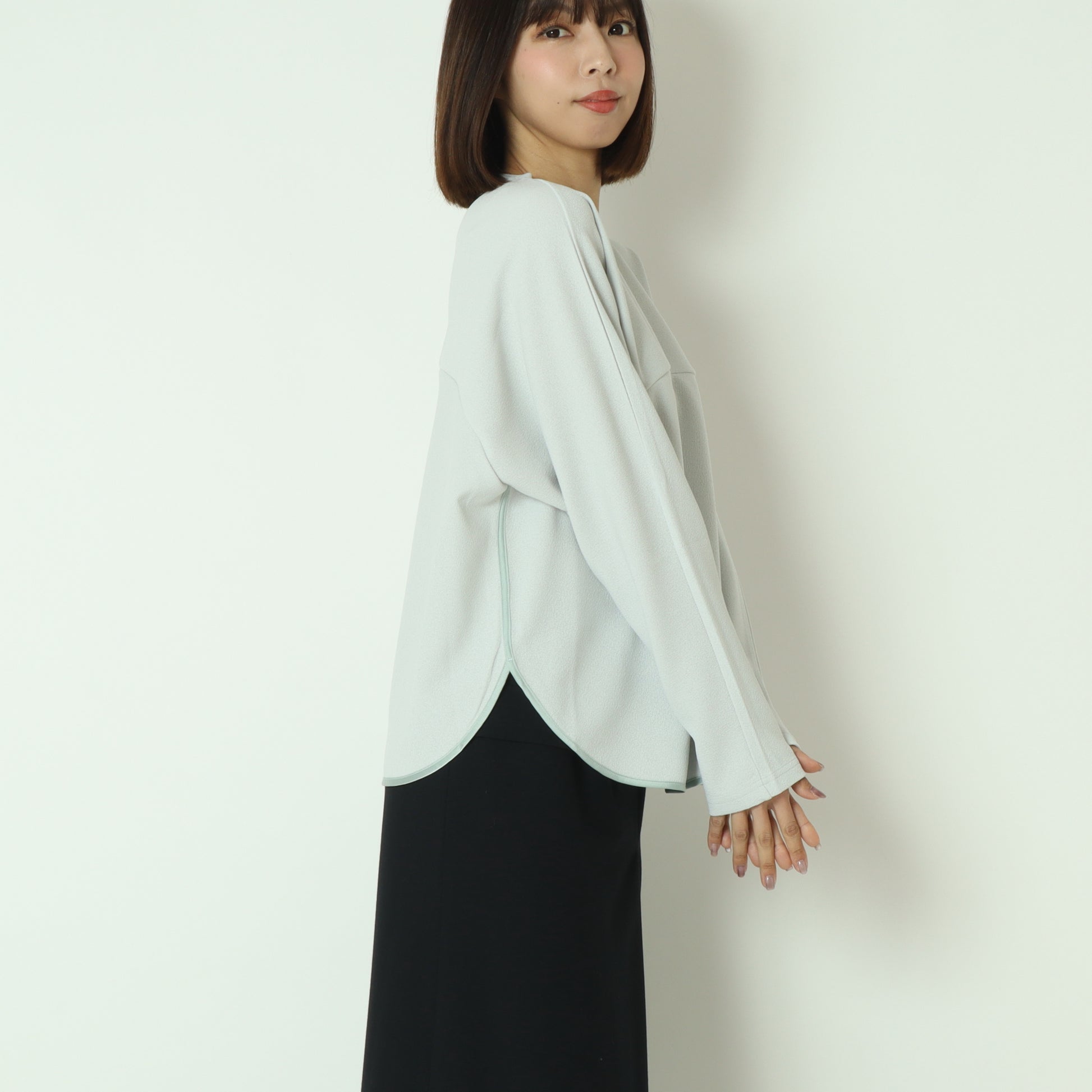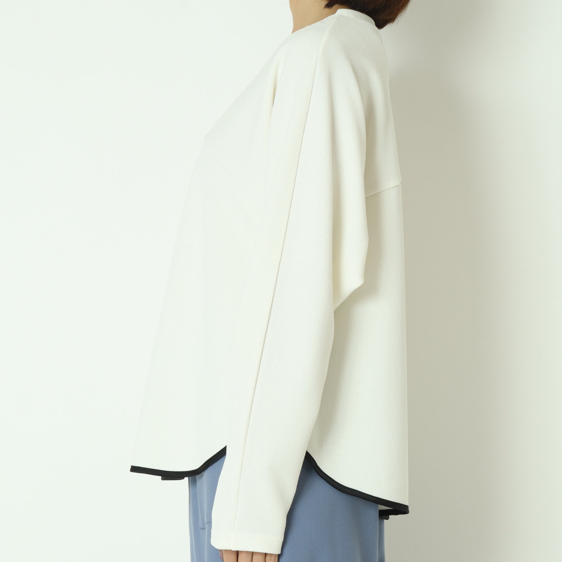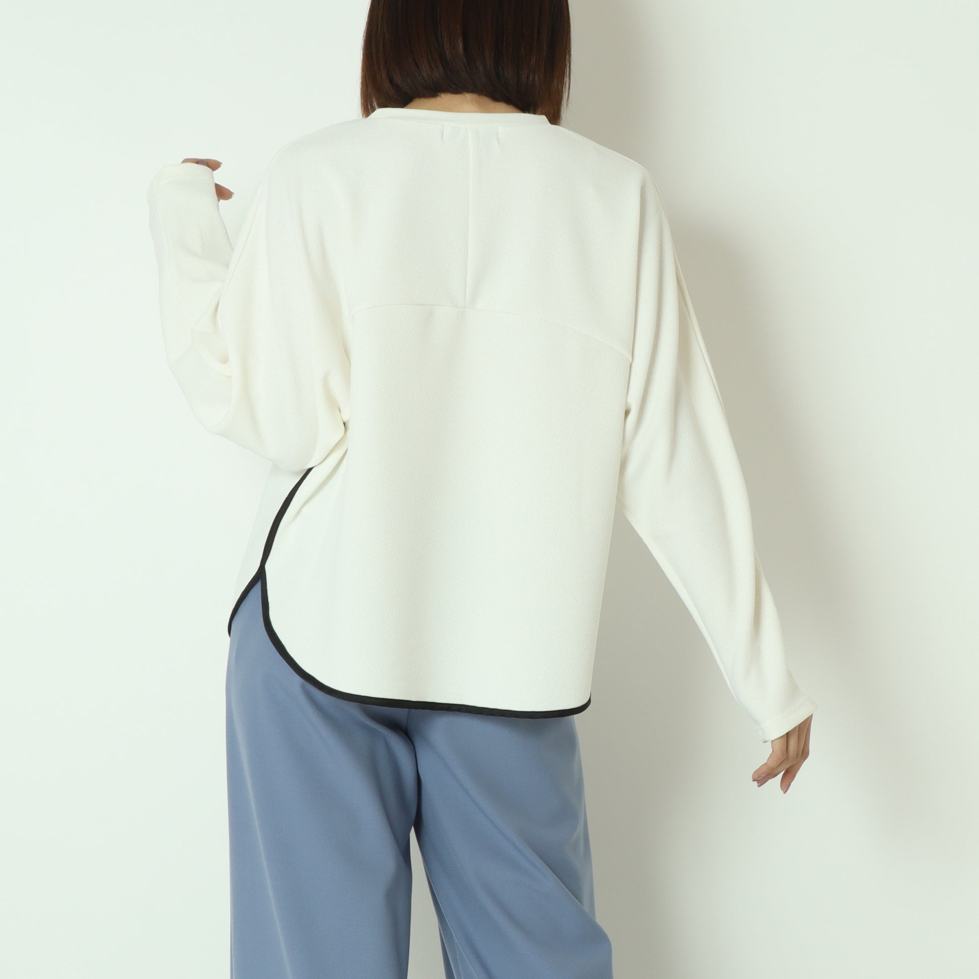 胸元の切り替えとサイド・裾の配色パイピングが技ありデザインのプルオーバーカットソー。