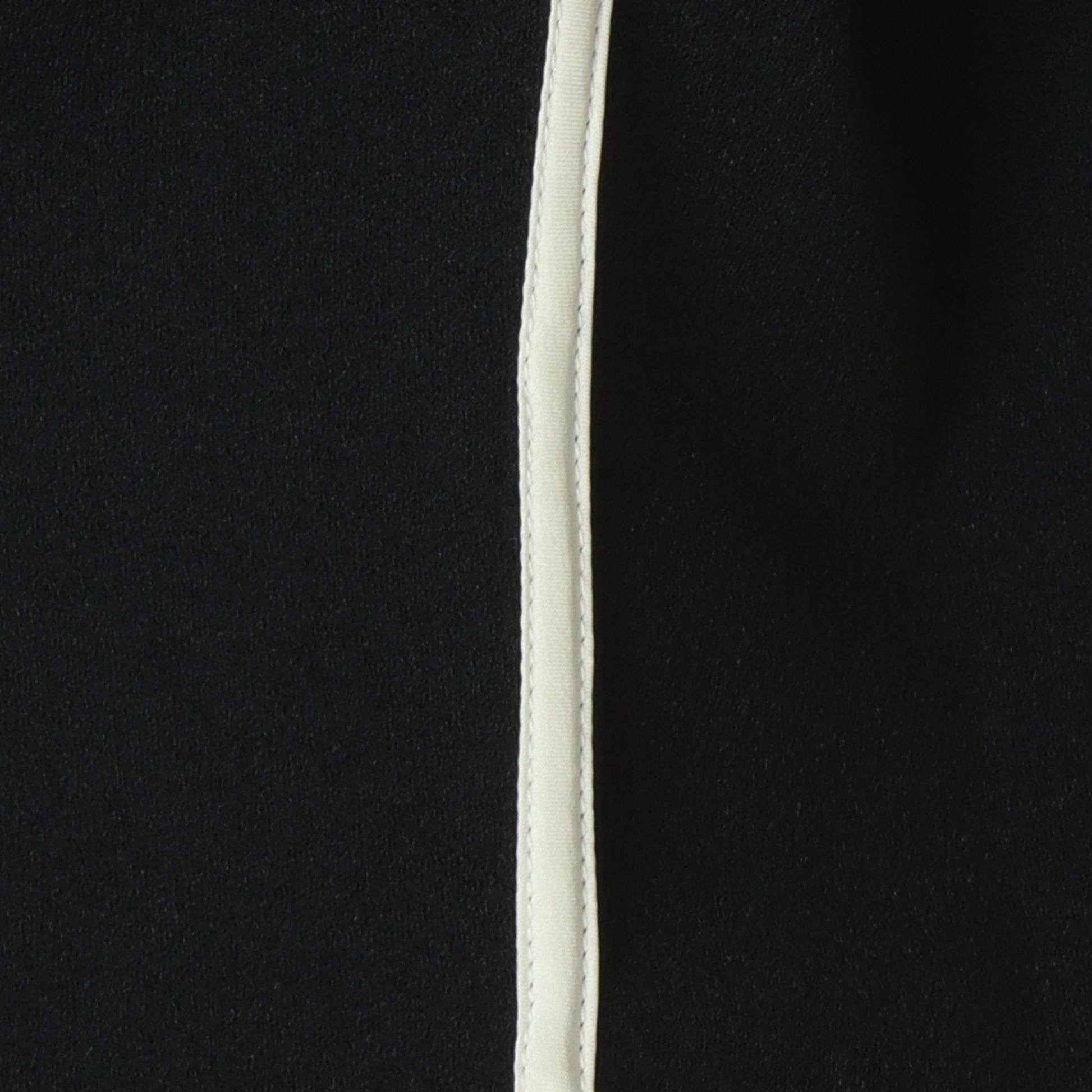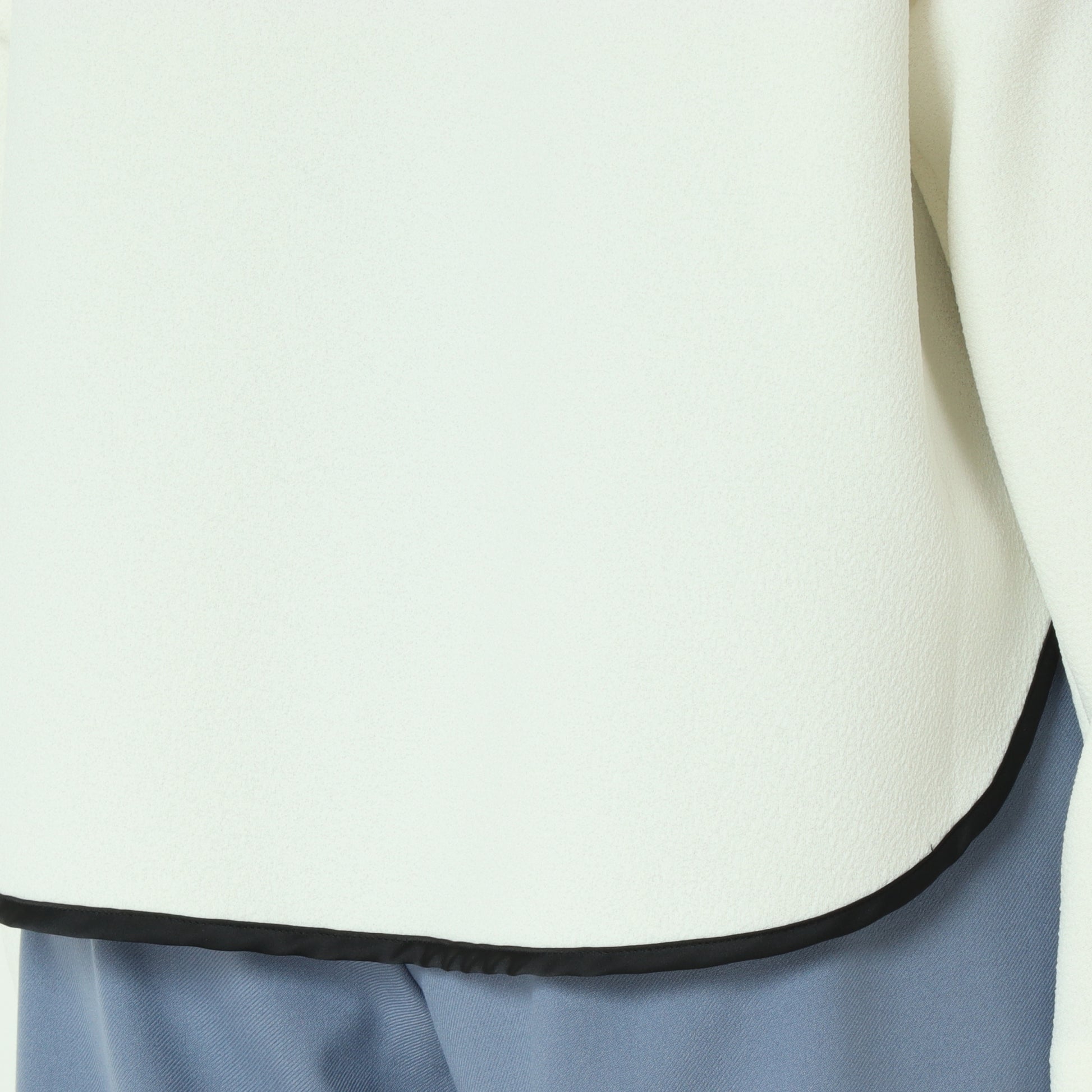 ゆったりとしたオーバーサイズシルエットで、リラックス感がありながらも、パイピングがアクセントとなりきれいめな印象を与えます。