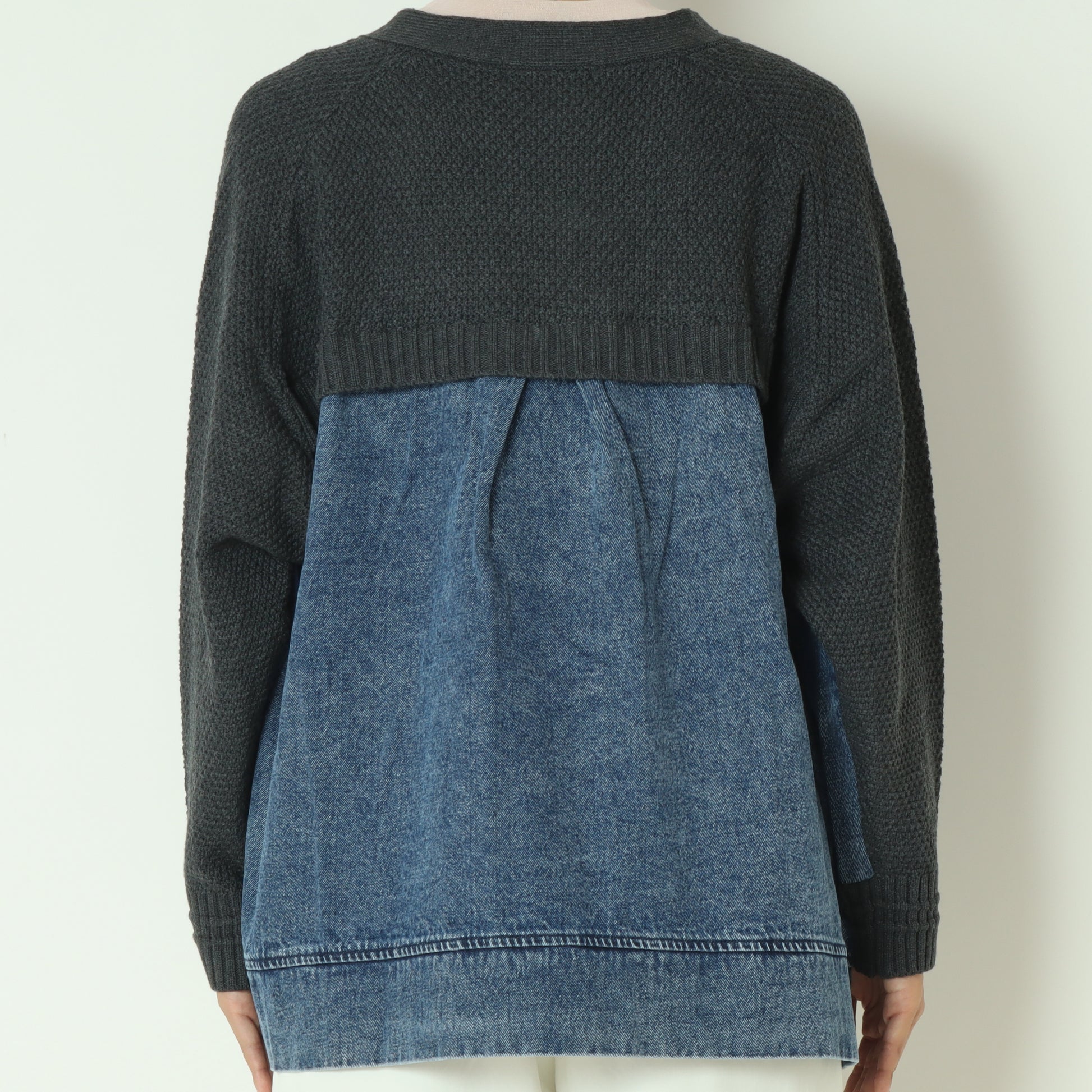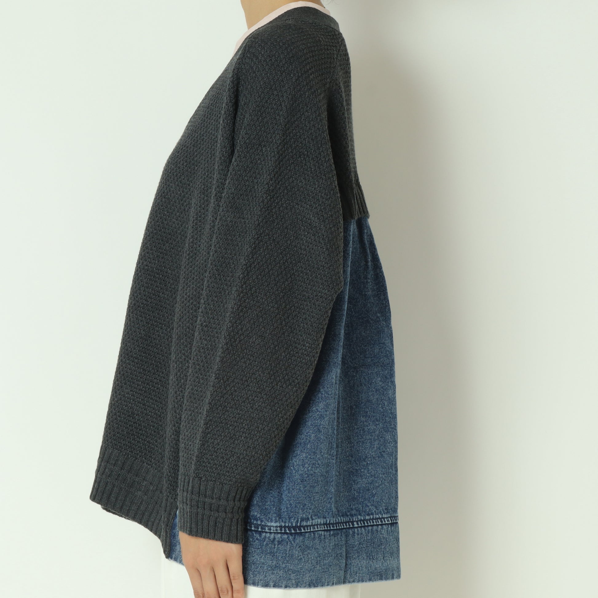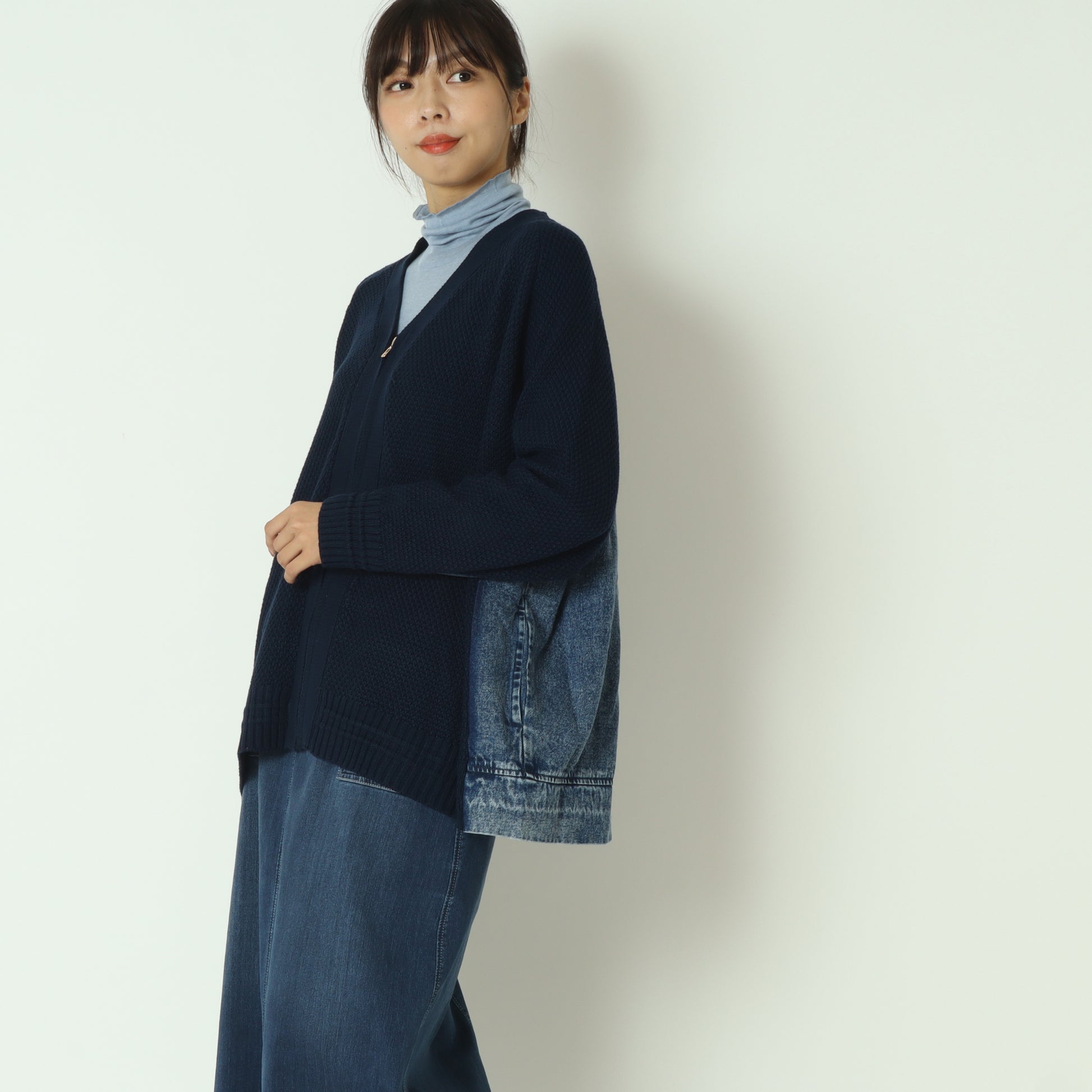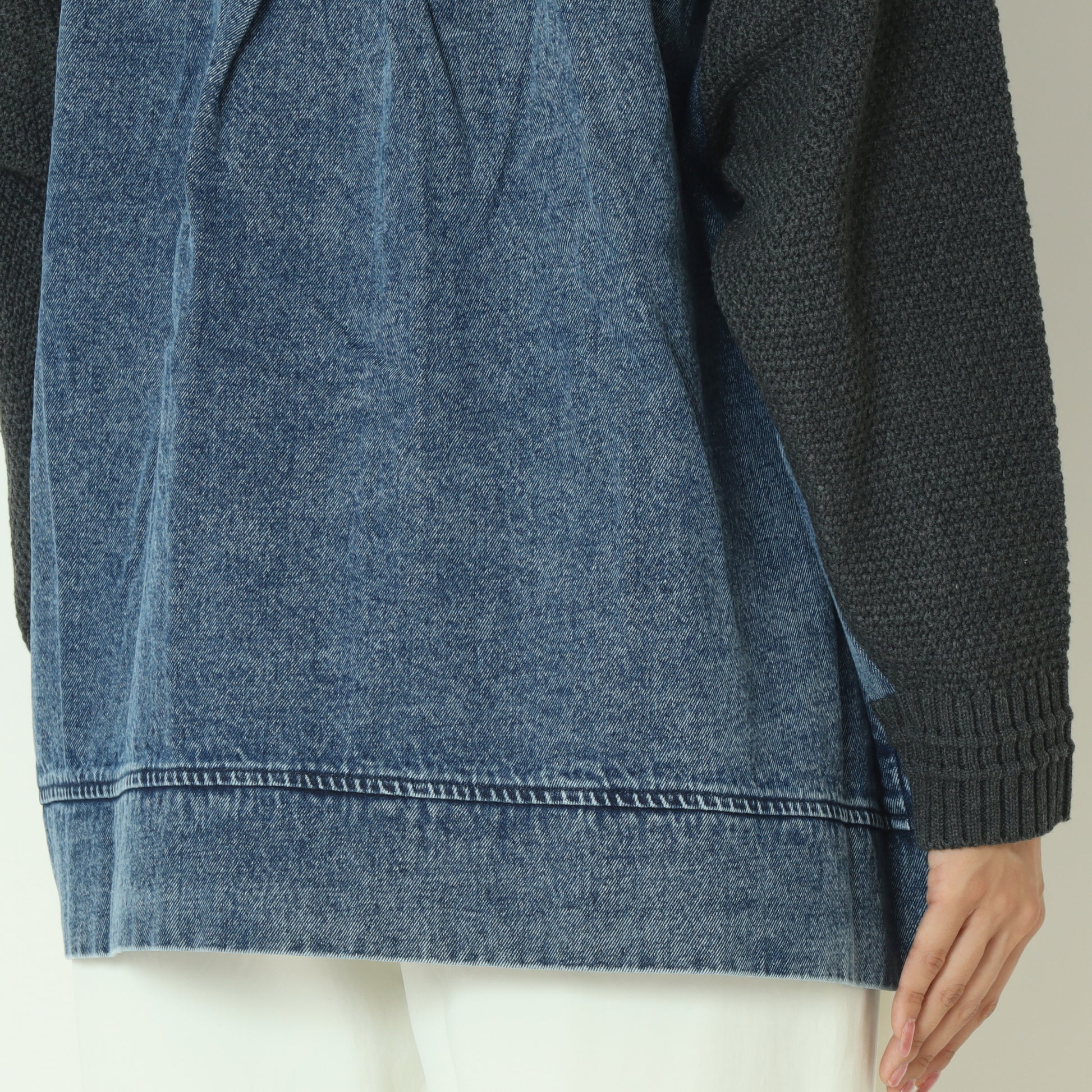 しっかりとした綿のデニム生地と、アクリルコットンの柔らかい編地を使用。
