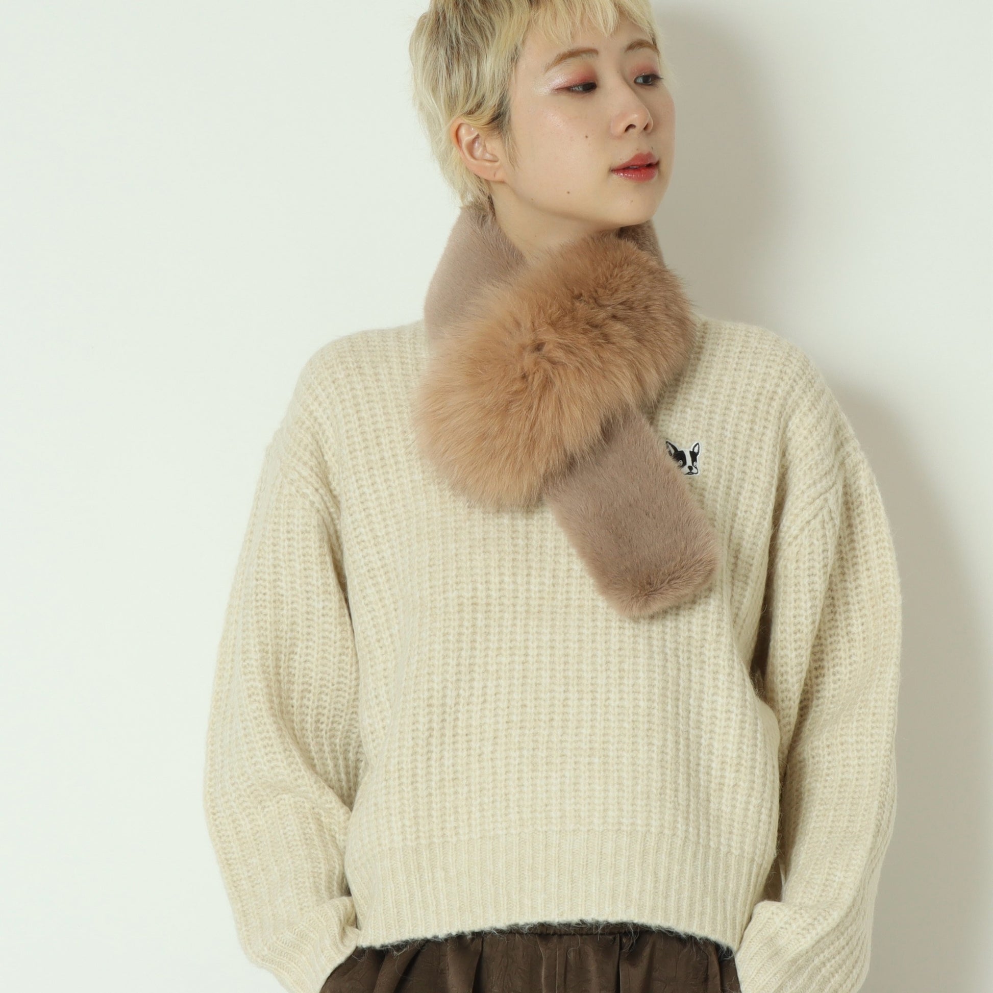 柔らかく、繊細な毛並みが特徴のフォックスファーを使用したマフラー。