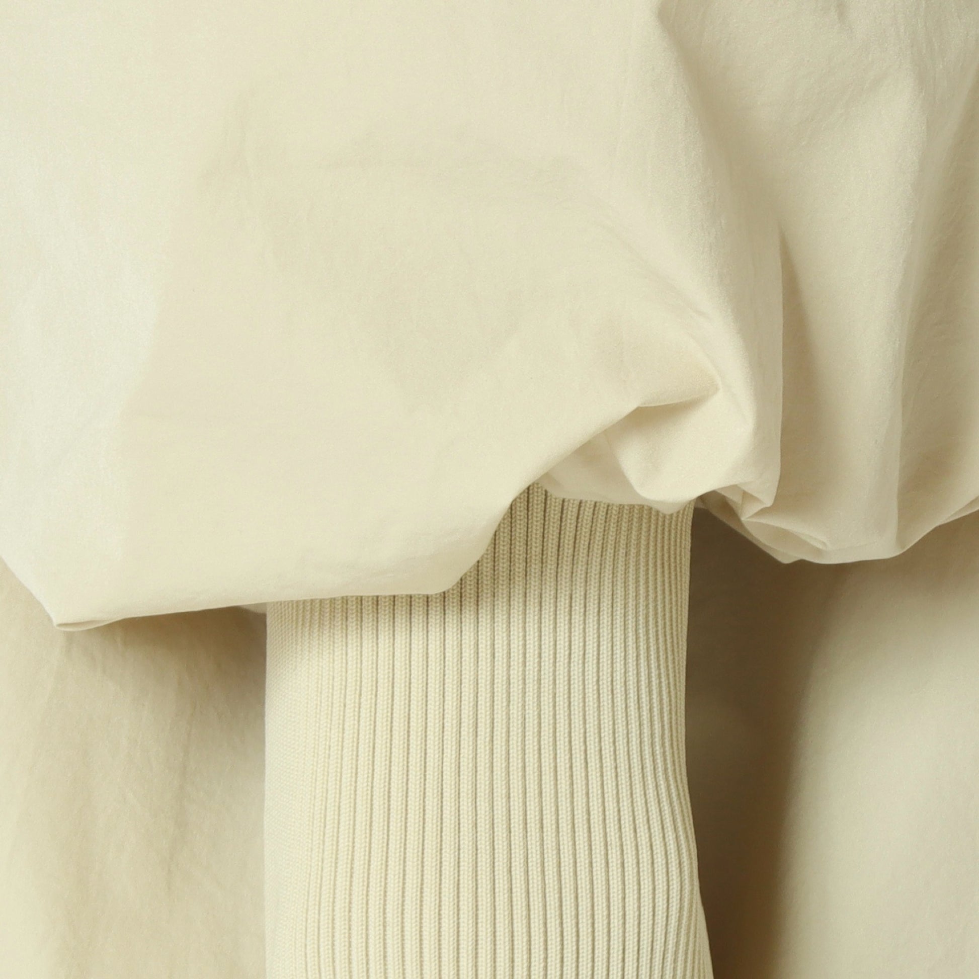 長めに設定されたストレッチリブニット袖&パフスリーブがポイントで、お袖を少し持ち上げて着るとこなれ感のある盛り袖スタイルにも◎