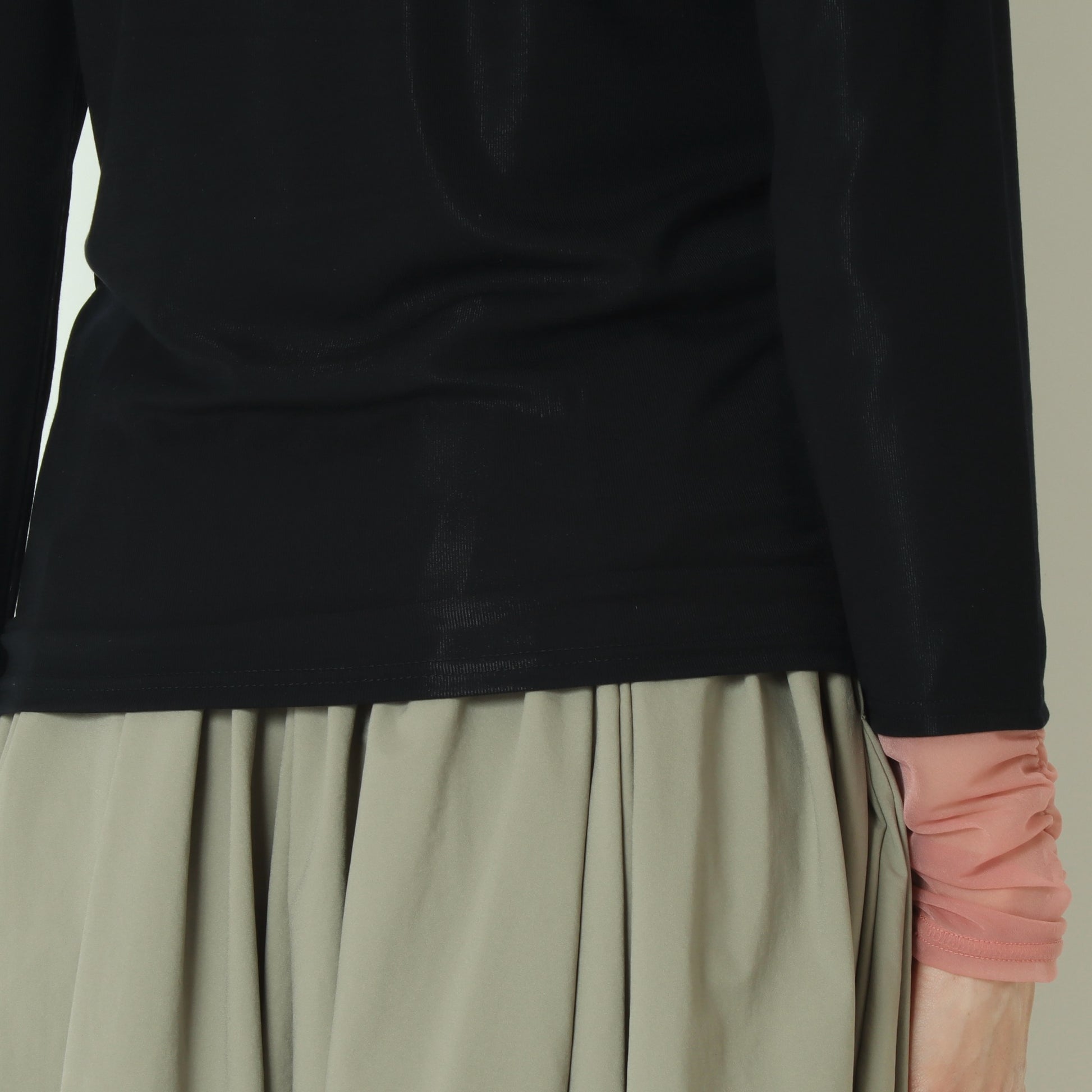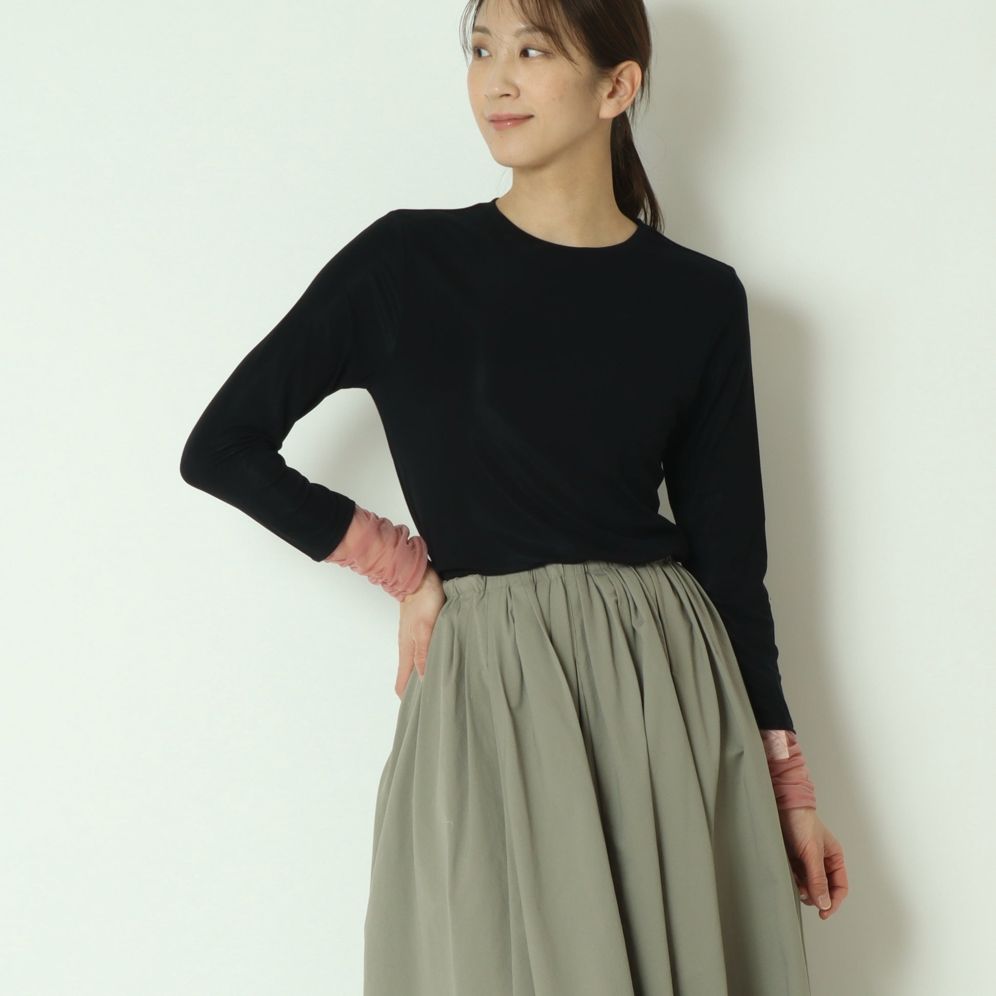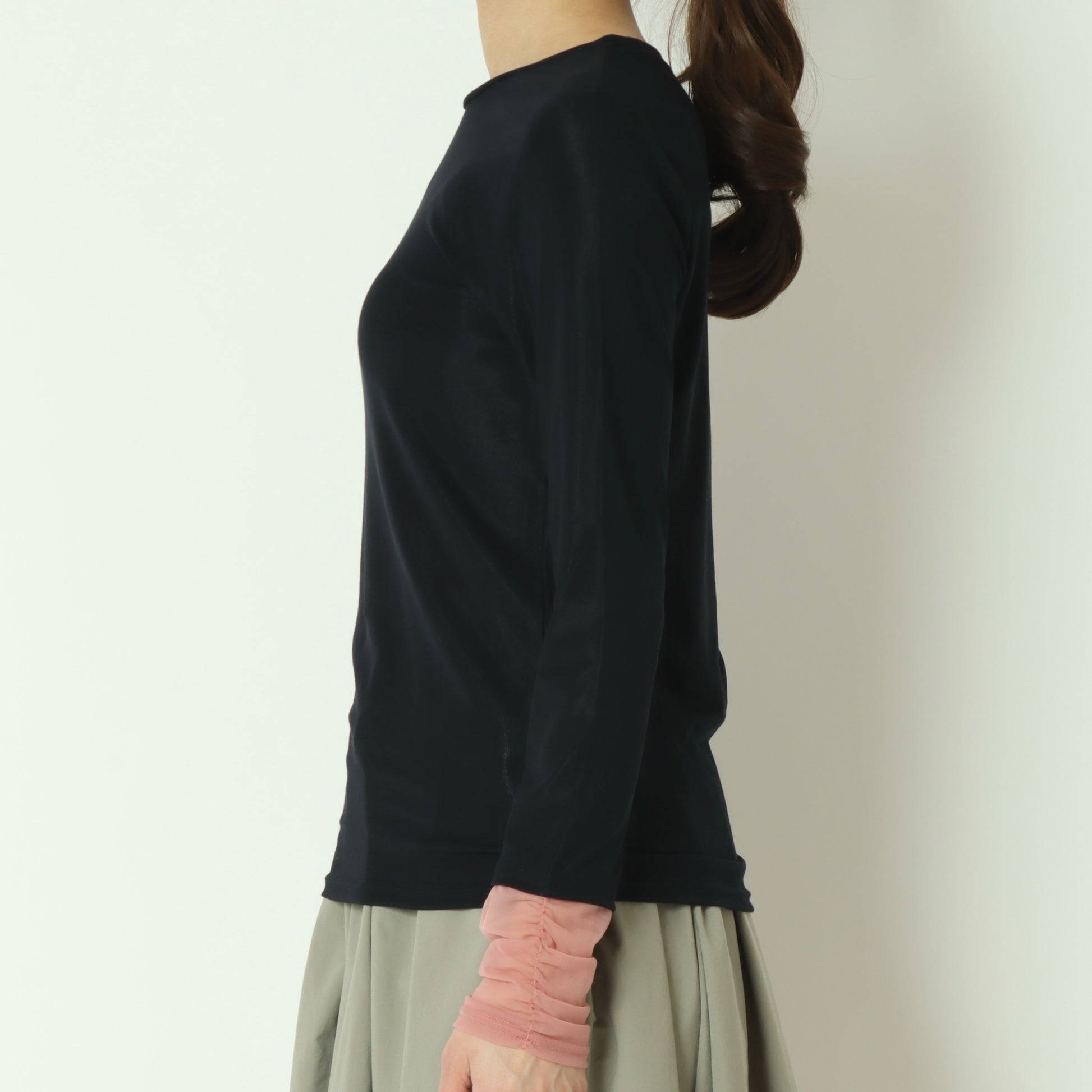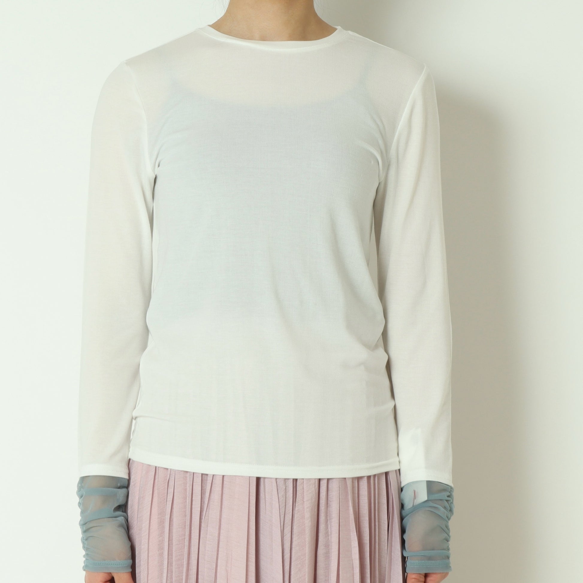 一枚で着るのはもちろん、スウェットやニットに重ねて袖口を覗かせたり、ベストやジャケットのインナーとしても活躍し、幅広く着まわしていただける優秀な一枚です。