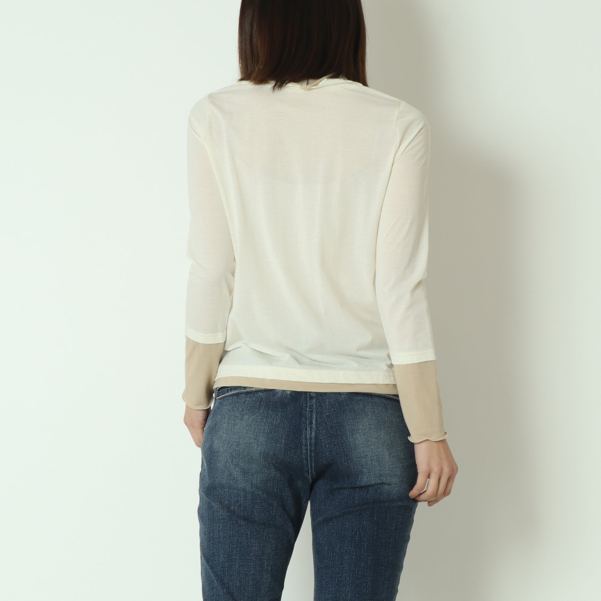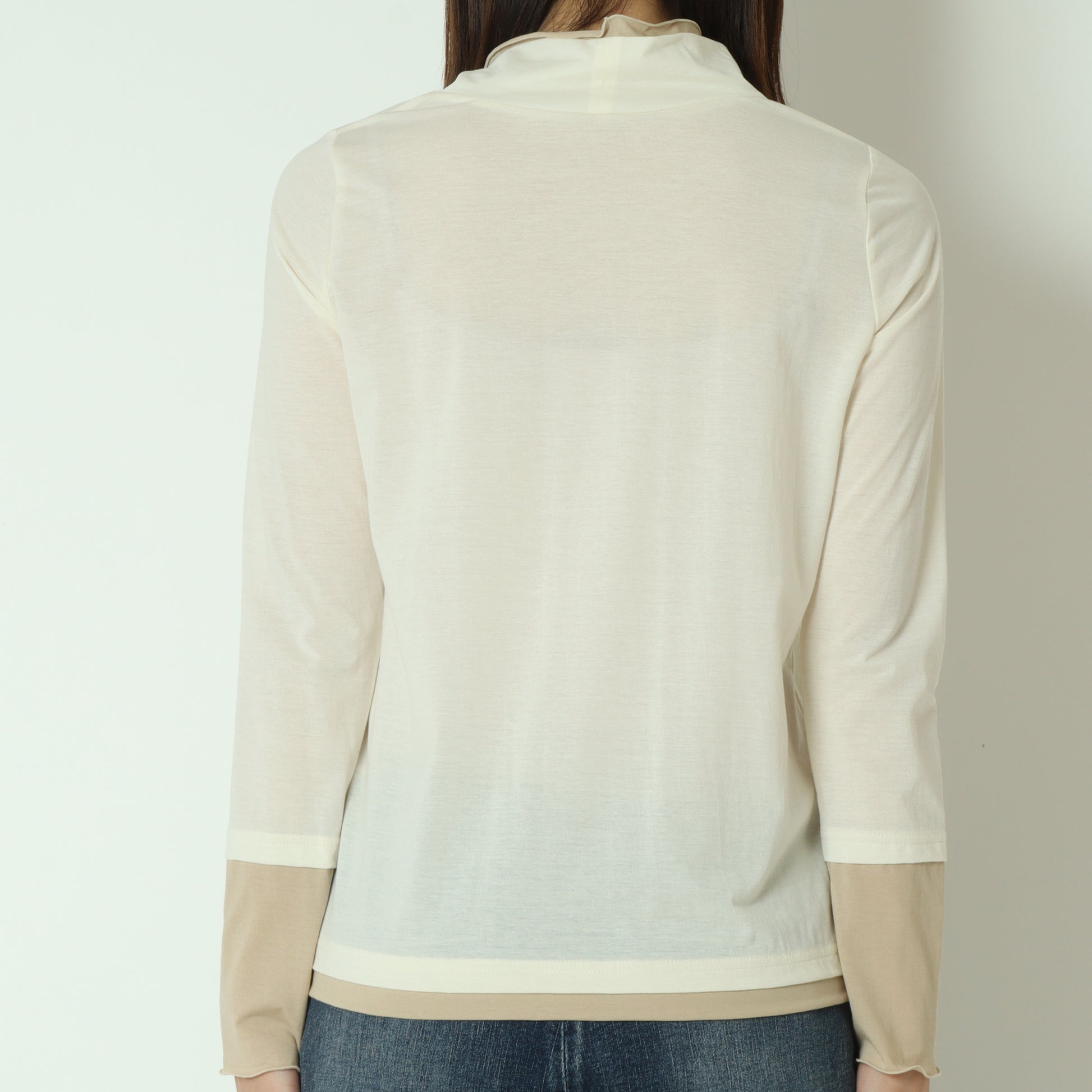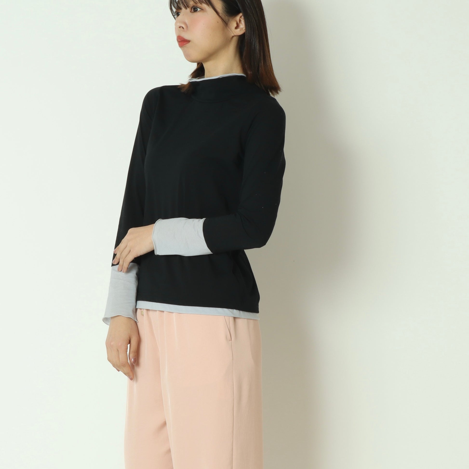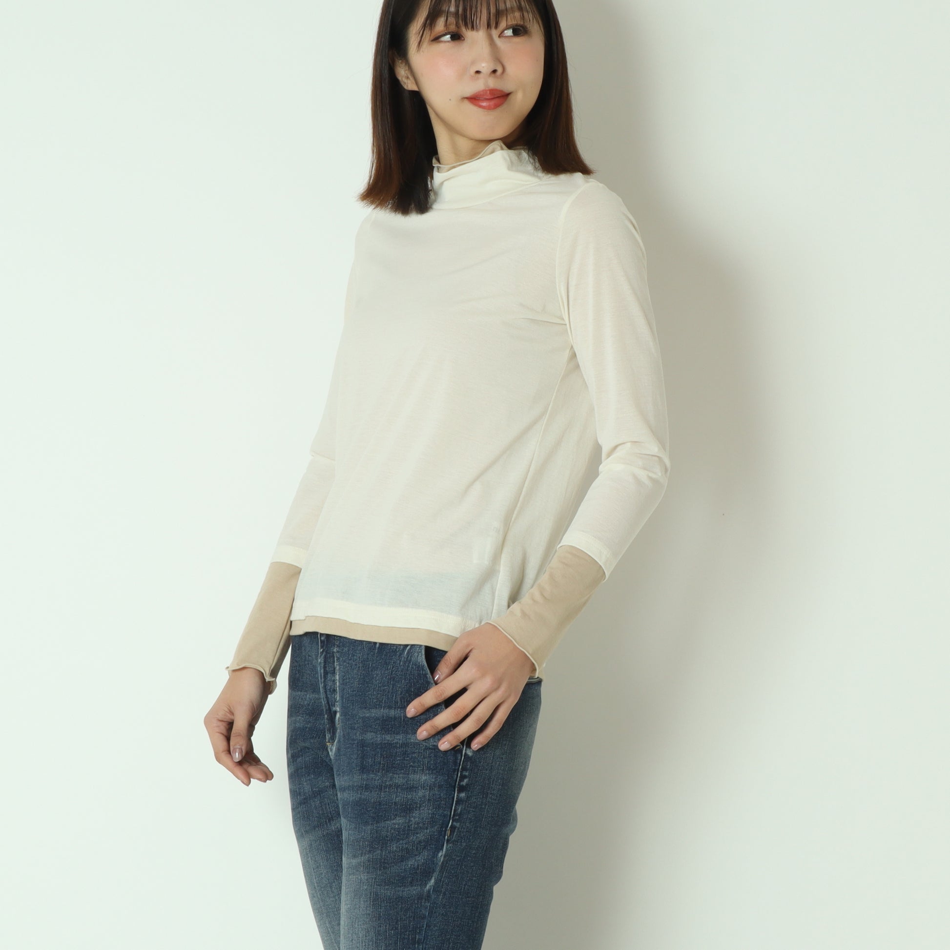 春夏シーズンにはキャミソールやタンクトップとのレイヤードスタイル、秋冬シーズンにはニットやスウェットのインナーとしてご活用いただけます。