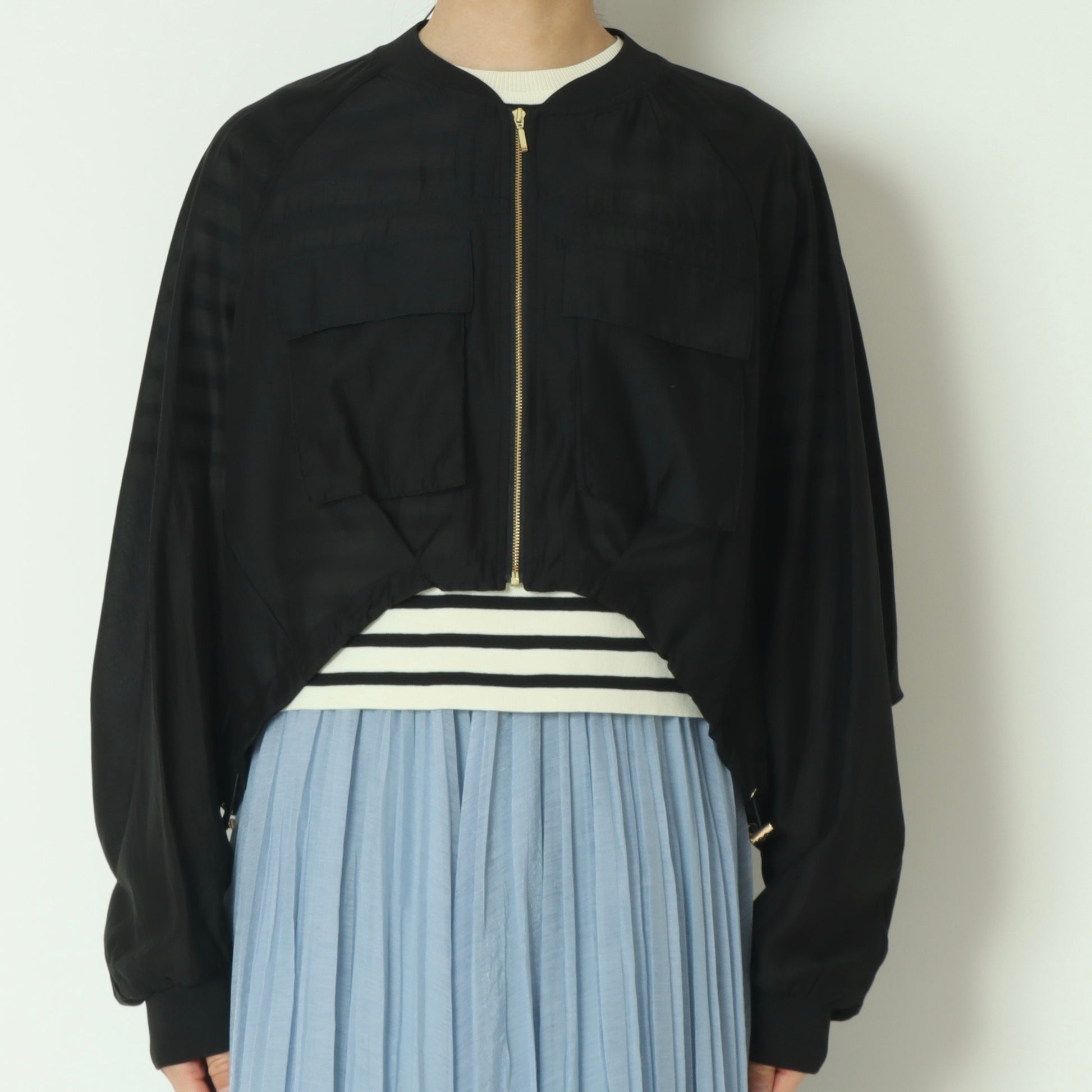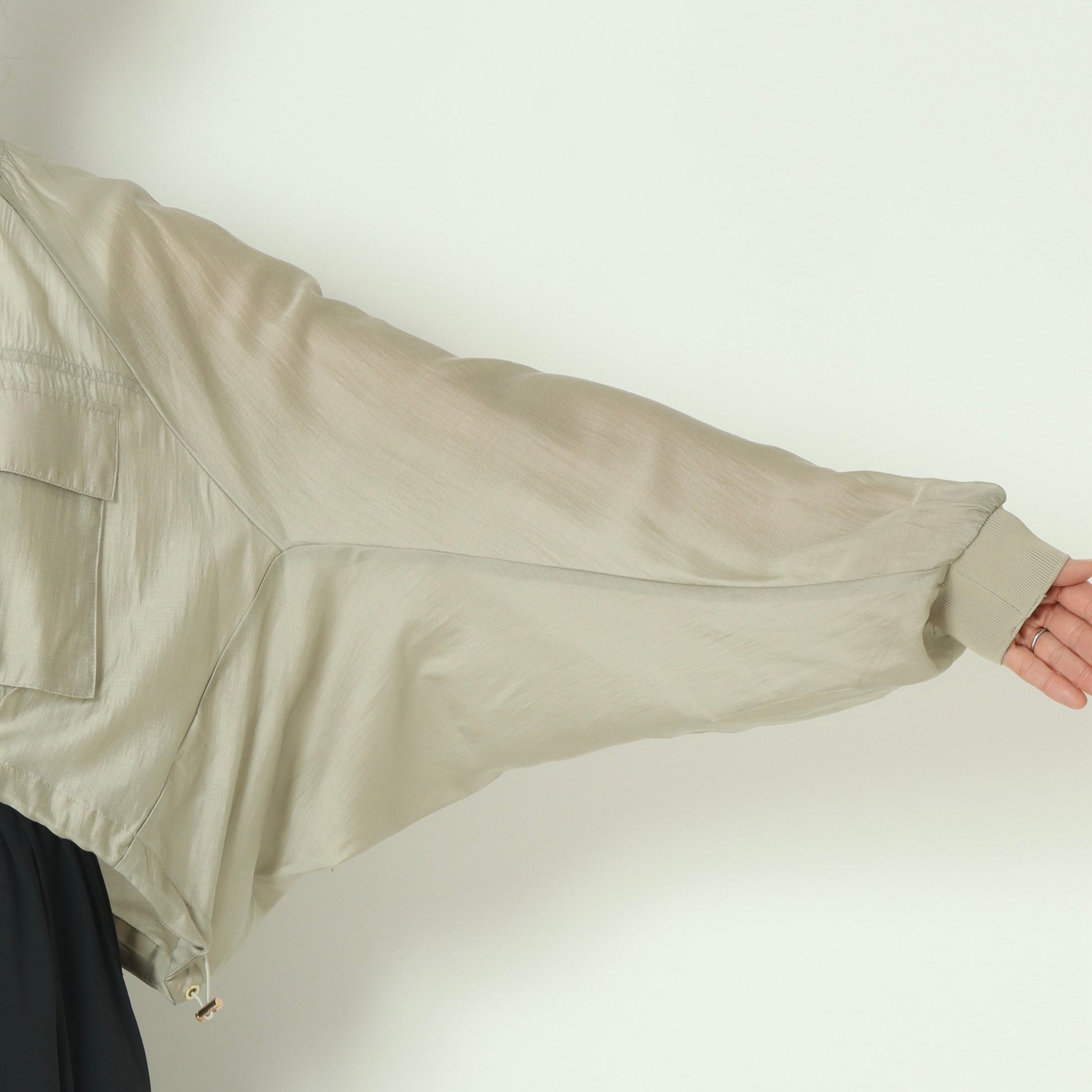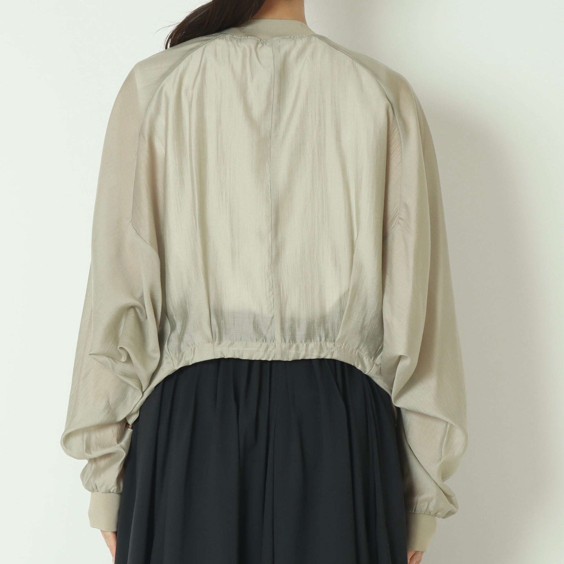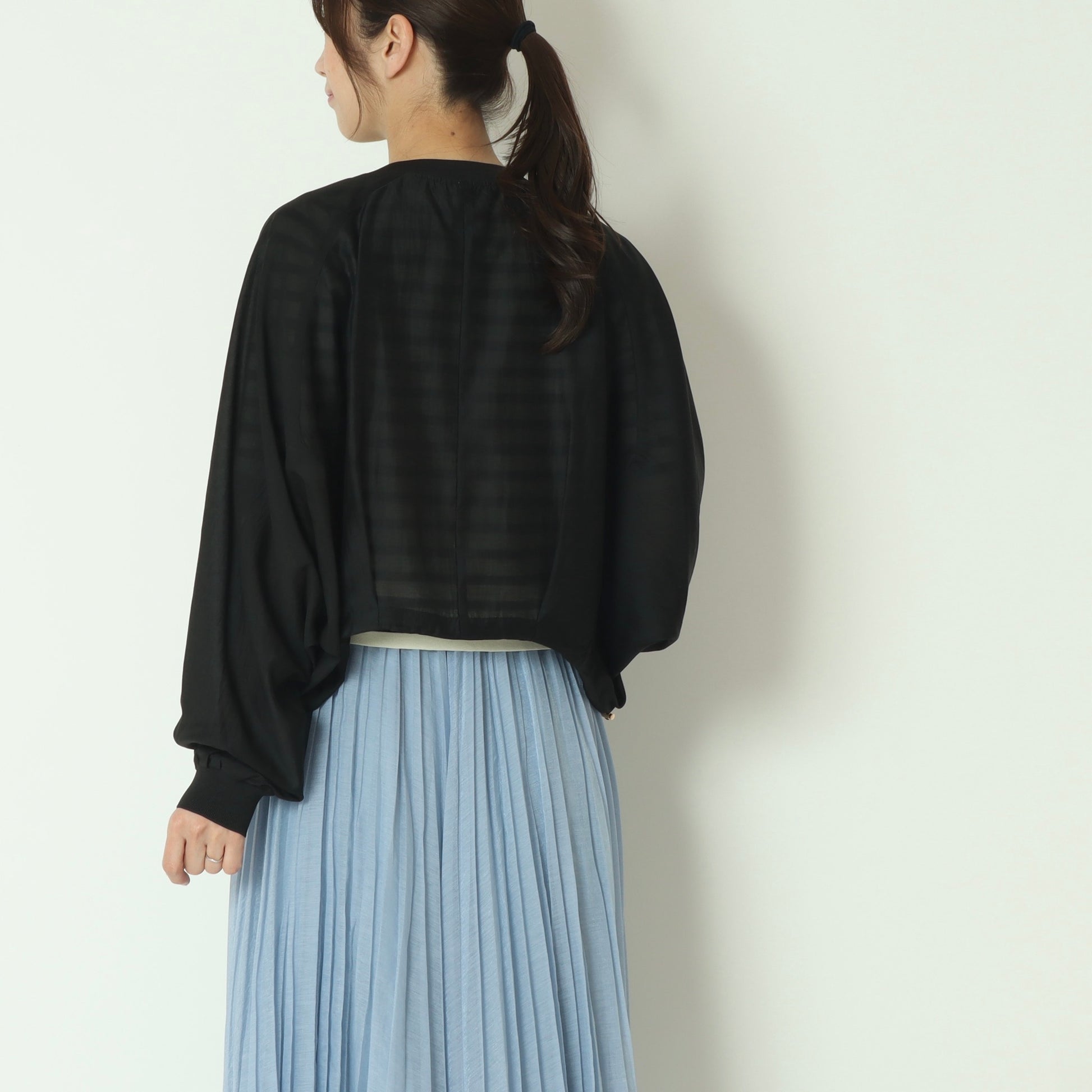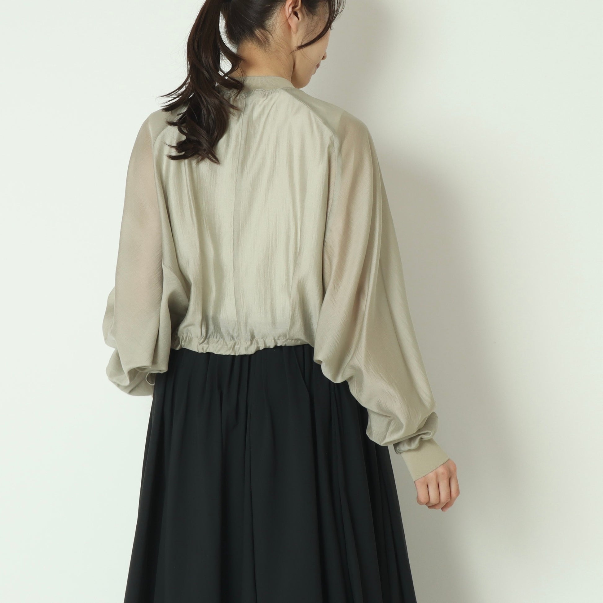シアー素材で仕立てたドルマンスリーブブルゾン。