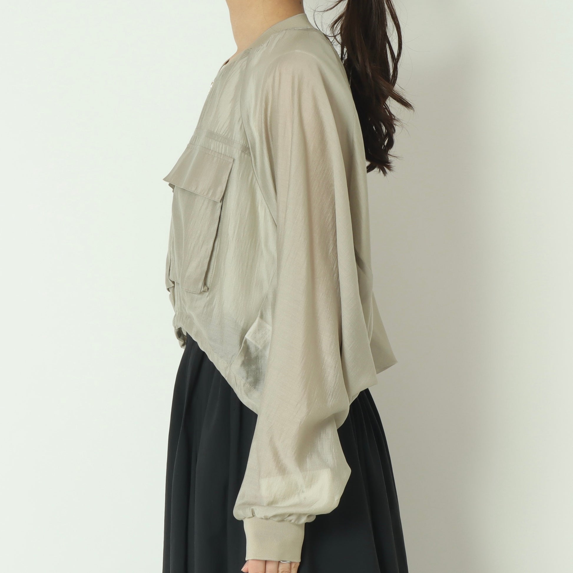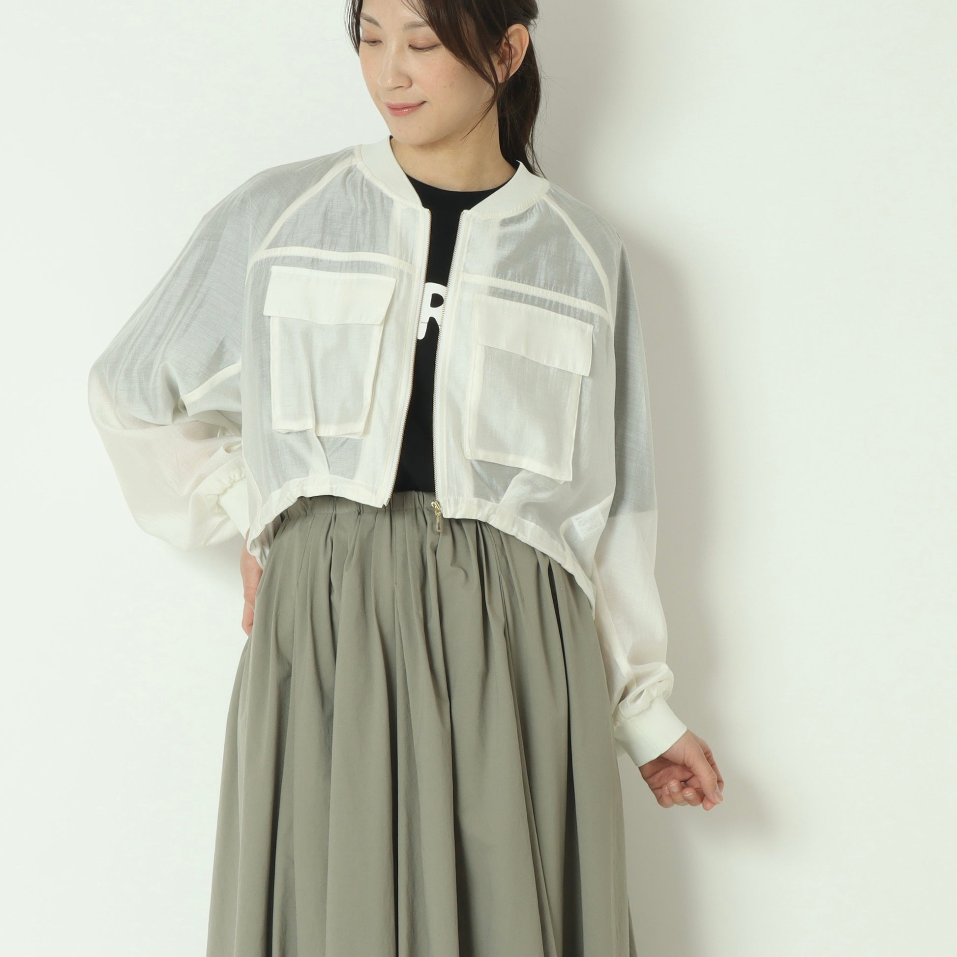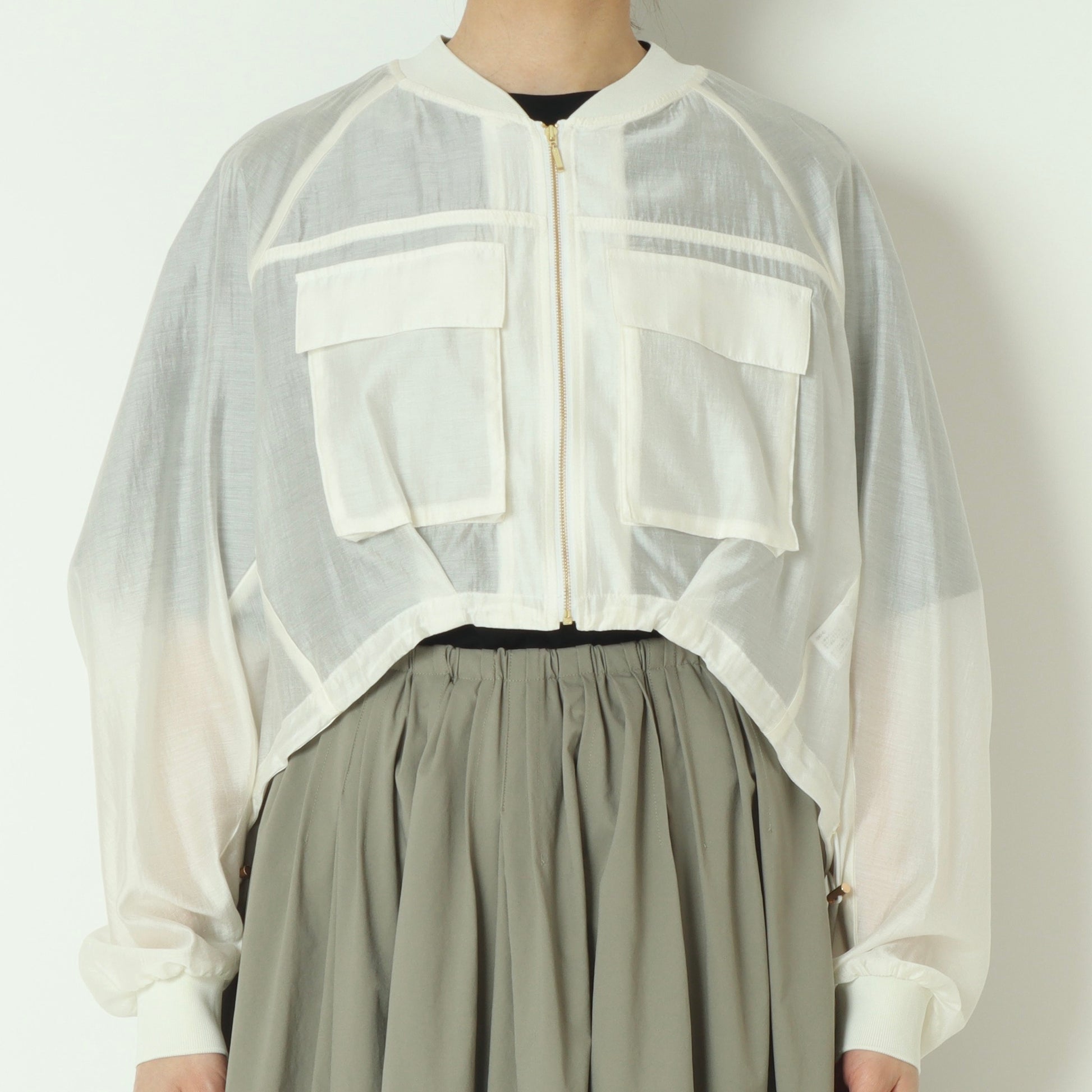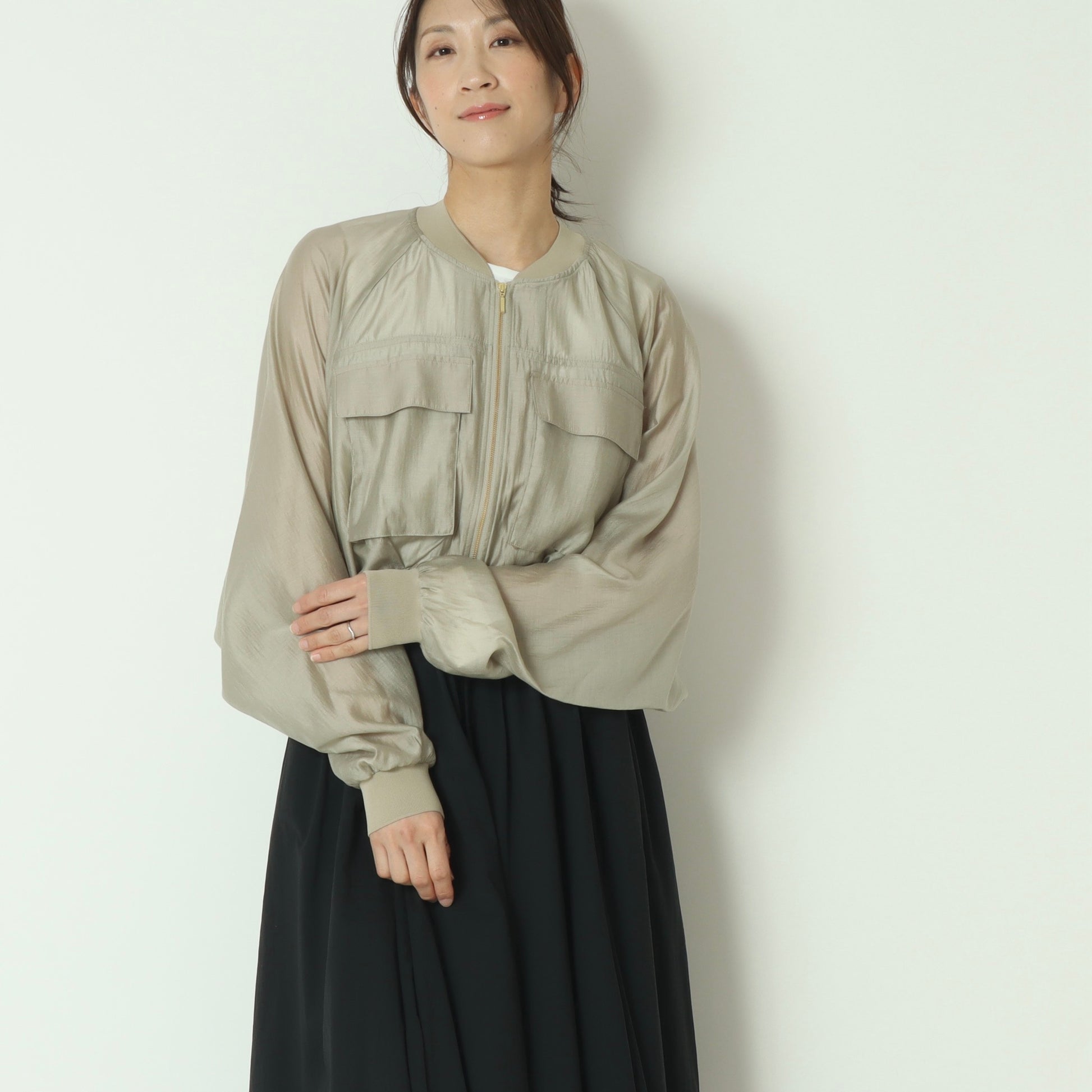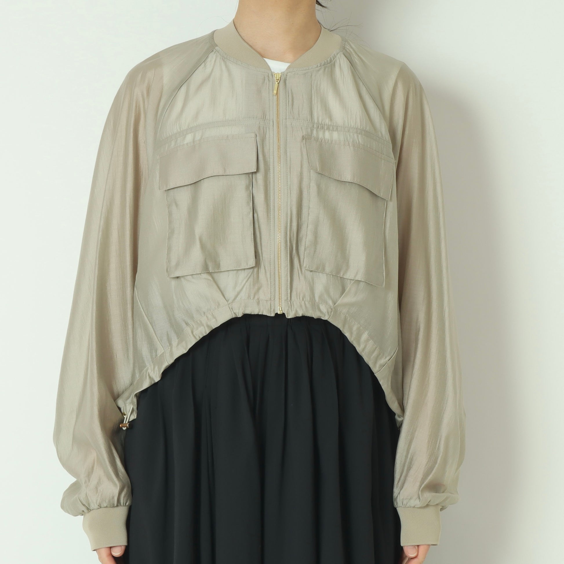 シアー素材で仕立てたドルマンスリーブブルゾン。