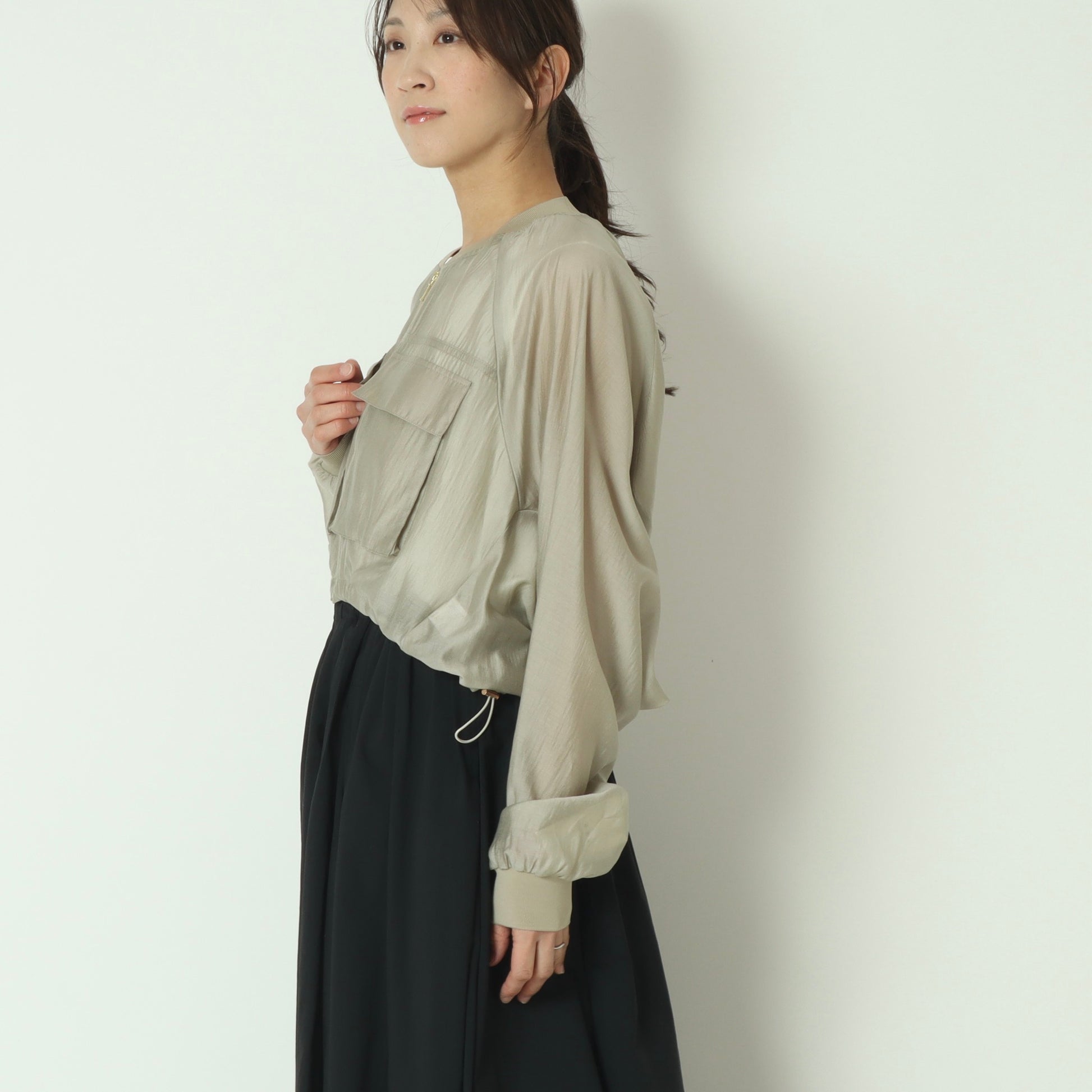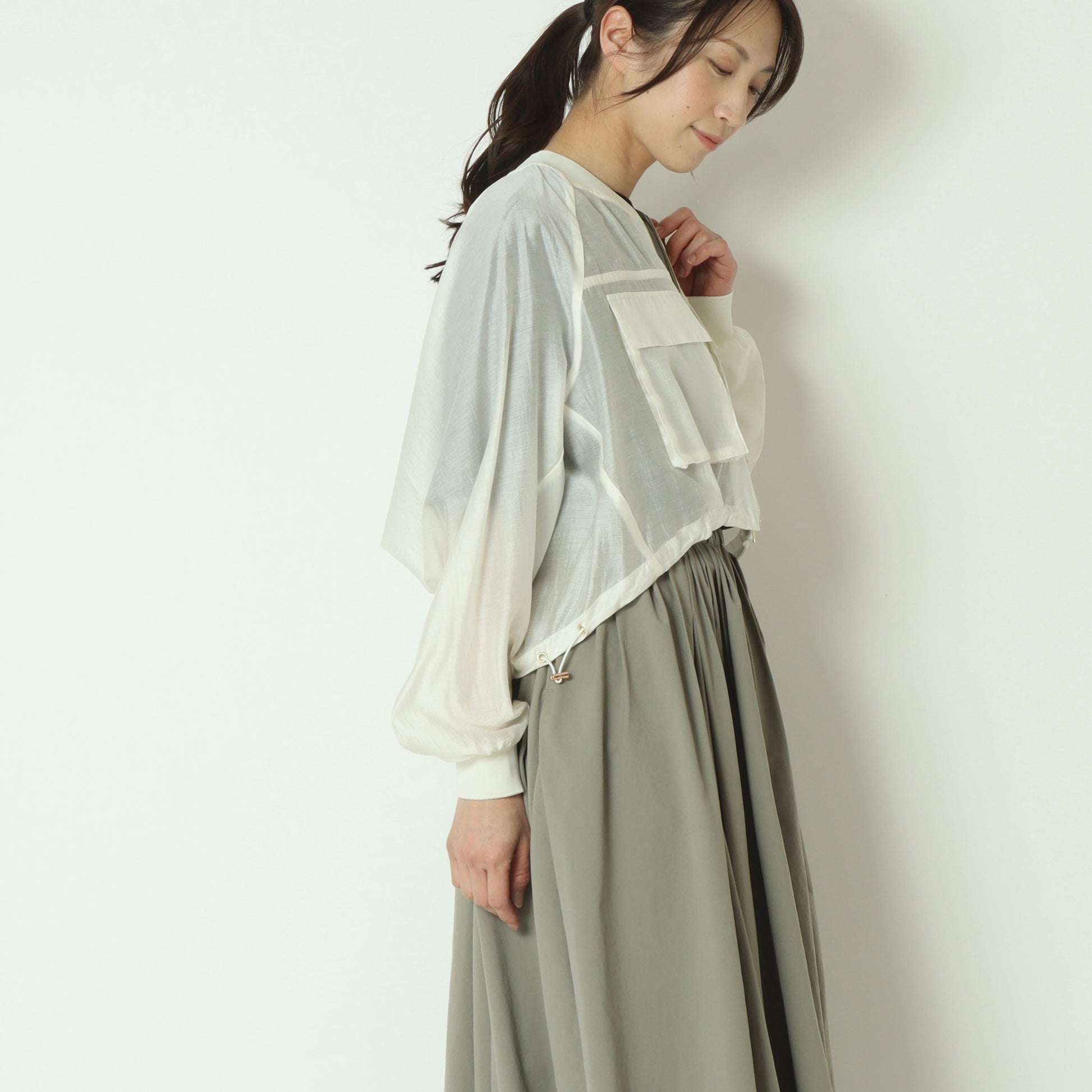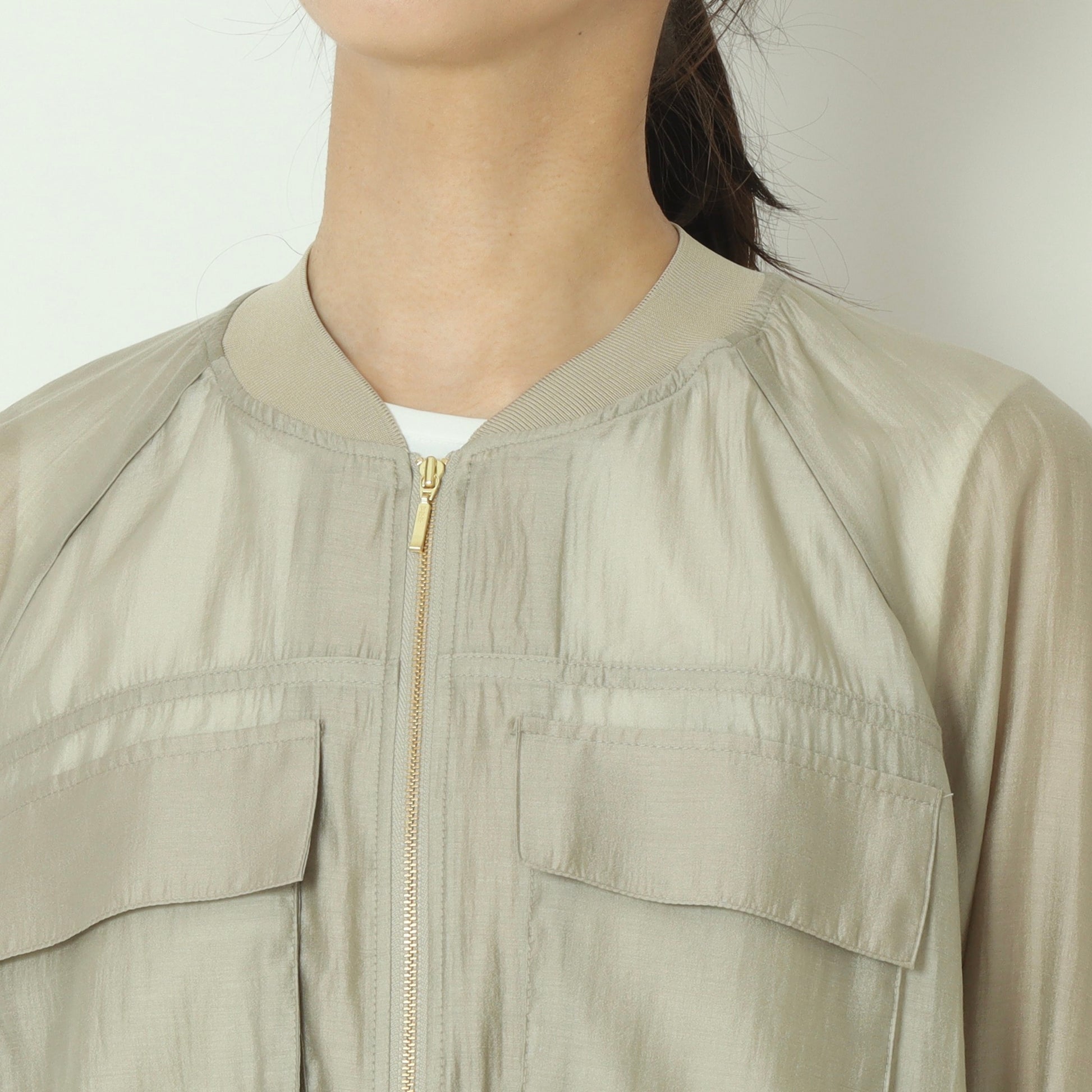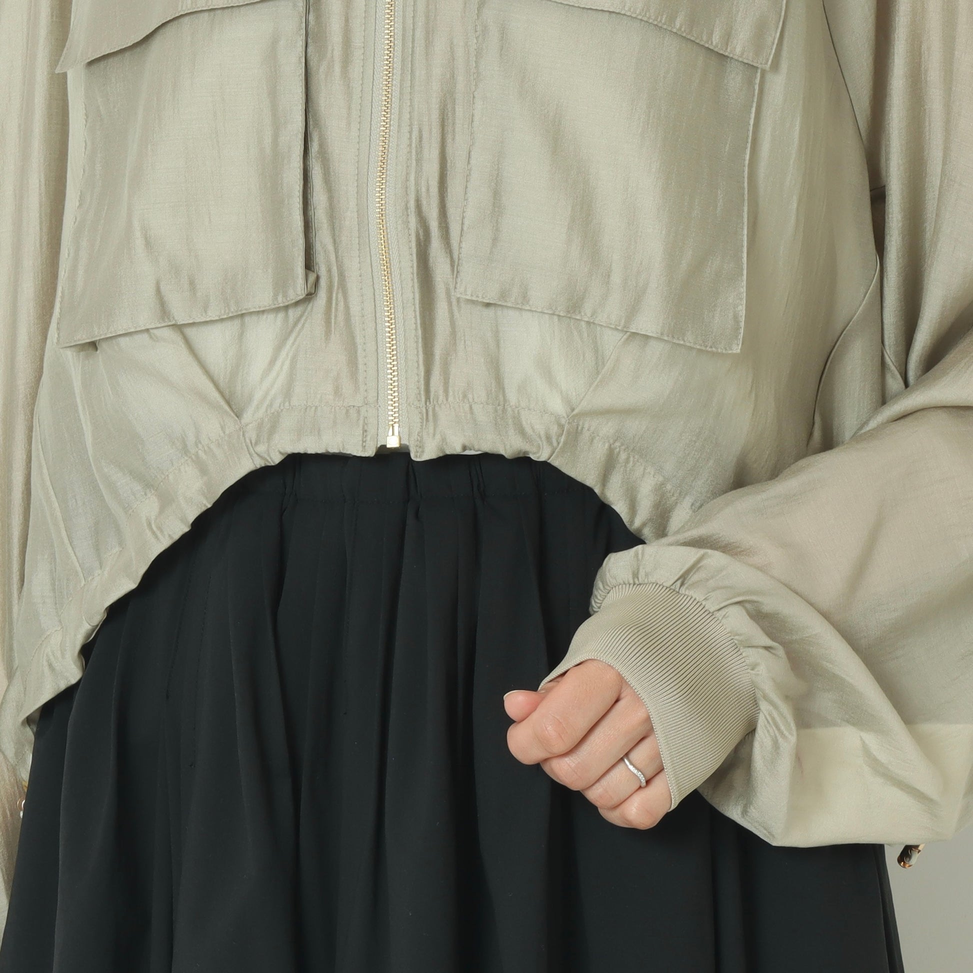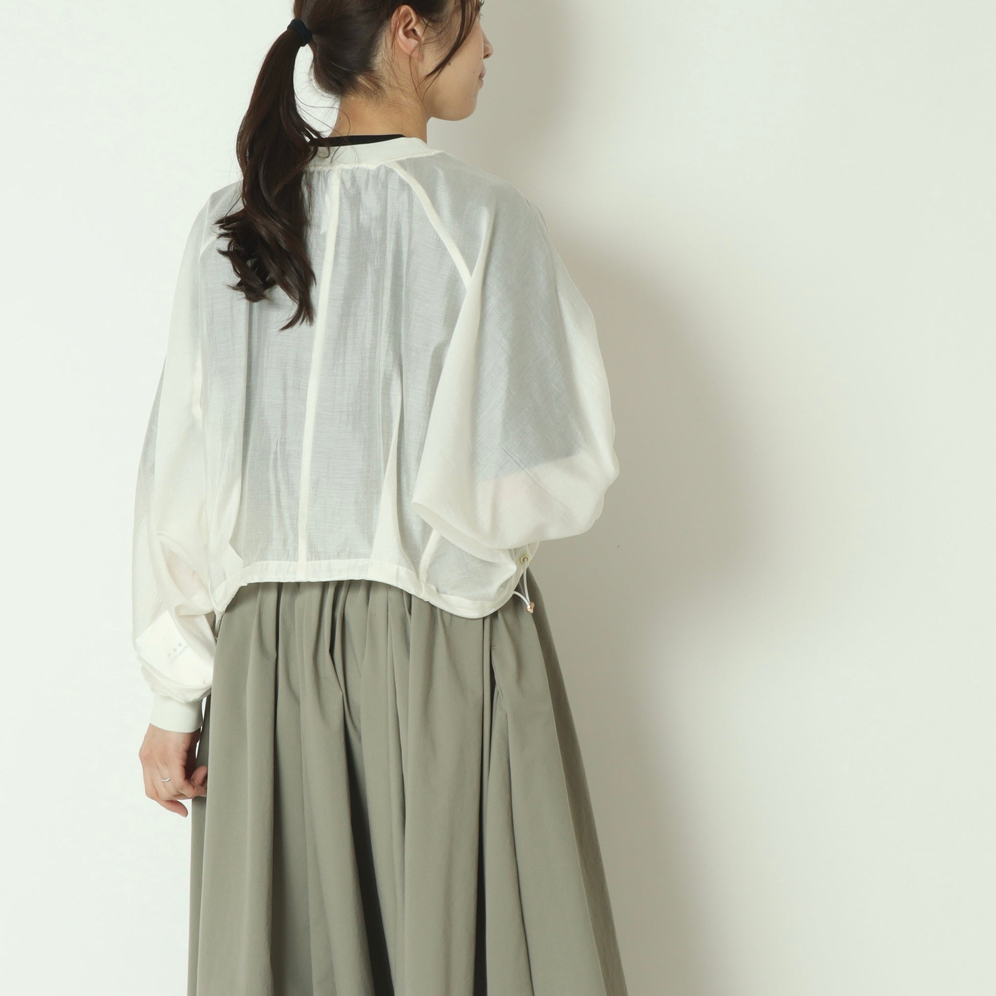 シアー素材で仕立てたドルマンスリーブブルゾン。