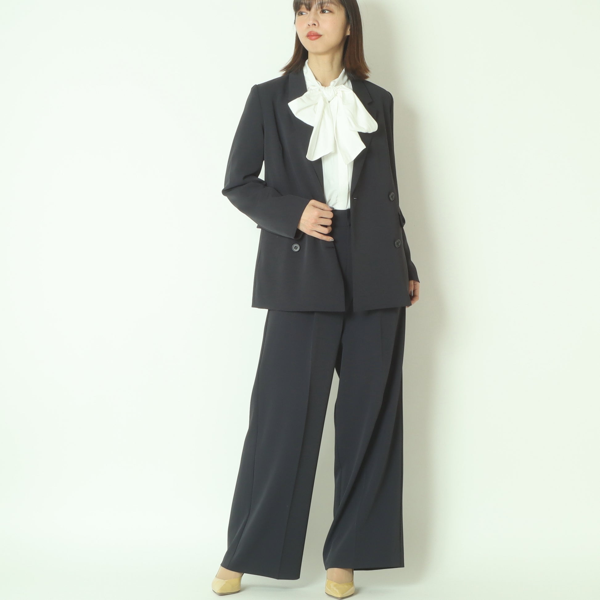 同素材のジャケット(261-116-0002)とのセットアップ着用で、抜け感と華やかさのあるオケージョンスタイルが完成します。