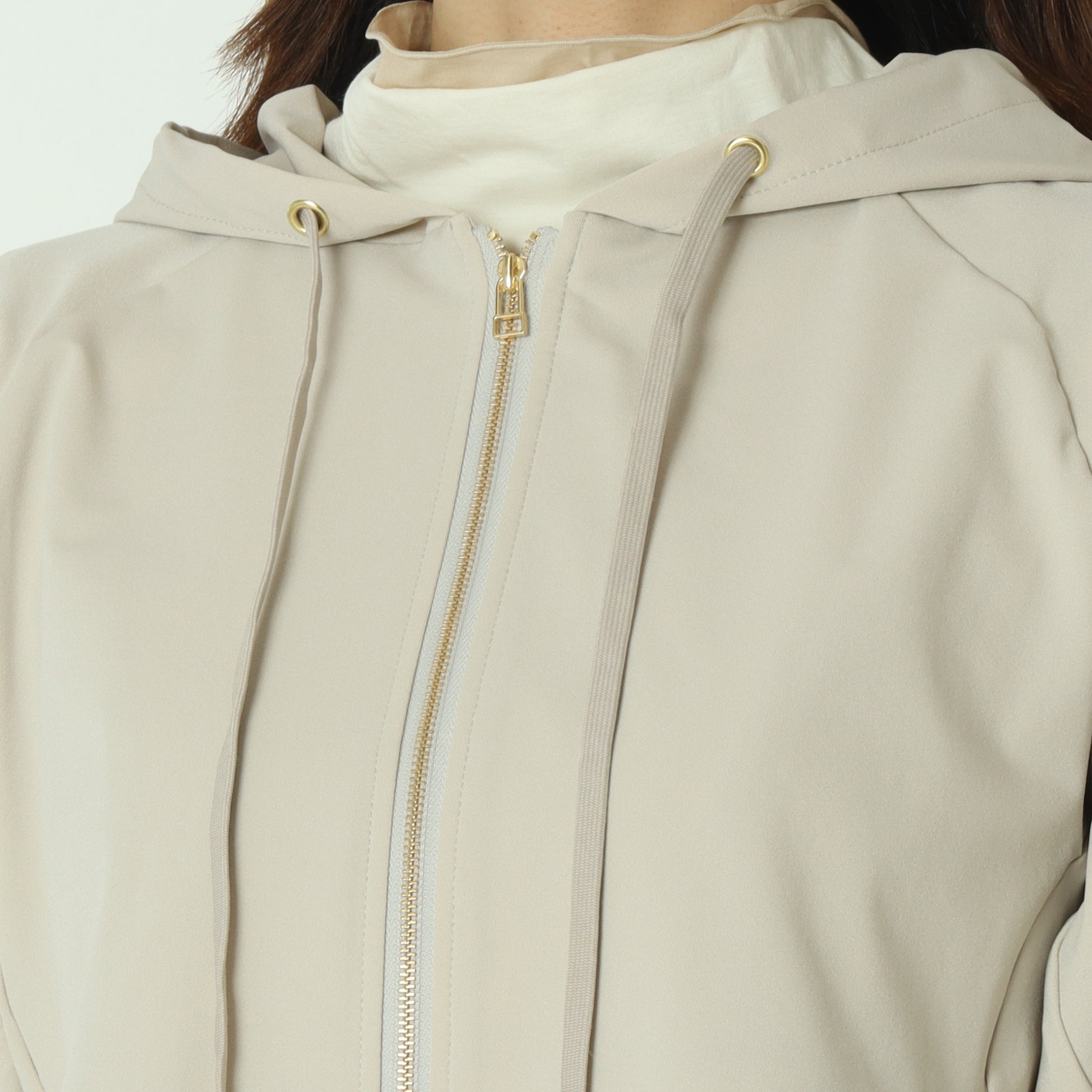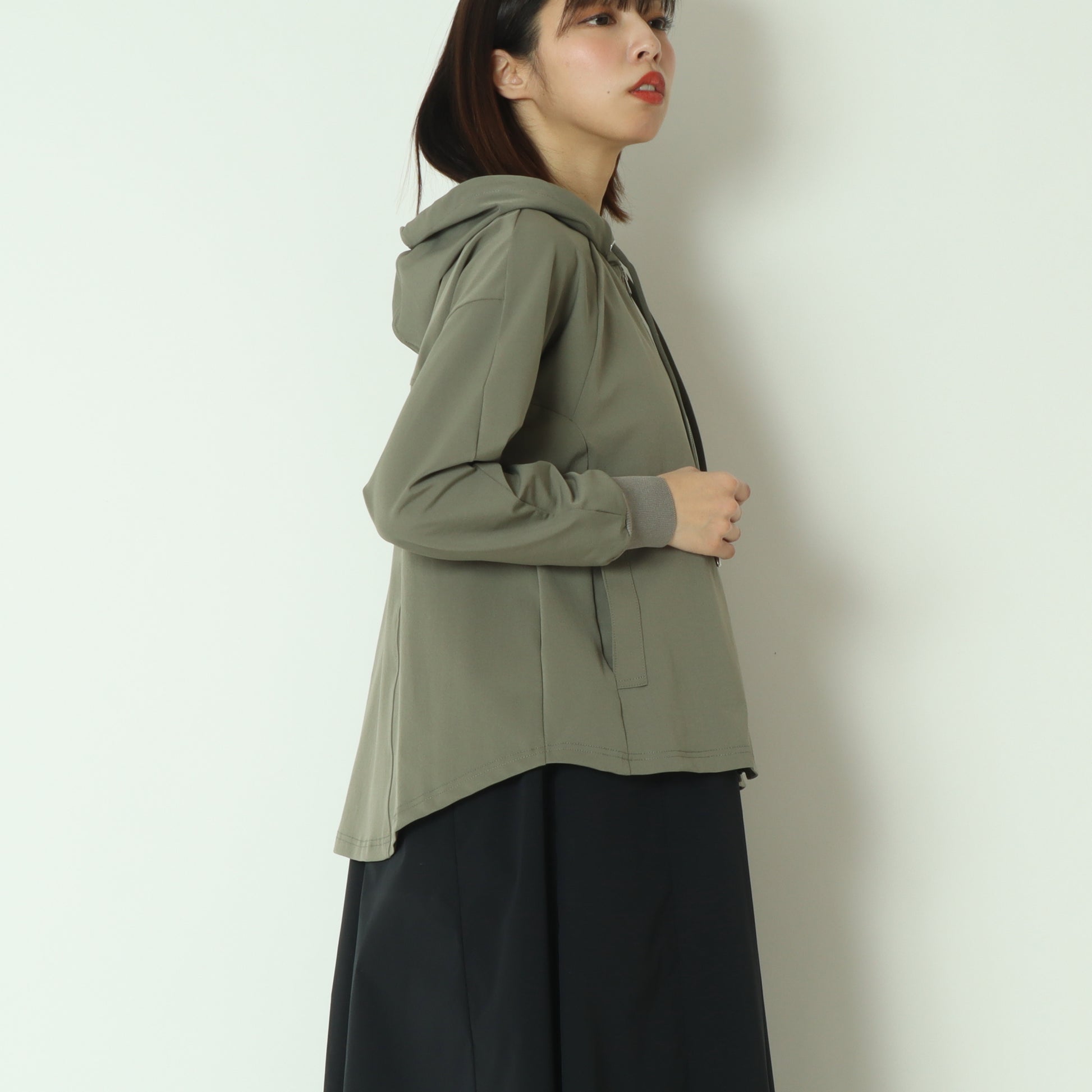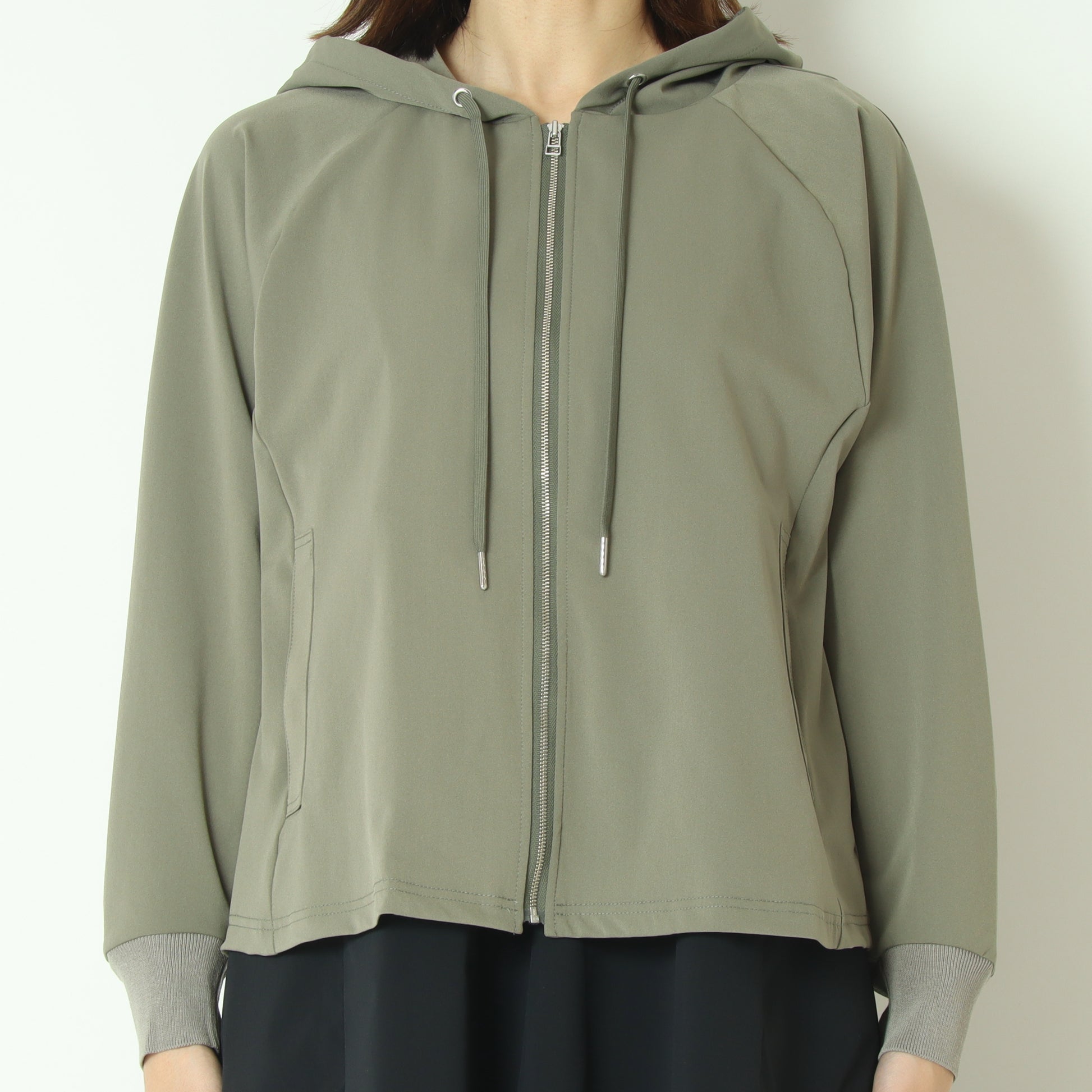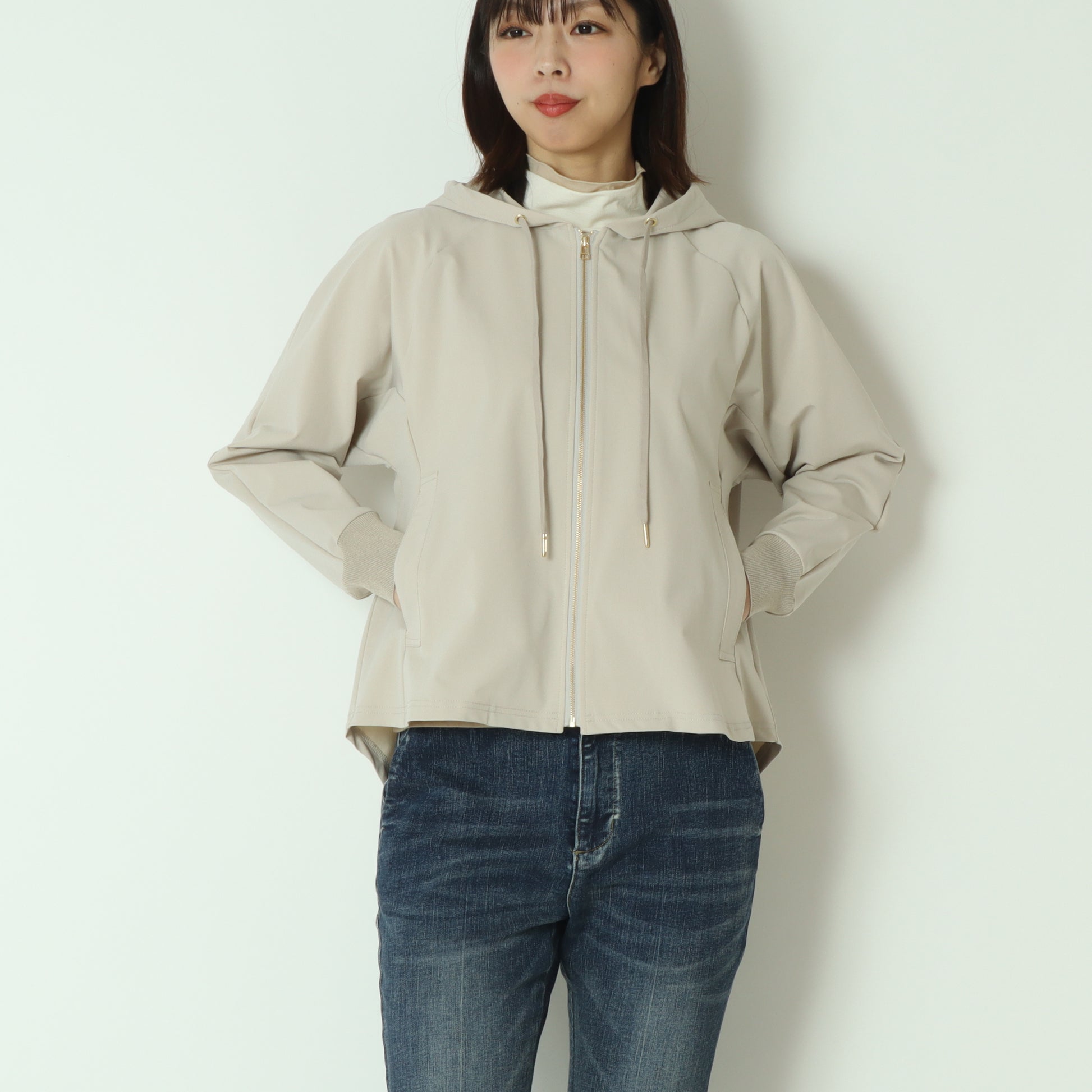 360度どの方向にも伸びるサークルストレッチ素材を使用した、上品に着ていただけるフーディジャケット。