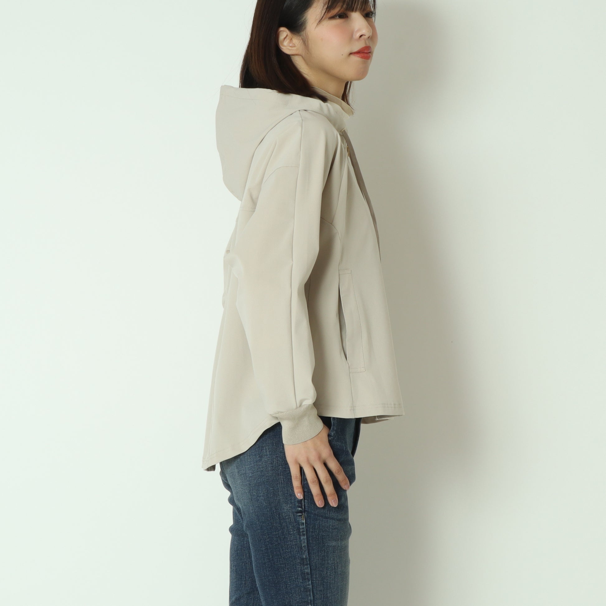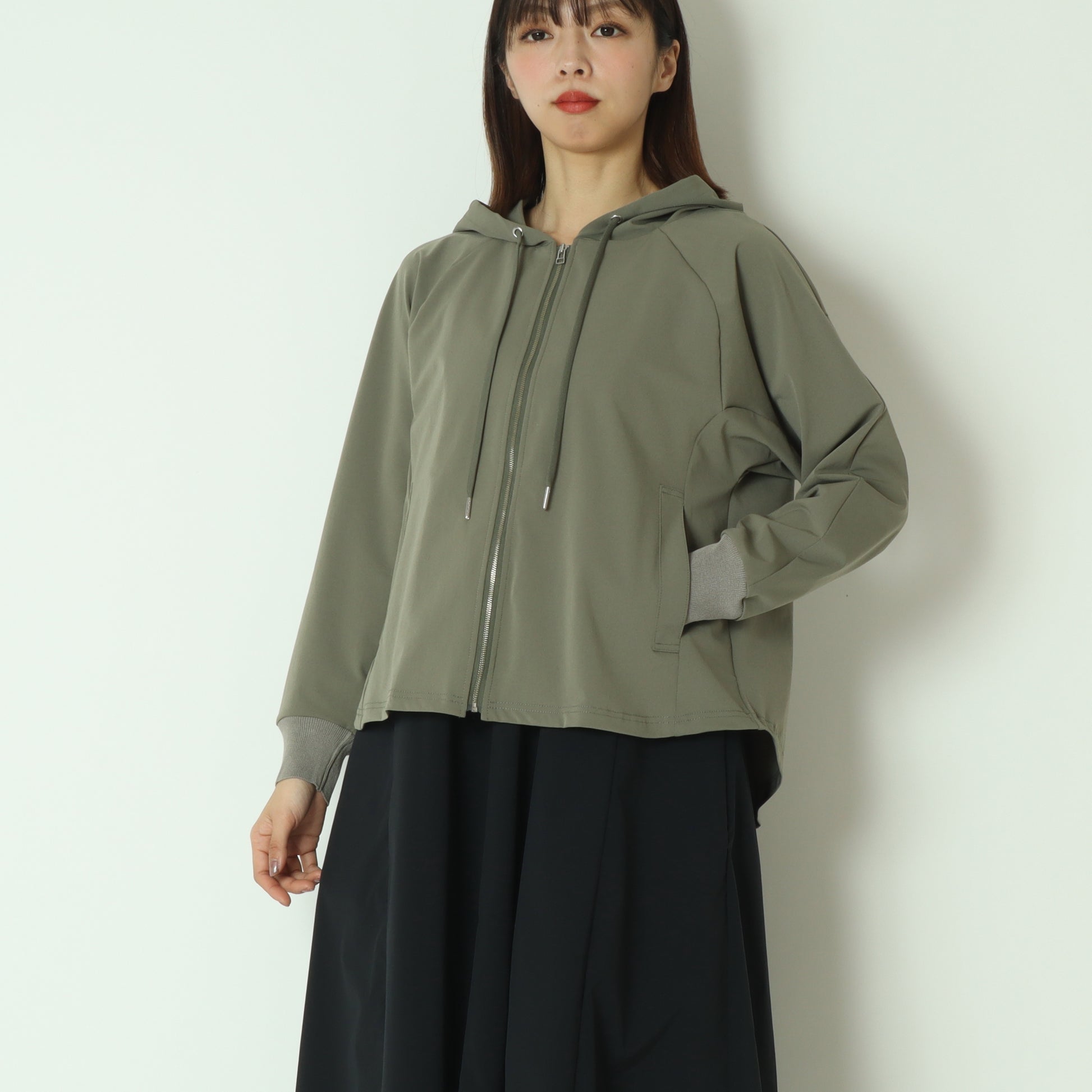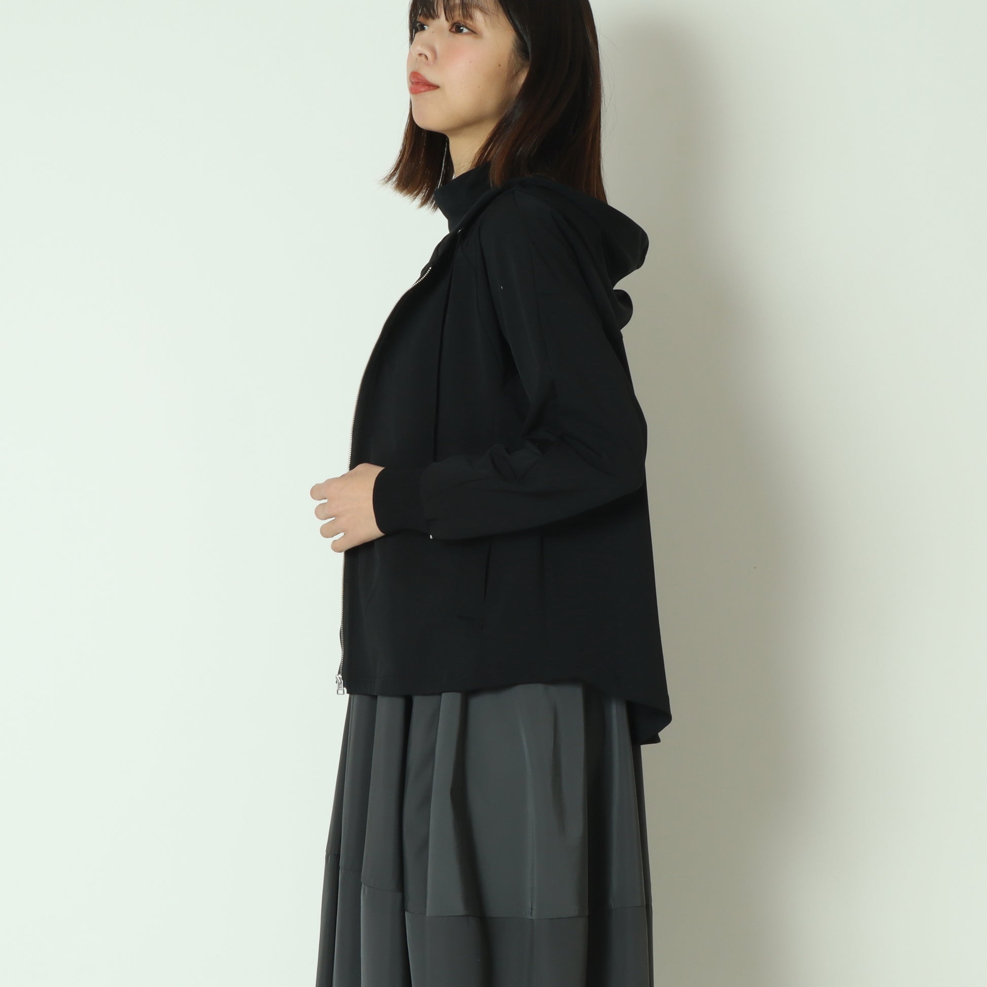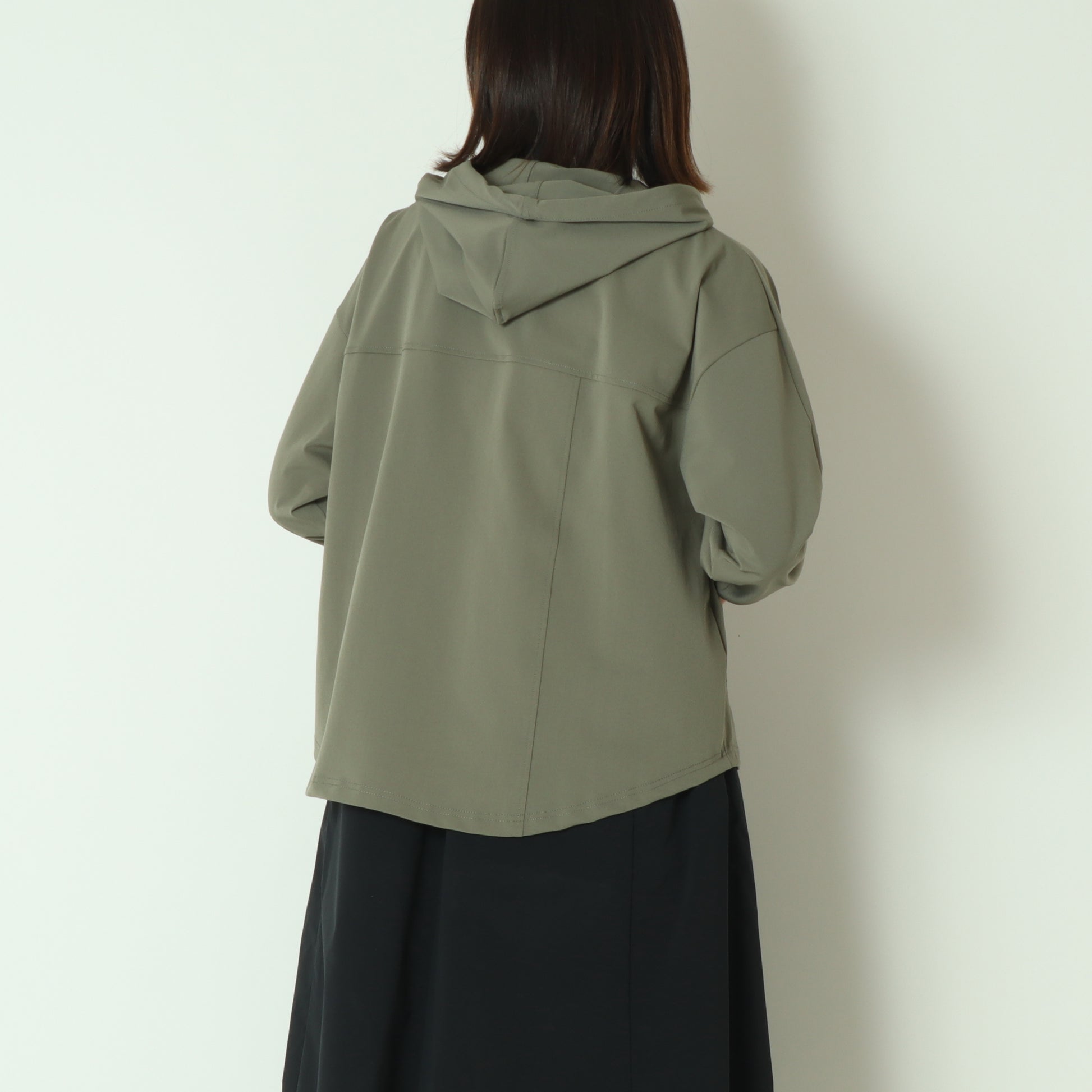 360度どの方向にも伸びるサークルストレッチ素材を使用した、上品に着ていただけるフーディジャケット。
