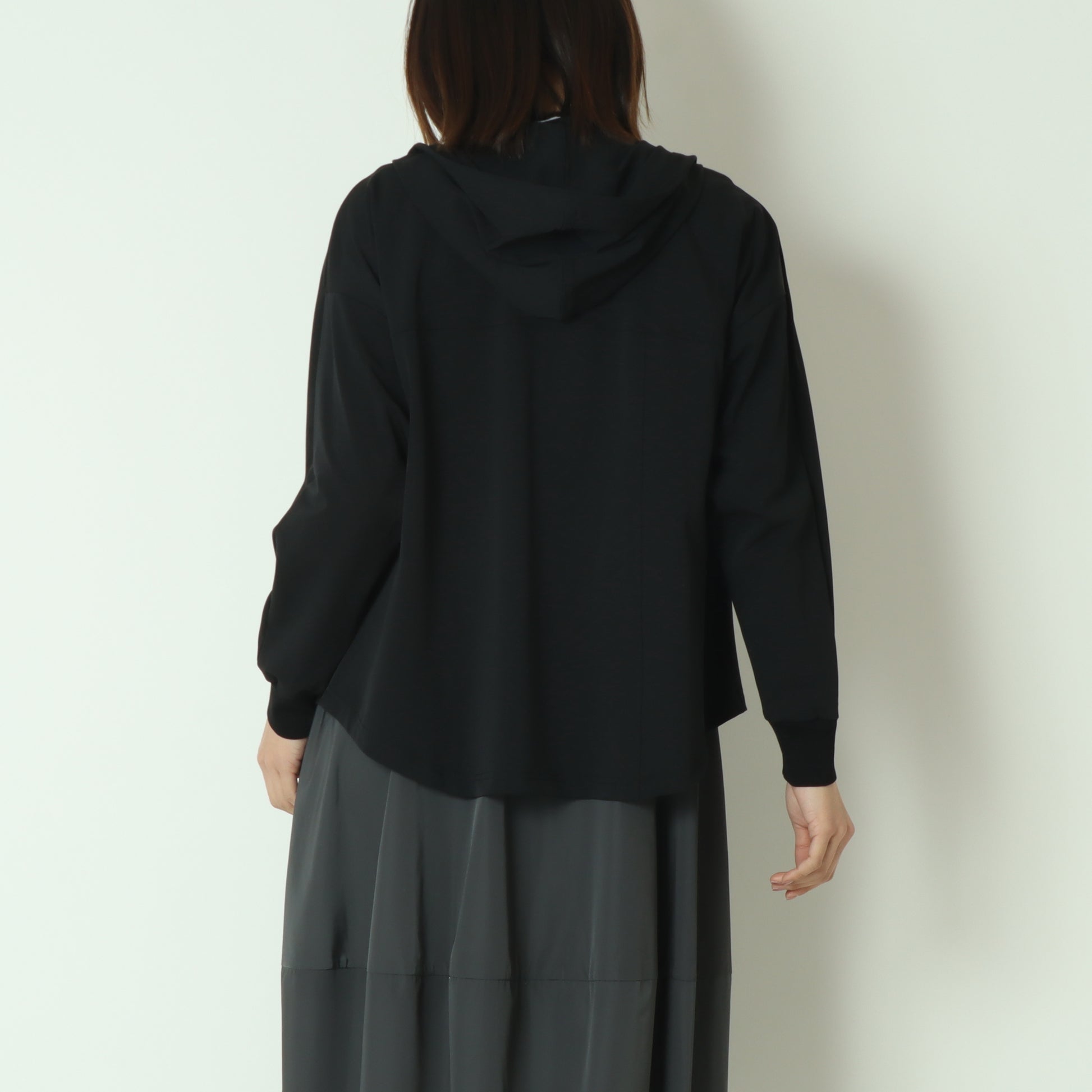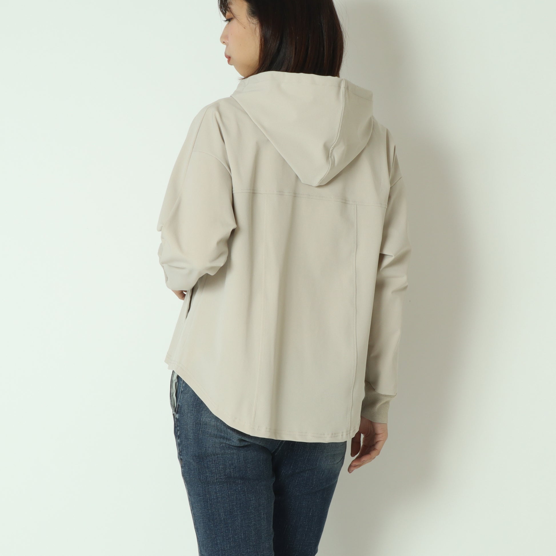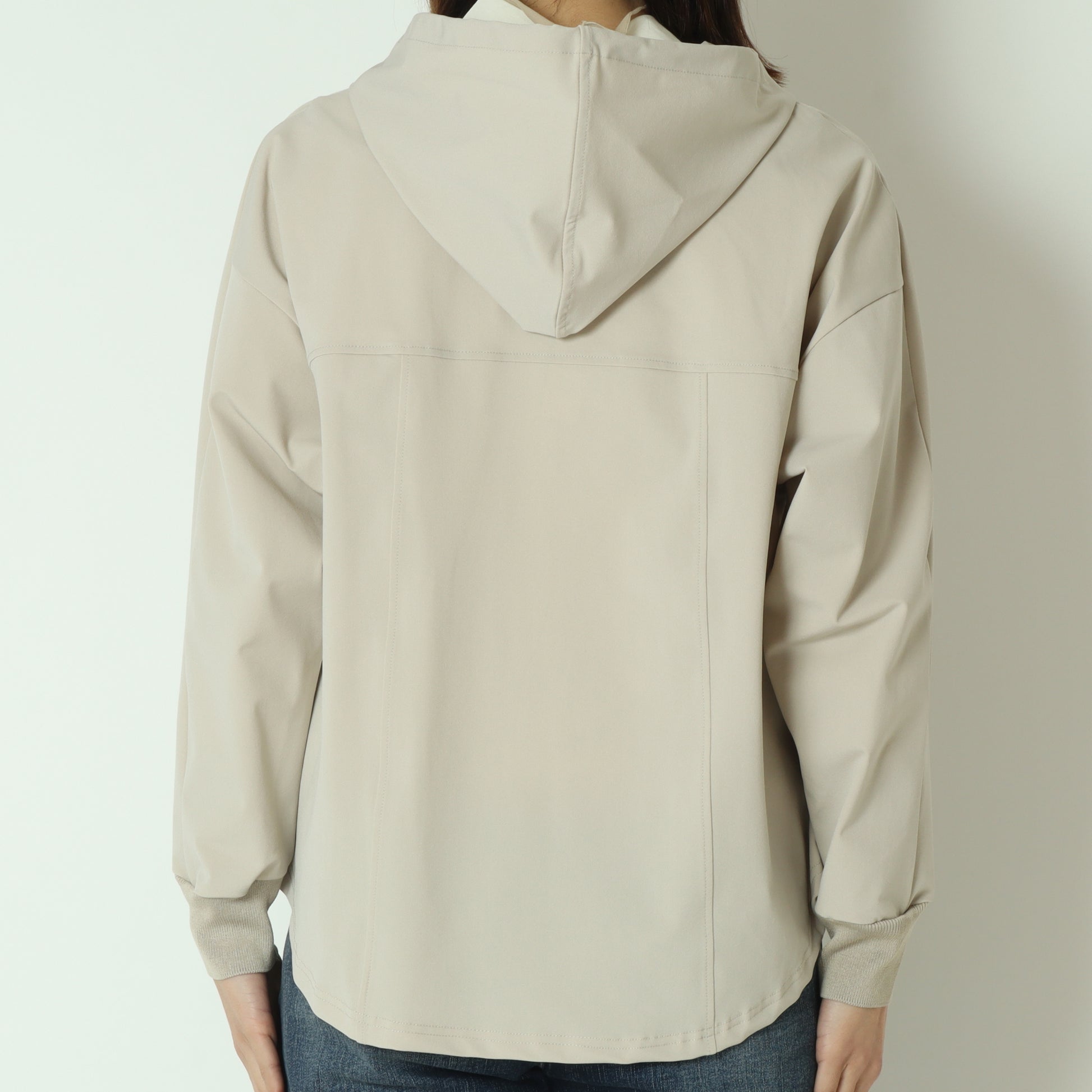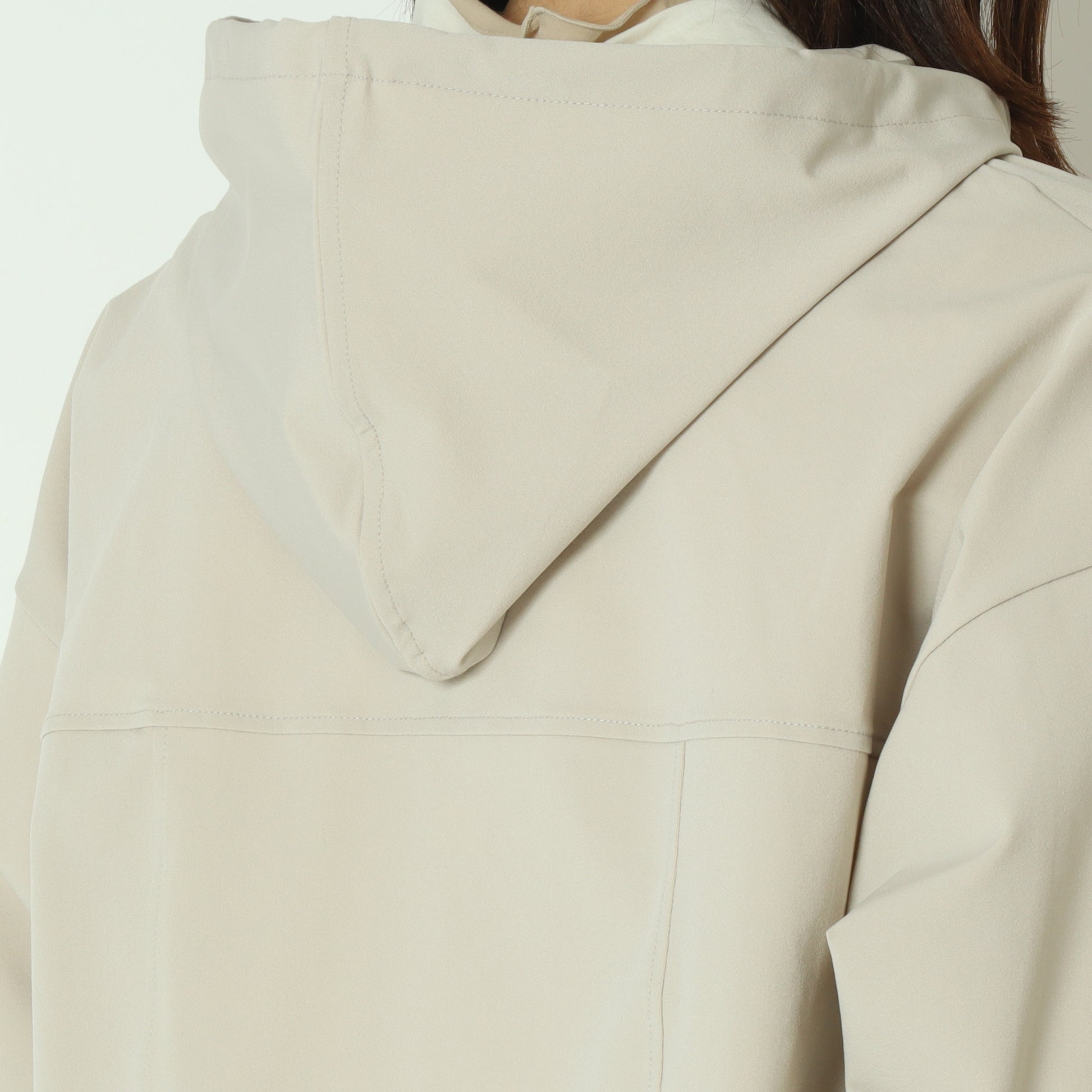 360度どの方向にも伸びるサークルストレッチ素材を使用した、上品に着ていただけるフーディジャケット。