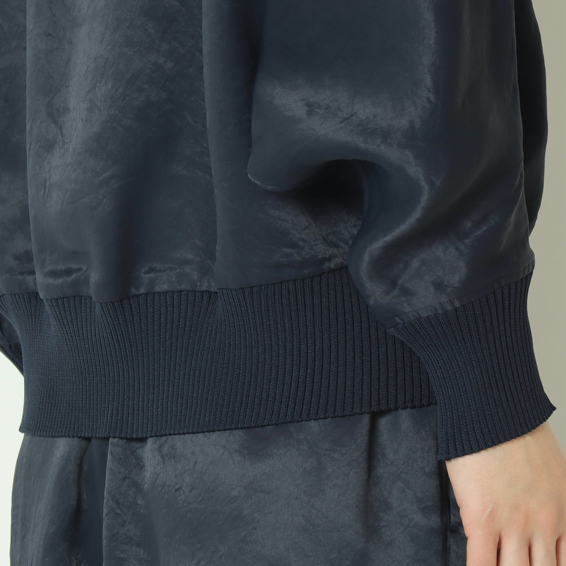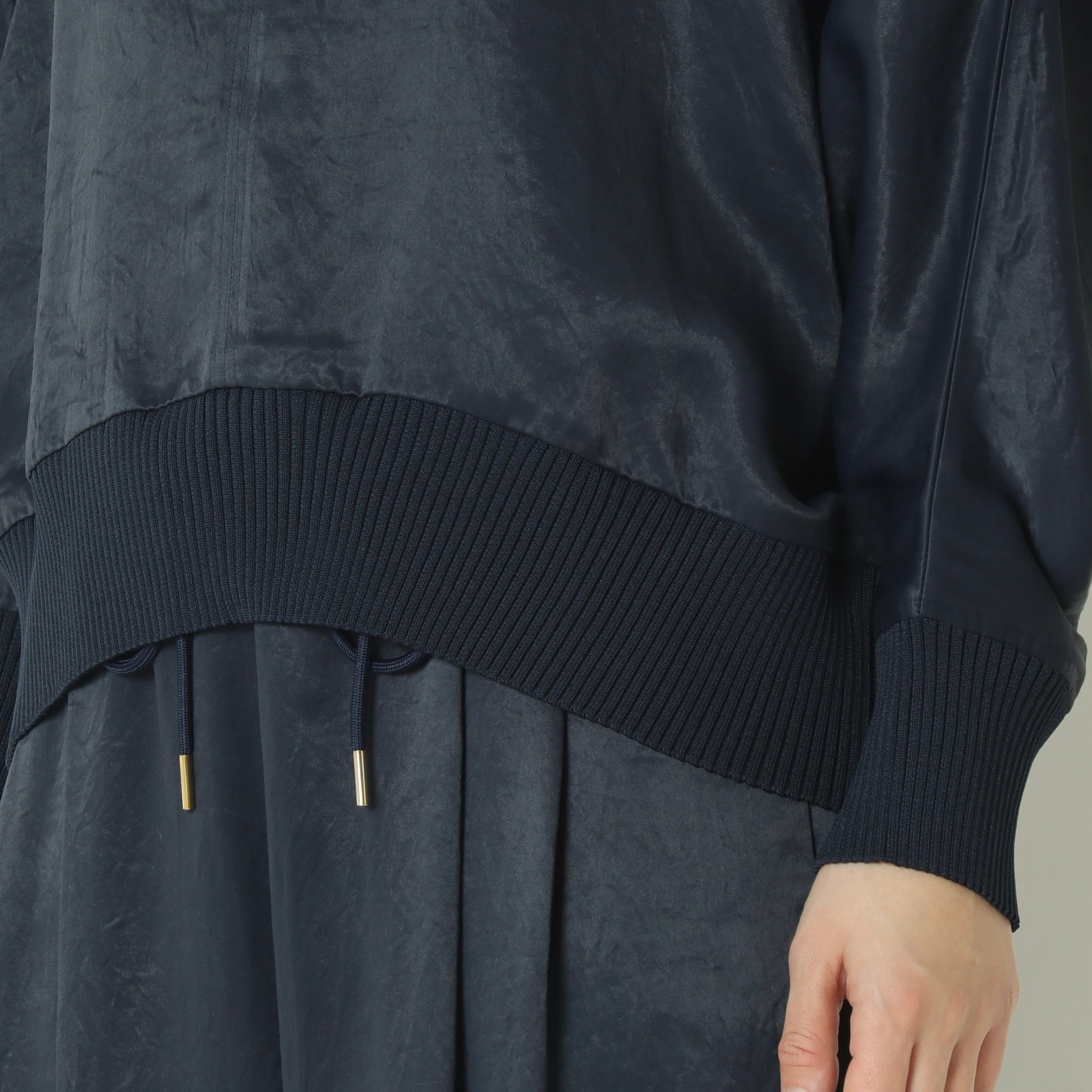 首元、袖、裾のリブデザインがメリハリのある印象に◎