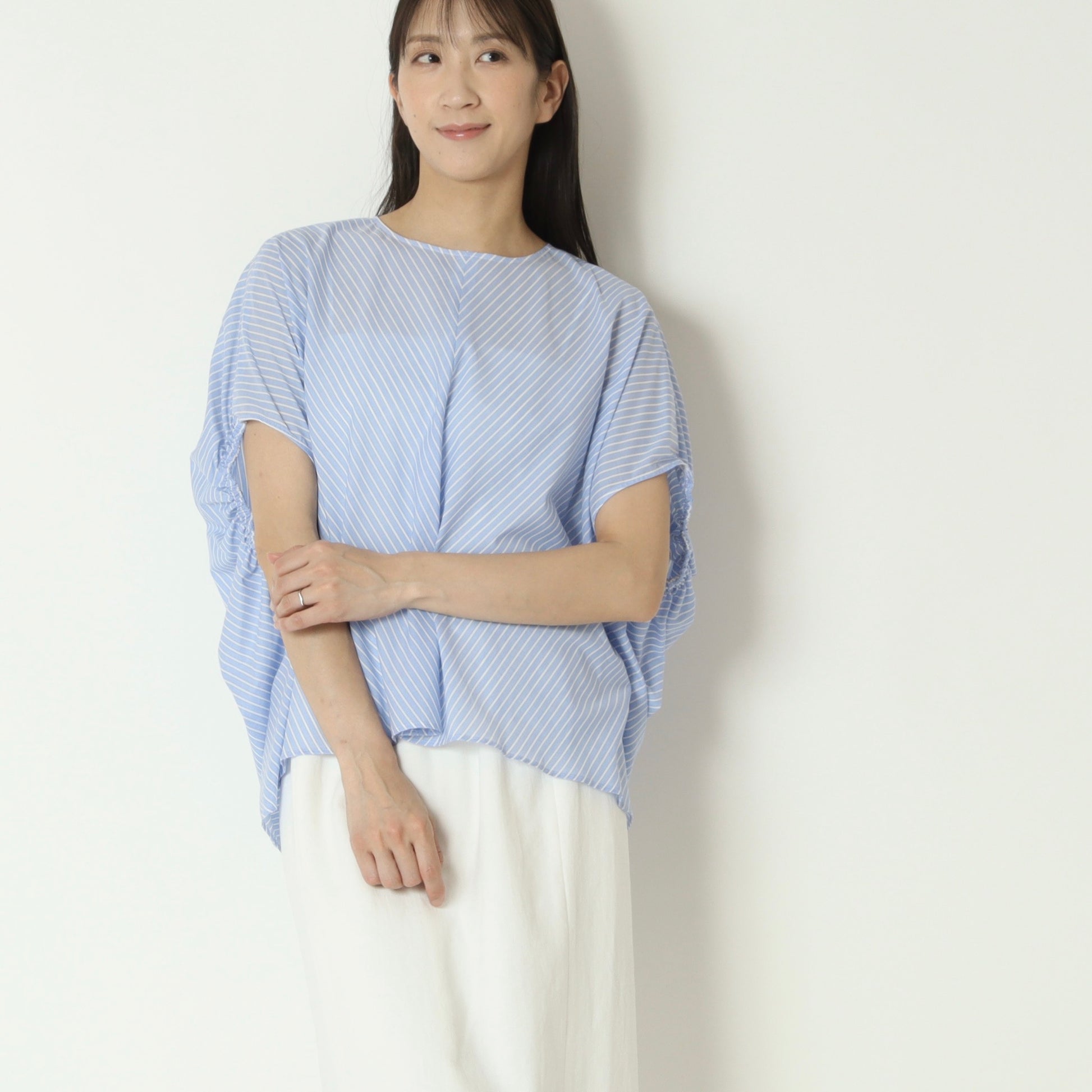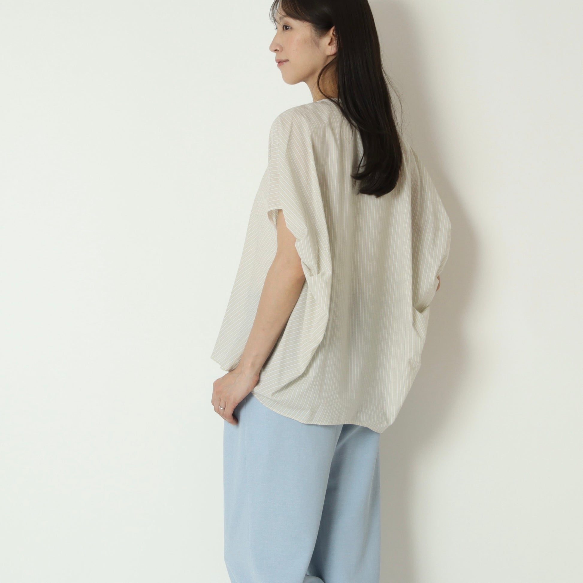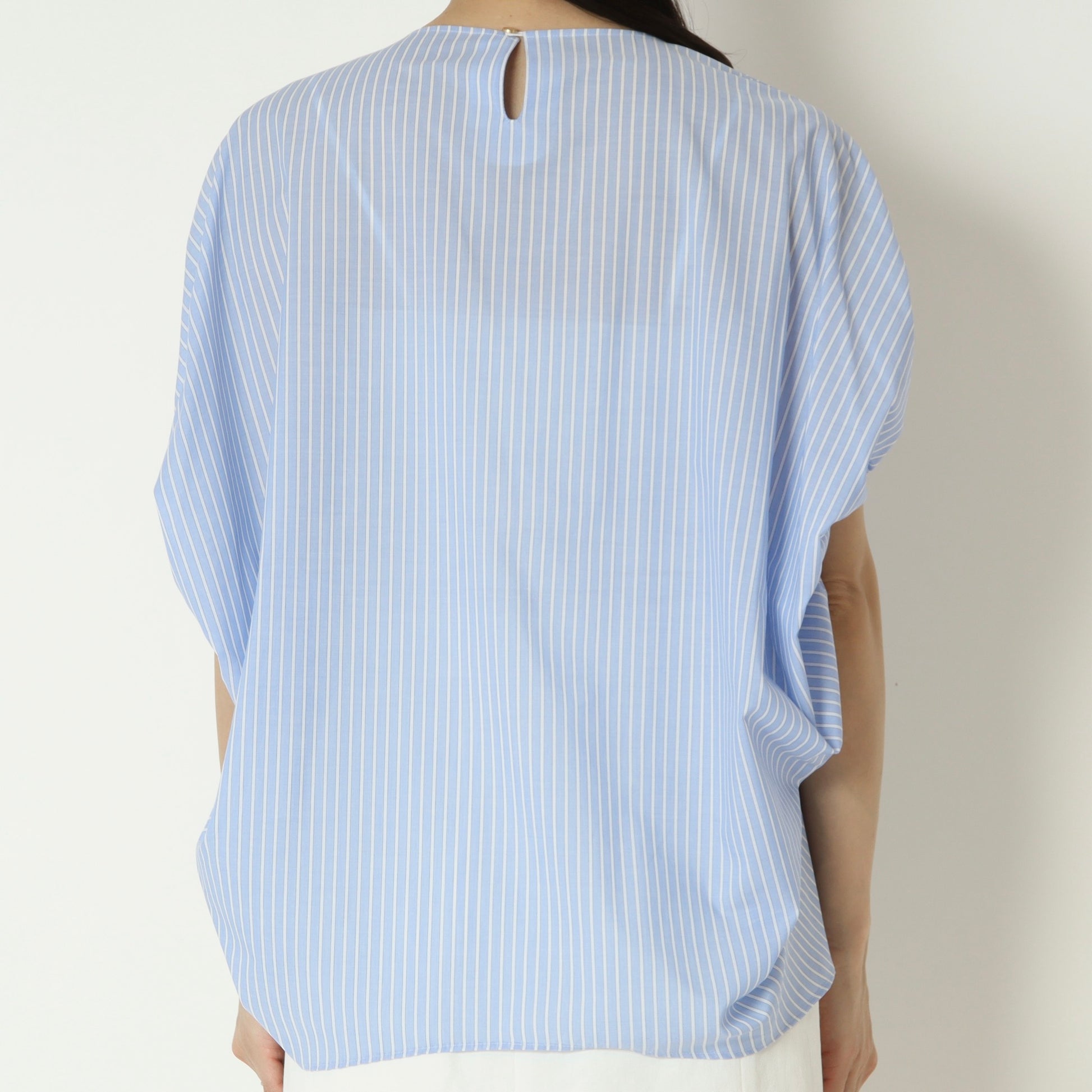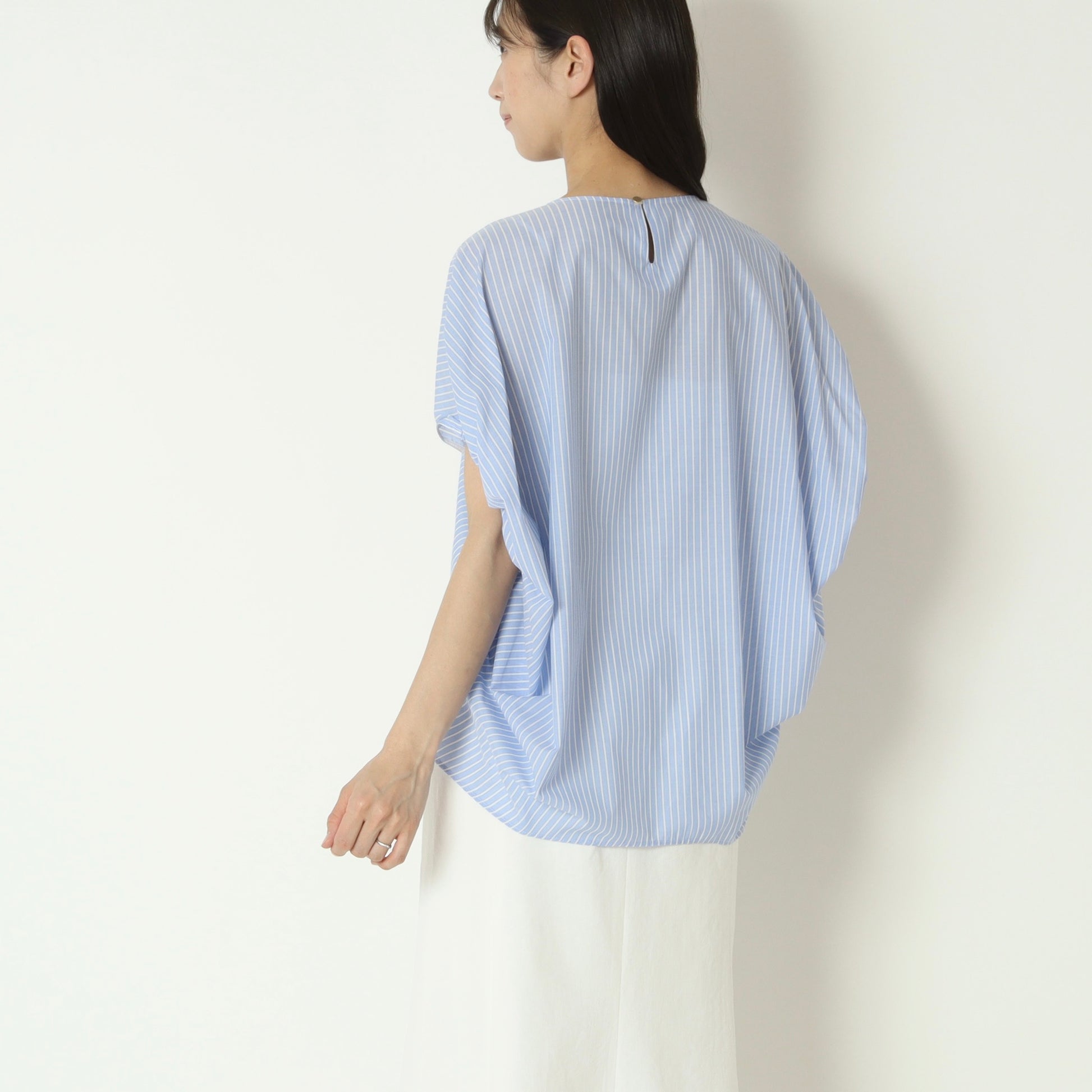 軽やかなストライプ柄が印象的な、ゆったりシルエットのポンチョブラウス。