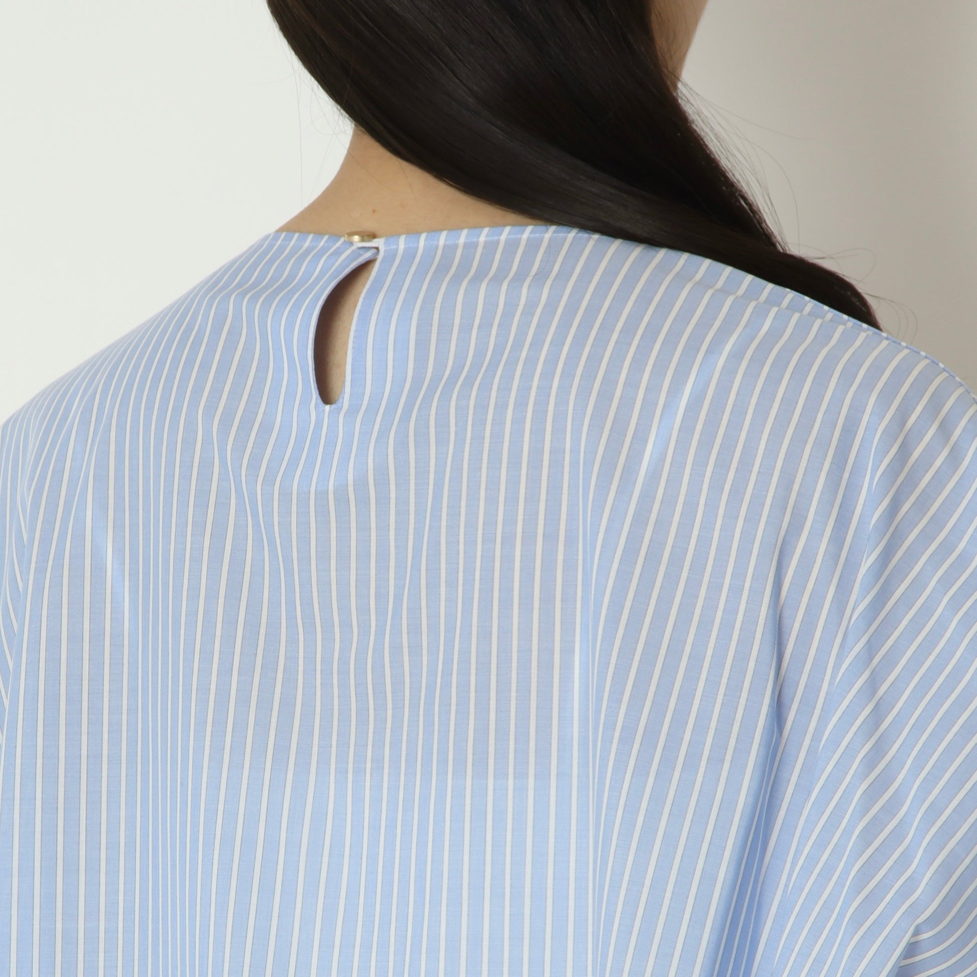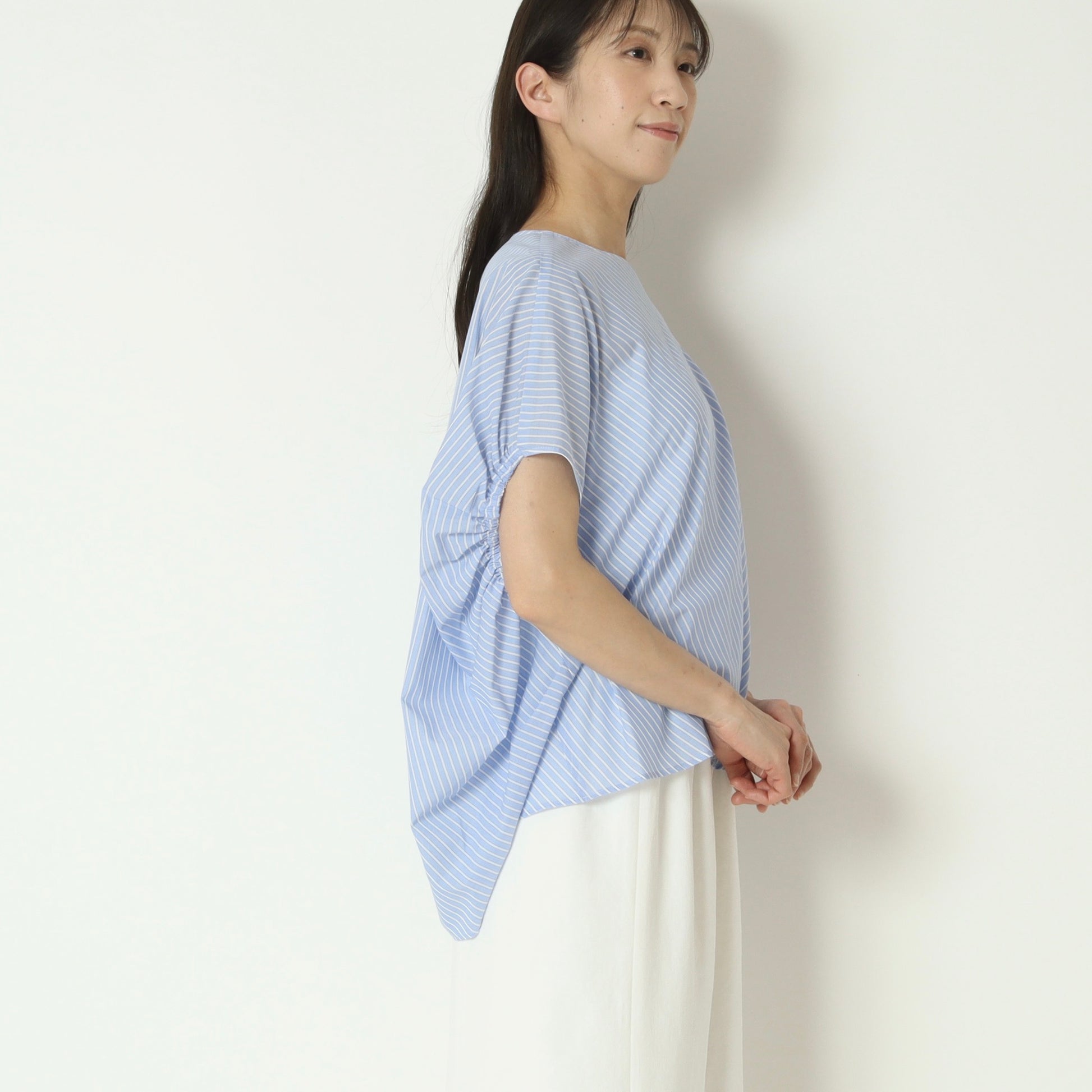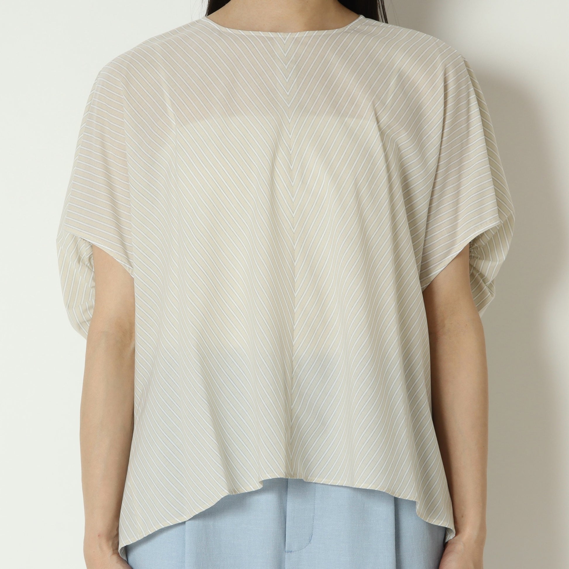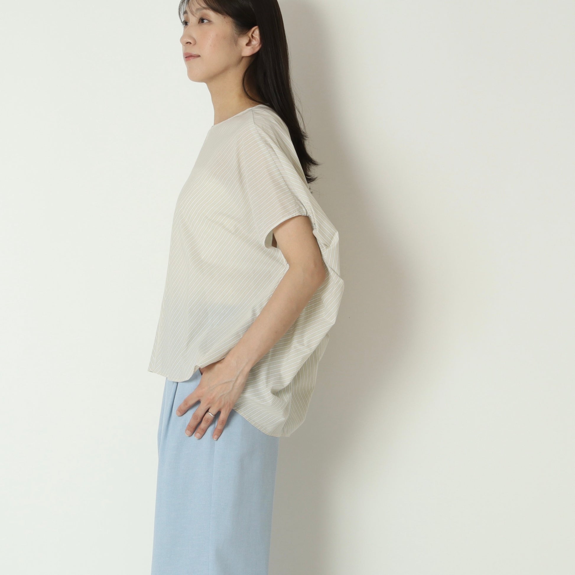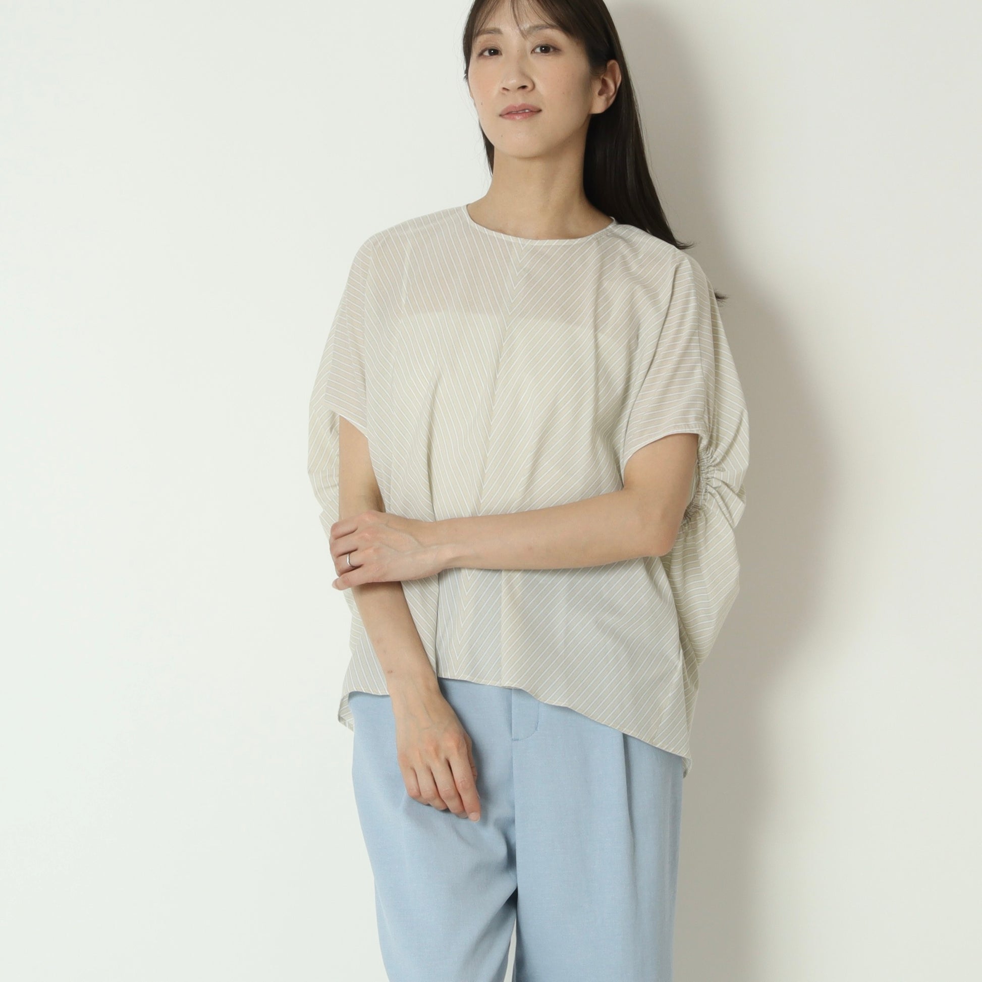 軽やかなストライプ柄が印象的な、ゆったりシルエットのポンチョブラウス。