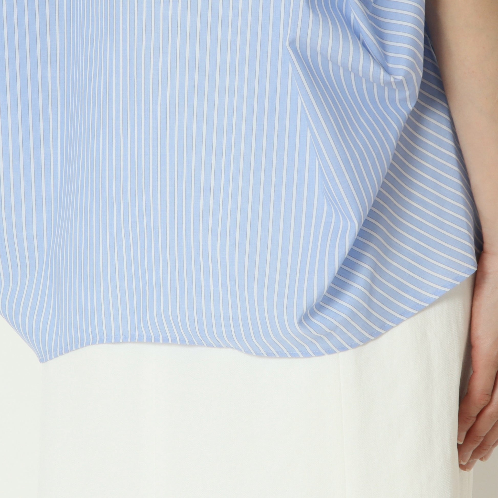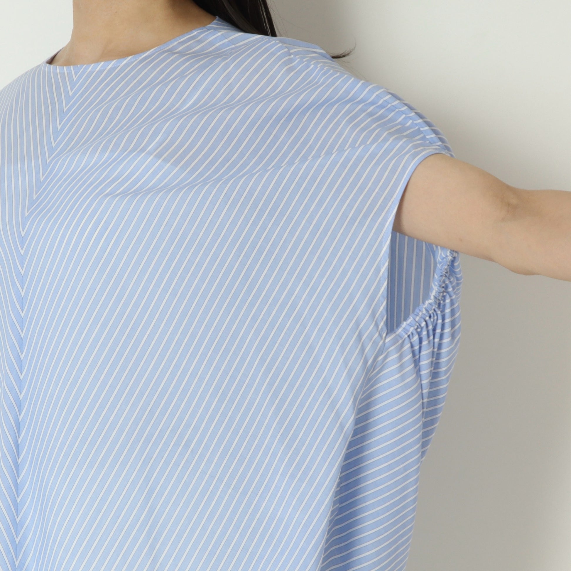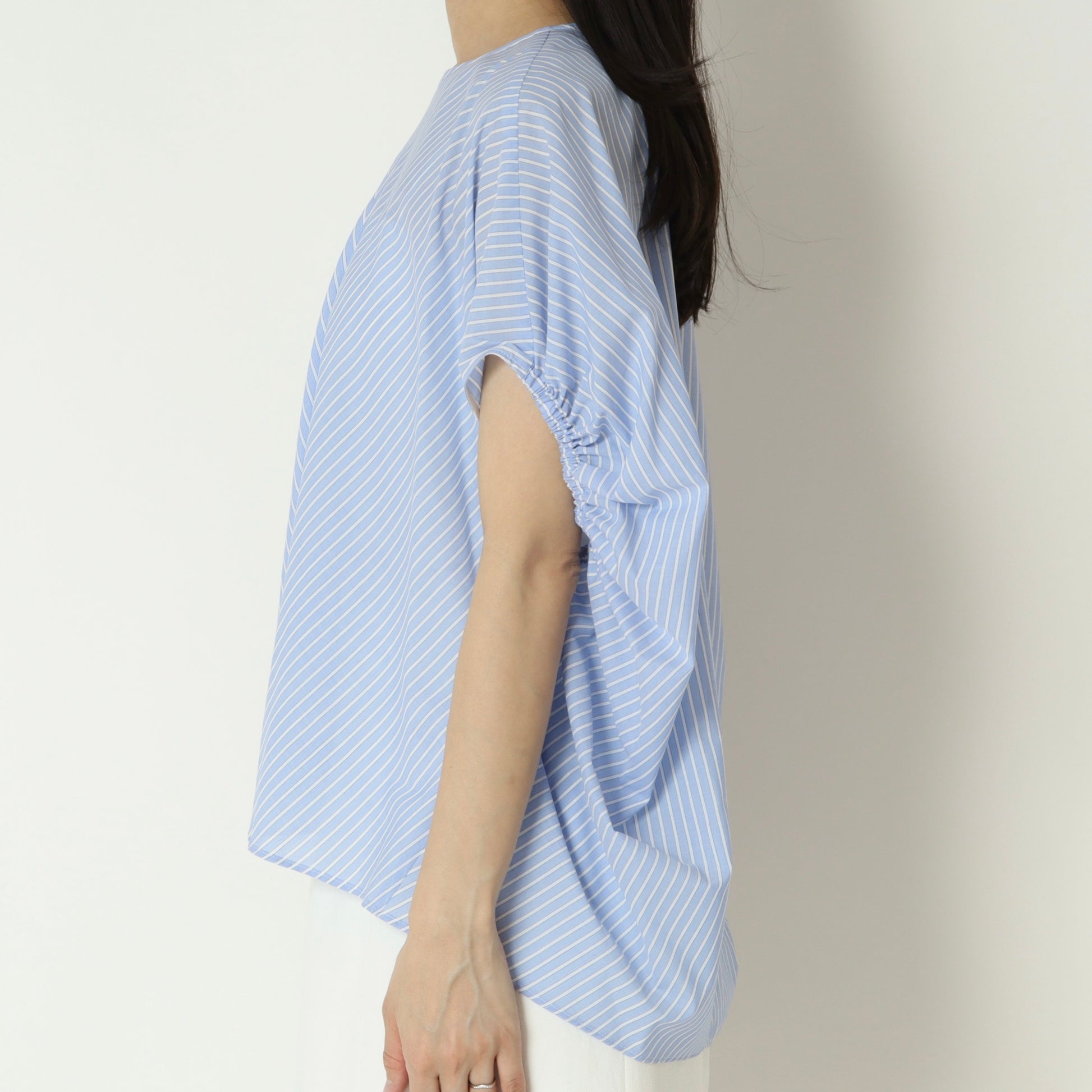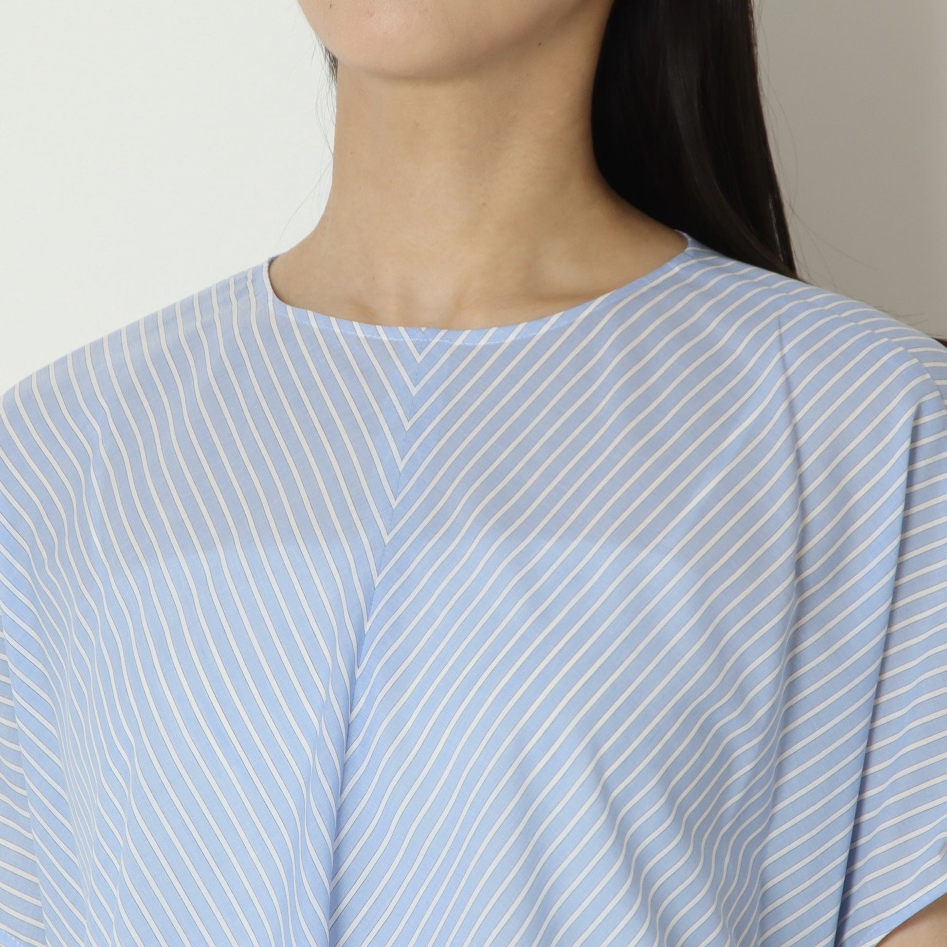 軽やかなストライプ柄が印象的な、ゆったりシルエットのポンチョブラウス。
