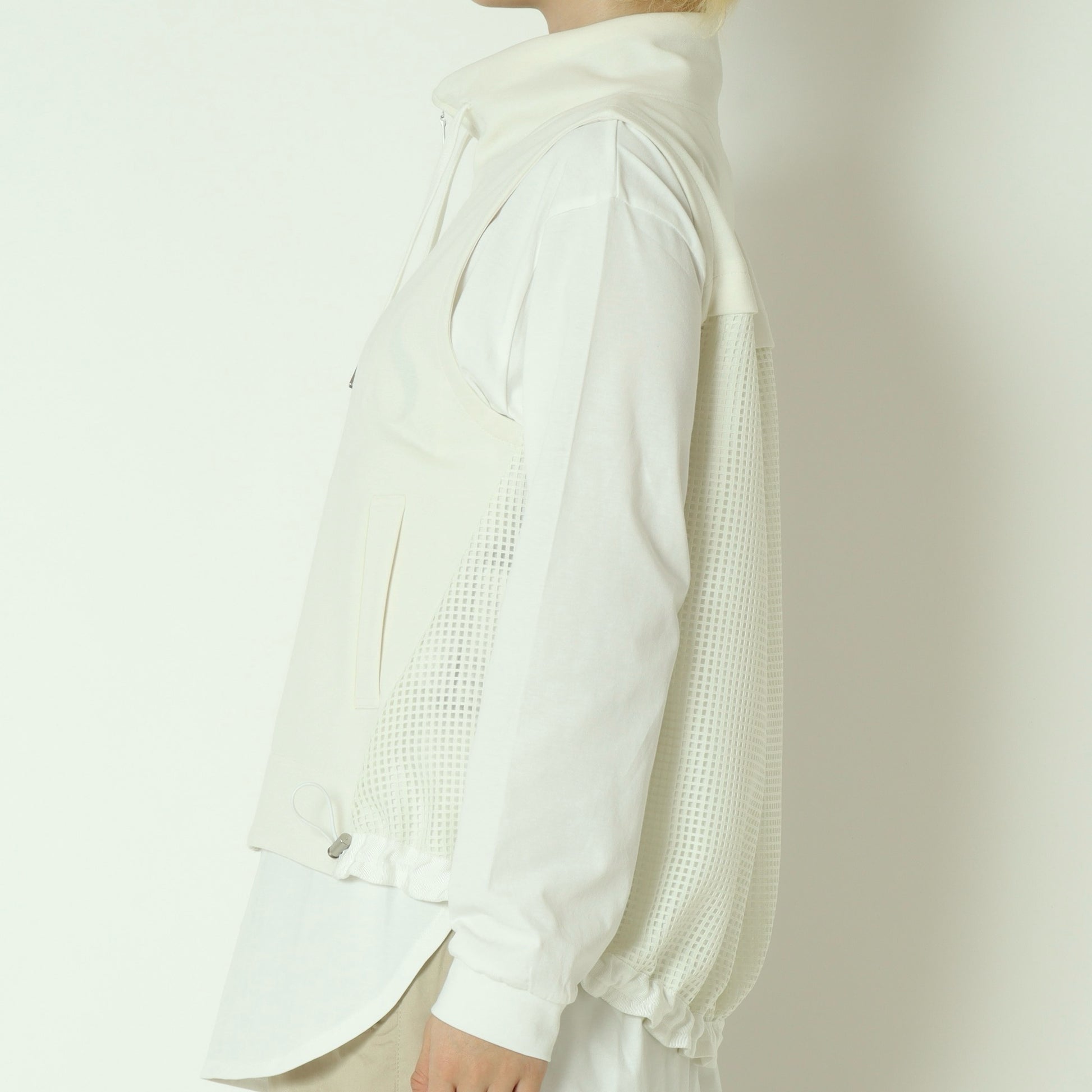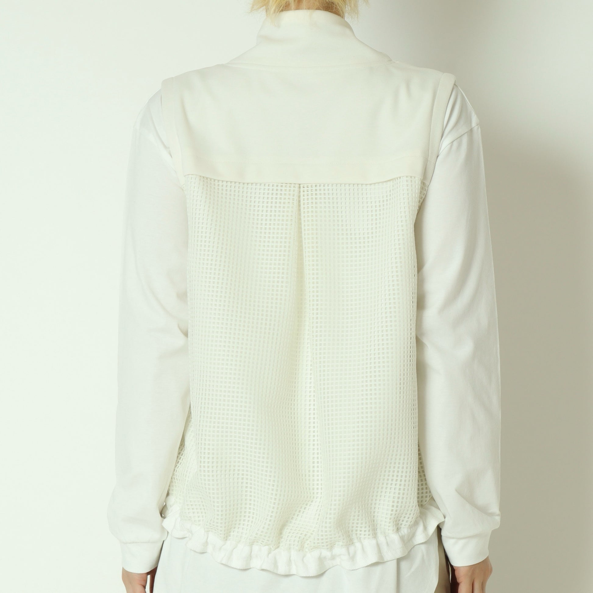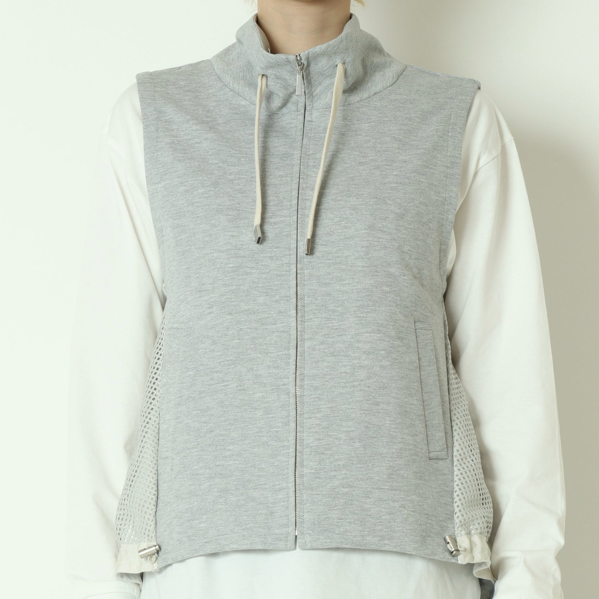 メッシュ素材を切り替えたデザインがアクセントになったジップベスト。