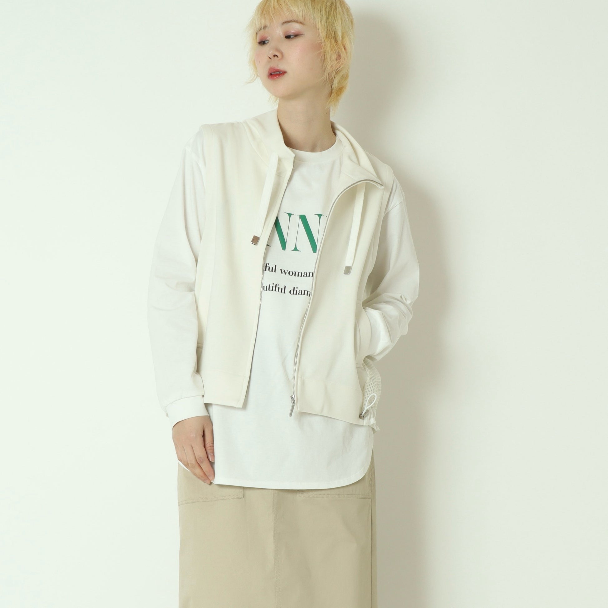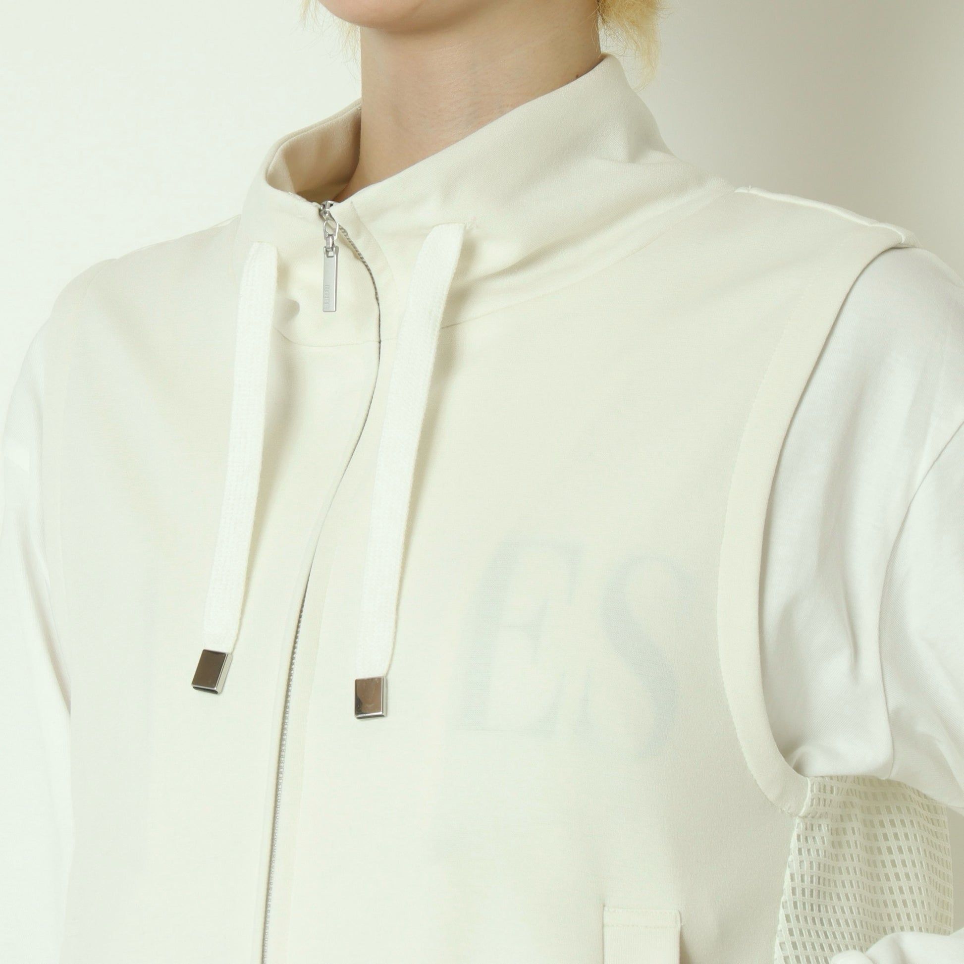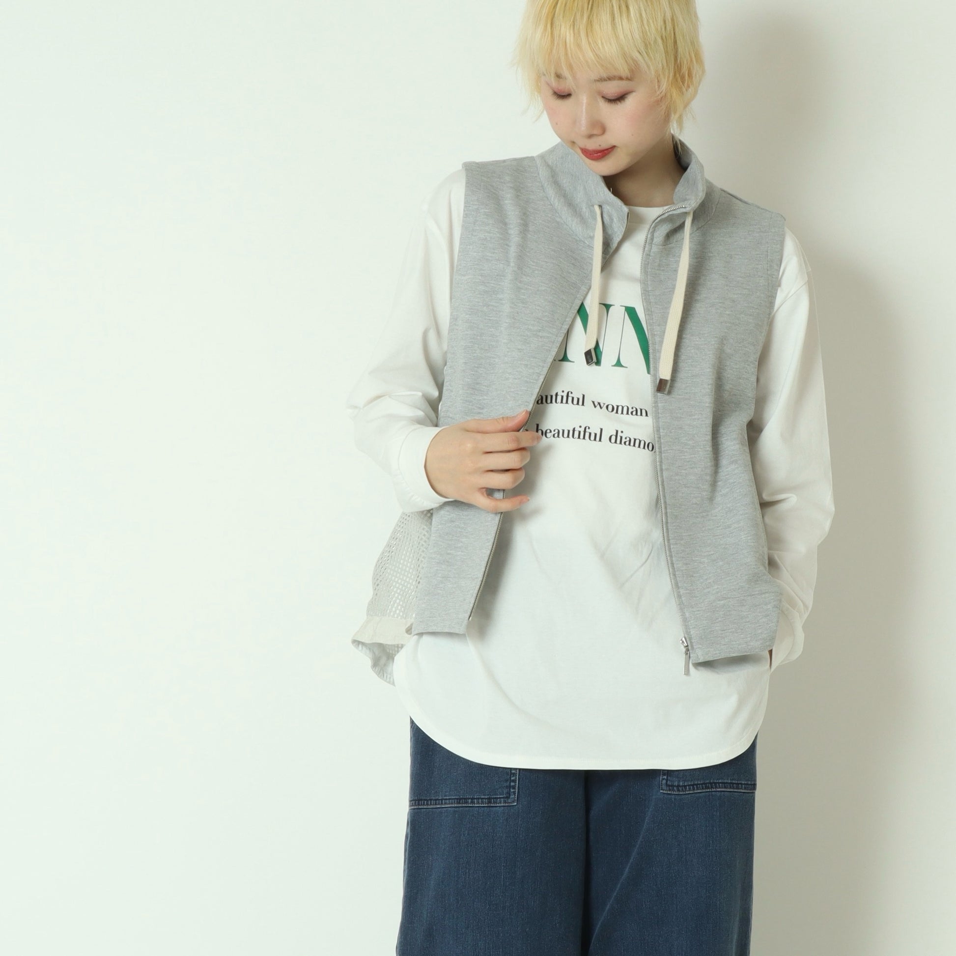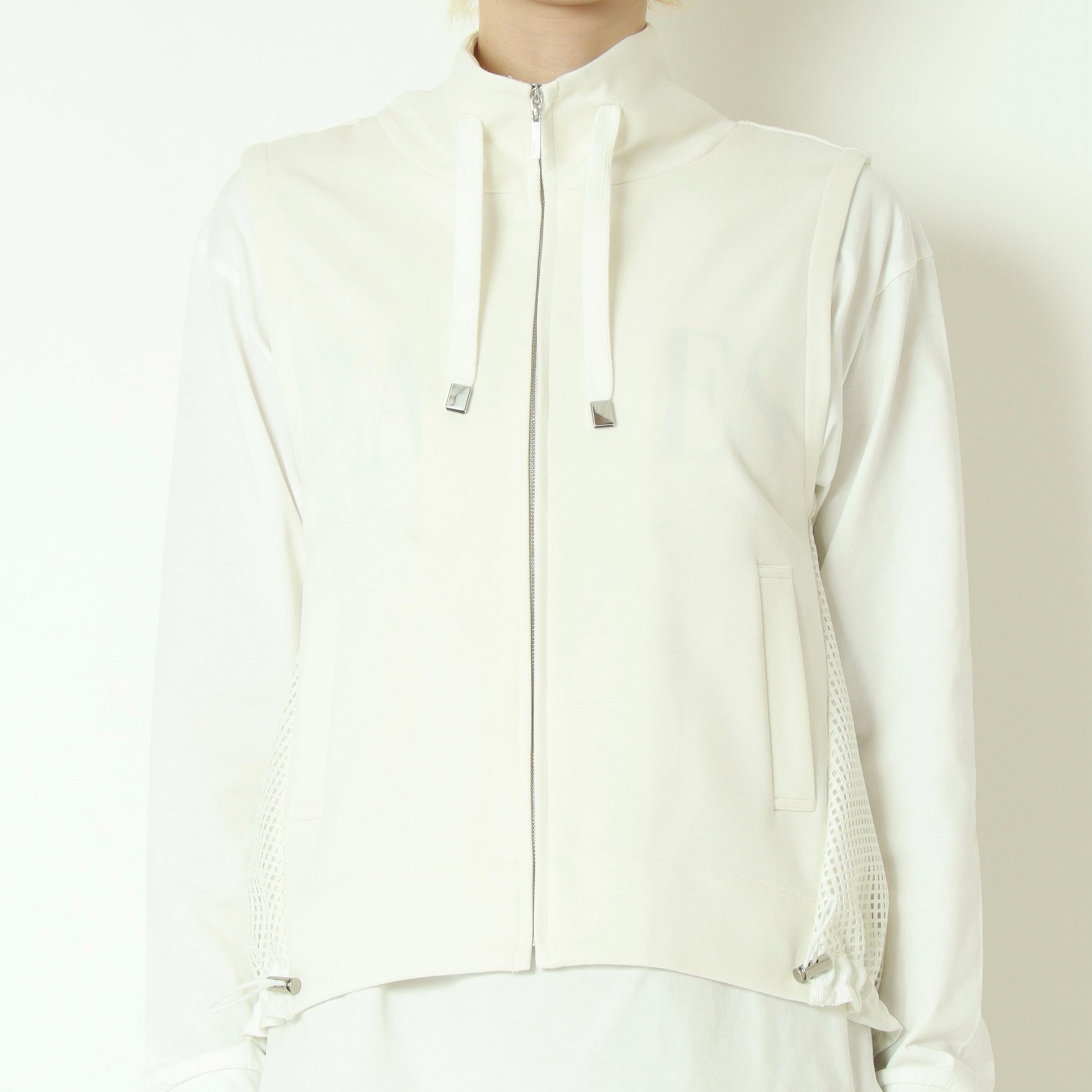 メッシュ素材を切り替えたデザインがアクセントになったジップベスト。